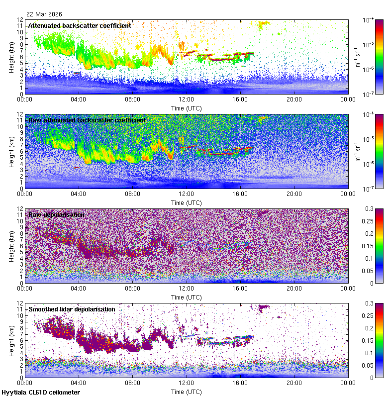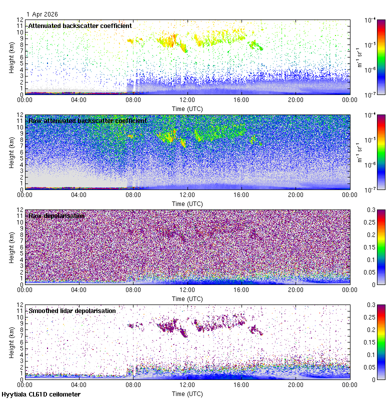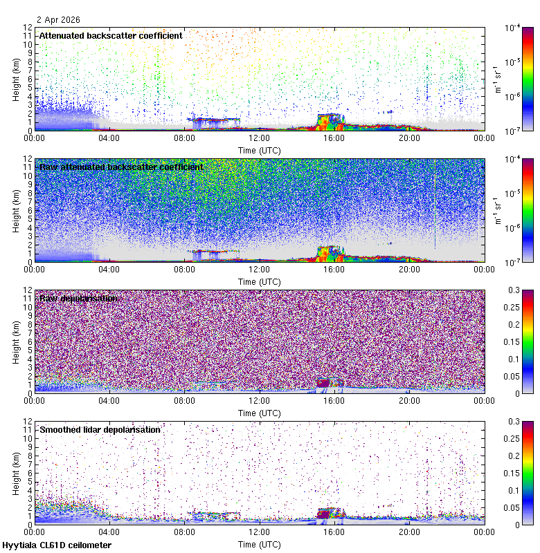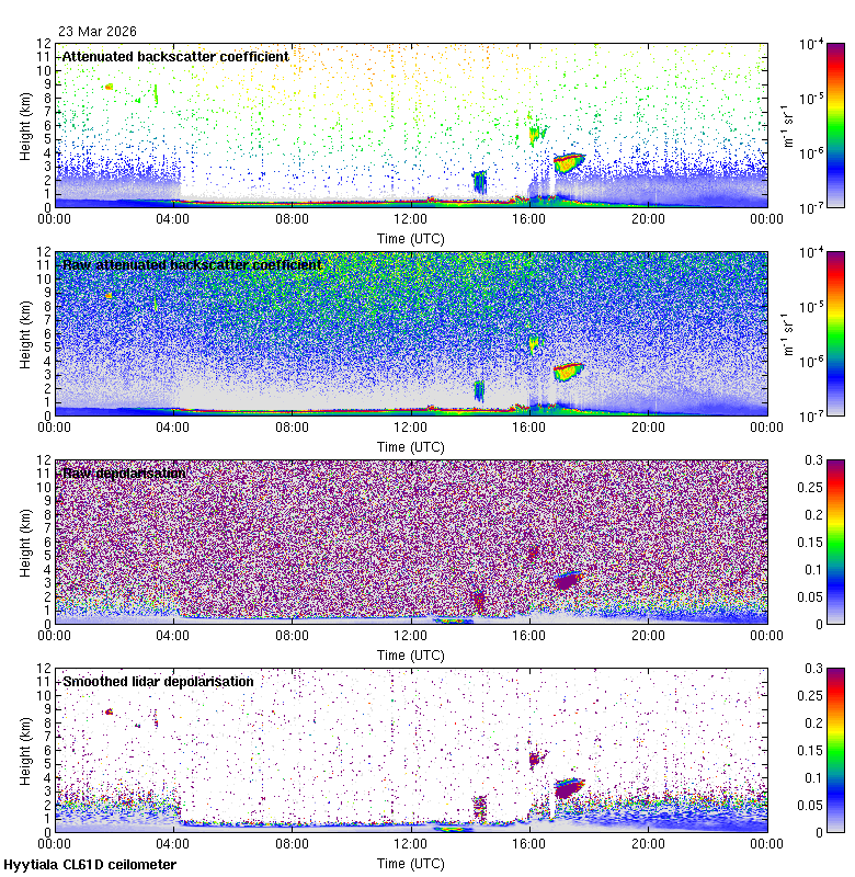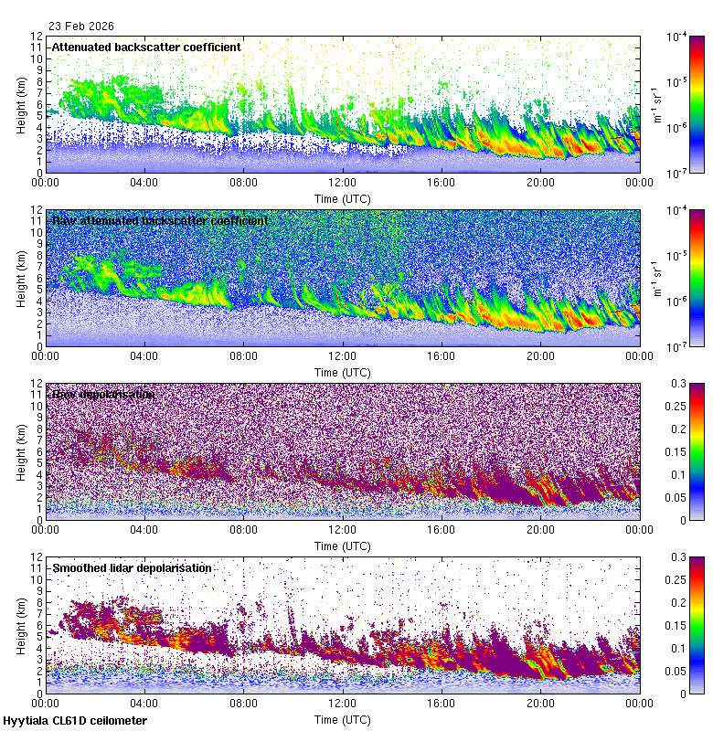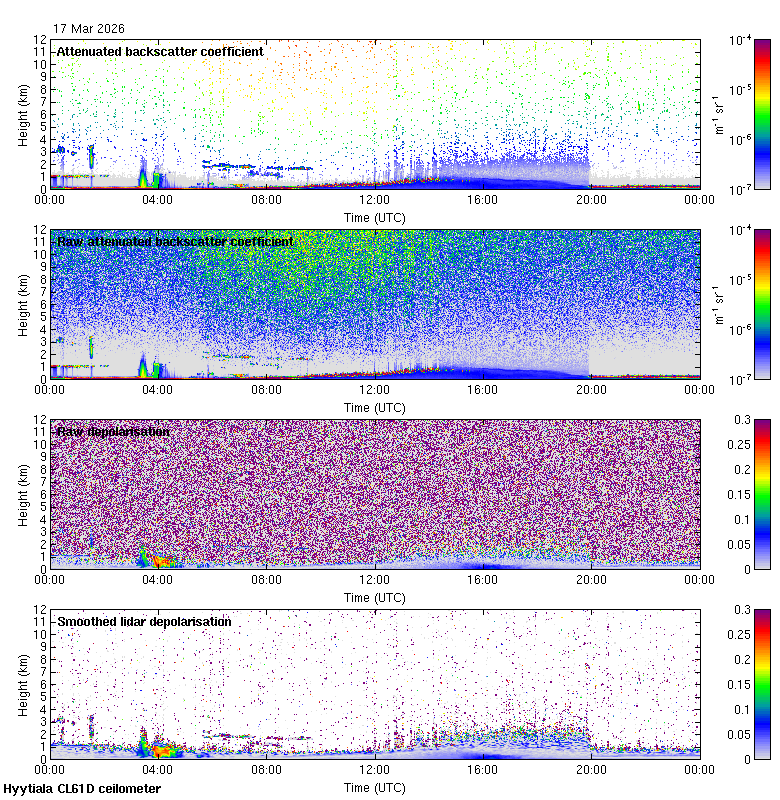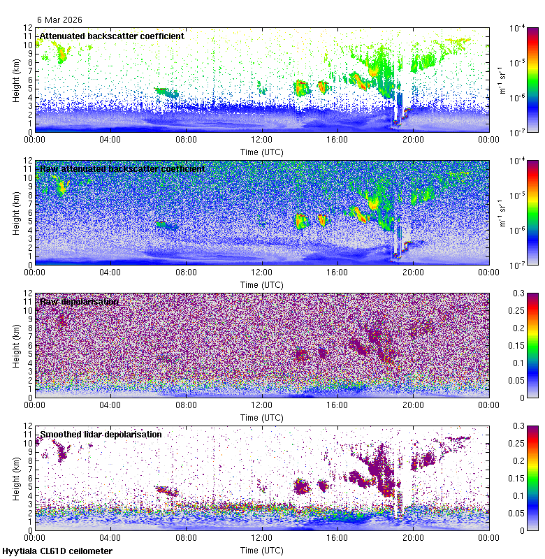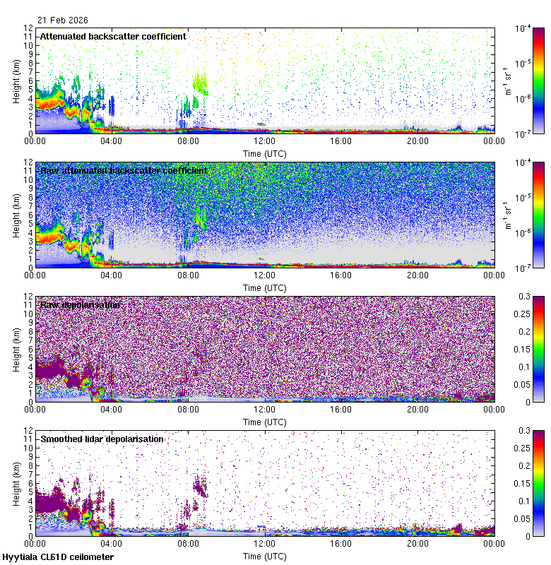 This page contains links to the daily Hyytiala Vaisala CL61D ceilometer images created at Kumpula.