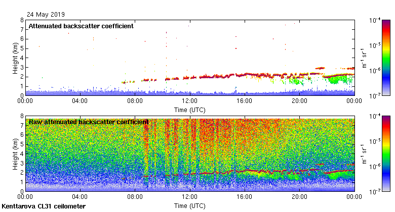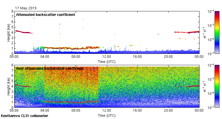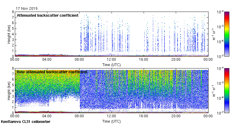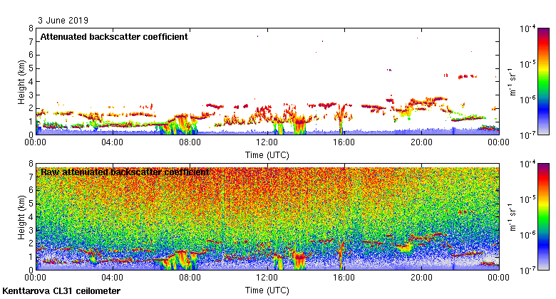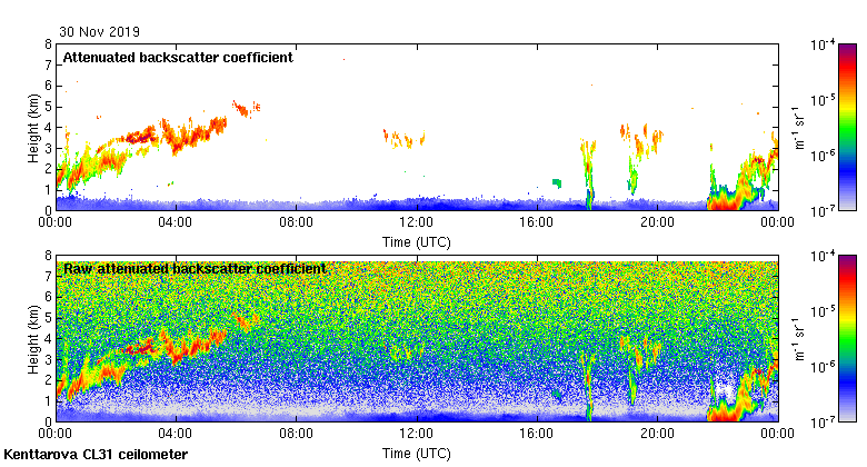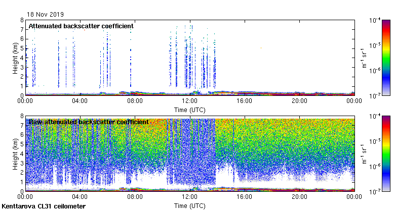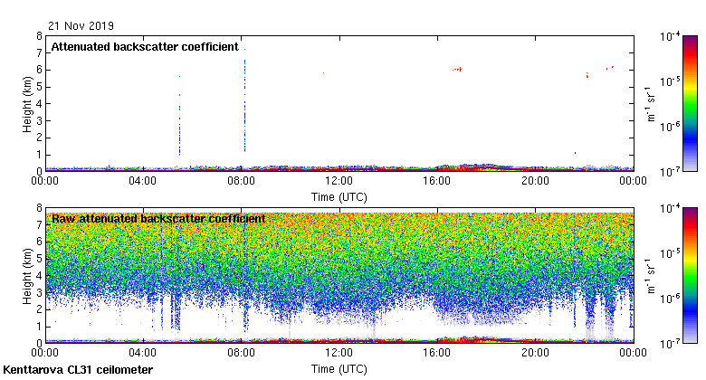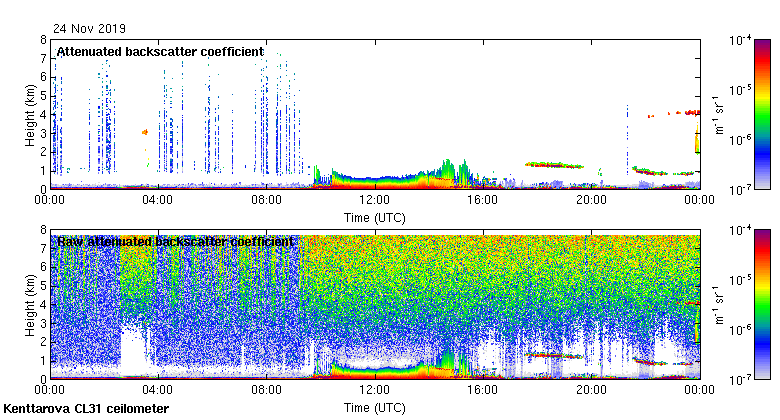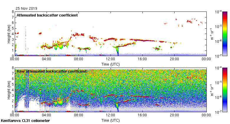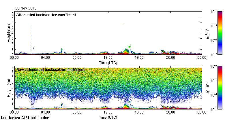 This page contains links to the daily Kenttarova Vaisala CL31 ceilometer images created at Kenttarova.