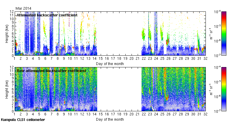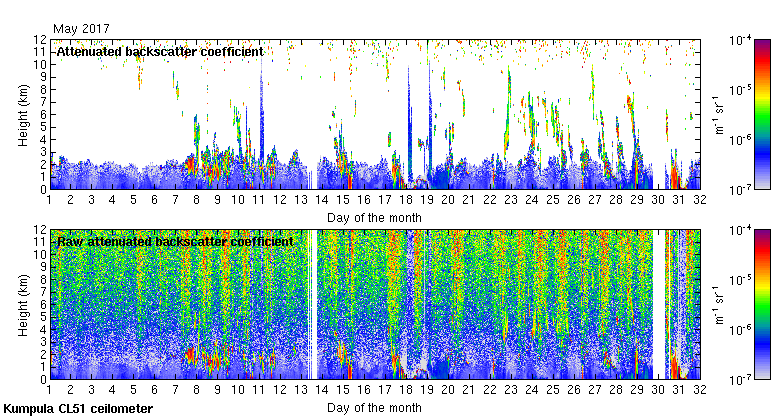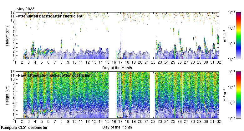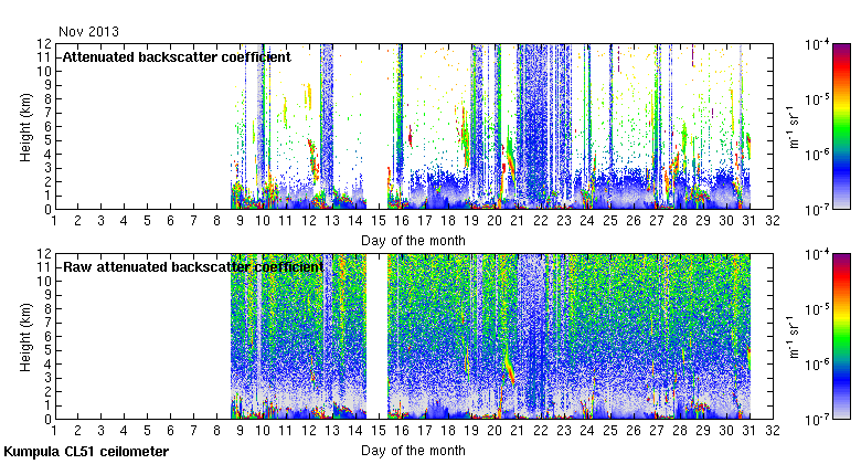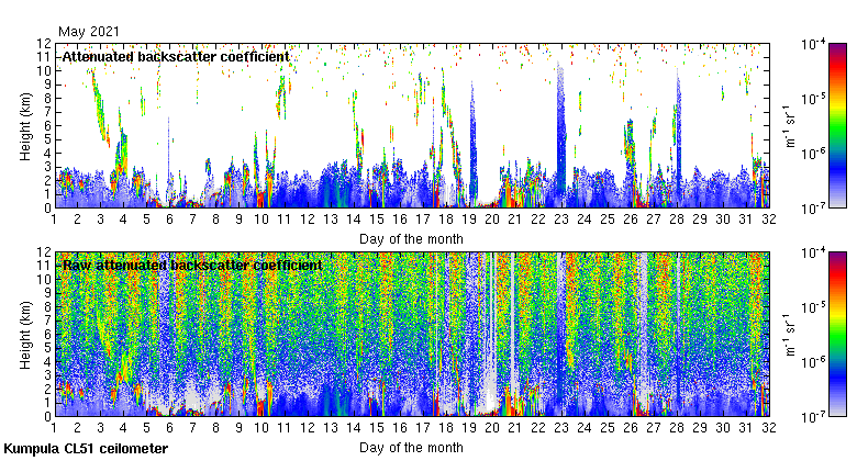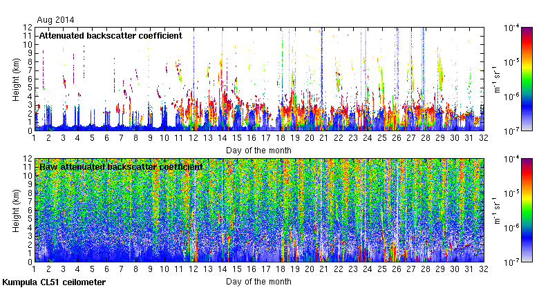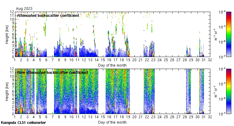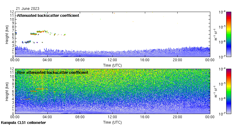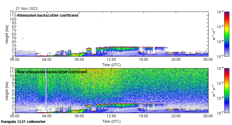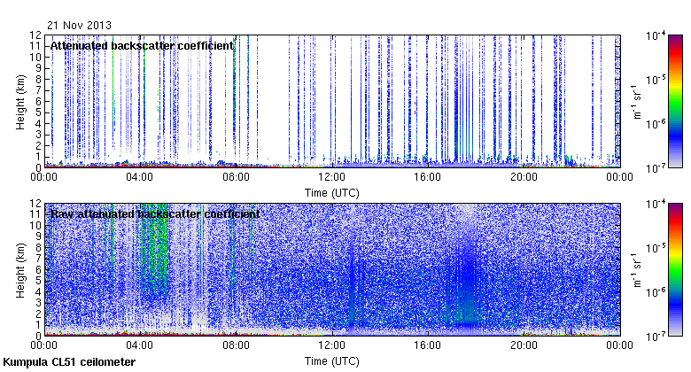 This page contains links to the daily Kumpula Vaisala CL51 ceilometer images created at Kumpula.