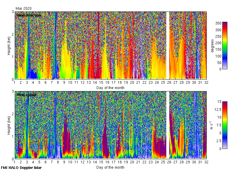This page contains links to the daily Kumpula HALO Doppler lidar images created at Kumpula.