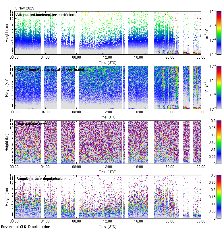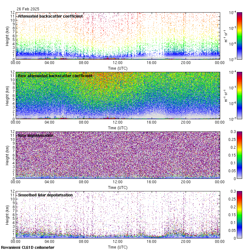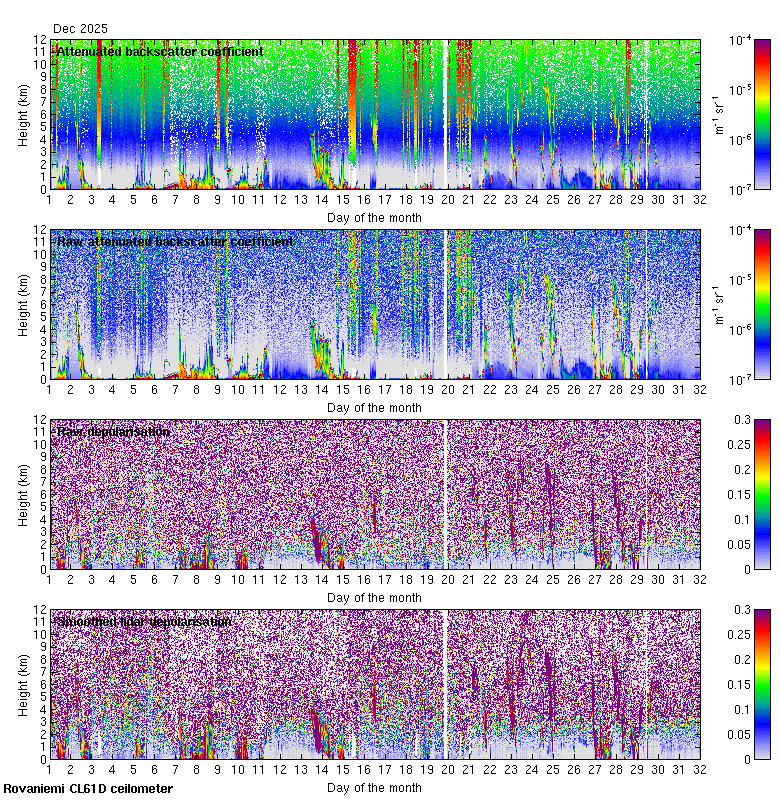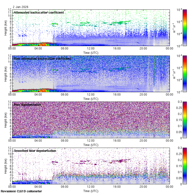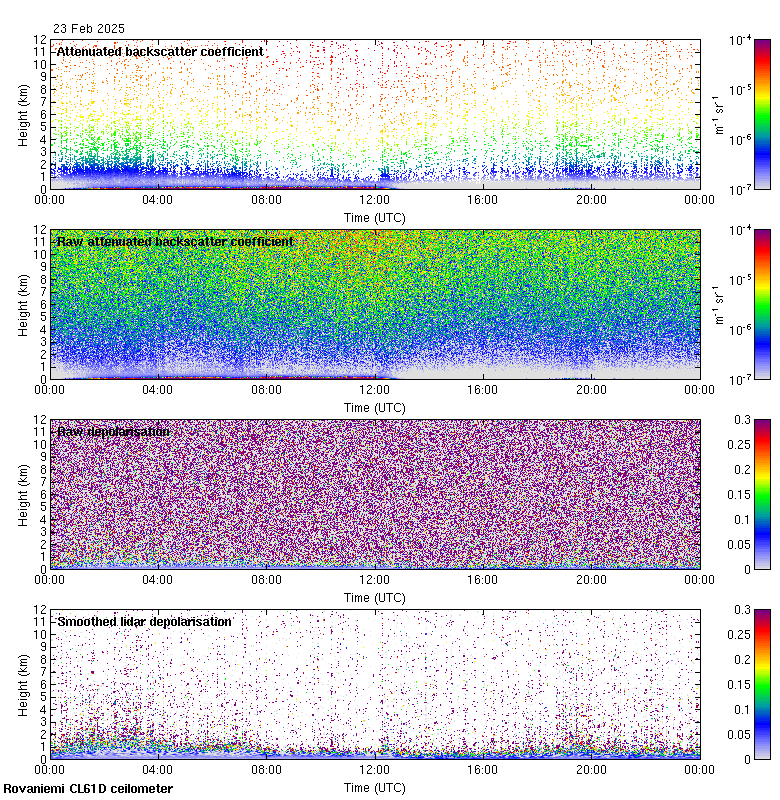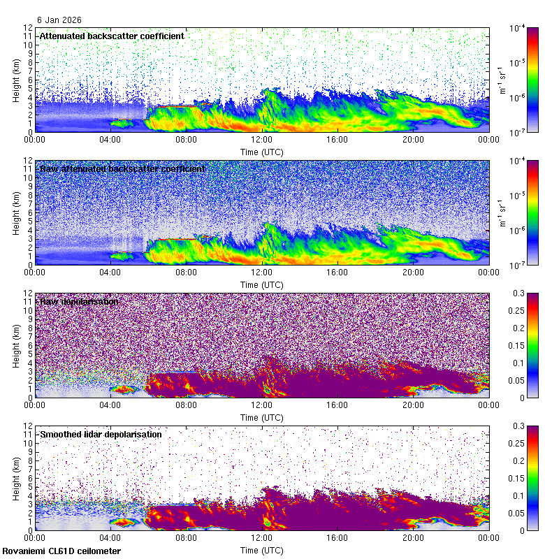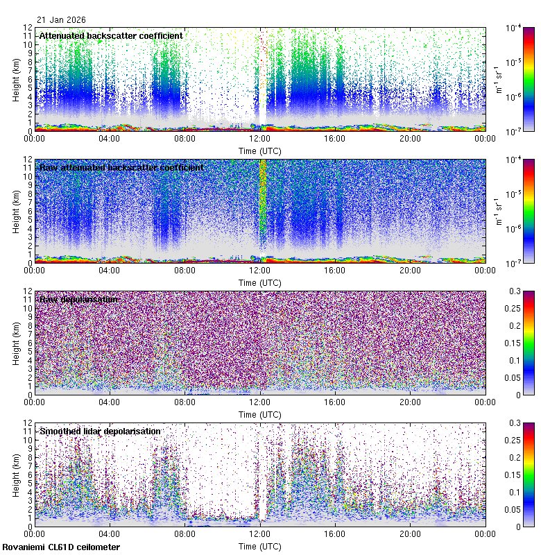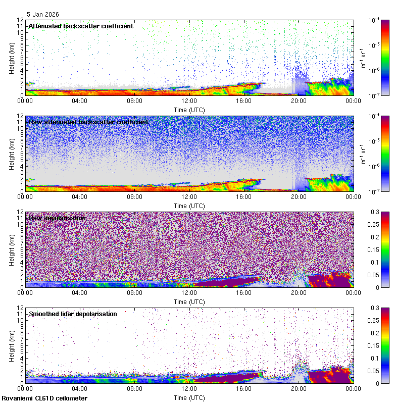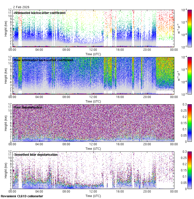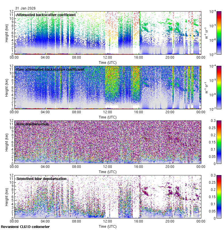 This page contains links to the daily Rovaniemi Vaisala CL61D ceilometer images created at Rovaniemi.