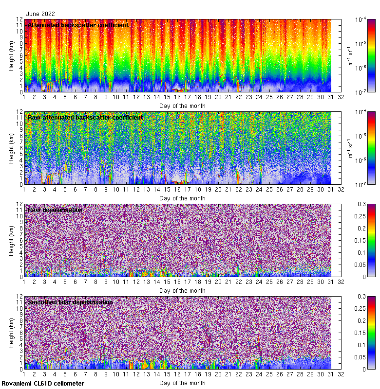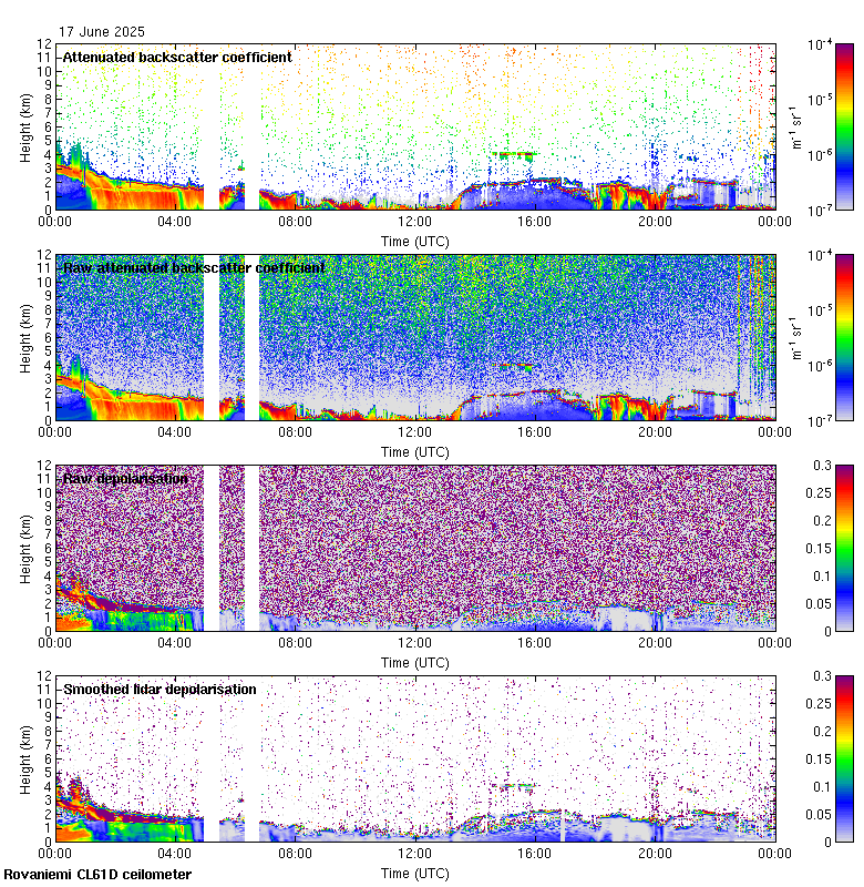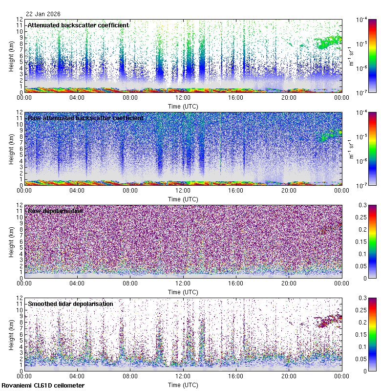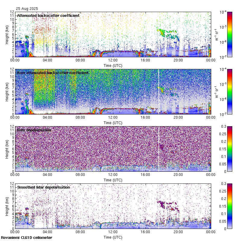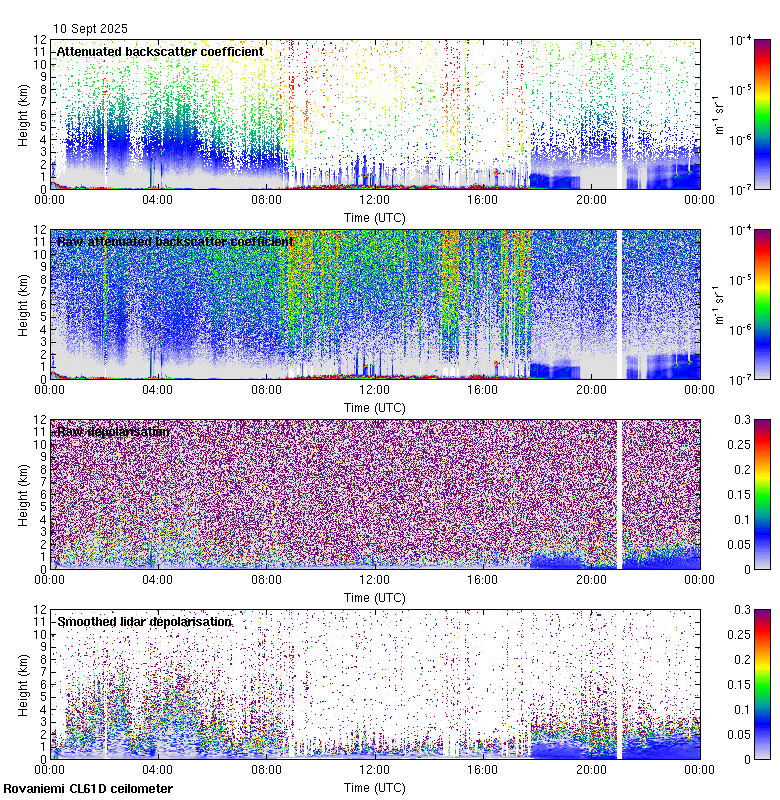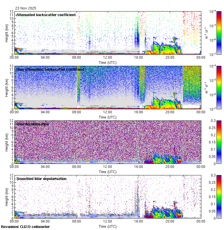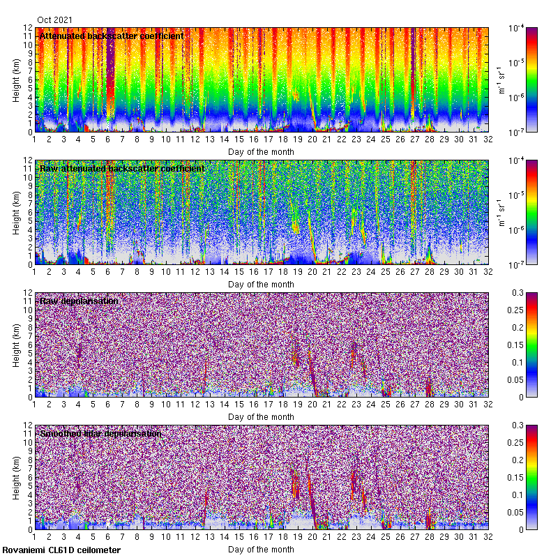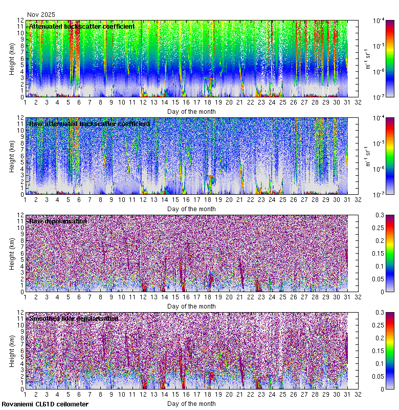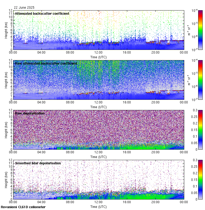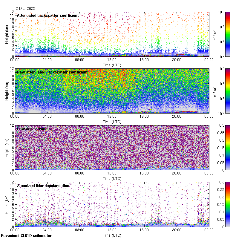 This page contains links to the daily Rovaniemi Vaisala CL61D ceilometer images created at Rovaniemi.