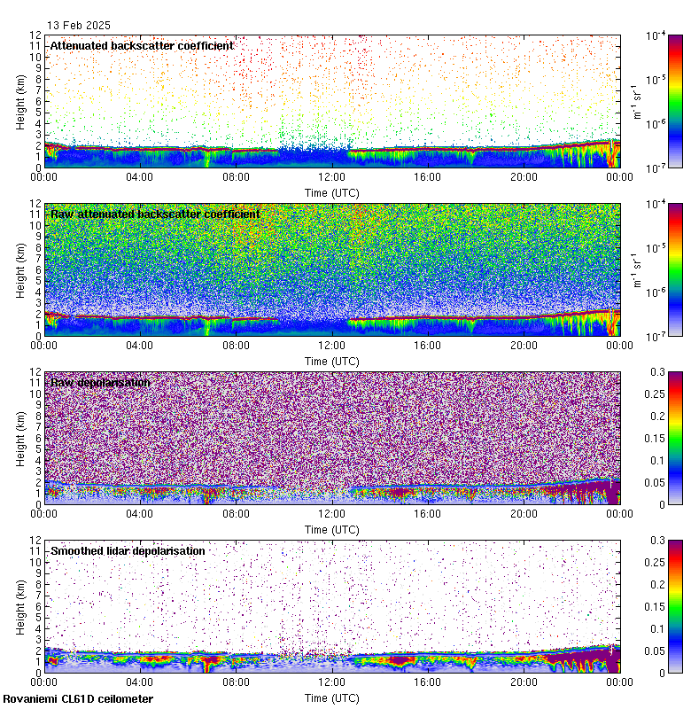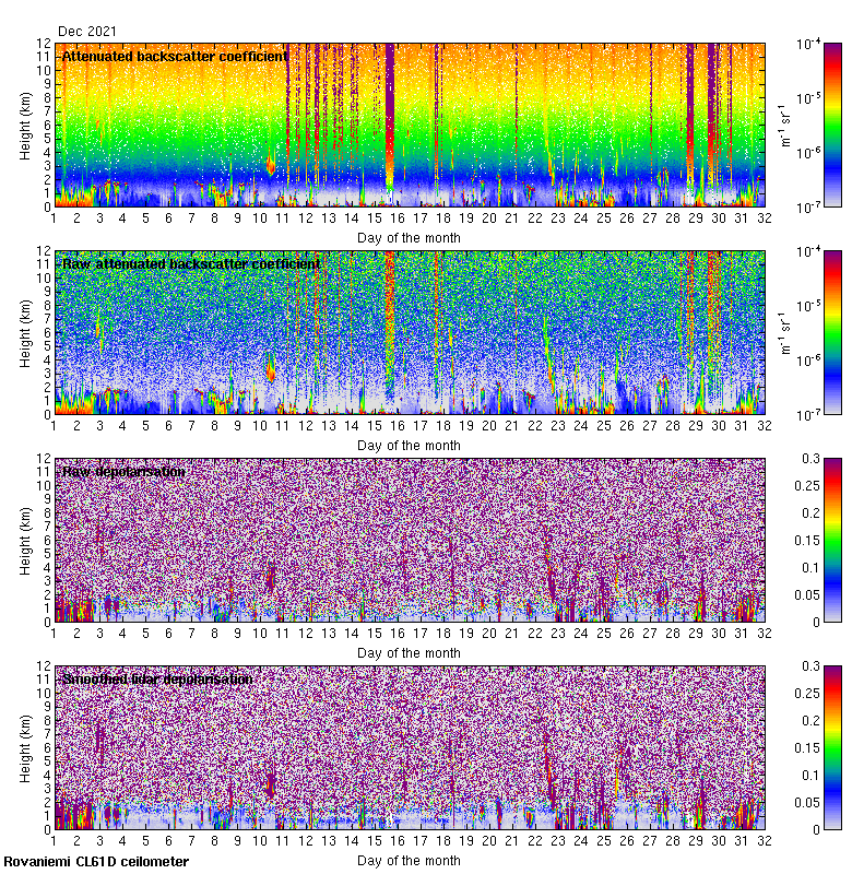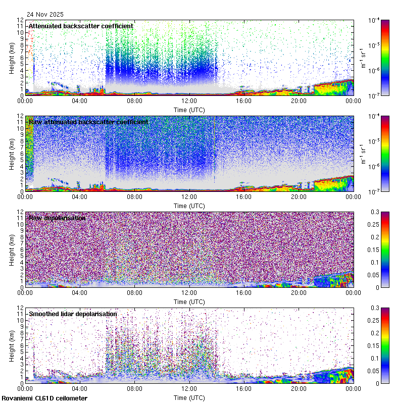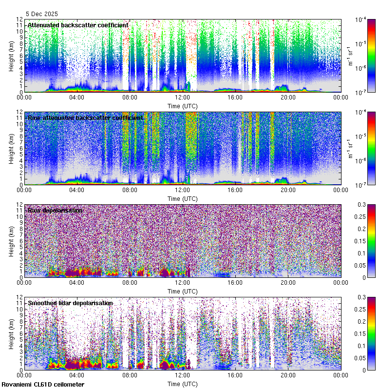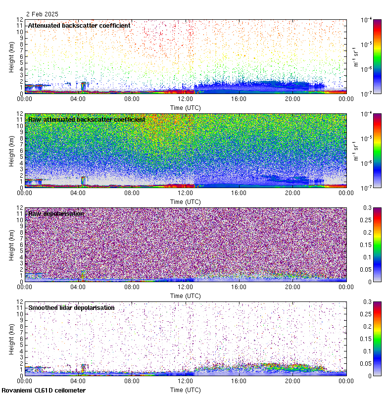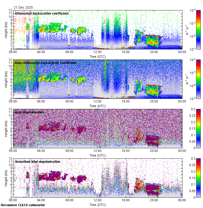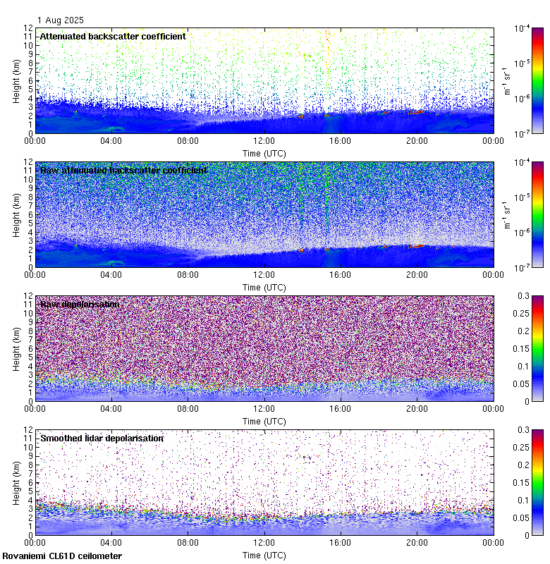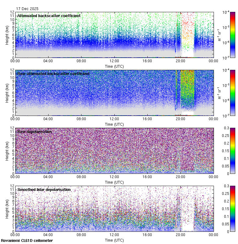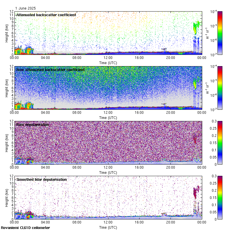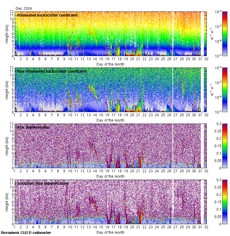 This page contains links to the daily Rovaniemi Vaisala CL61D ceilometer images created at Rovaniemi.