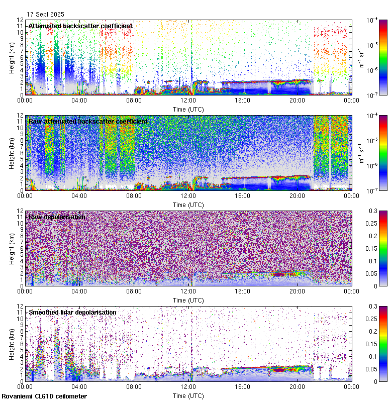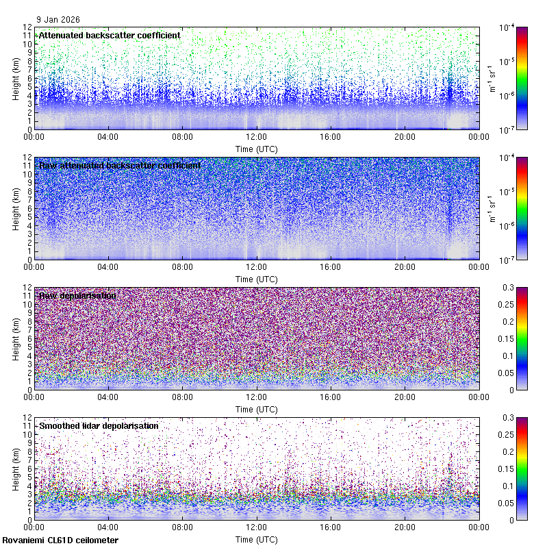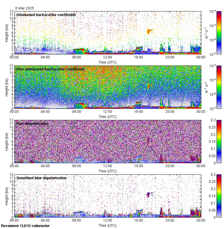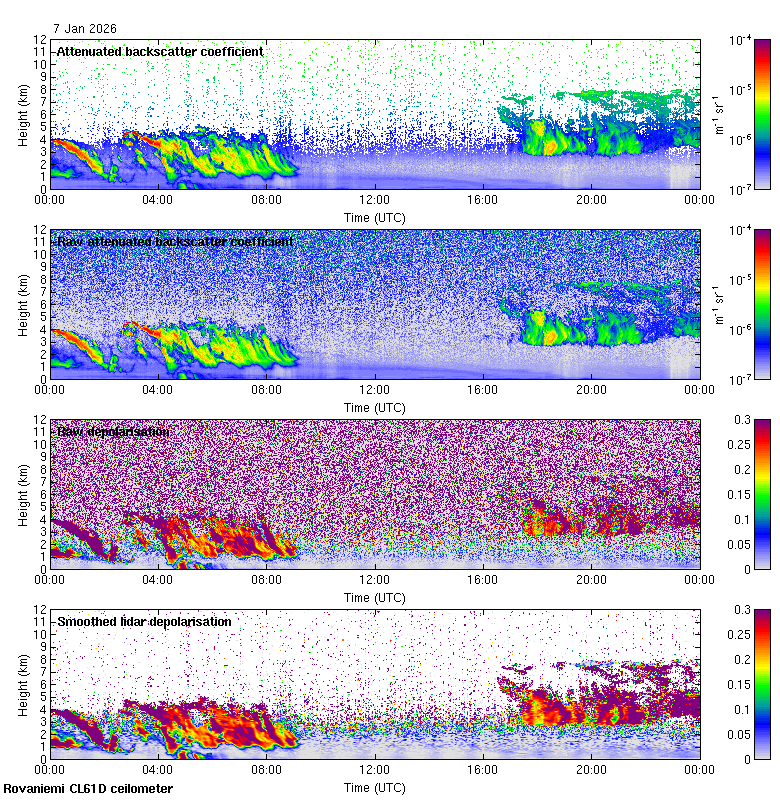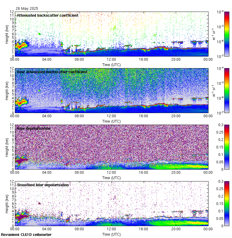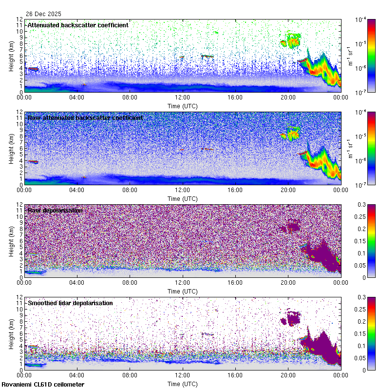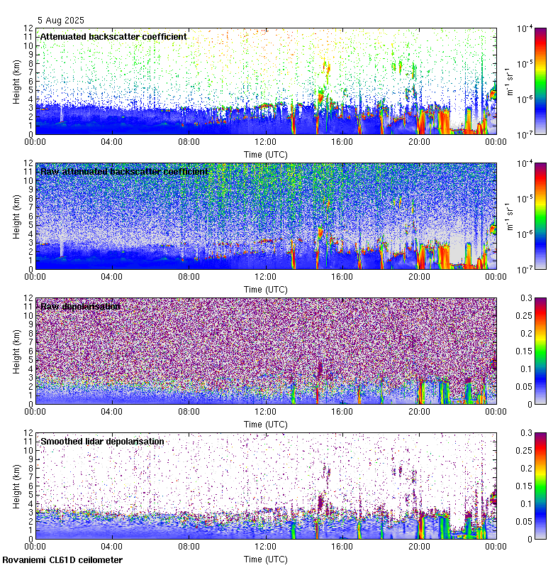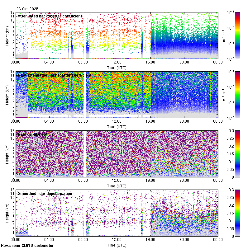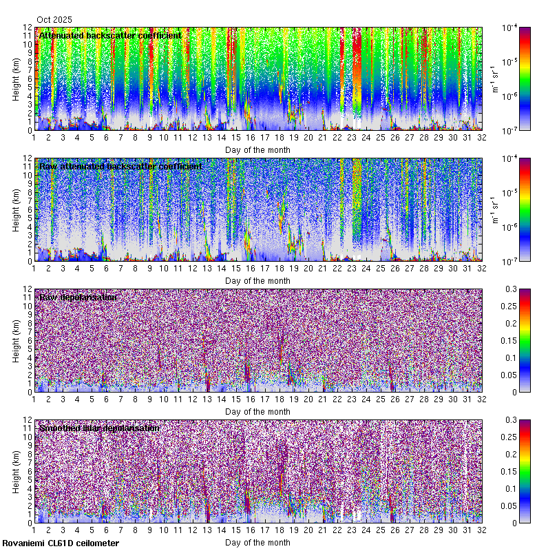 This page contains links to the daily Rovaniemi Vaisala CL61D ceilometer images created at Rovaniemi.