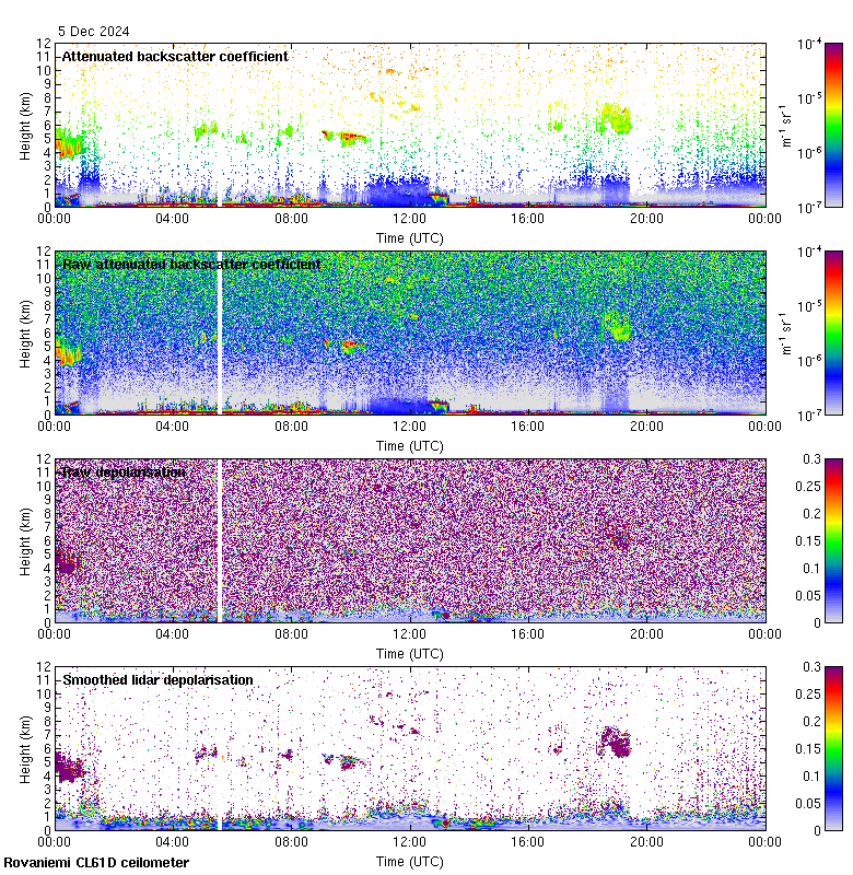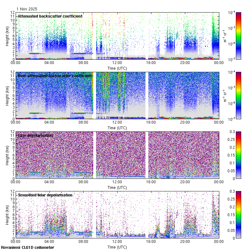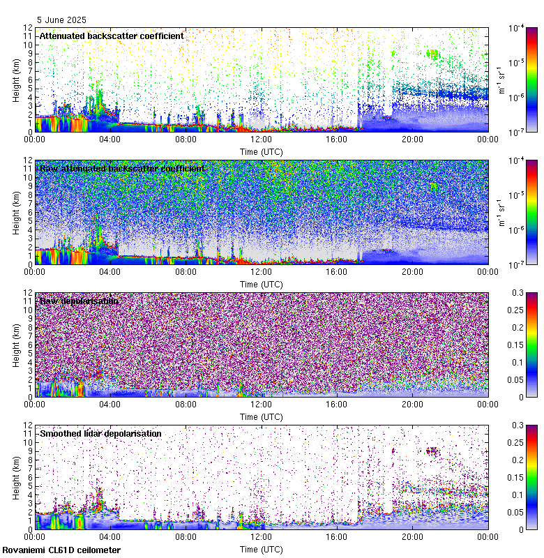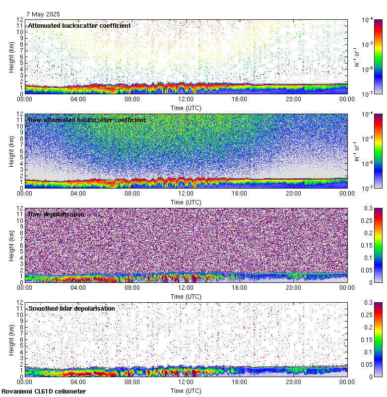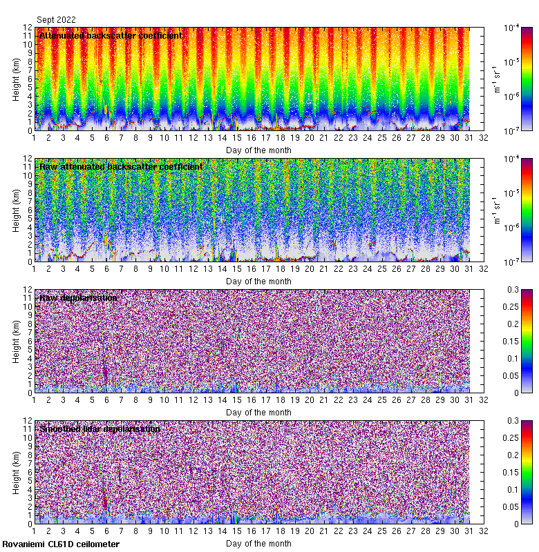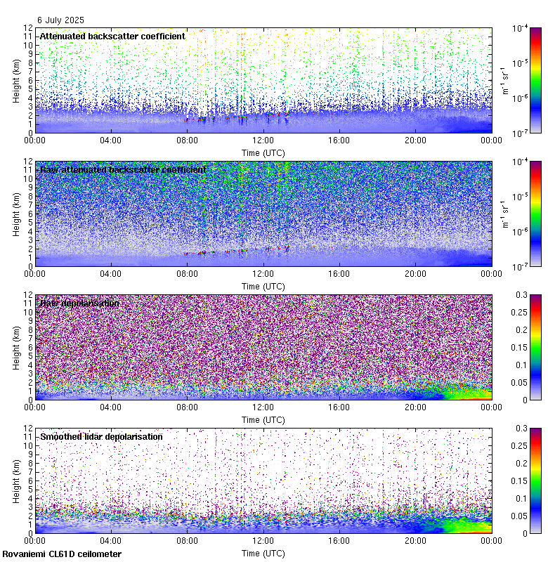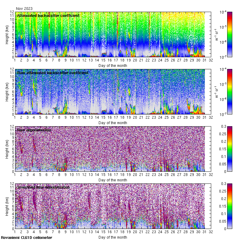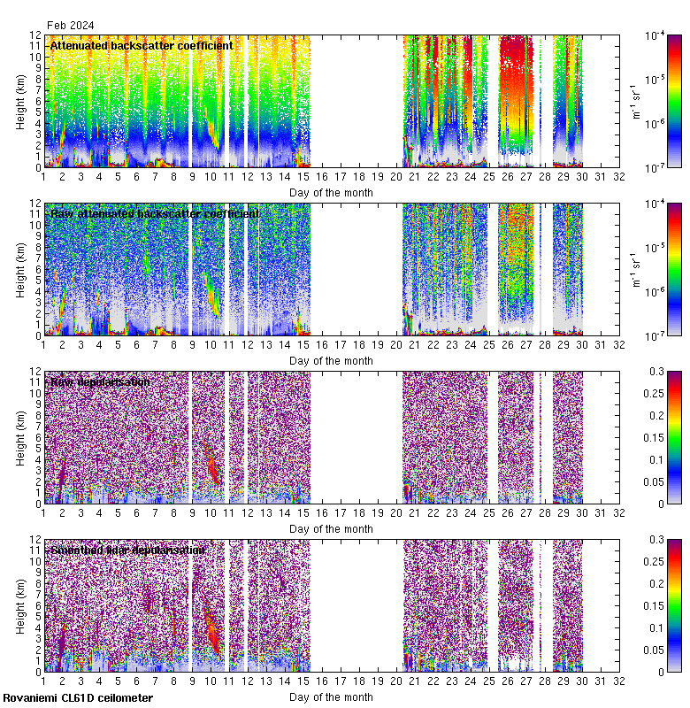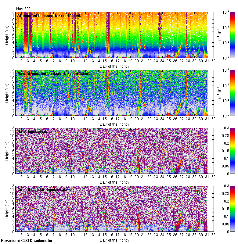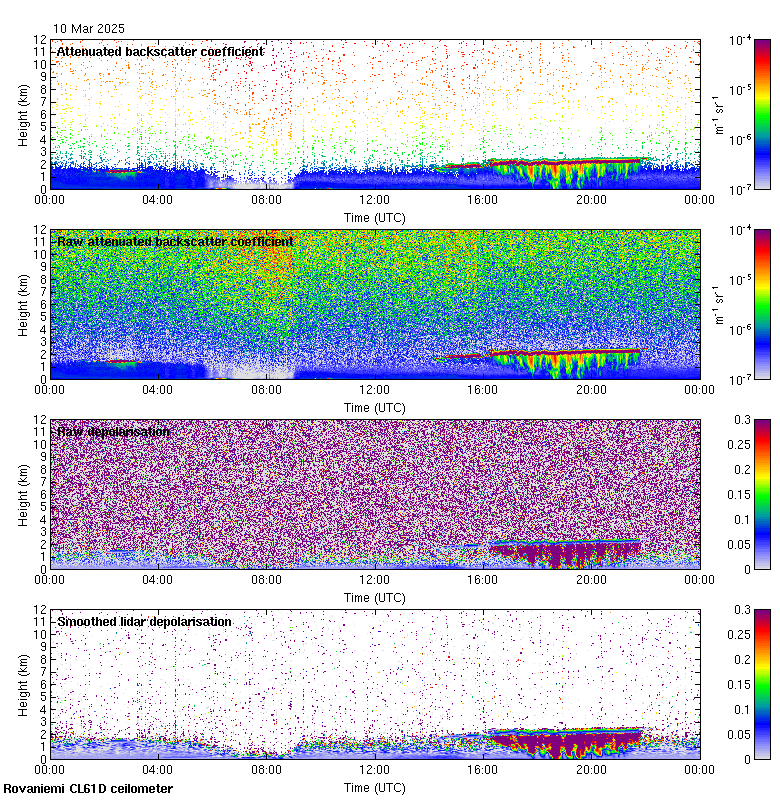 This page contains links to the daily Rovaniemi Vaisala CL61D ceilometer images created at Rovaniemi.