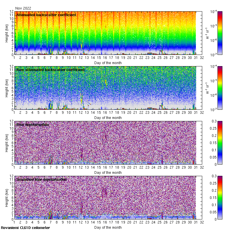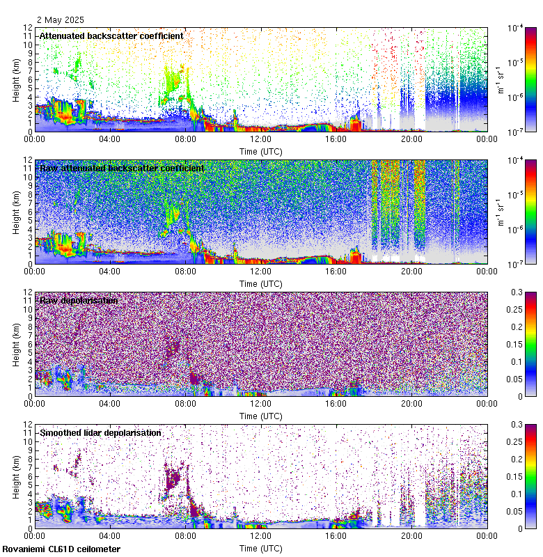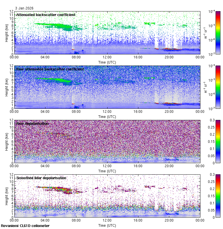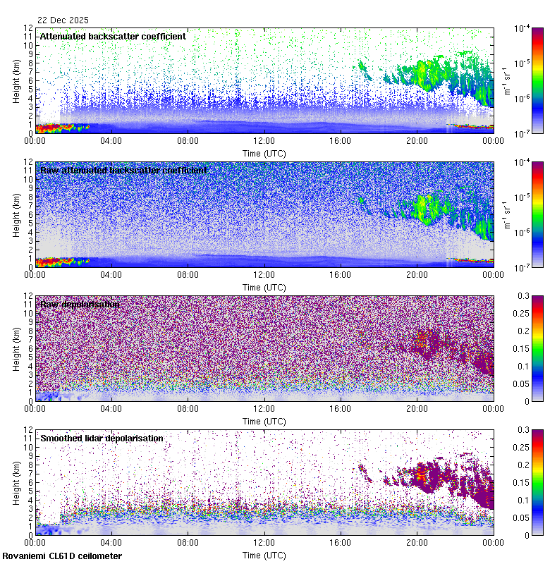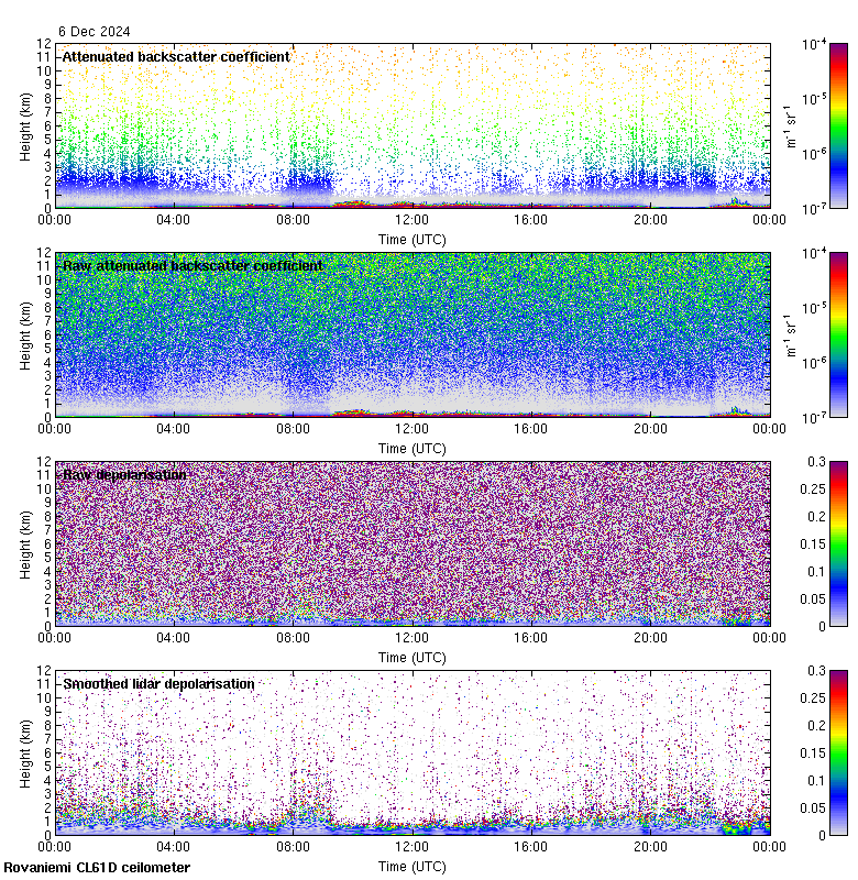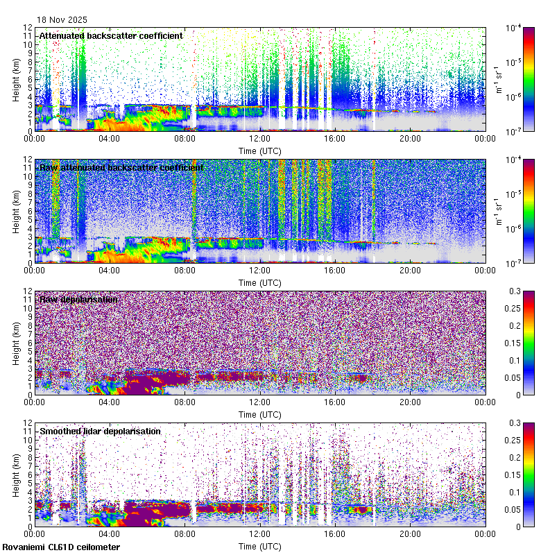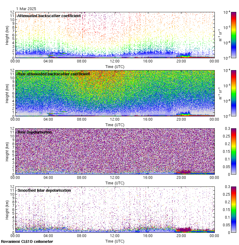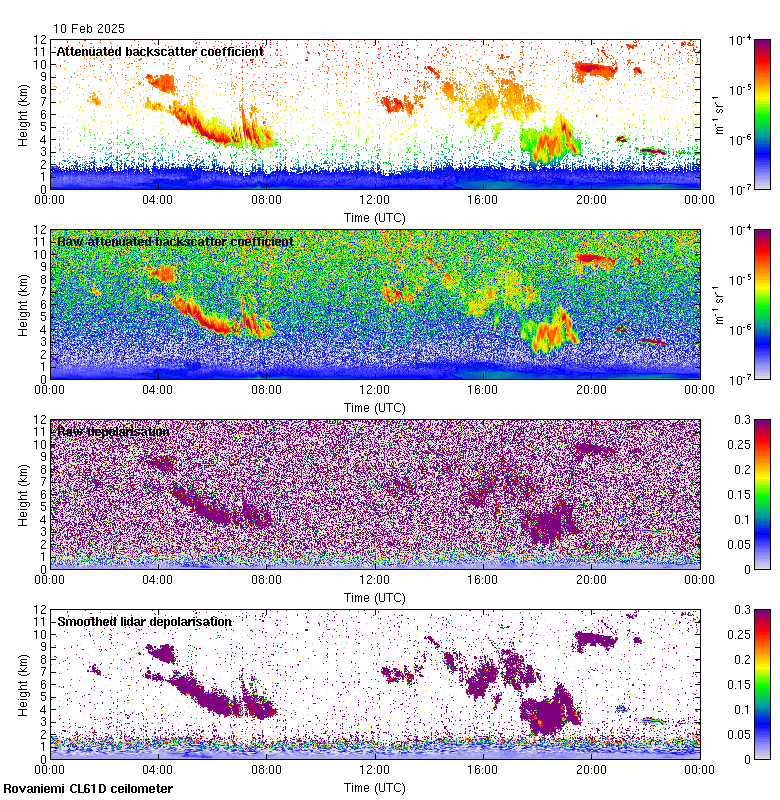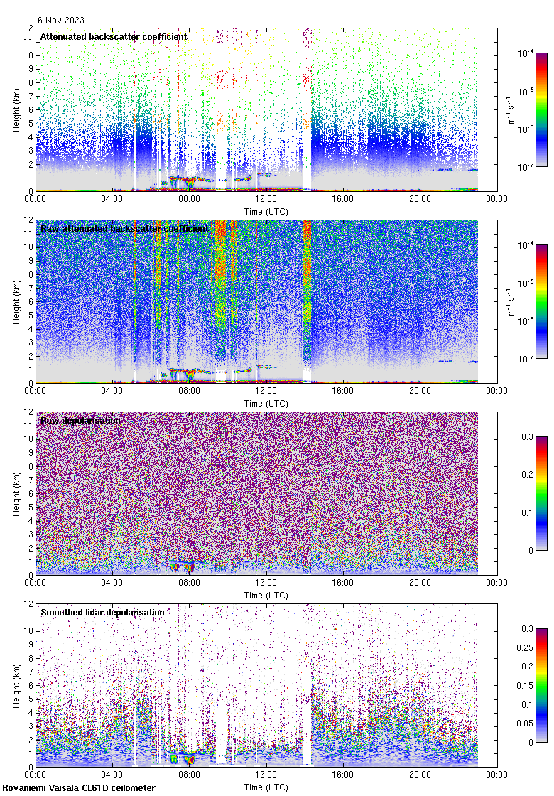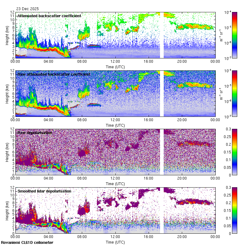 This page contains links to the daily Rovaniemi Vaisala CL61D ceilometer images created at Rovaniemi.