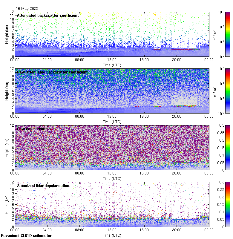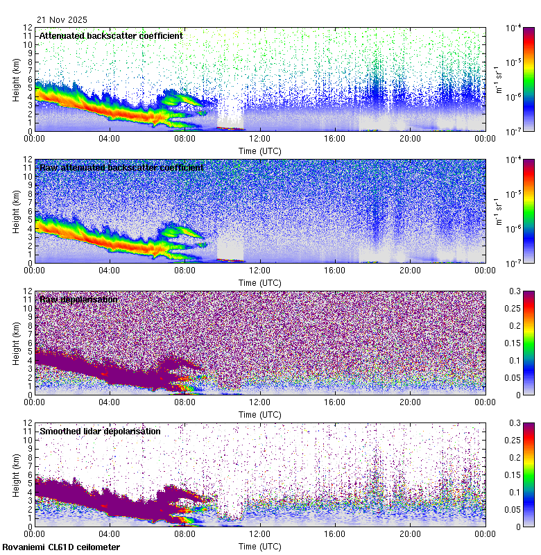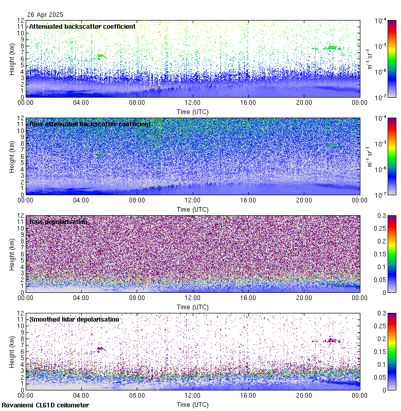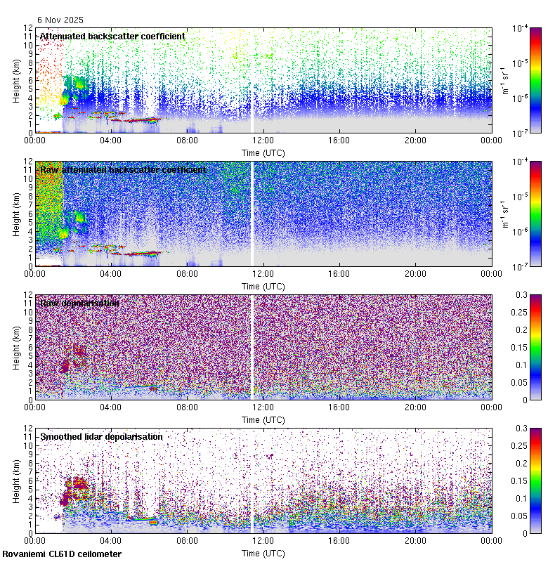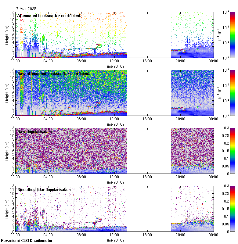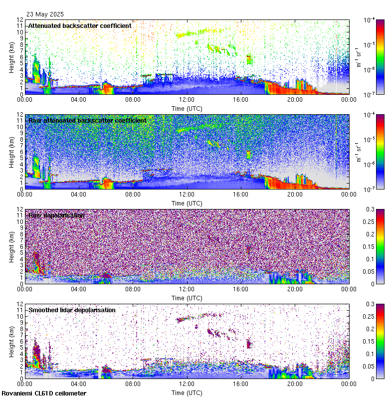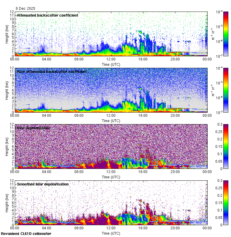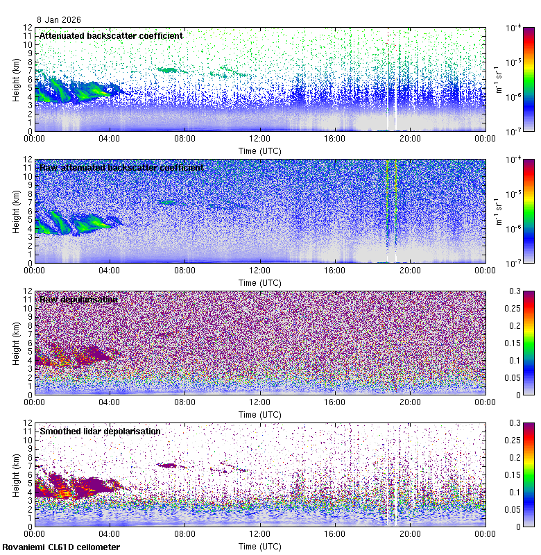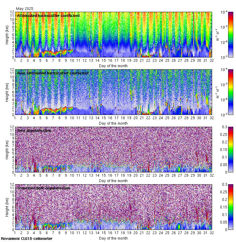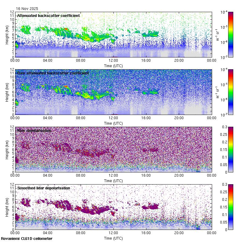 This page contains links to the daily Rovaniemi Vaisala CL61D ceilometer images created at Rovaniemi.