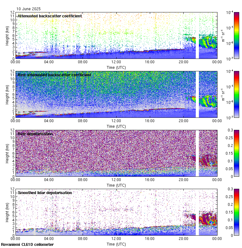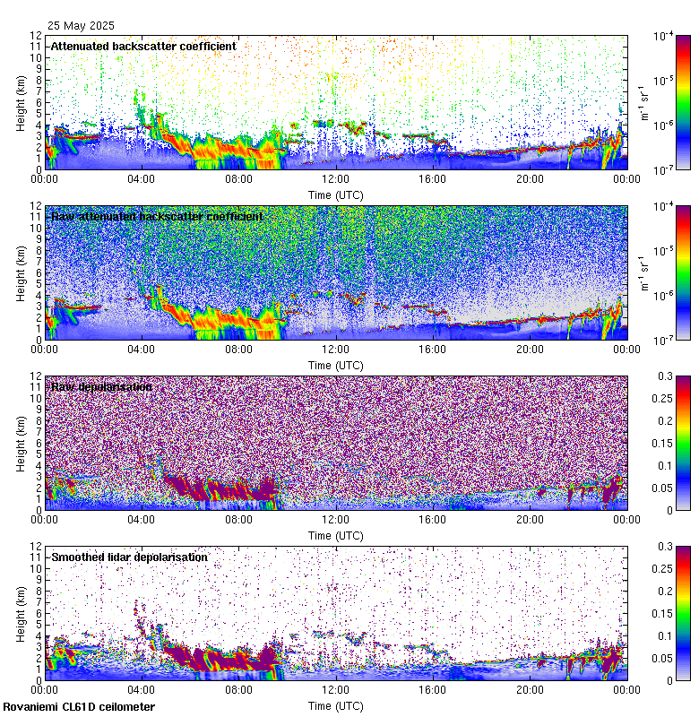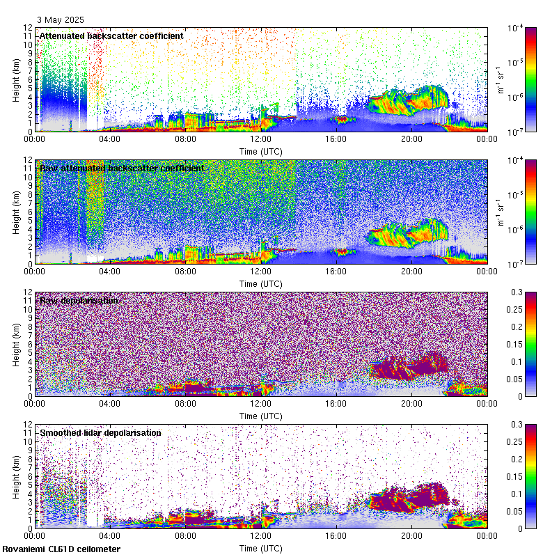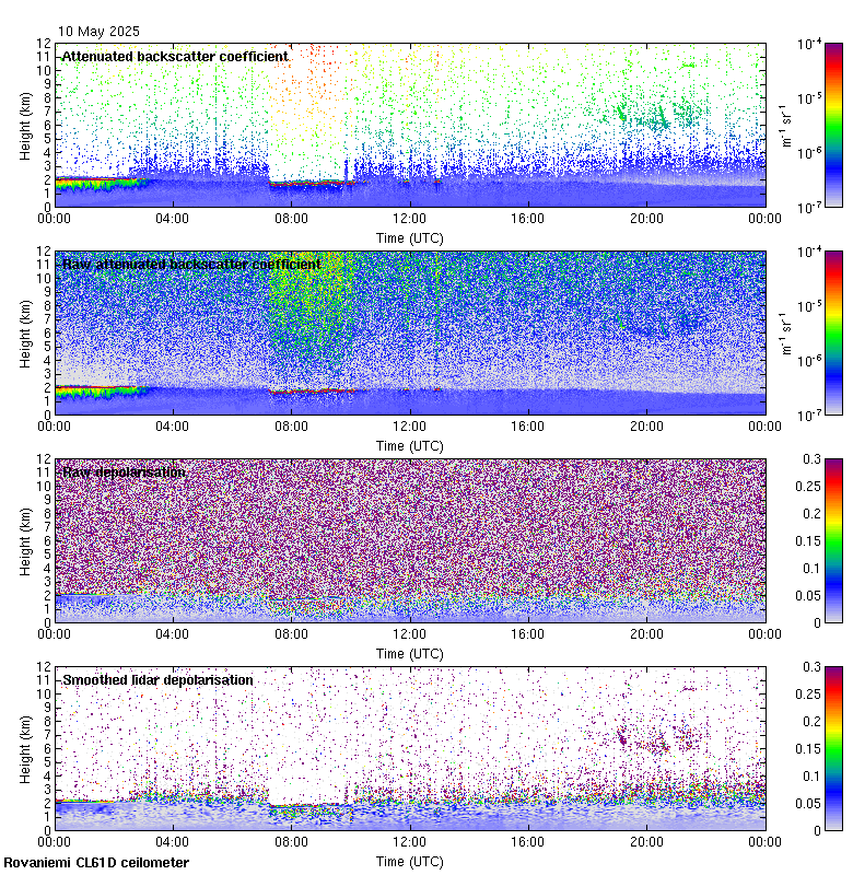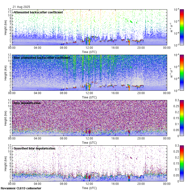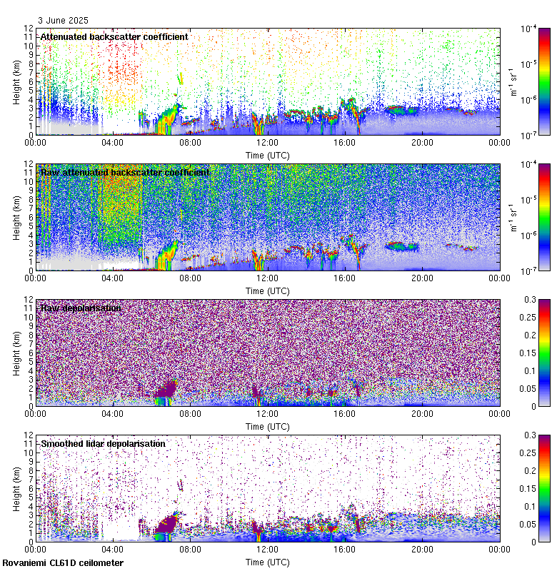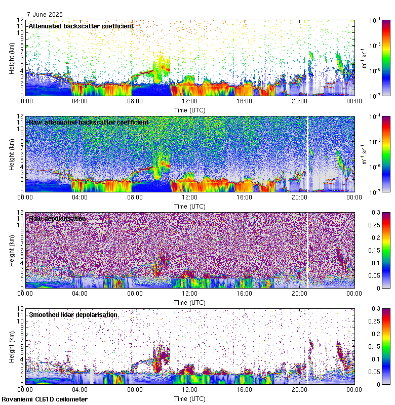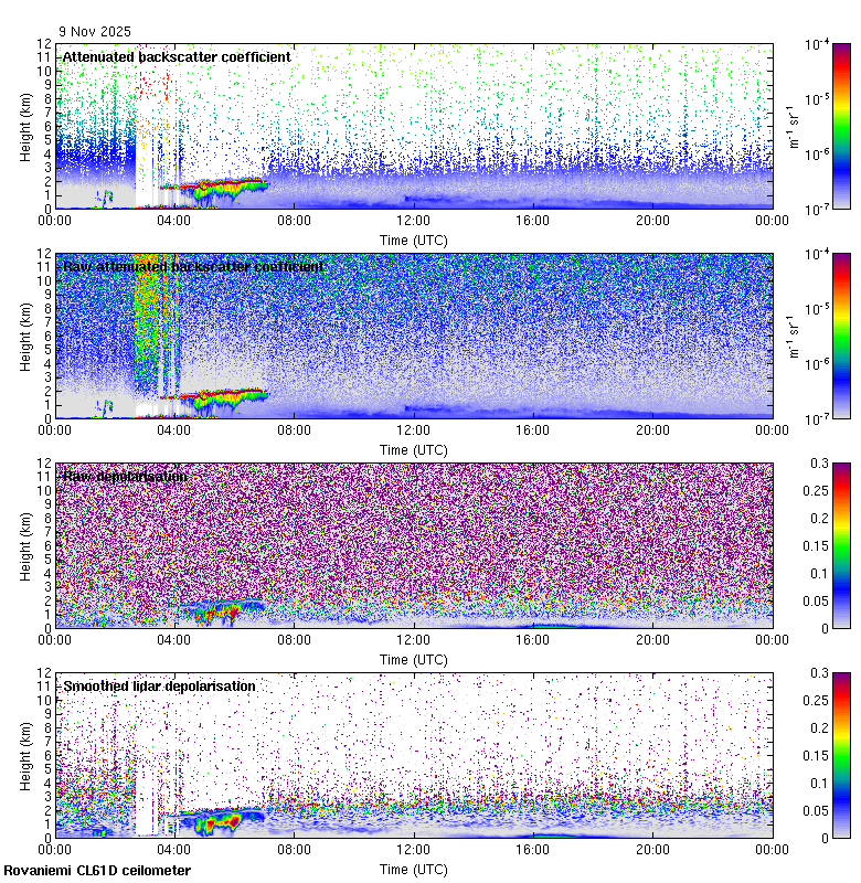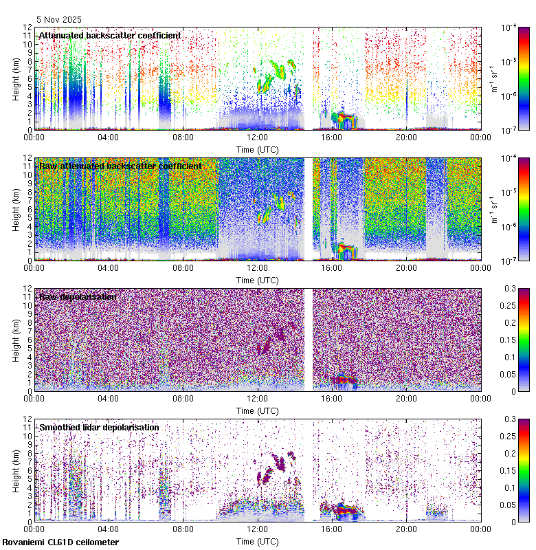 This page contains links to the daily Rovaniemi Vaisala CL61D ceilometer images created at Rovaniemi.