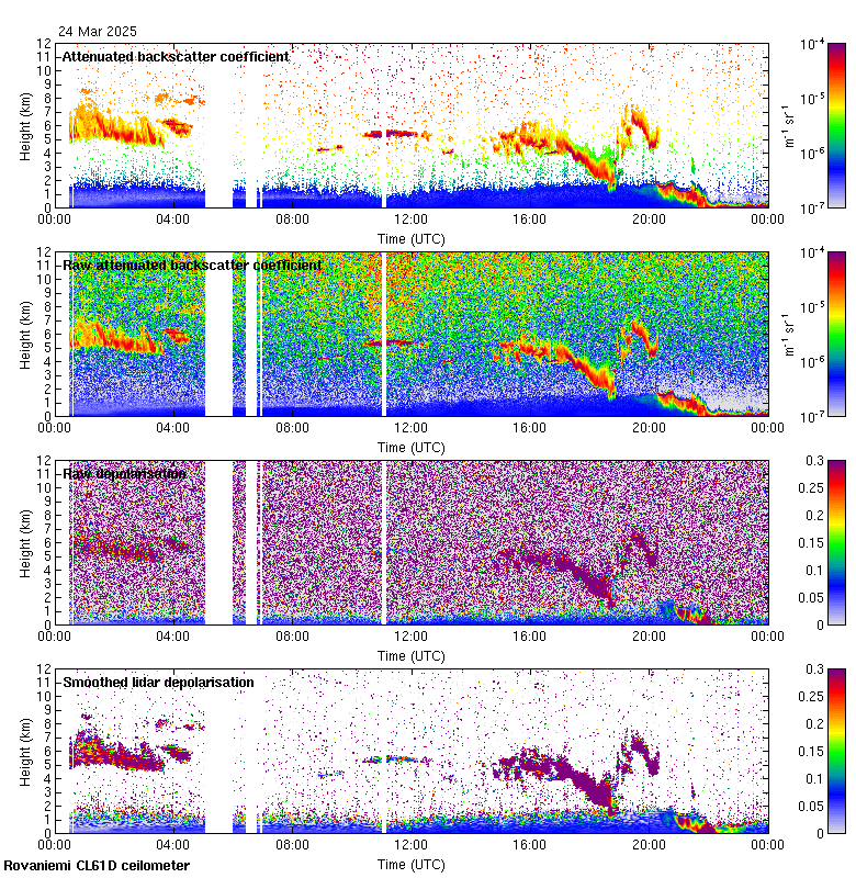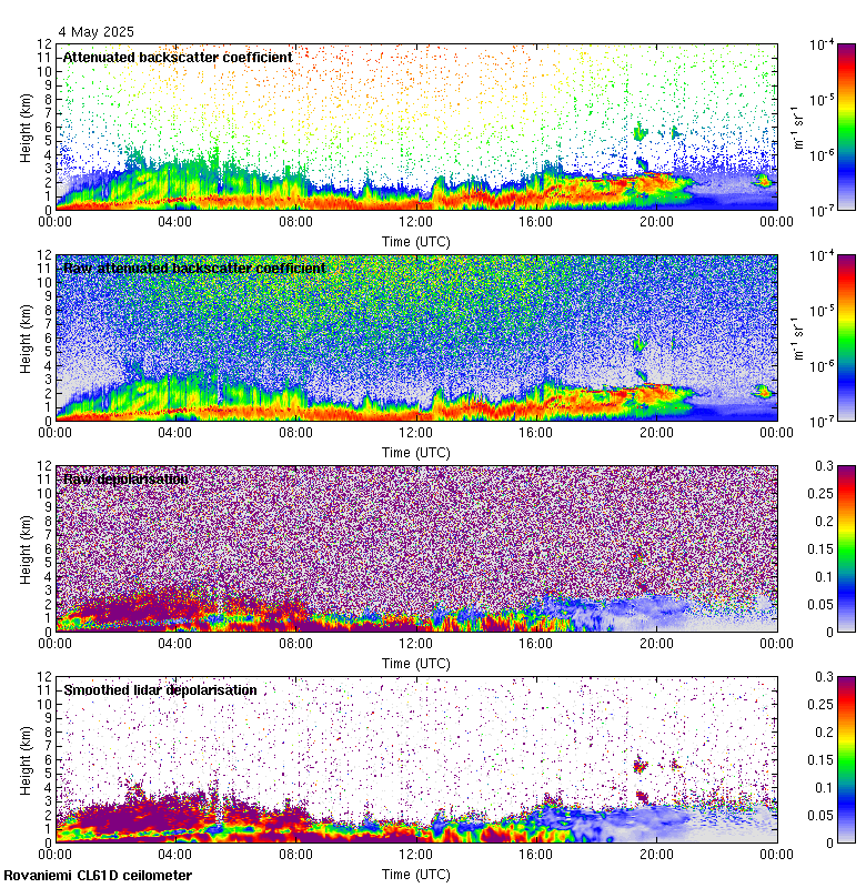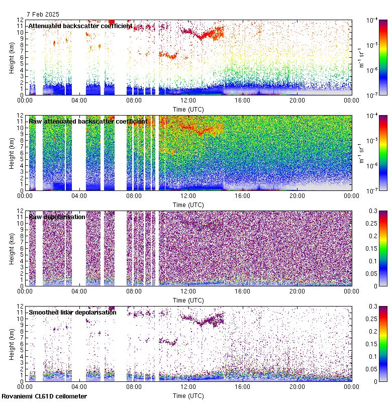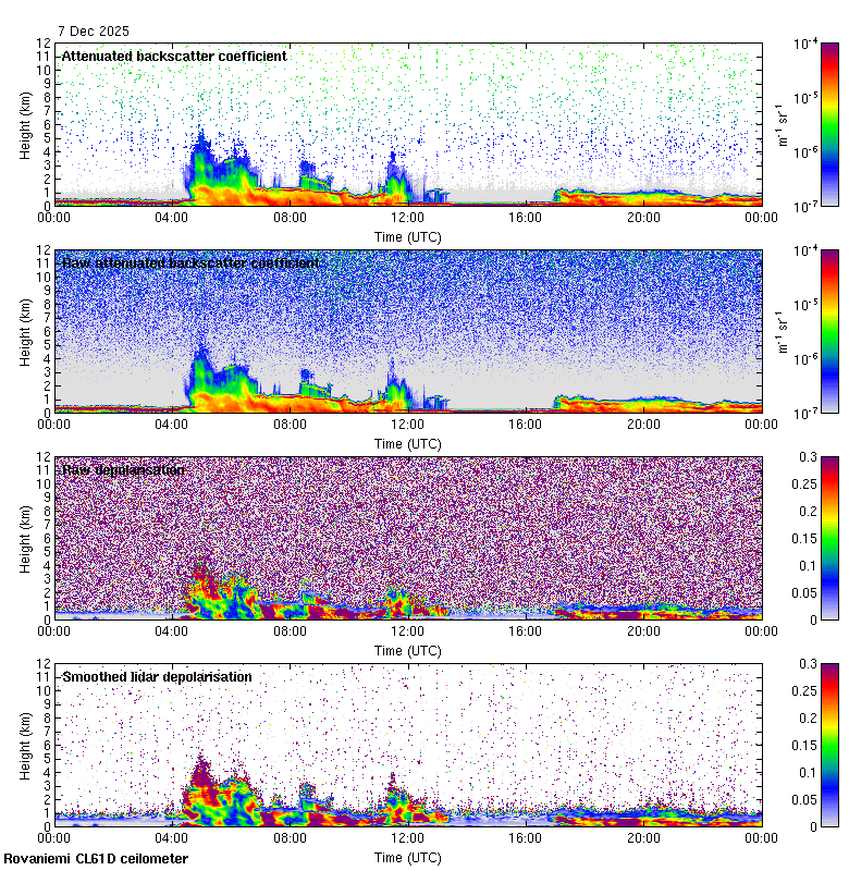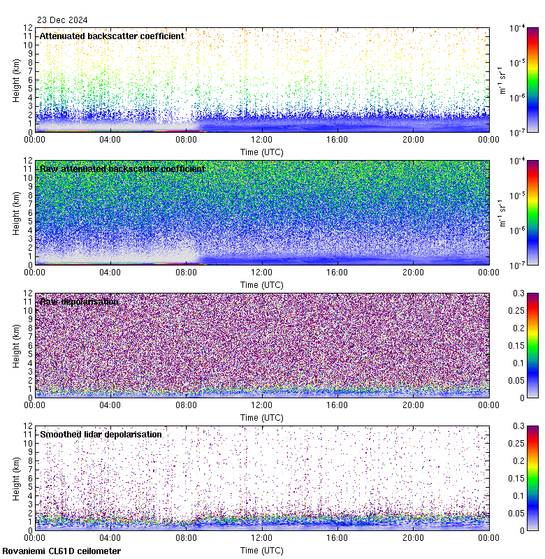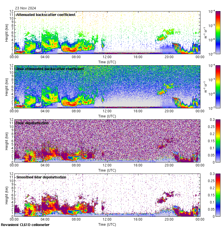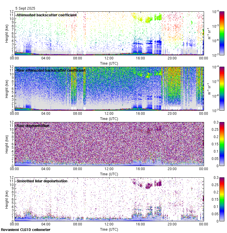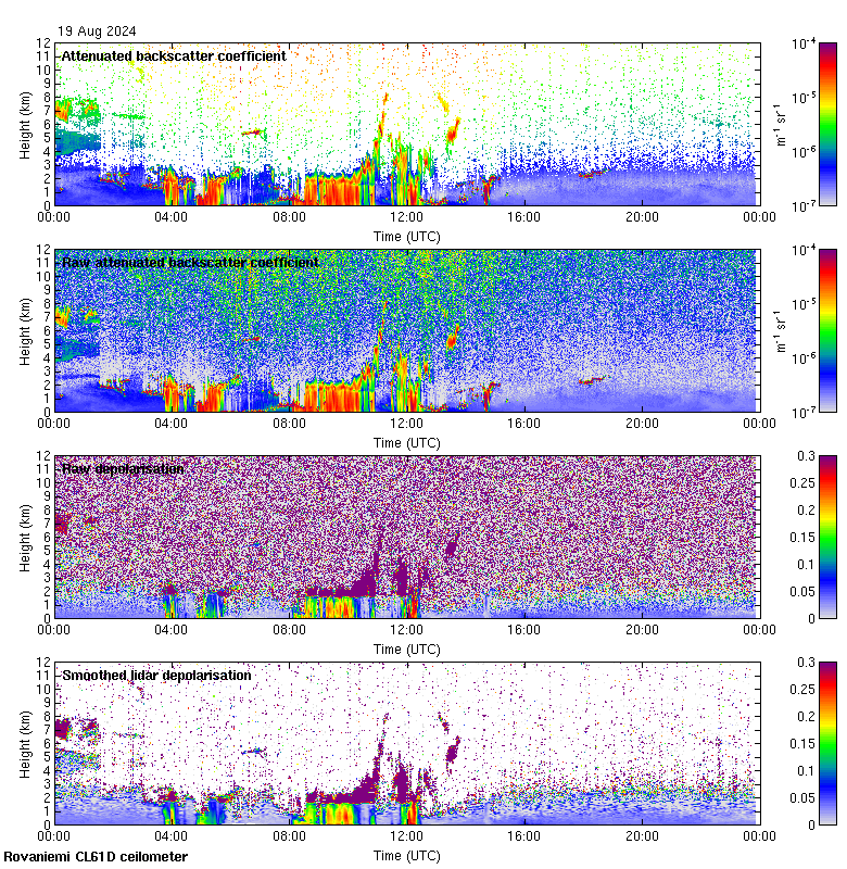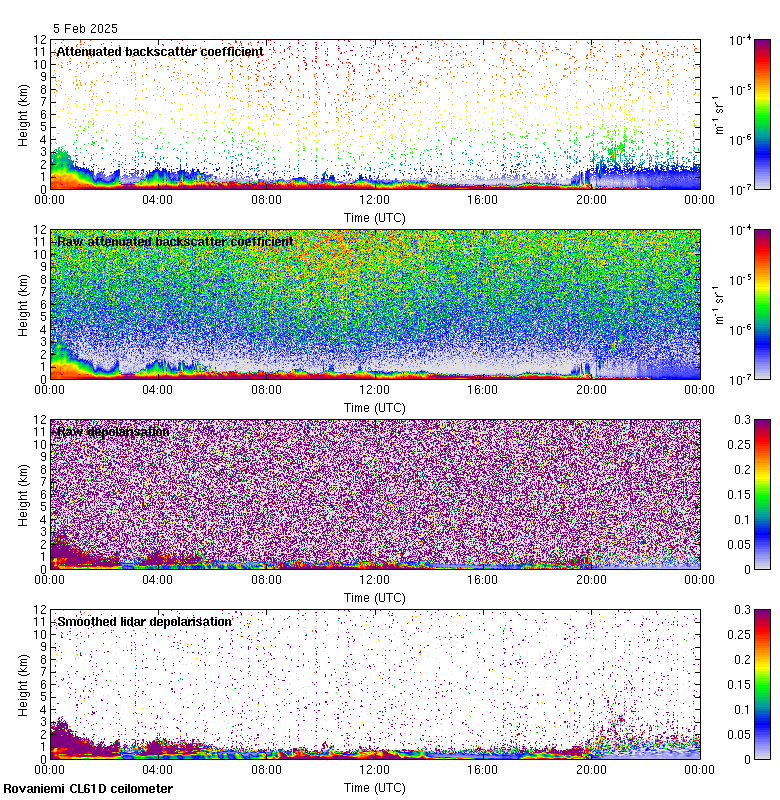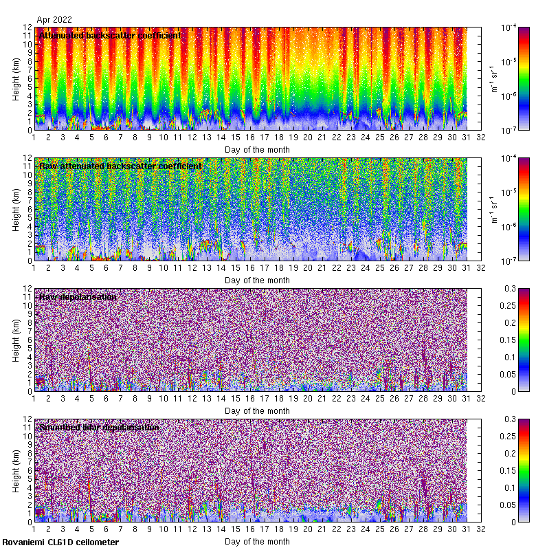 This page contains links to the daily Rovaniemi Vaisala CL61D ceilometer images created at Rovaniemi.