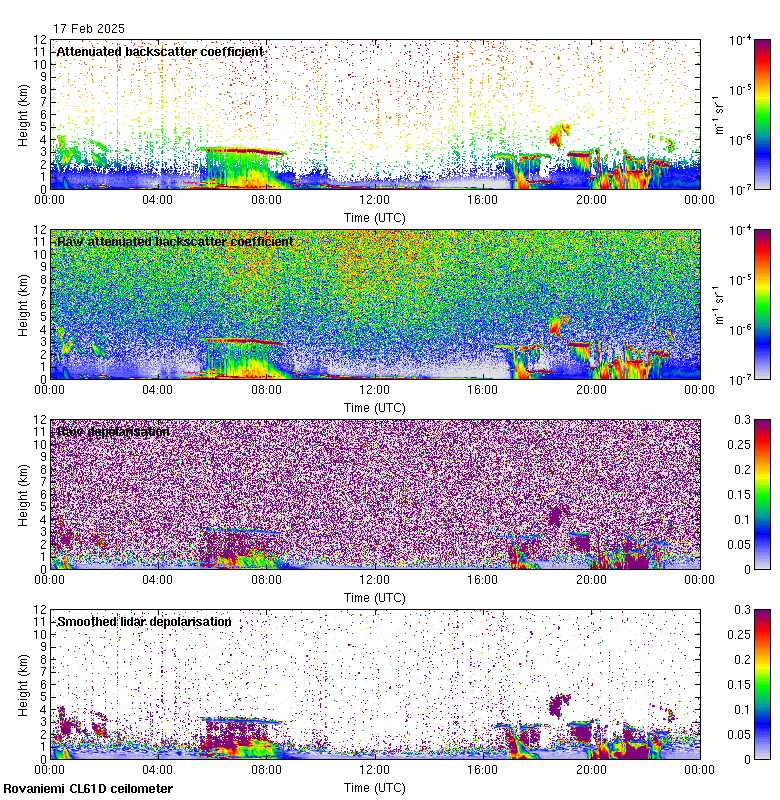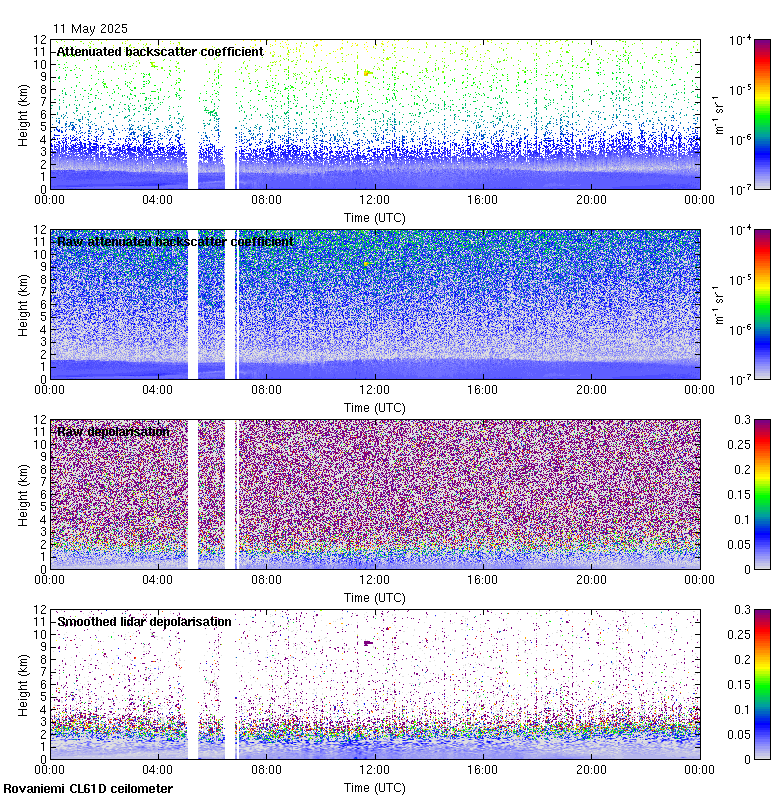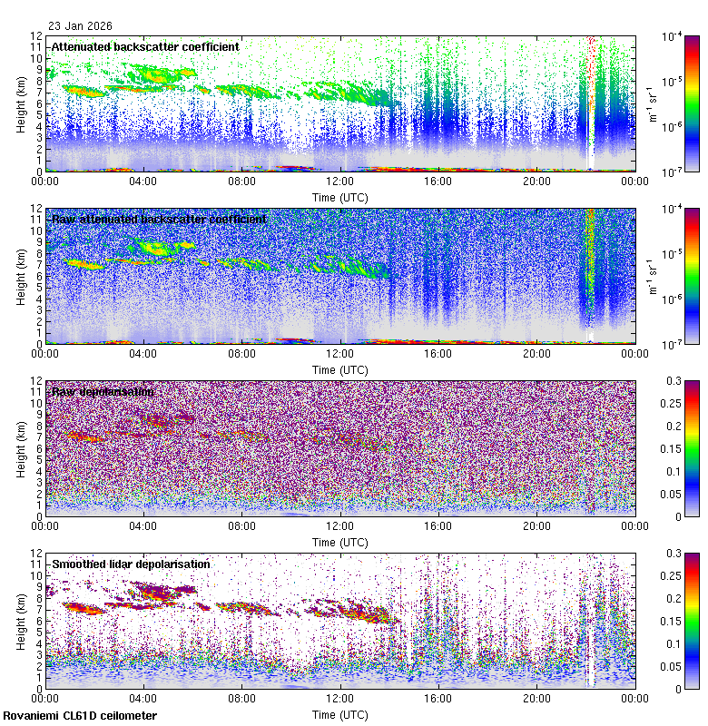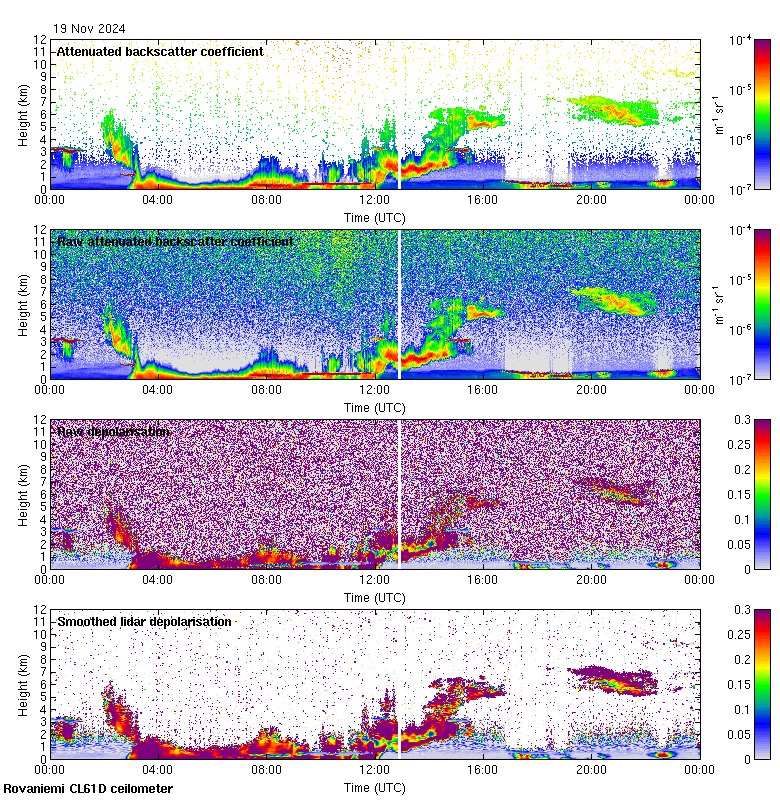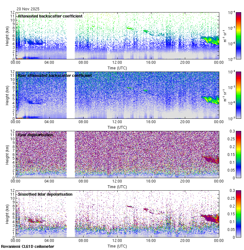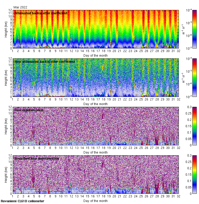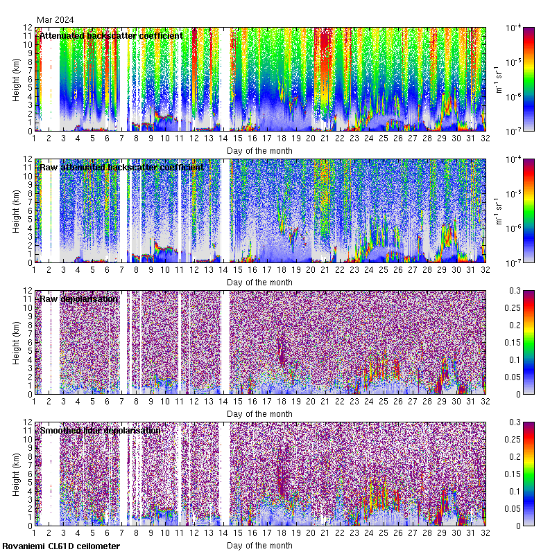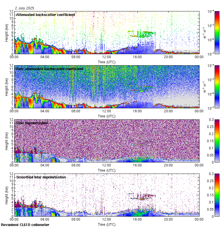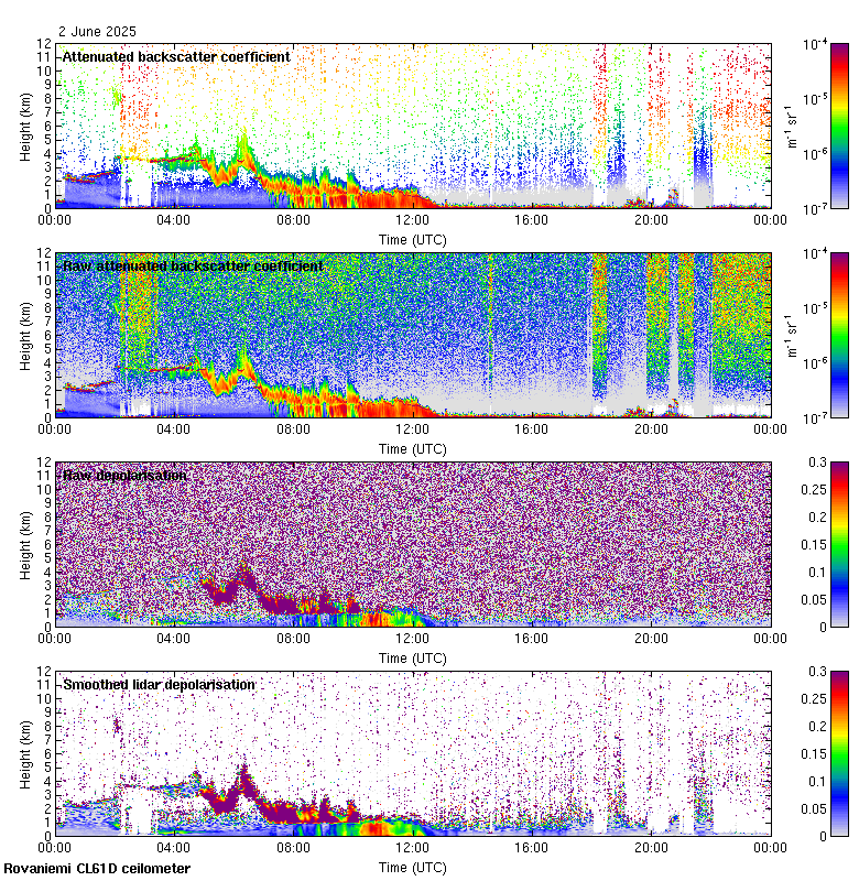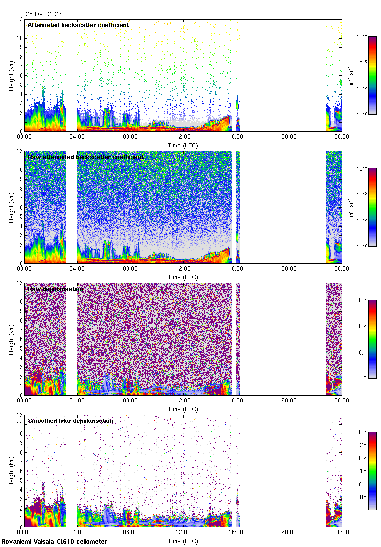 This page contains links to the daily Rovaniemi Vaisala CL61D ceilometer images created at Rovaniemi.
