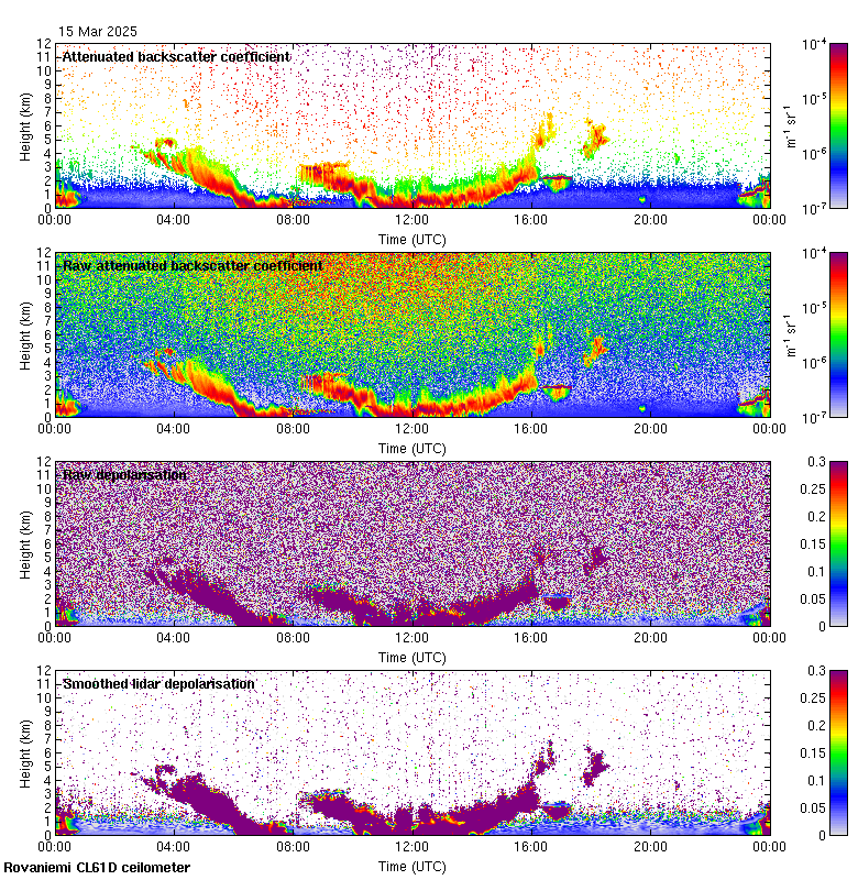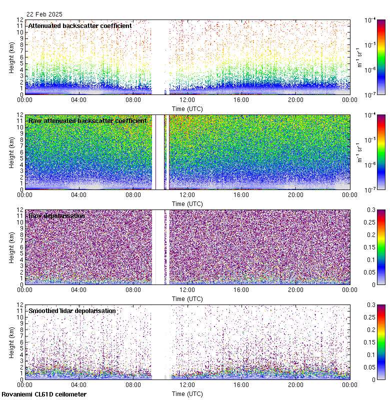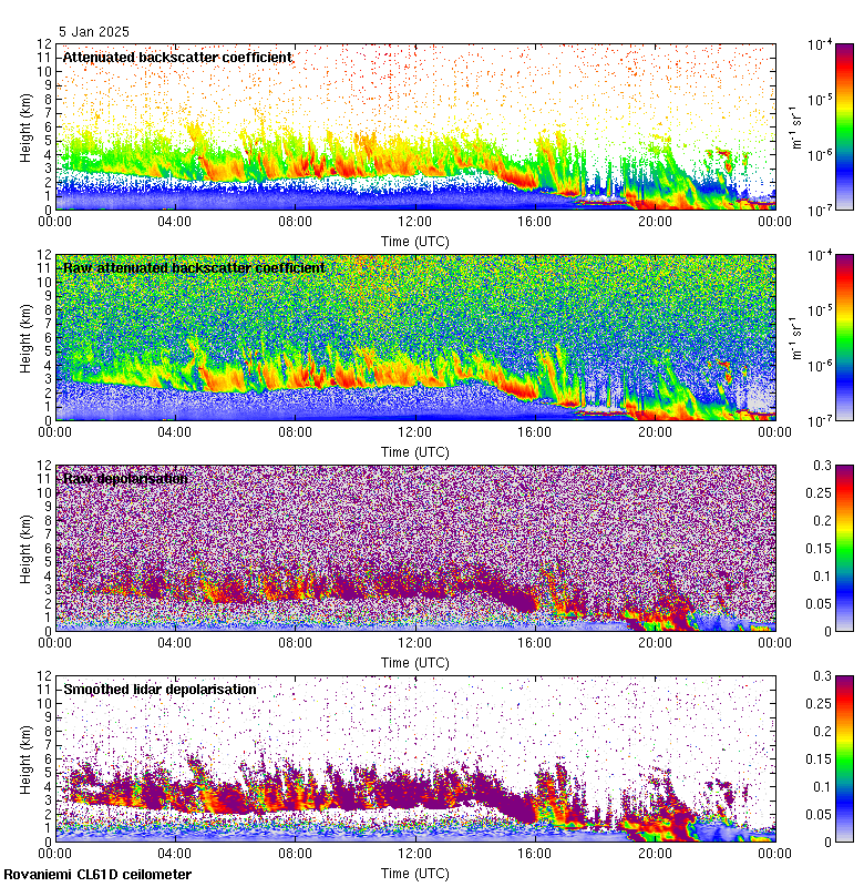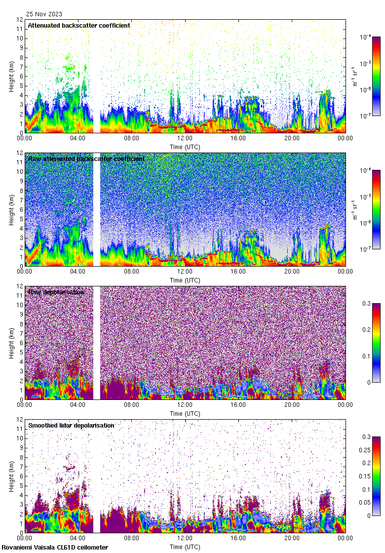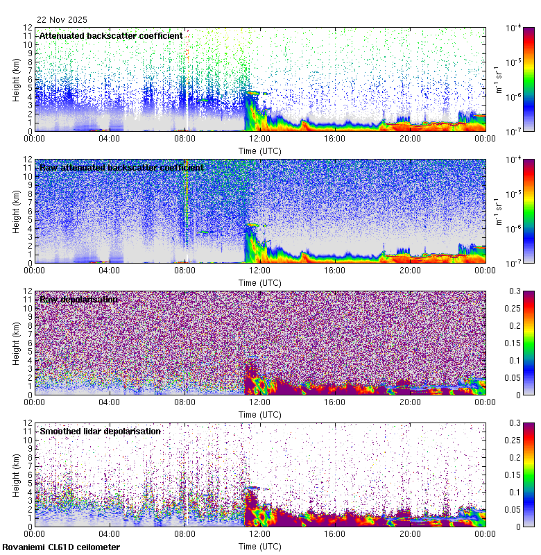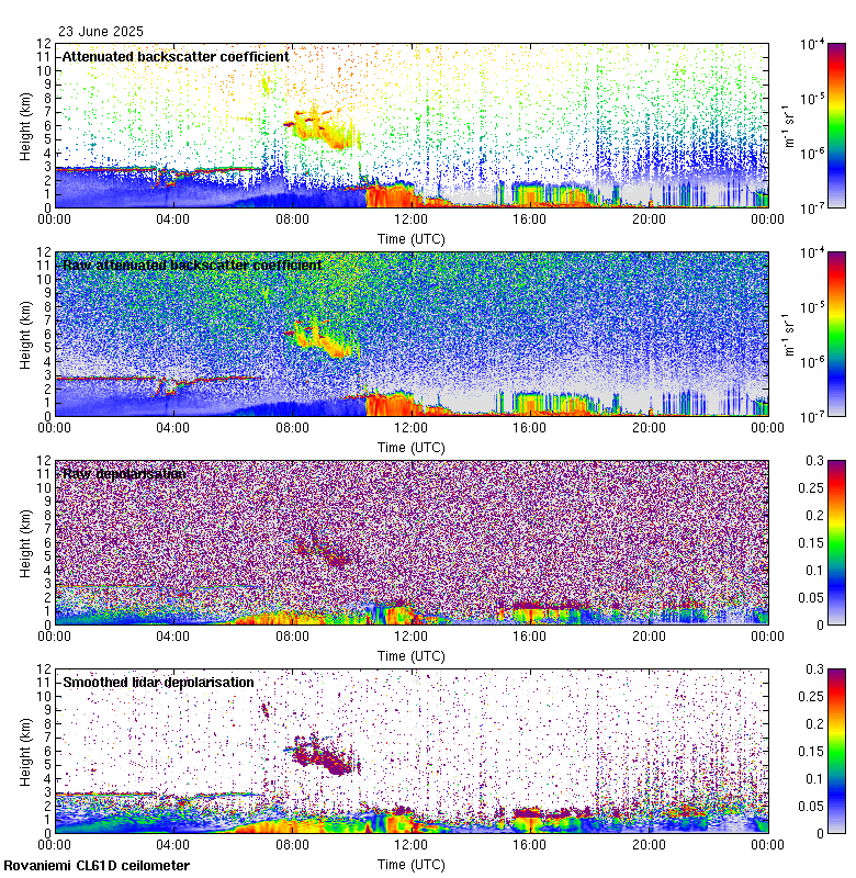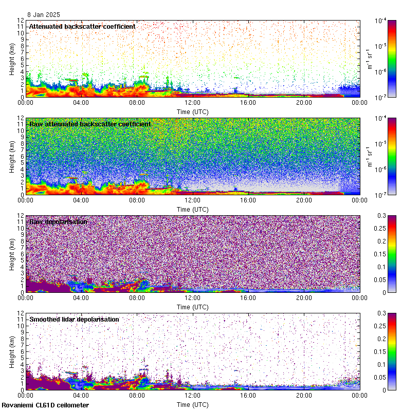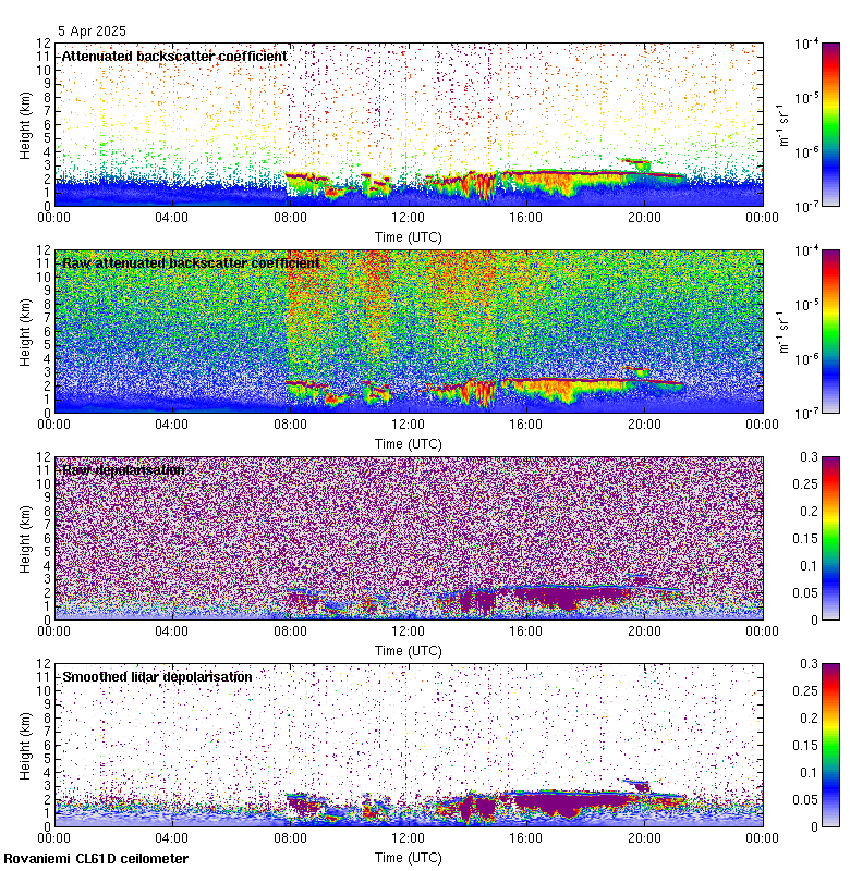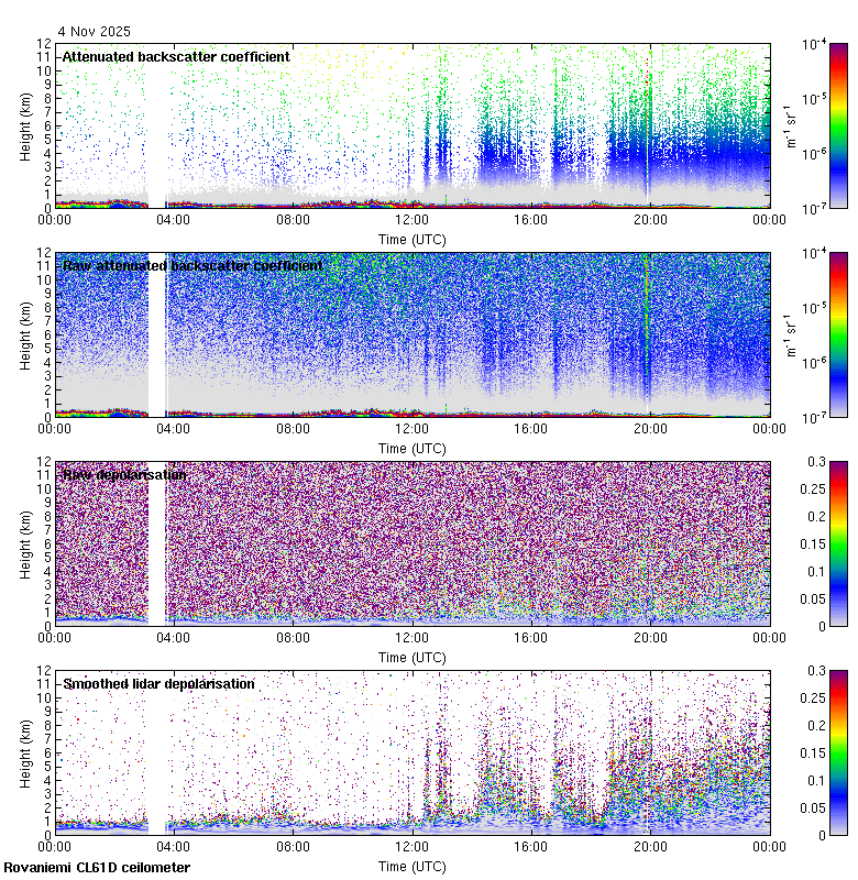 This page contains links to the daily Rovaniemi Vaisala CL61D ceilometer images created at Rovaniemi.