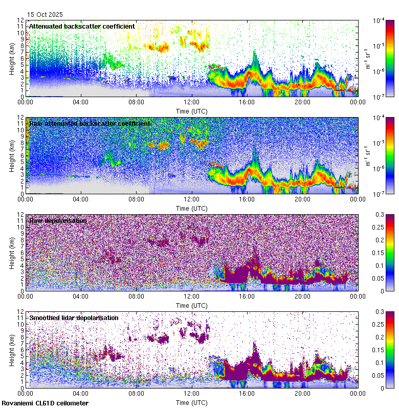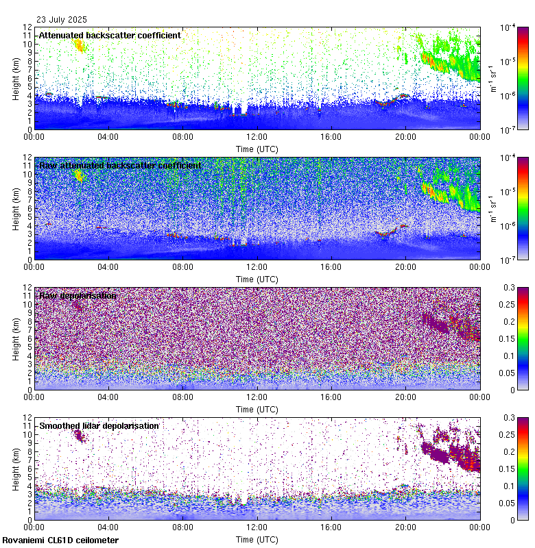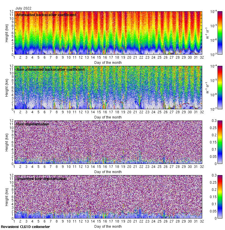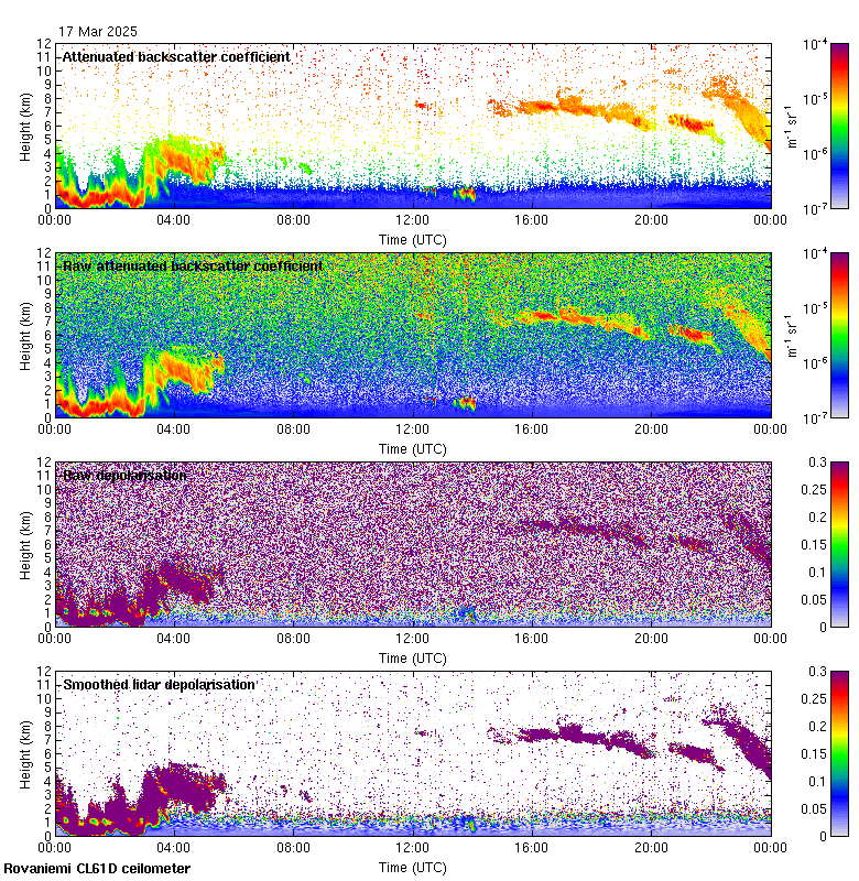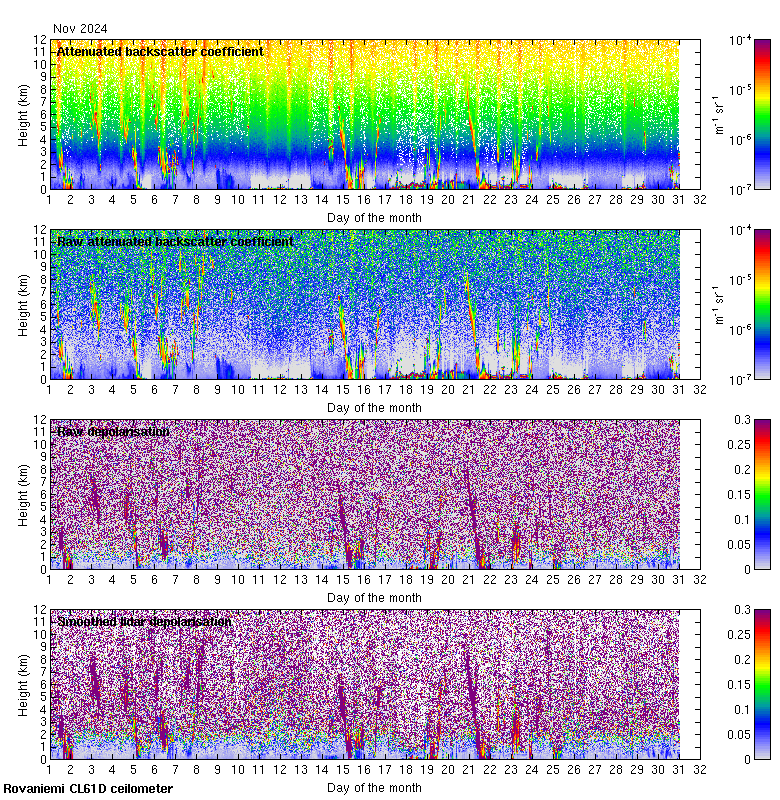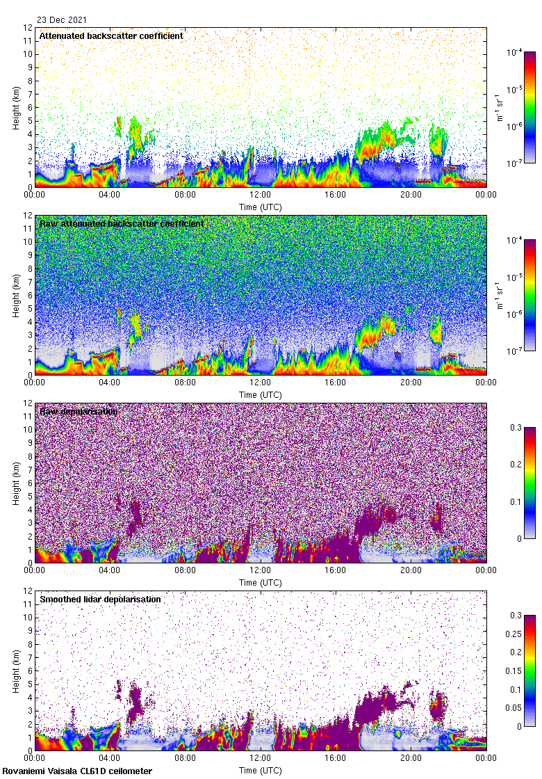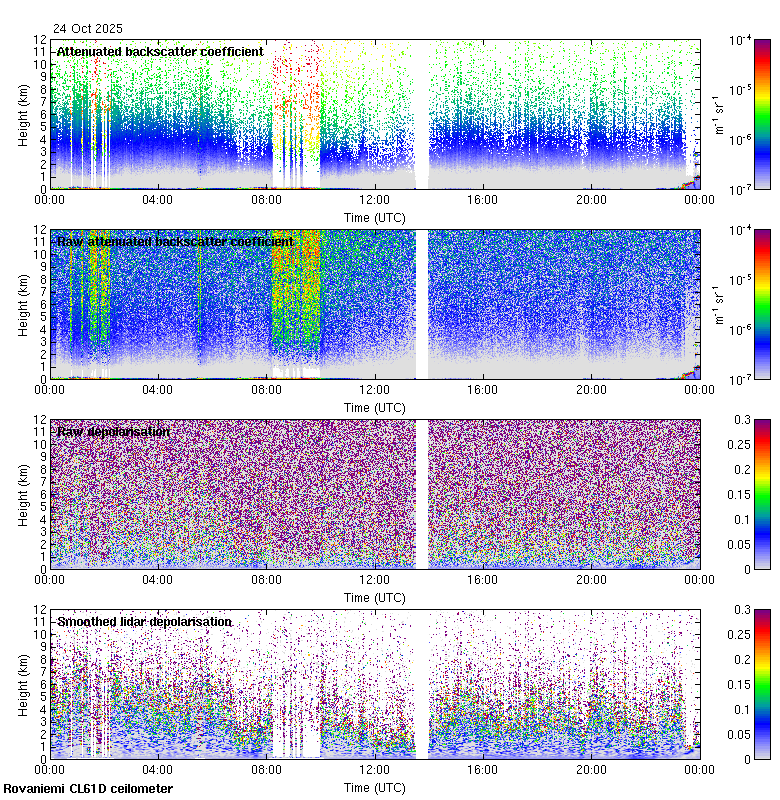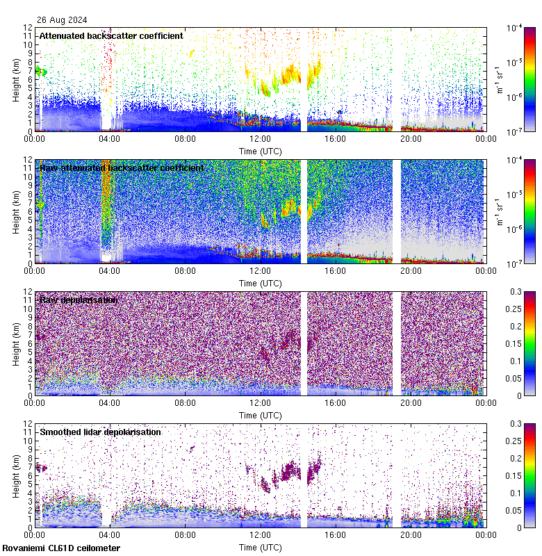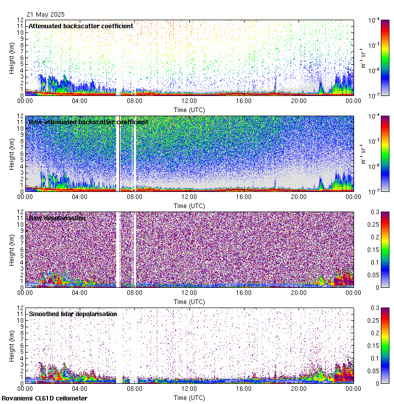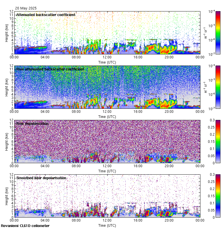 This page contains links to the daily Rovaniemi Vaisala CL61D ceilometer images created at Rovaniemi.