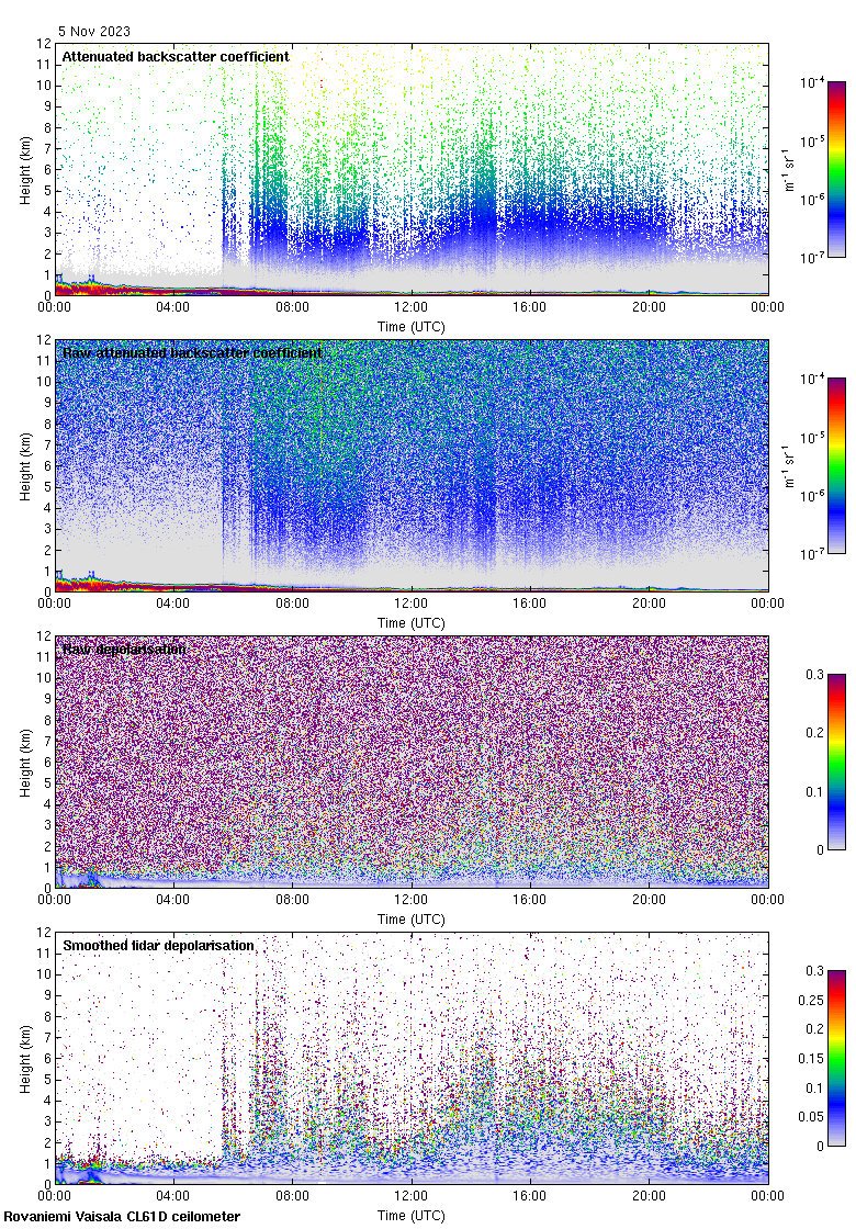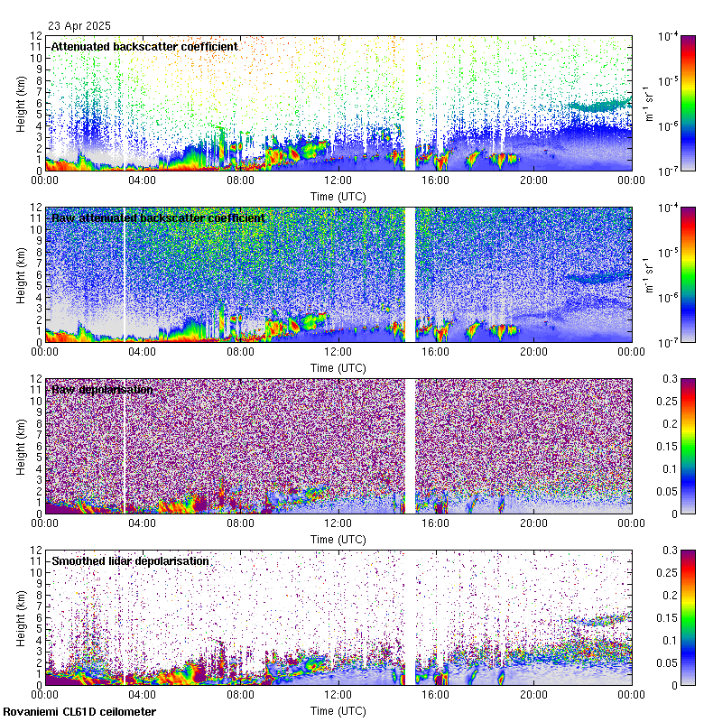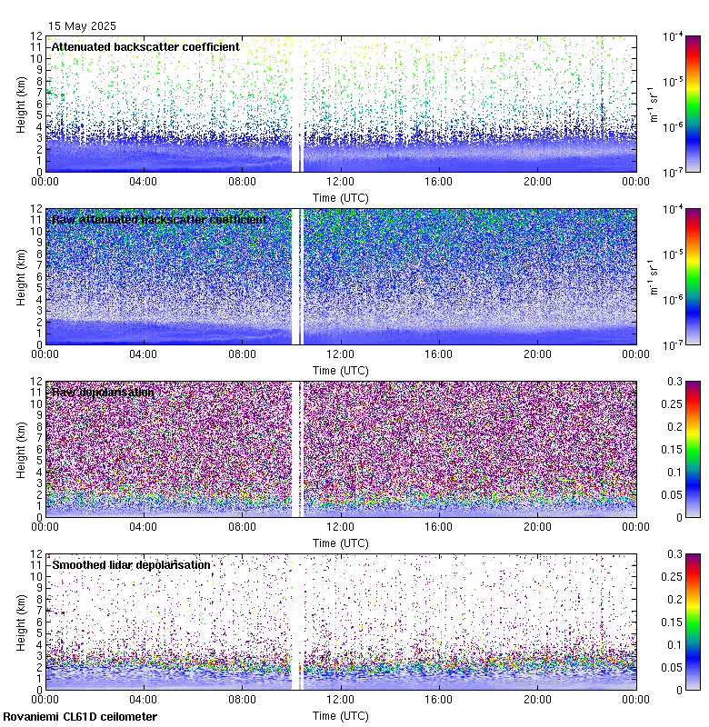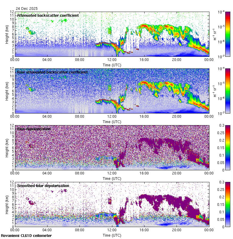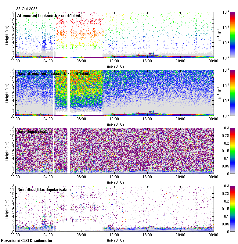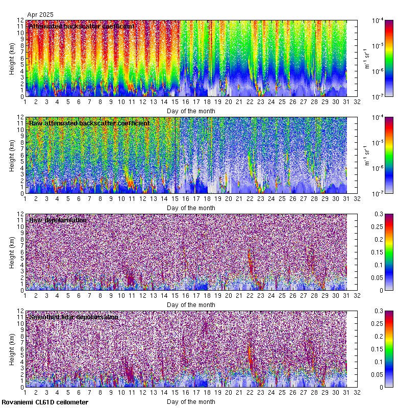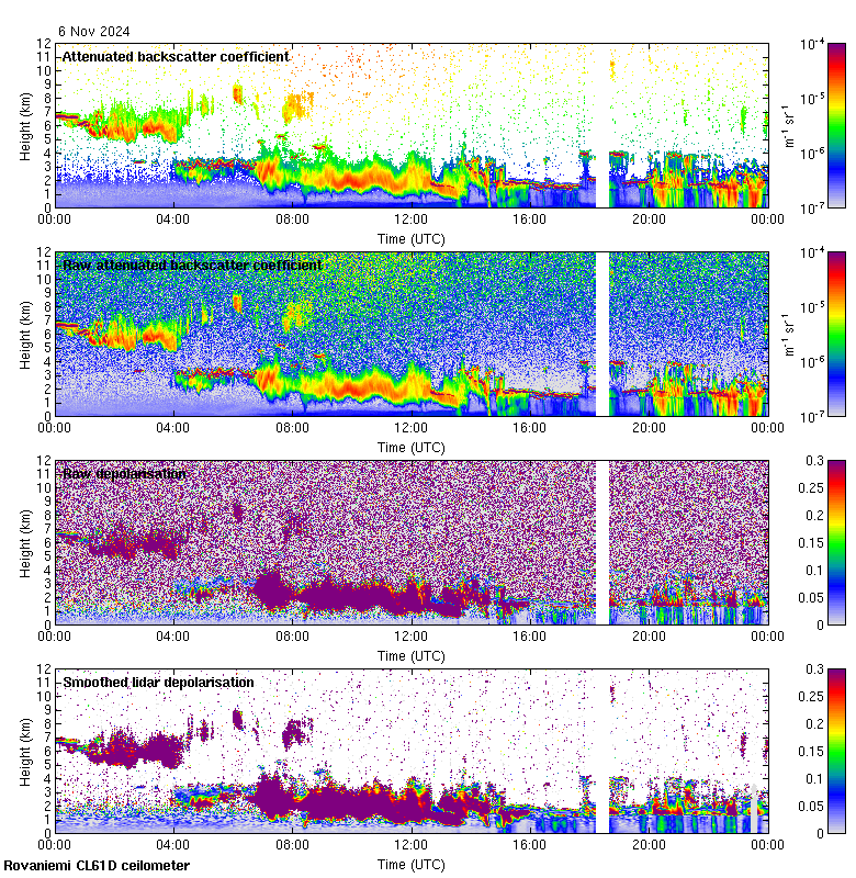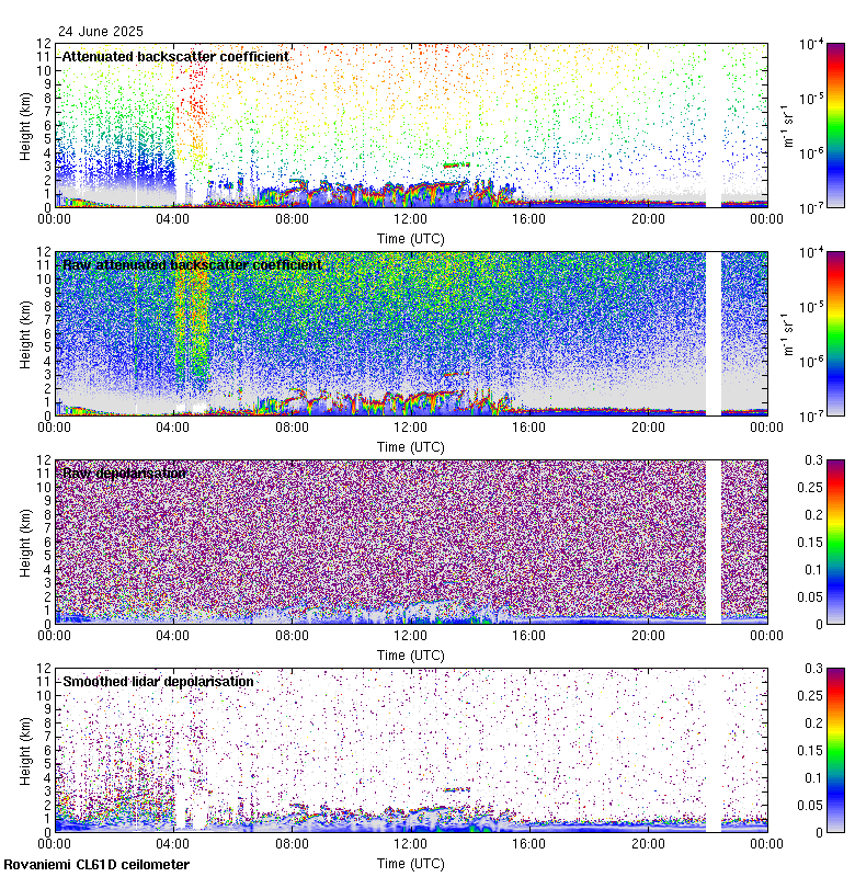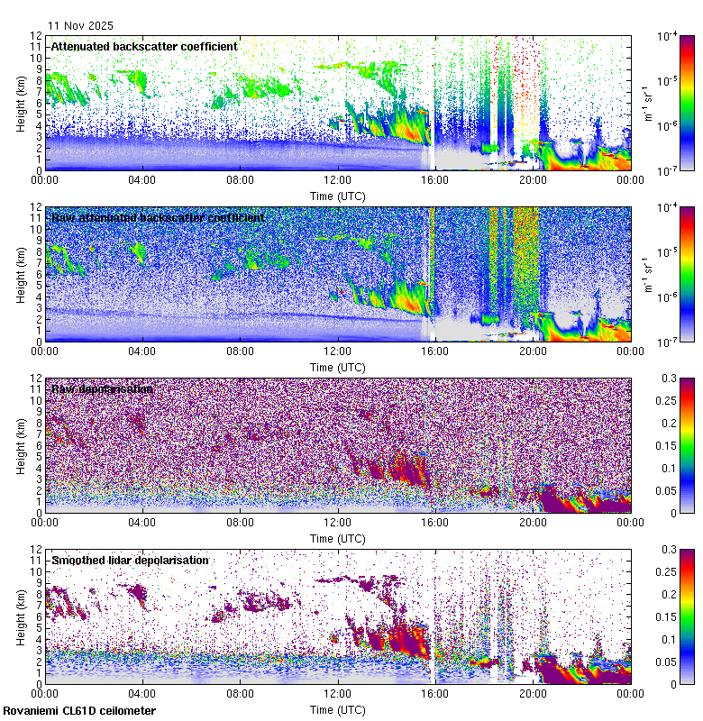 This page contains links to the daily Rovaniemi Vaisala CL61D ceilometer images created at Rovaniemi.