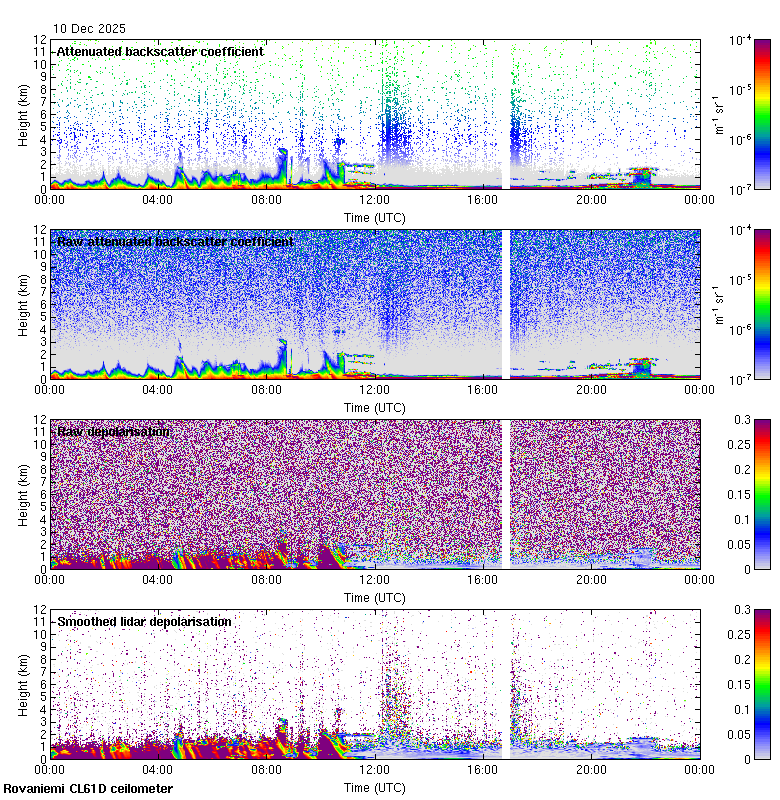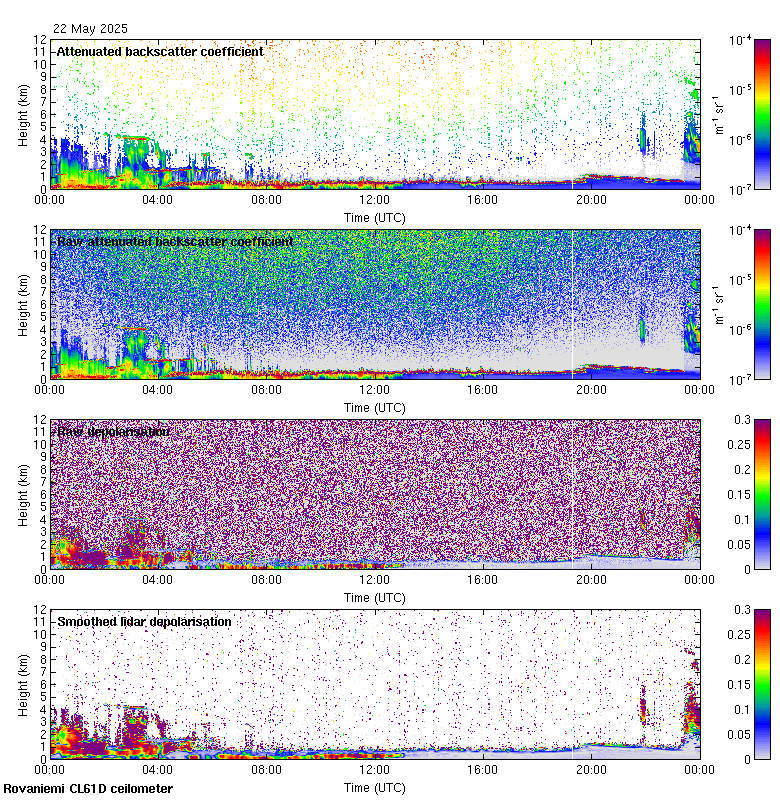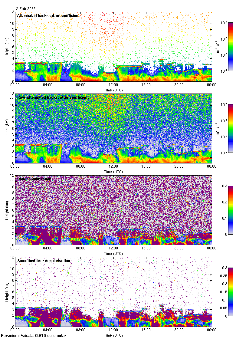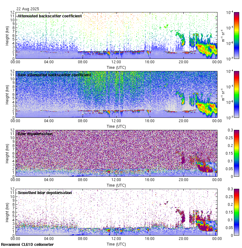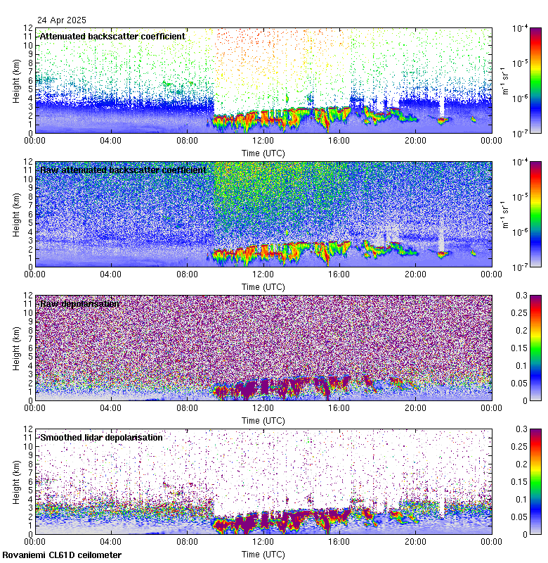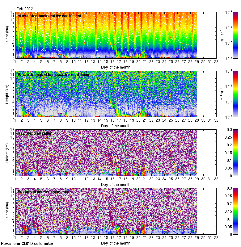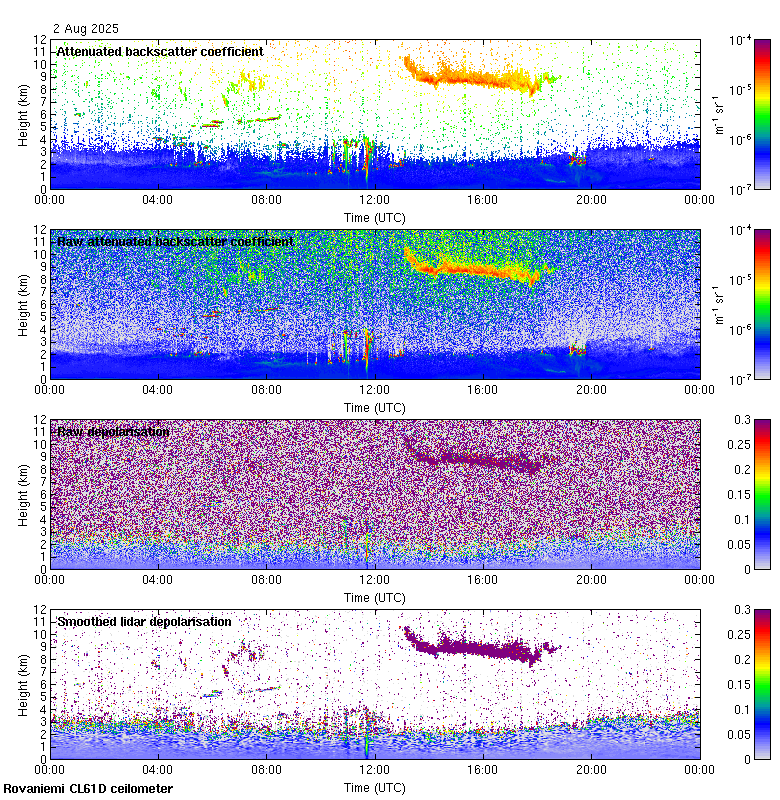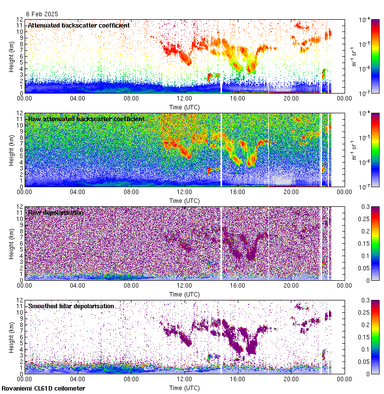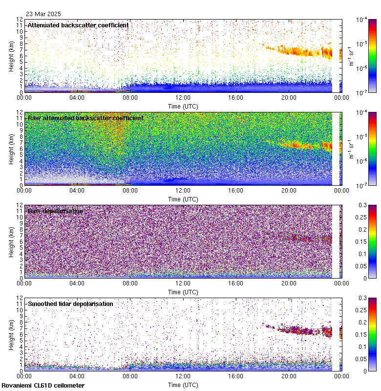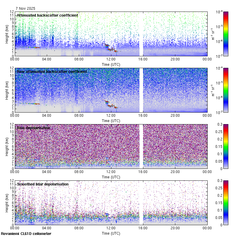 This page contains links to the daily Rovaniemi Vaisala CL61D ceilometer images created at Rovaniemi.