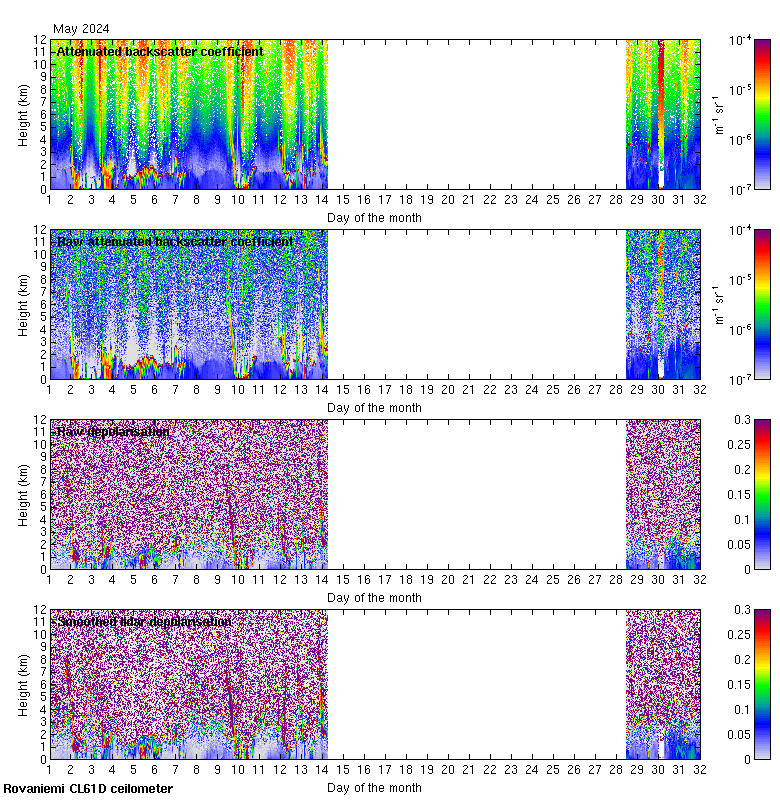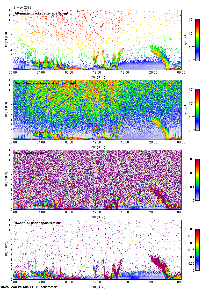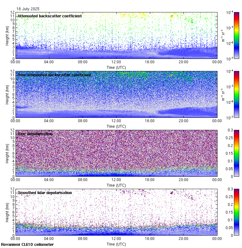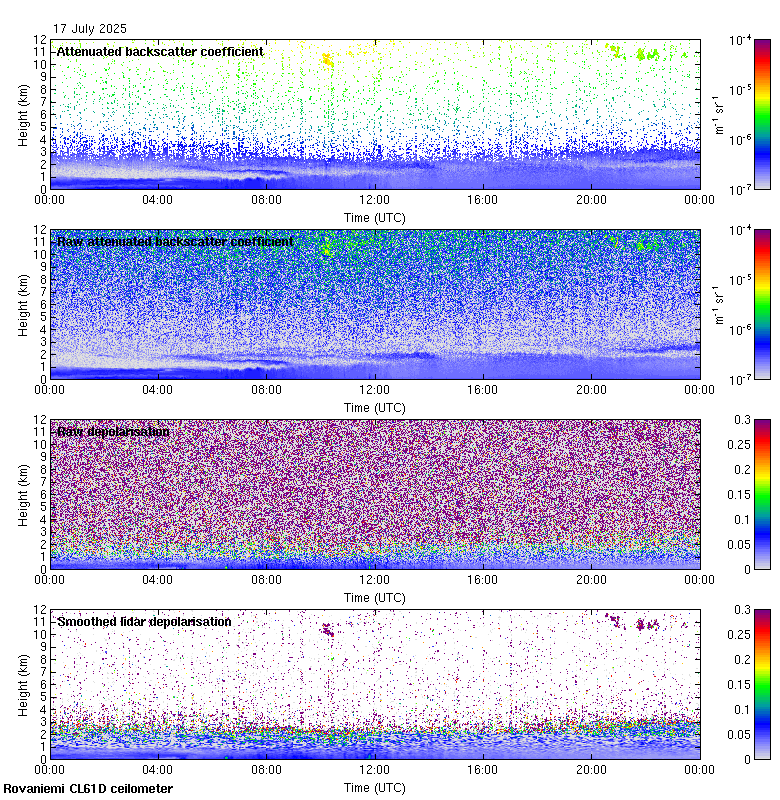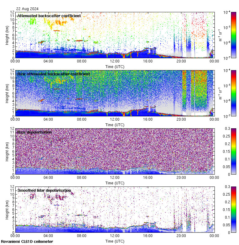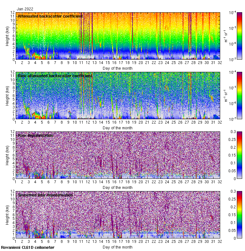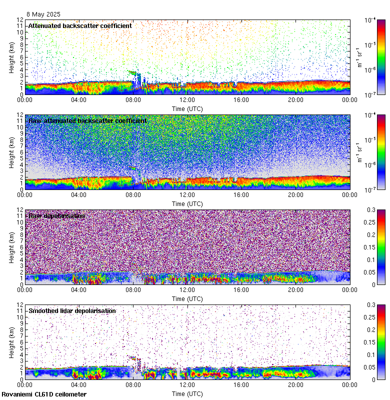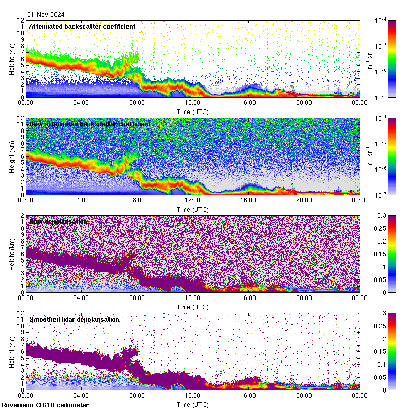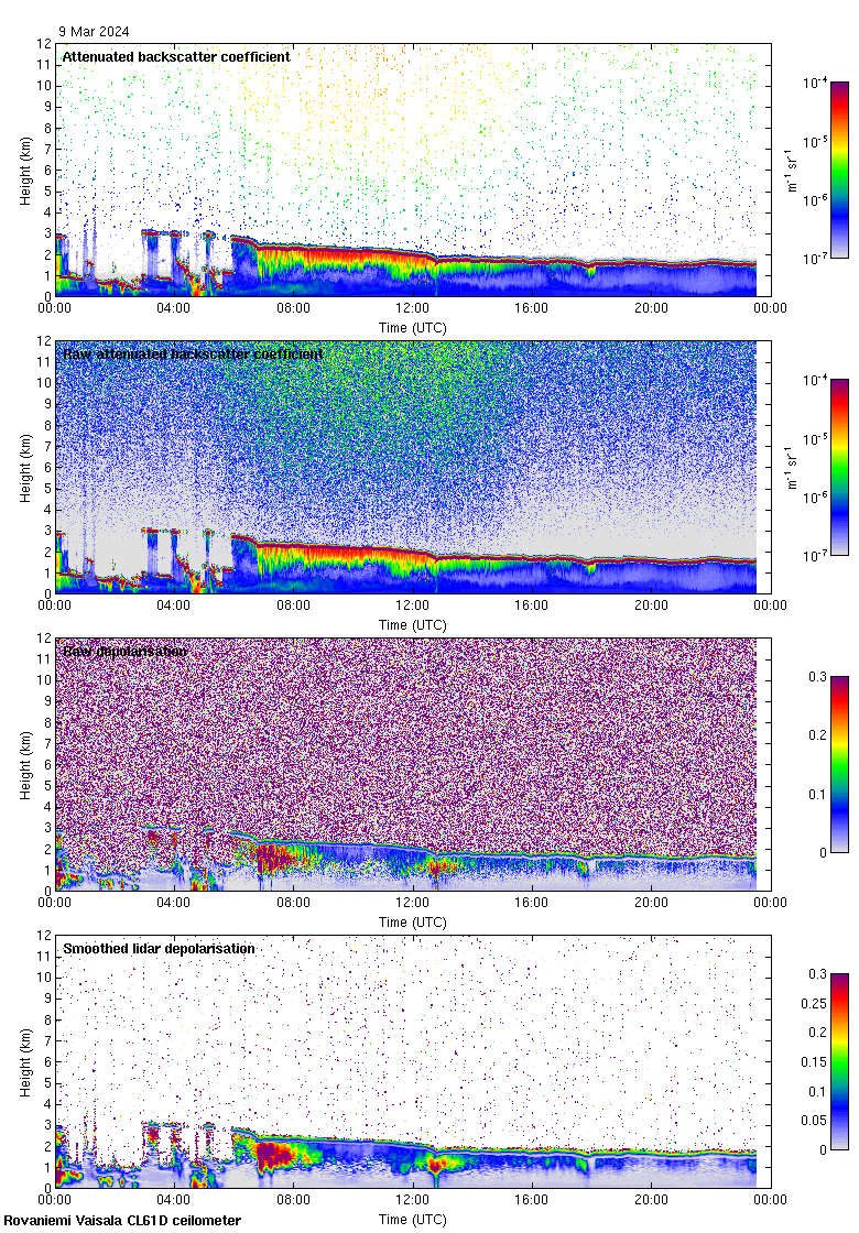 This page contains links to the daily Rovaniemi Vaisala CL61D ceilometer images created at Rovaniemi.