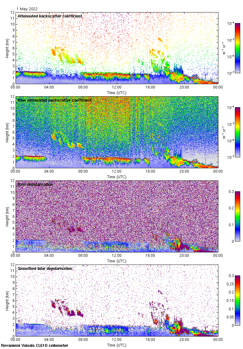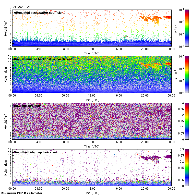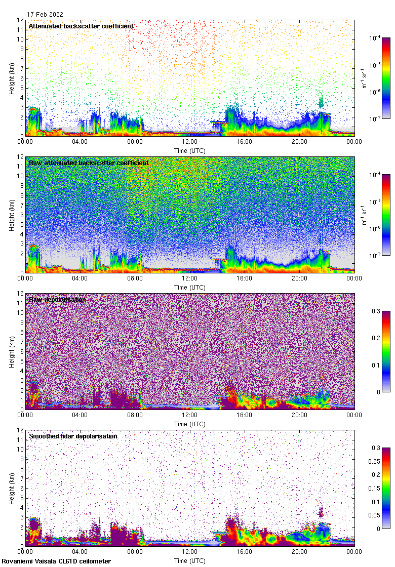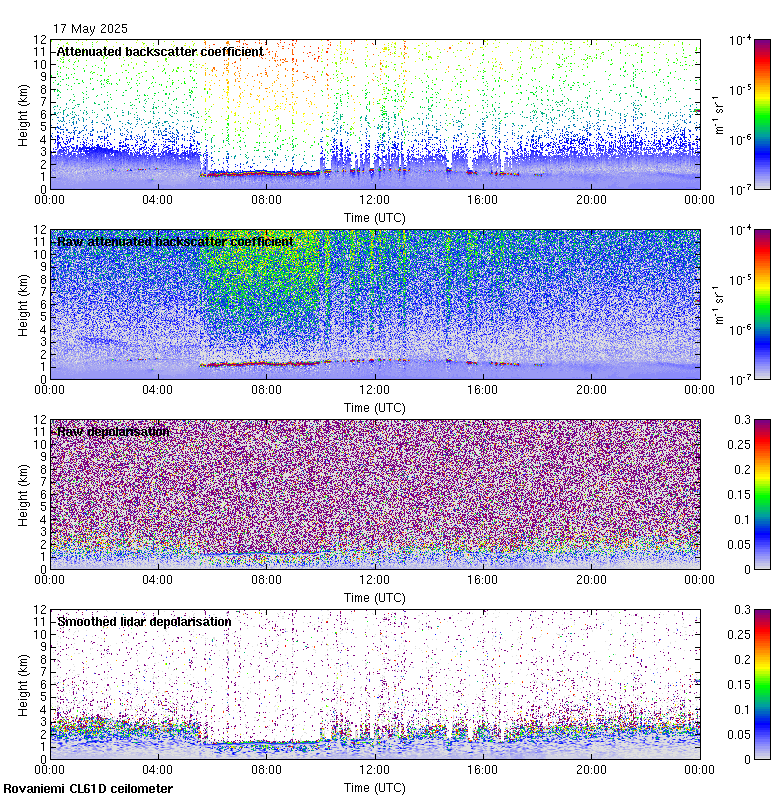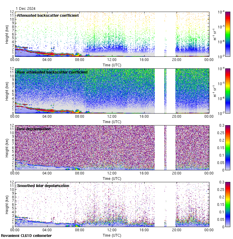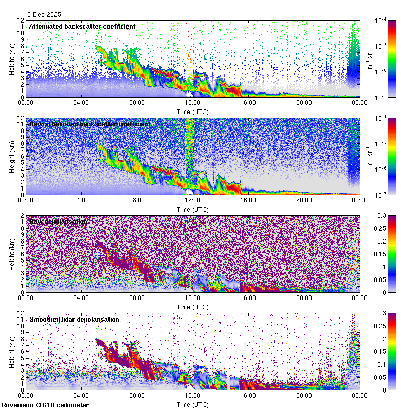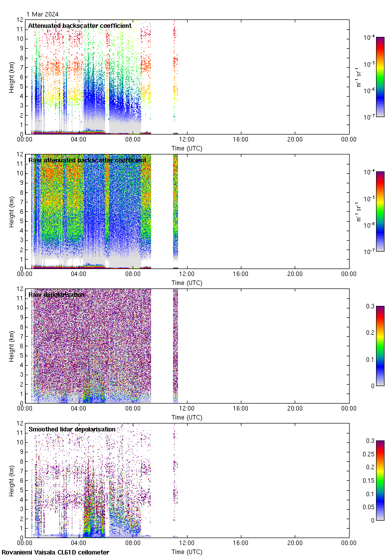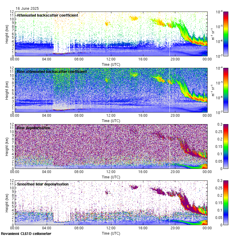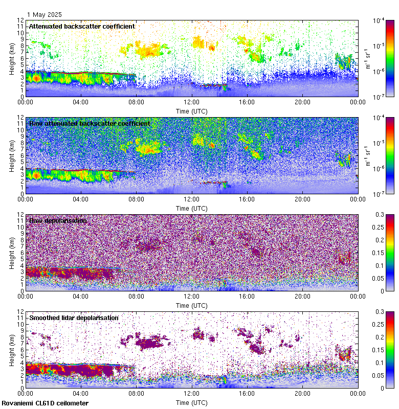 This page contains links to the daily Rovaniemi Vaisala CL61D ceilometer images created at Rovaniemi.