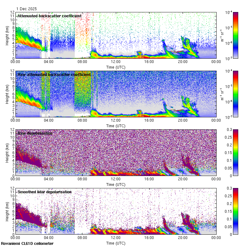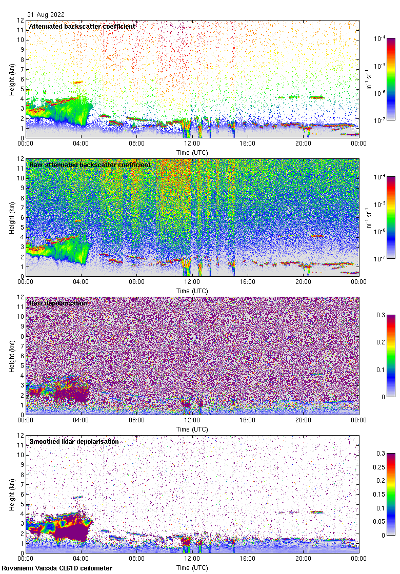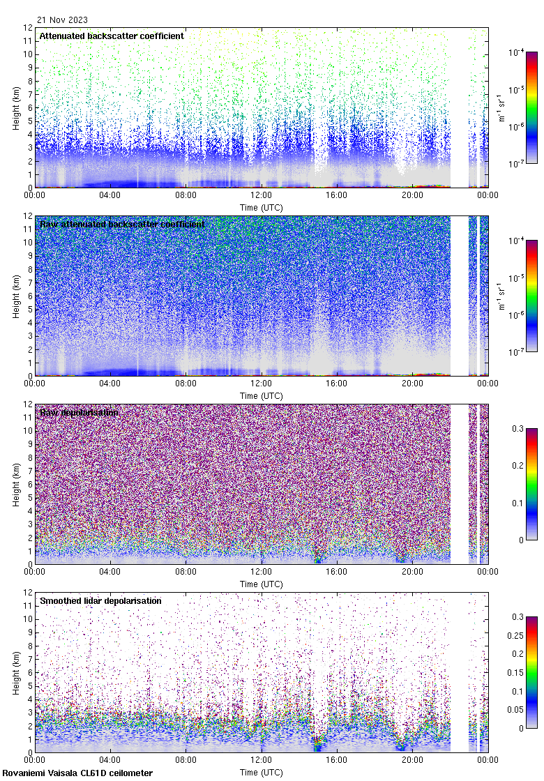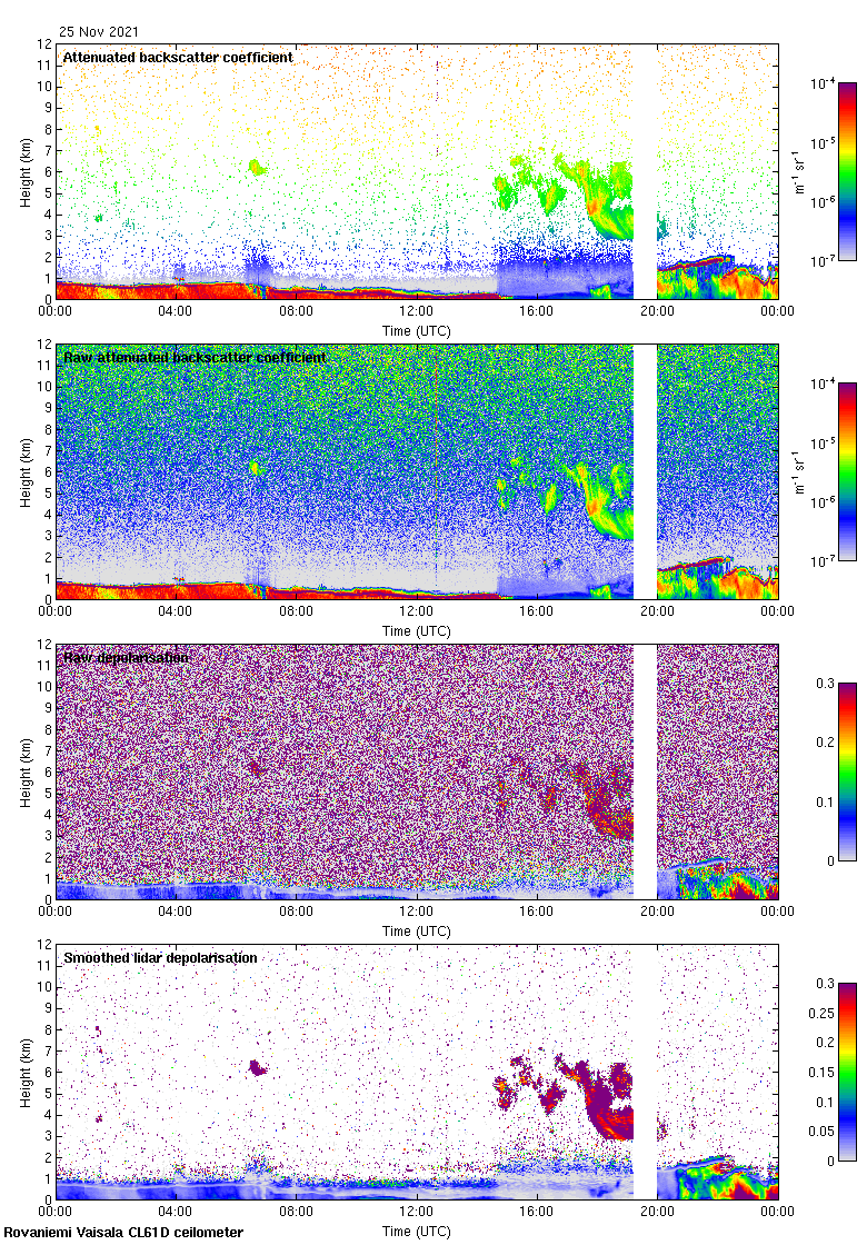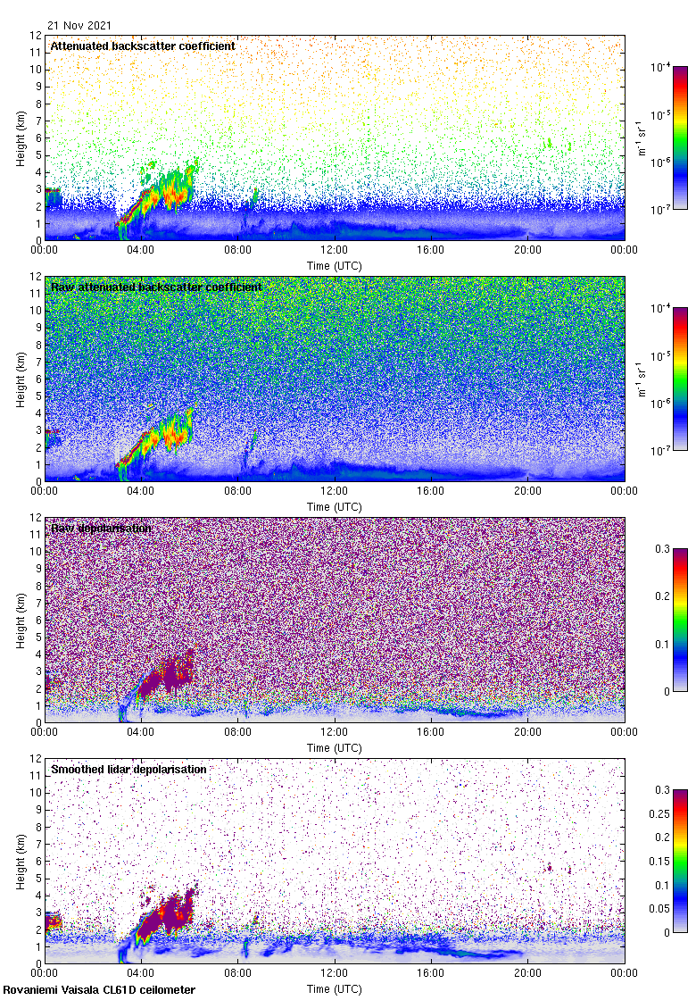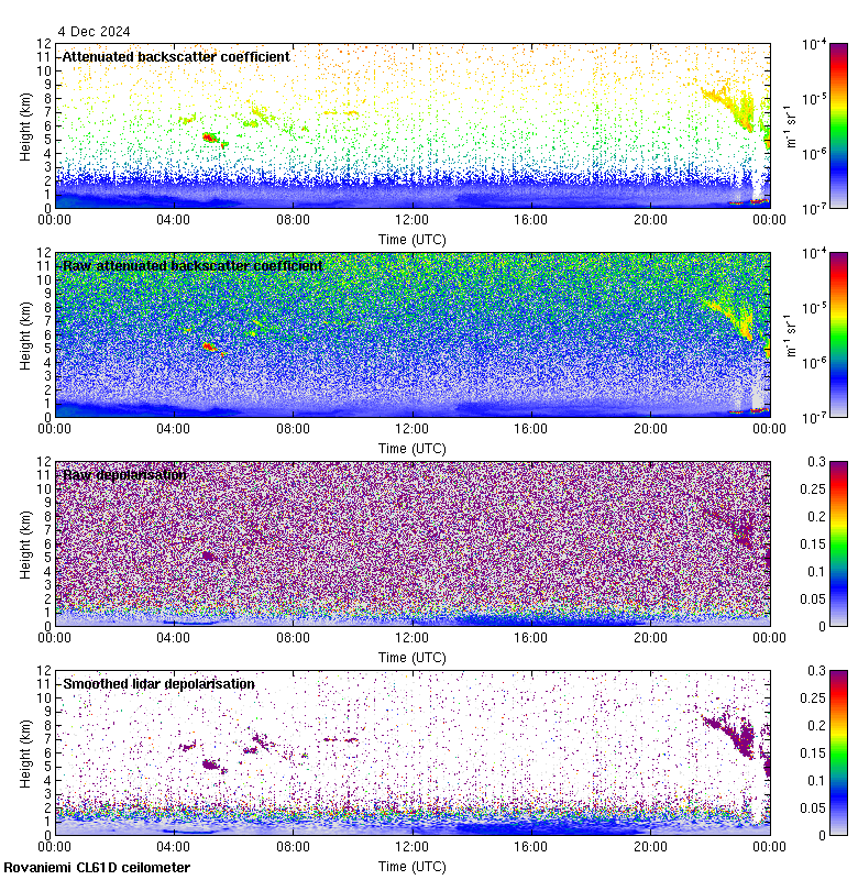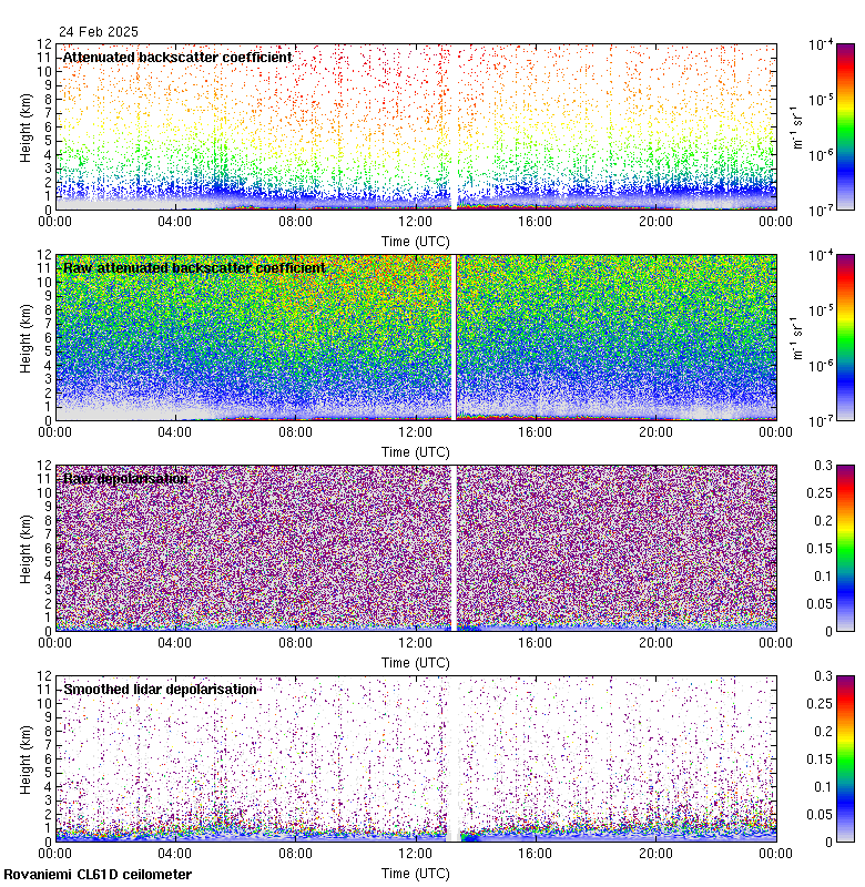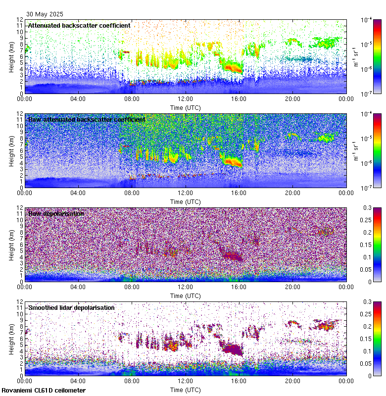 This page contains links to the daily Rovaniemi Vaisala CL61D ceilometer images created at Rovaniemi.