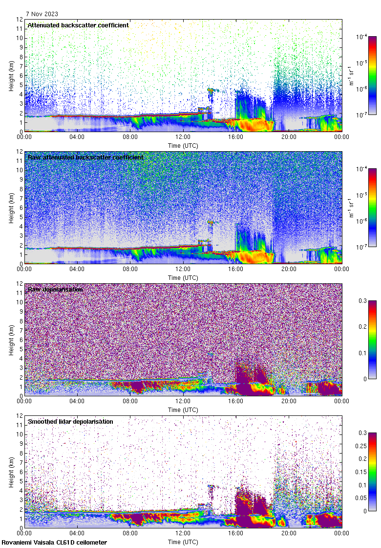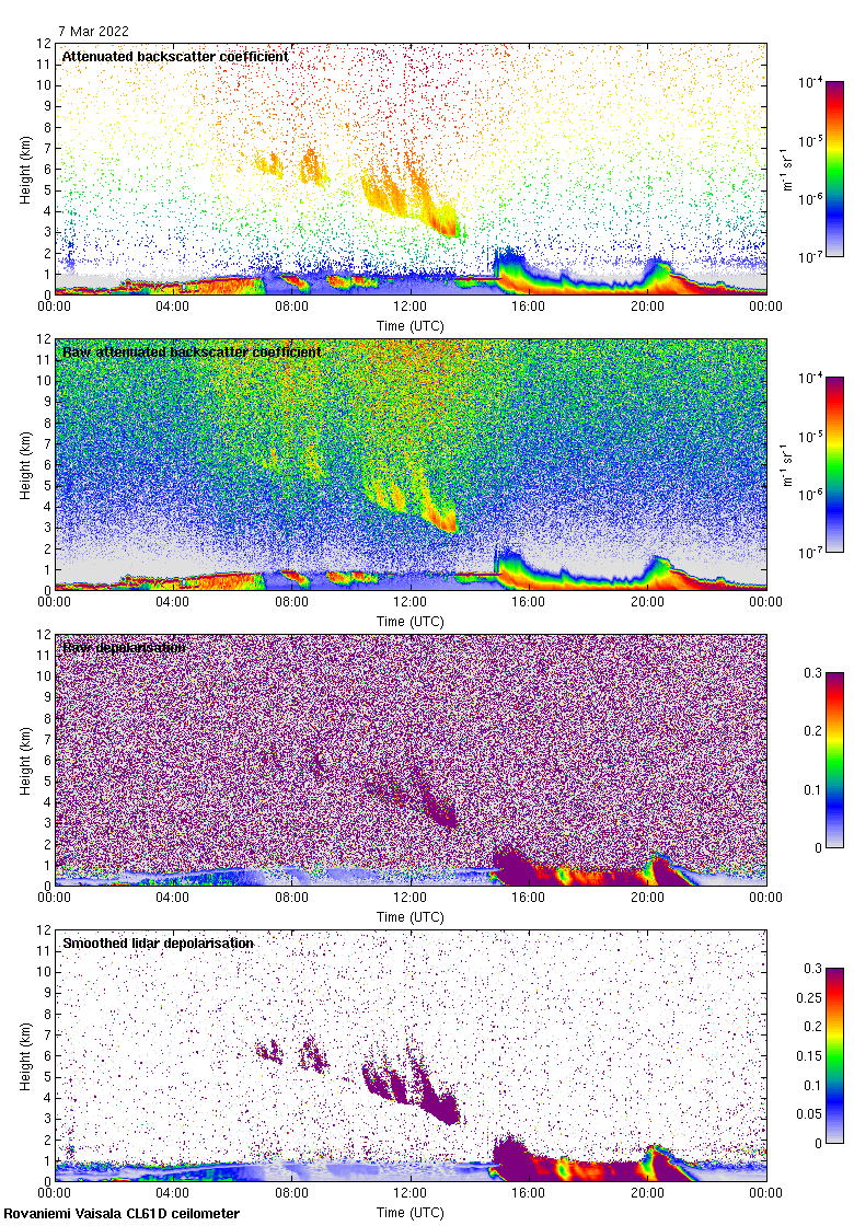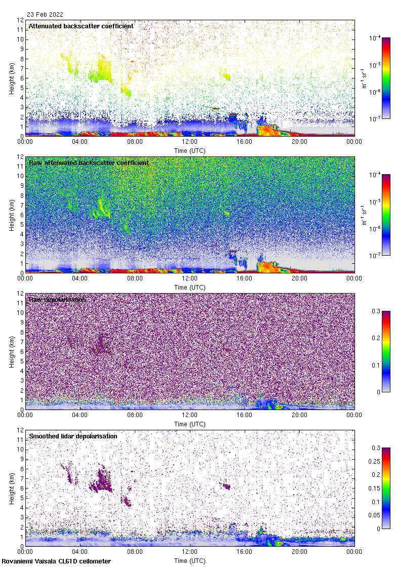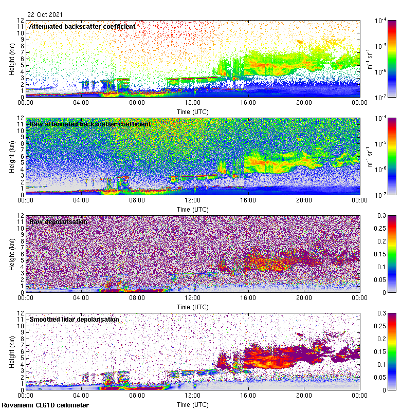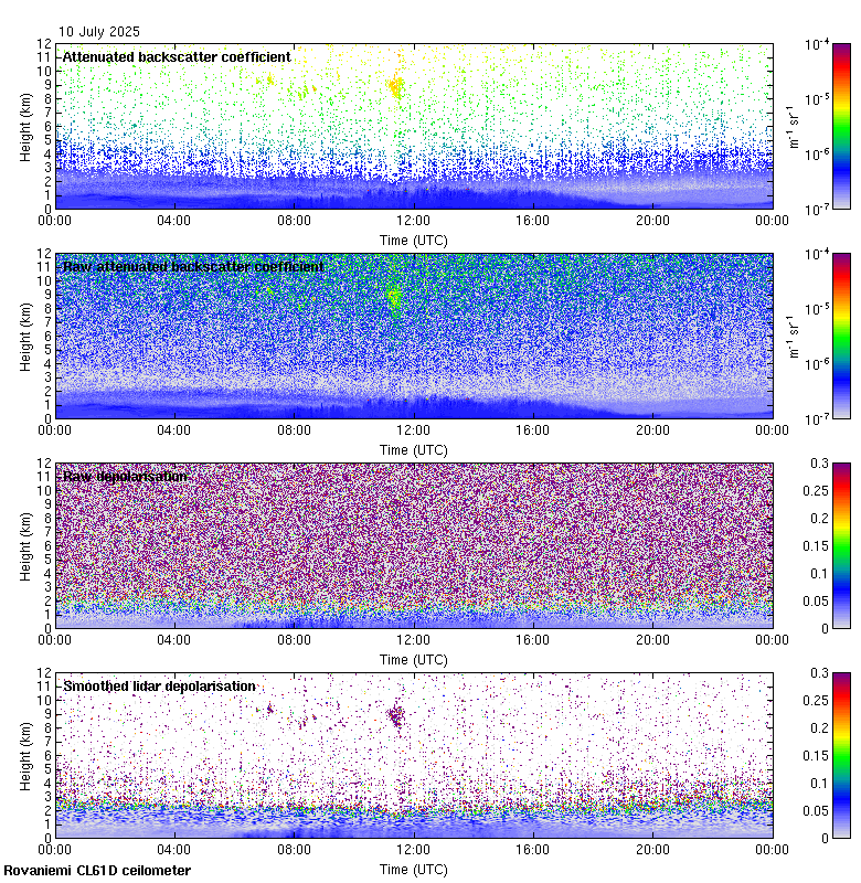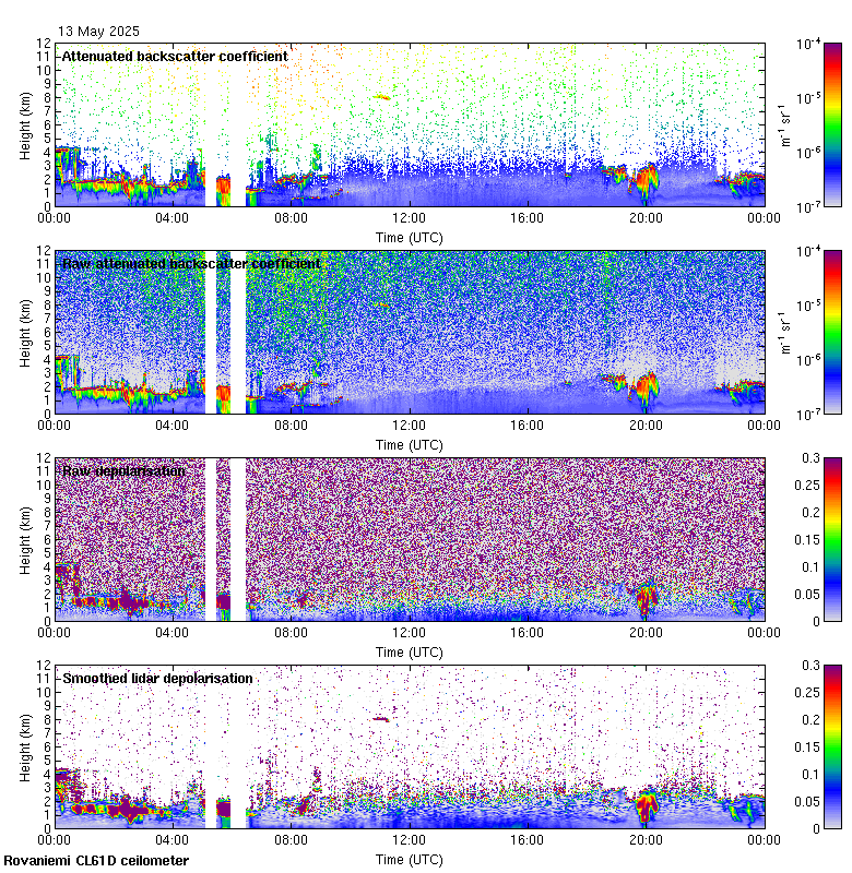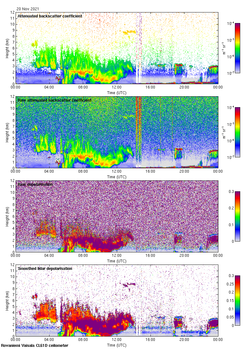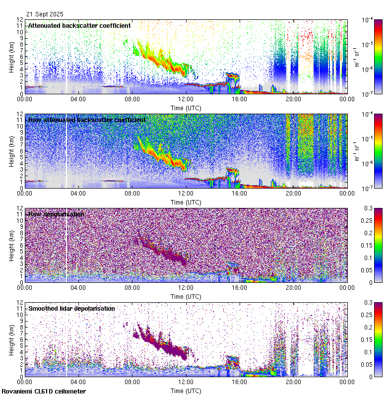 This page contains links to the daily Rovaniemi Vaisala CL61D ceilometer images created at Rovaniemi.