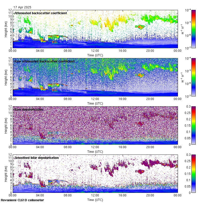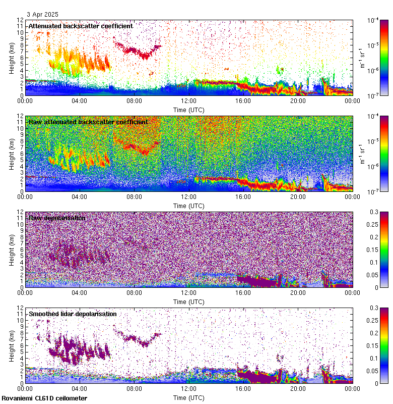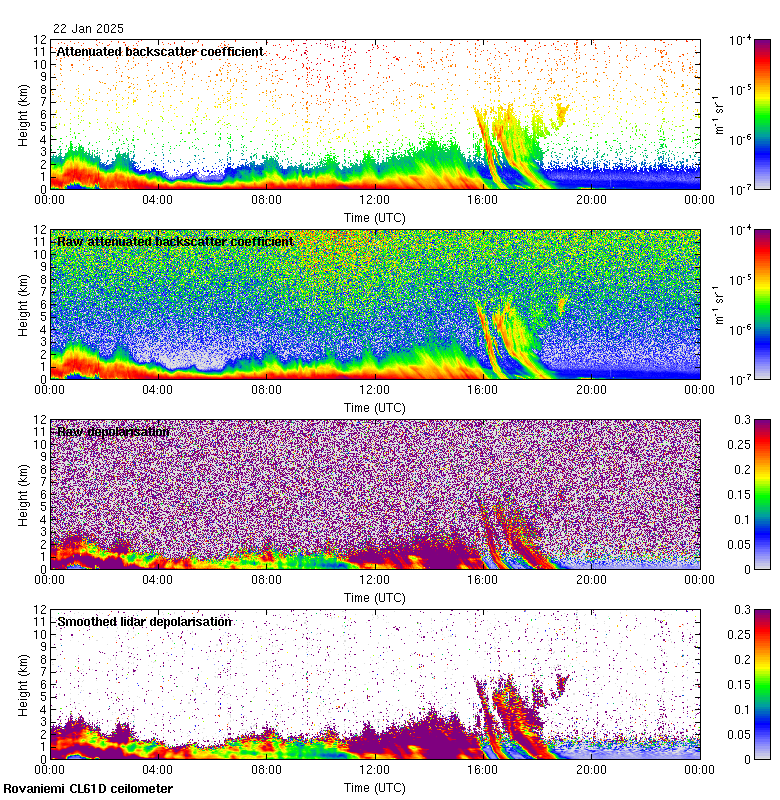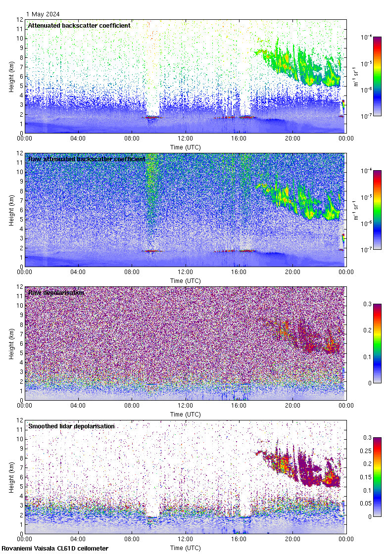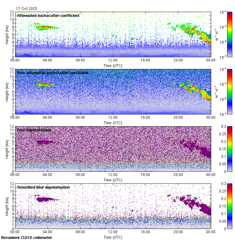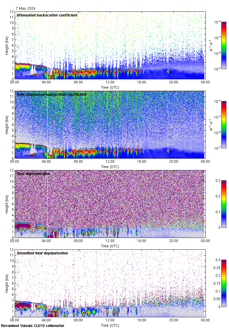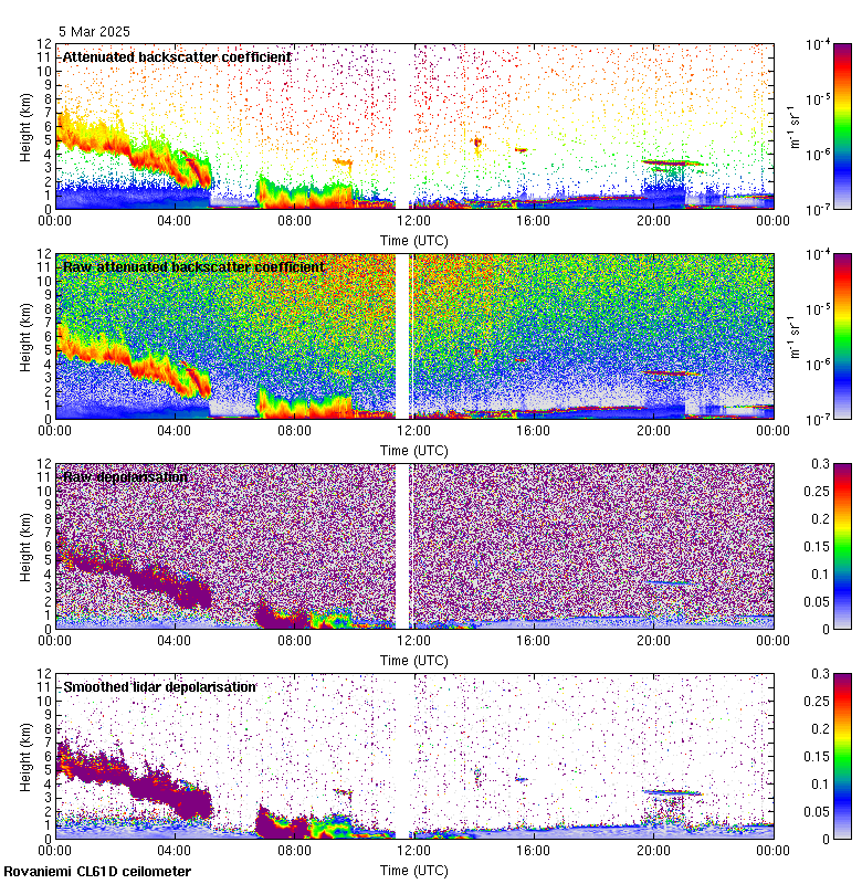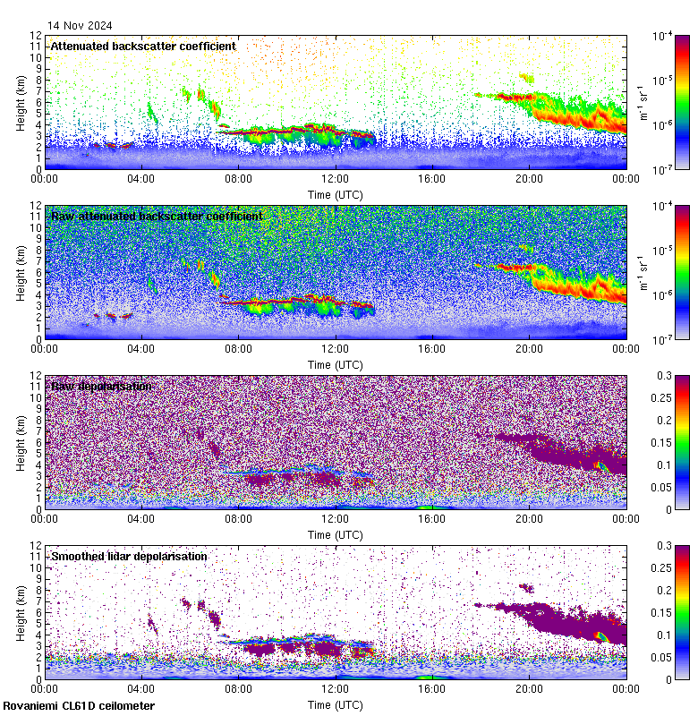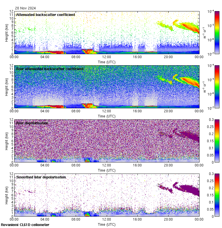 This page contains links to the daily Rovaniemi Vaisala CL61D ceilometer images created at Rovaniemi.