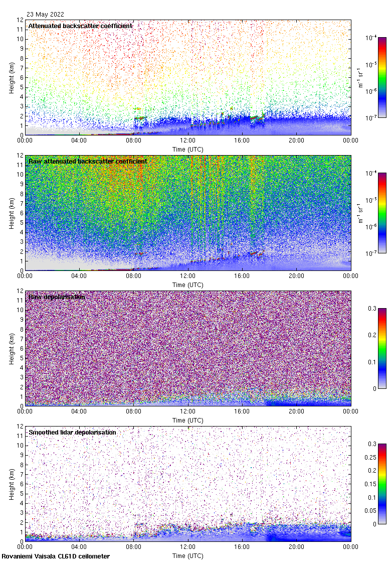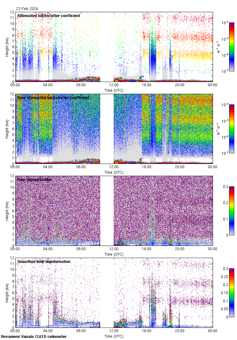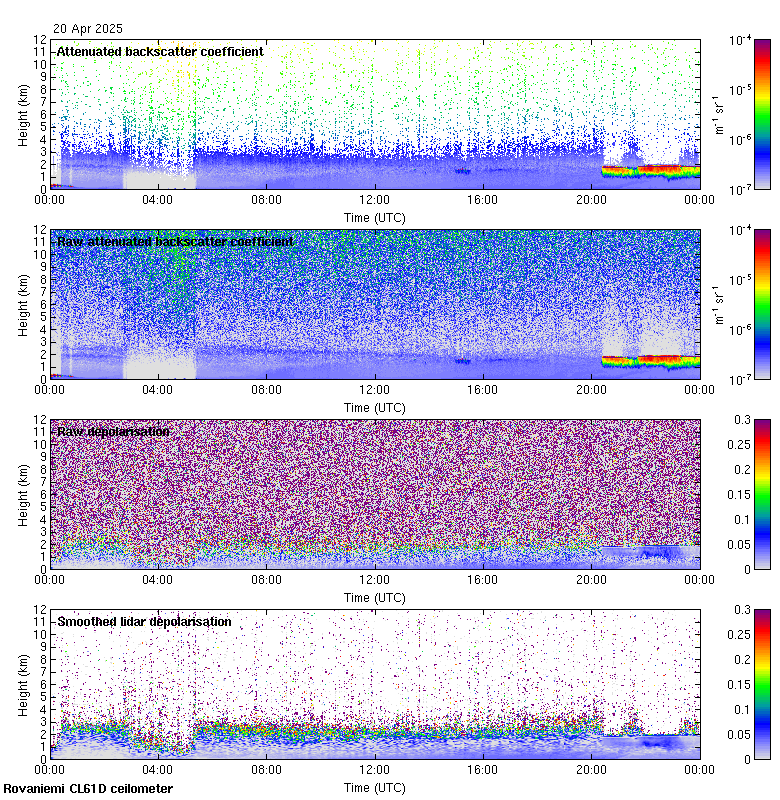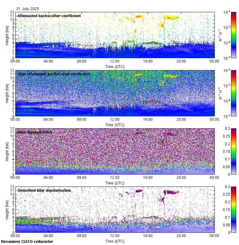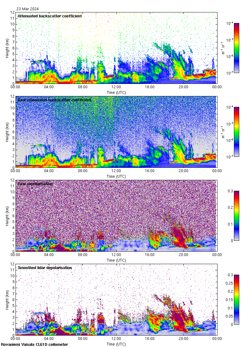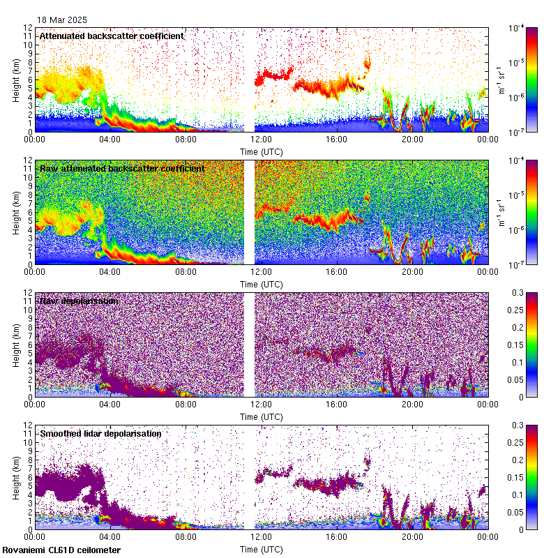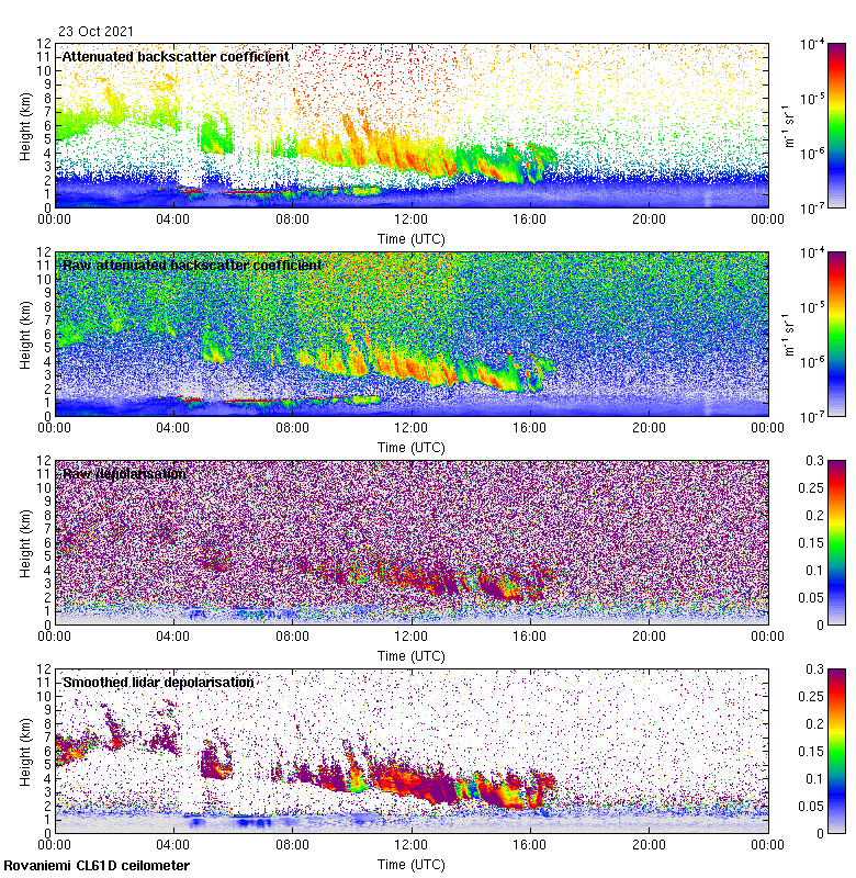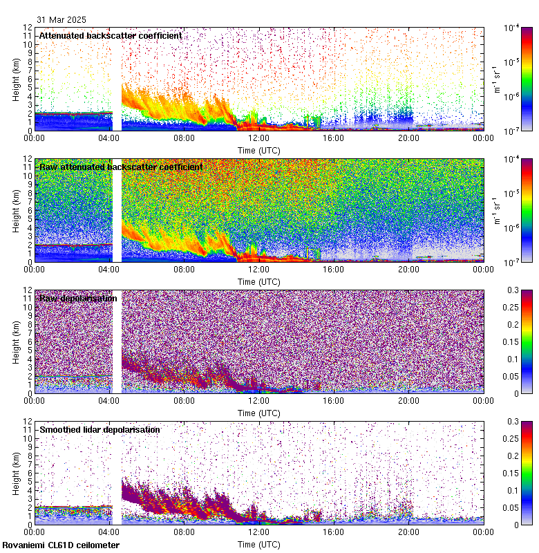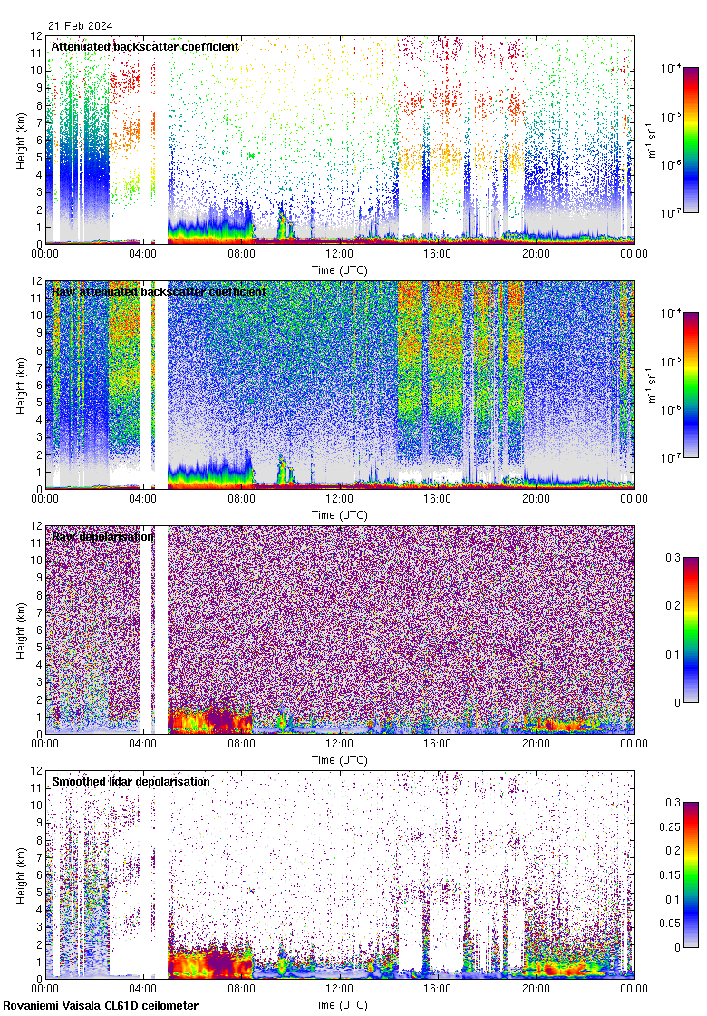 This page contains links to the daily Rovaniemi Vaisala CL61D ceilometer images created at Rovaniemi.