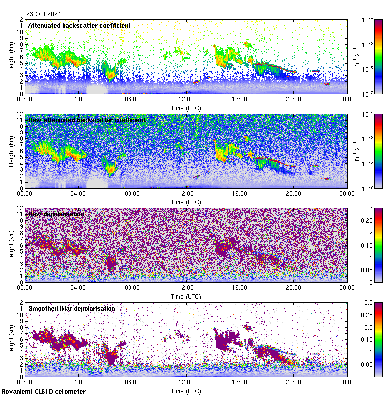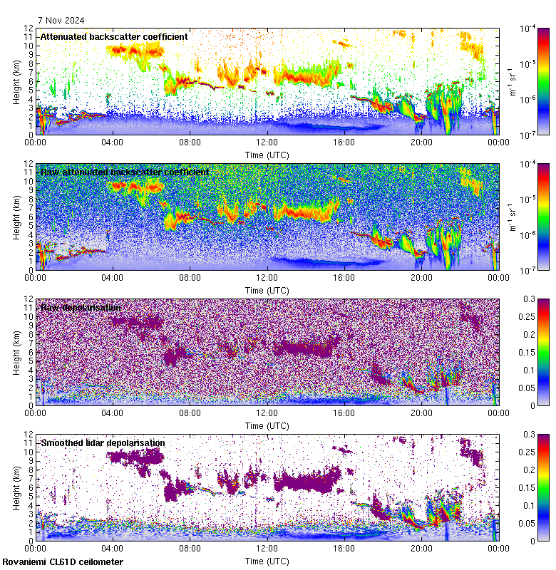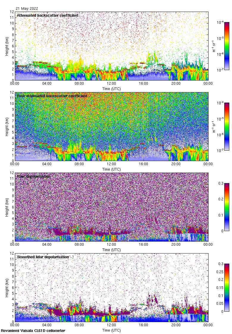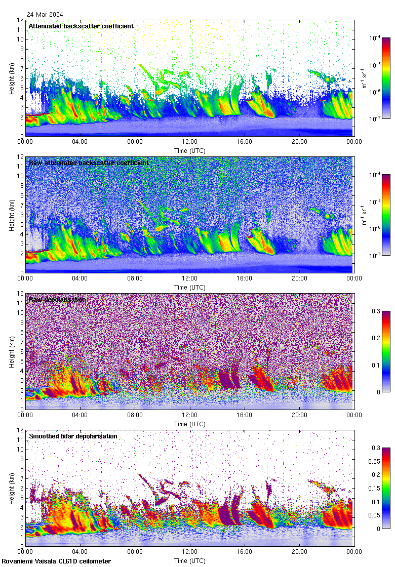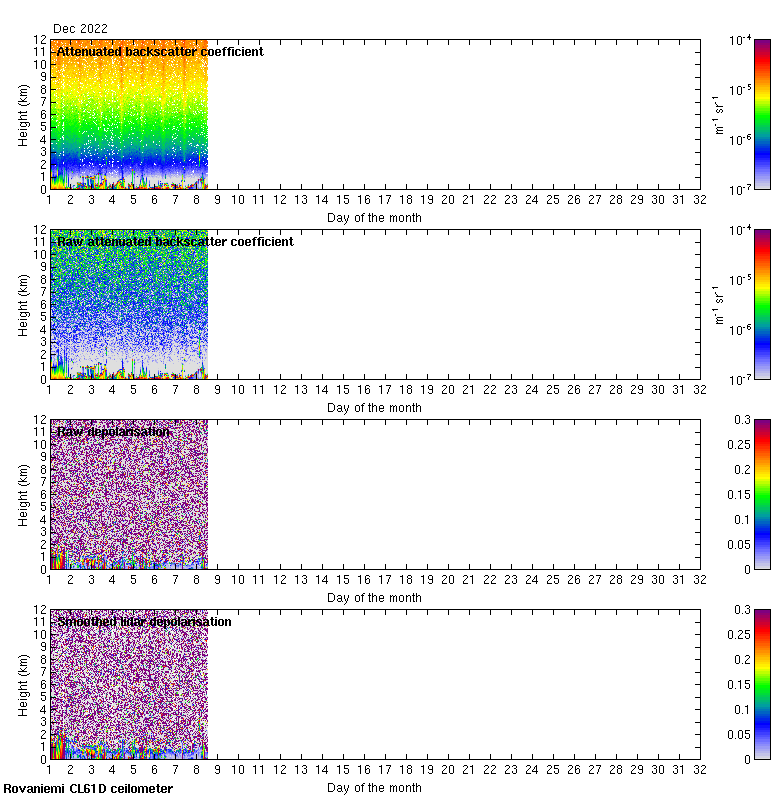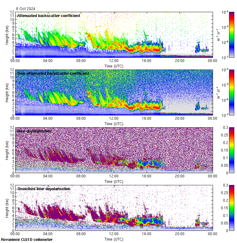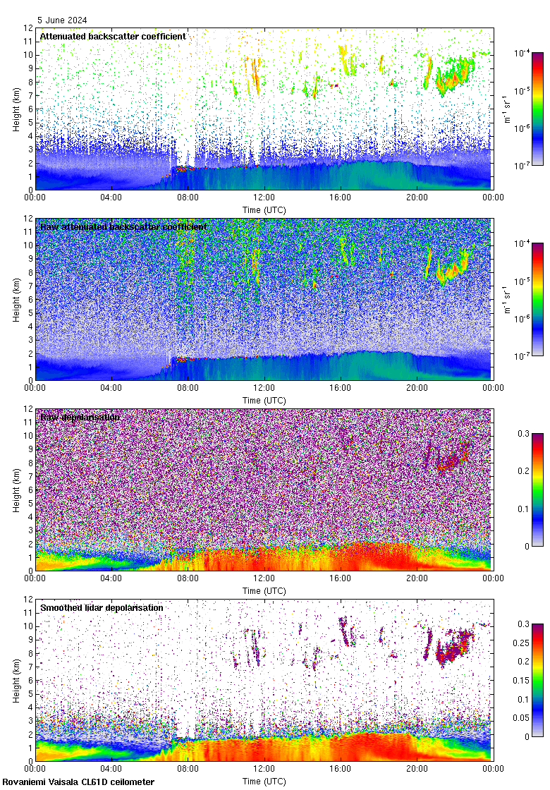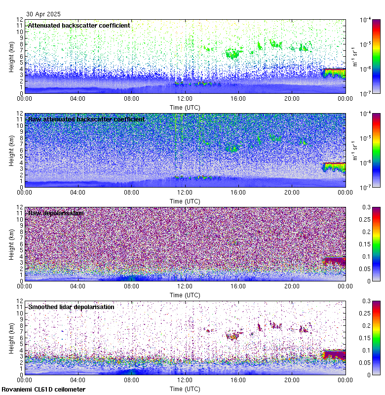 This page contains links to the daily Rovaniemi Vaisala CL61D ceilometer images created at Rovaniemi.
