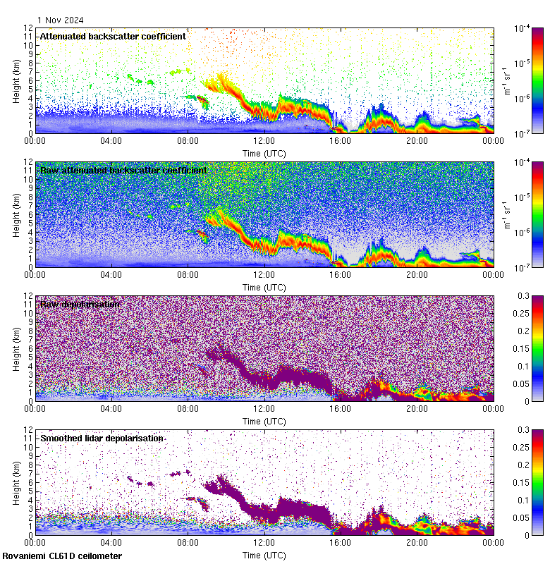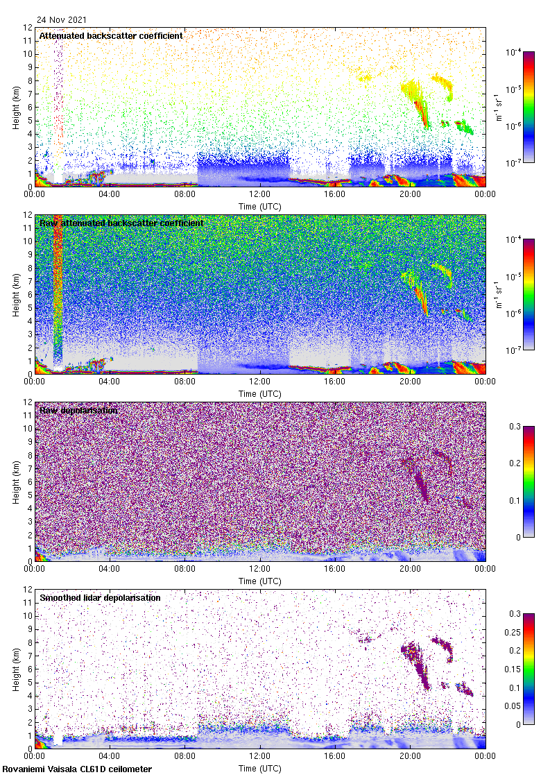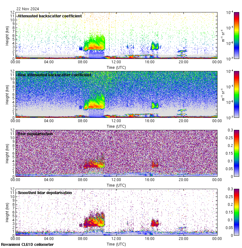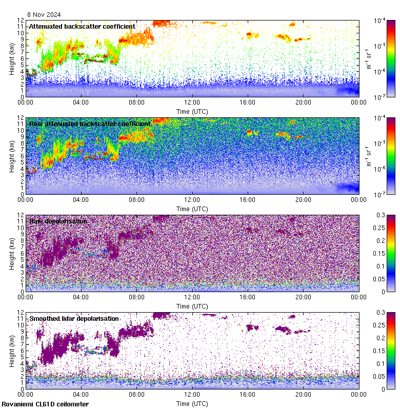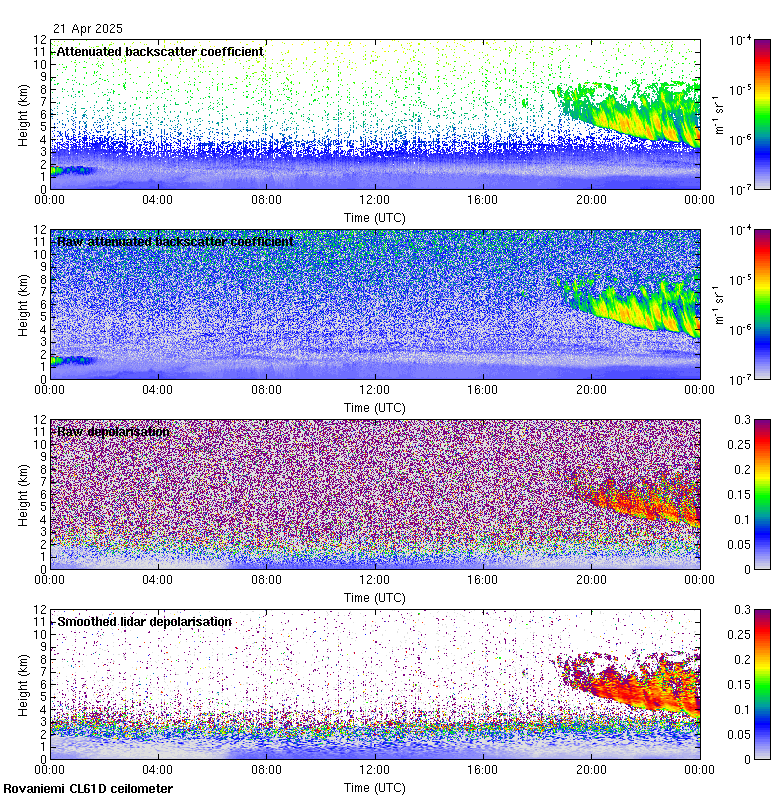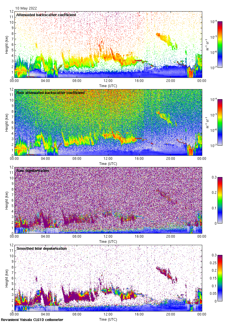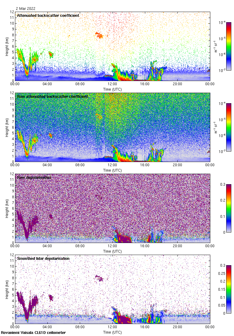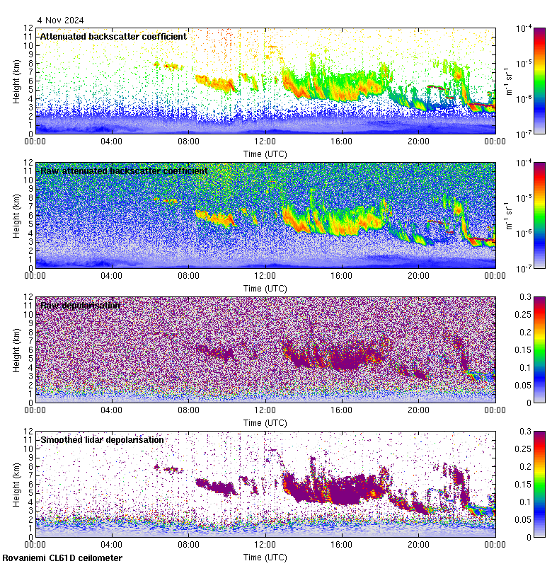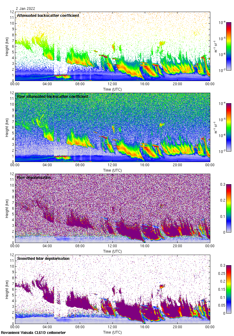 This page contains links to the daily Rovaniemi Vaisala CL61D ceilometer images created at Rovaniemi.