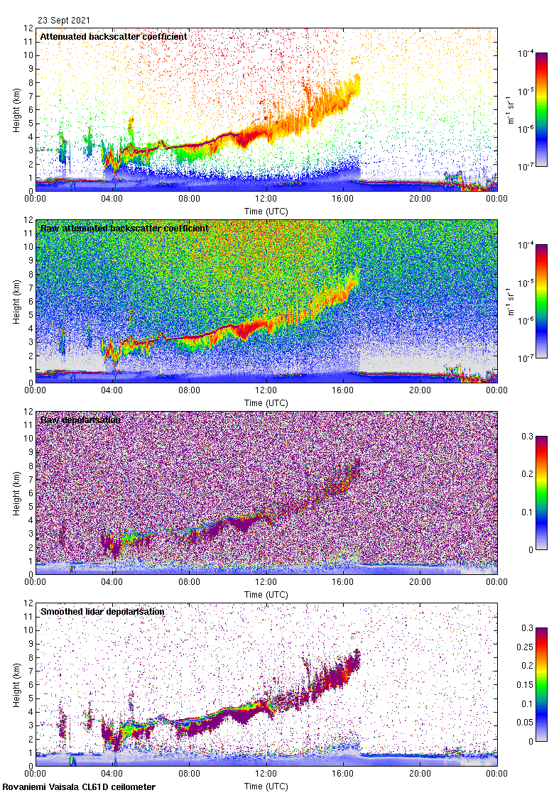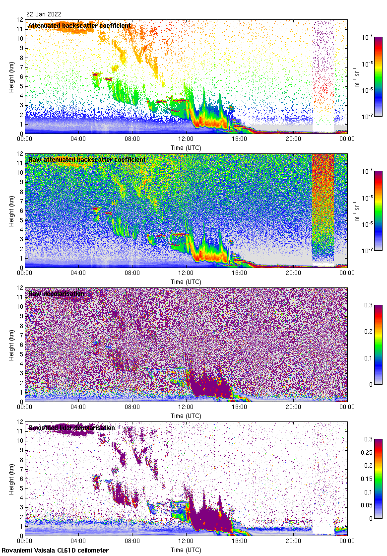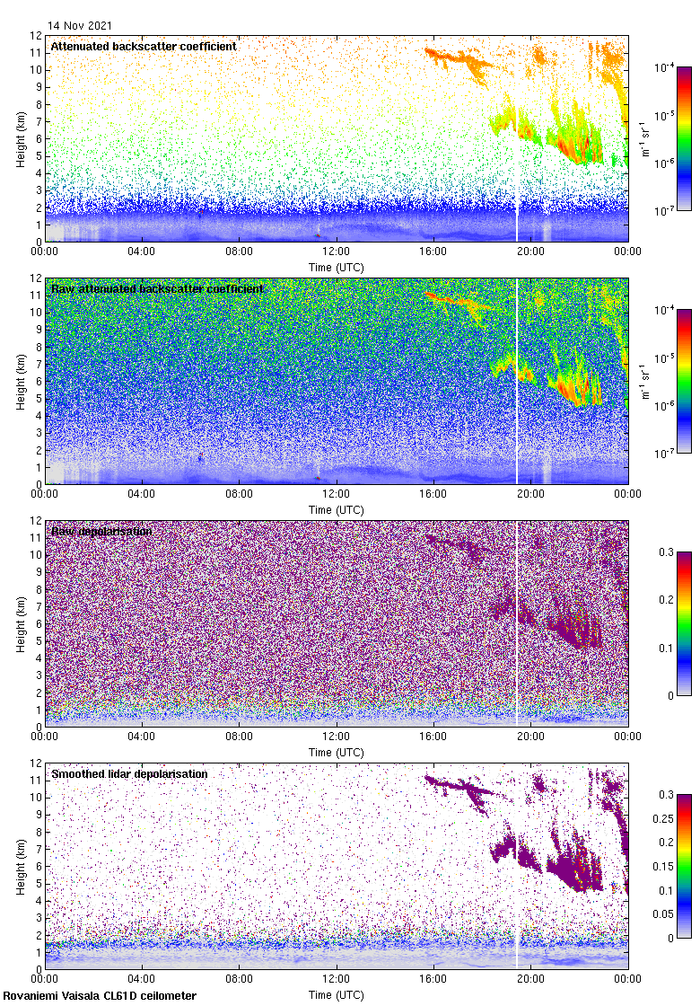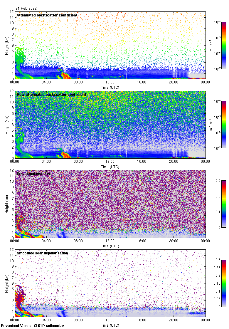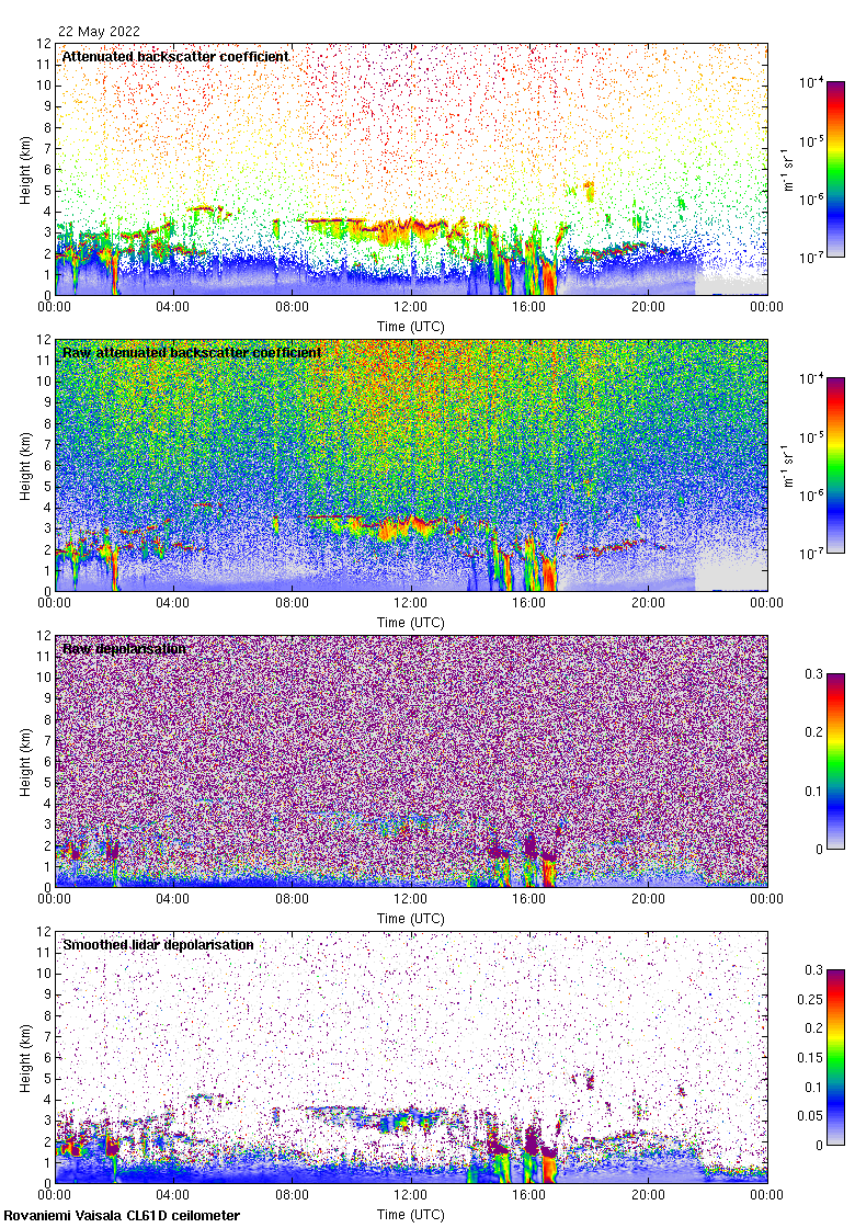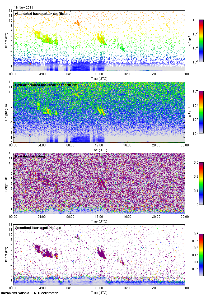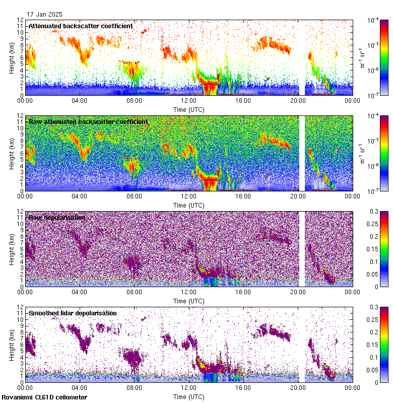 This page contains links to the daily Rovaniemi Vaisala CL61D ceilometer images created at Rovaniemi.