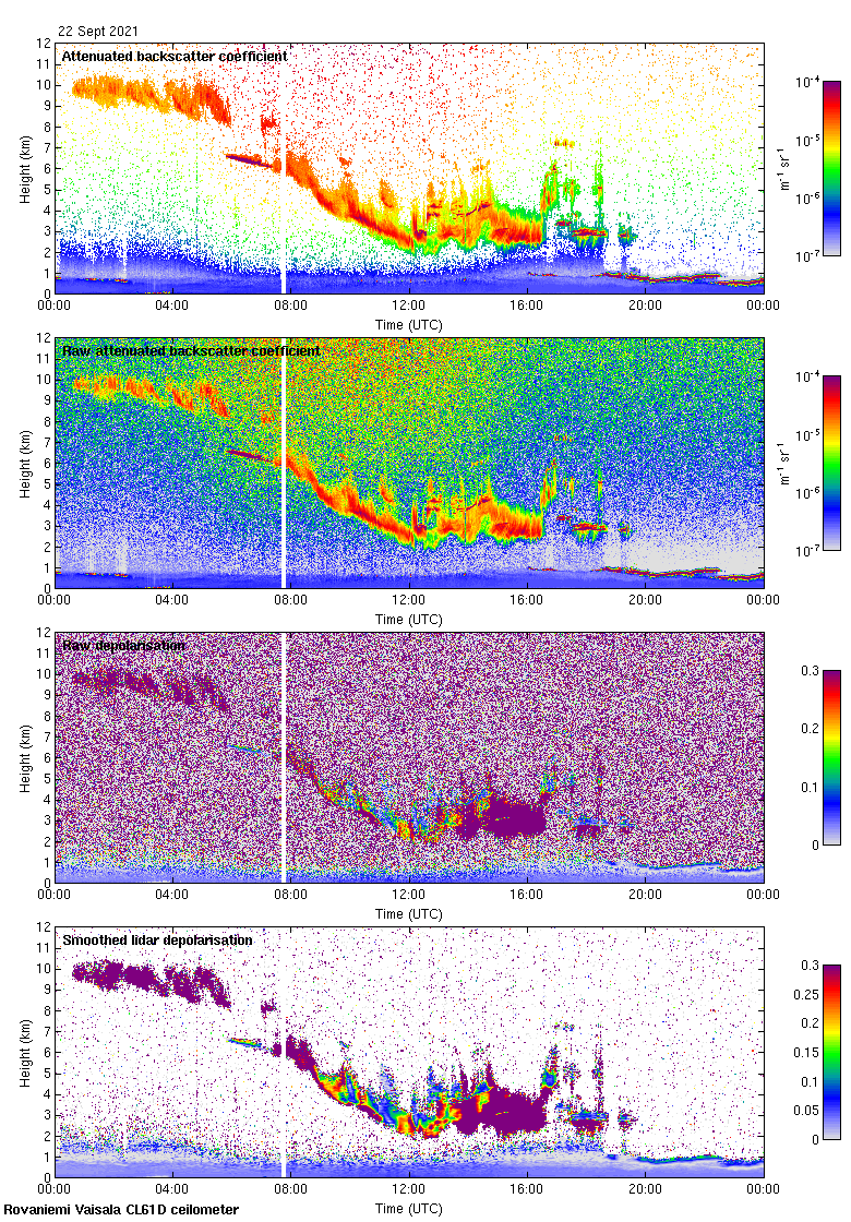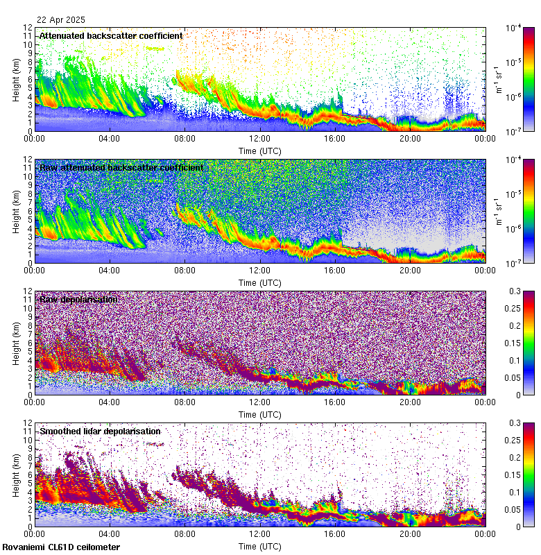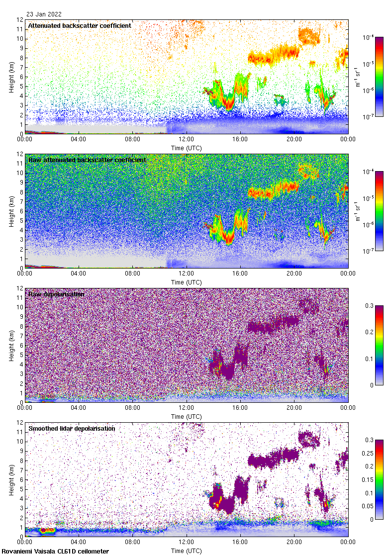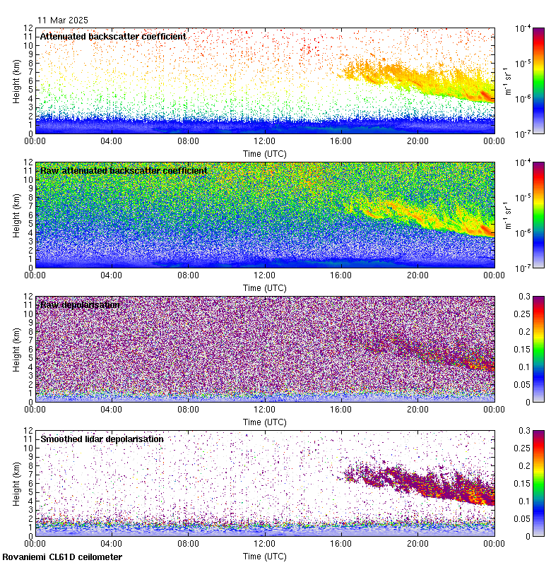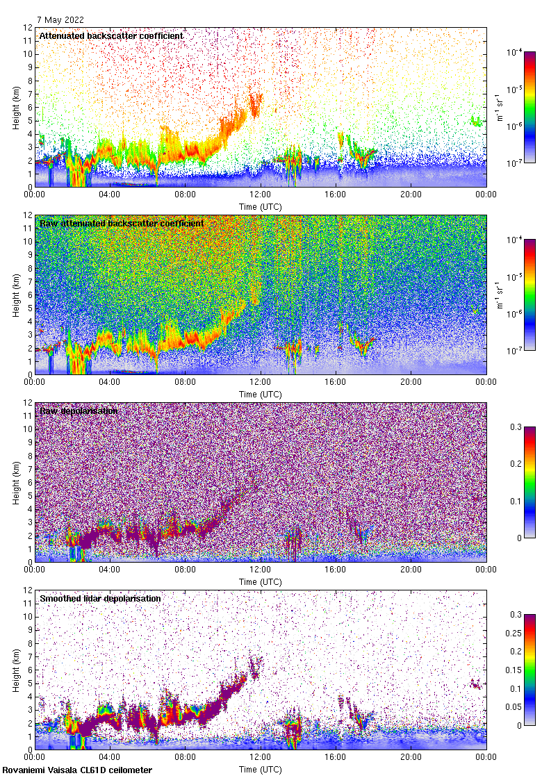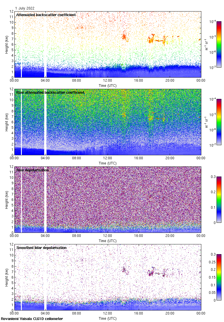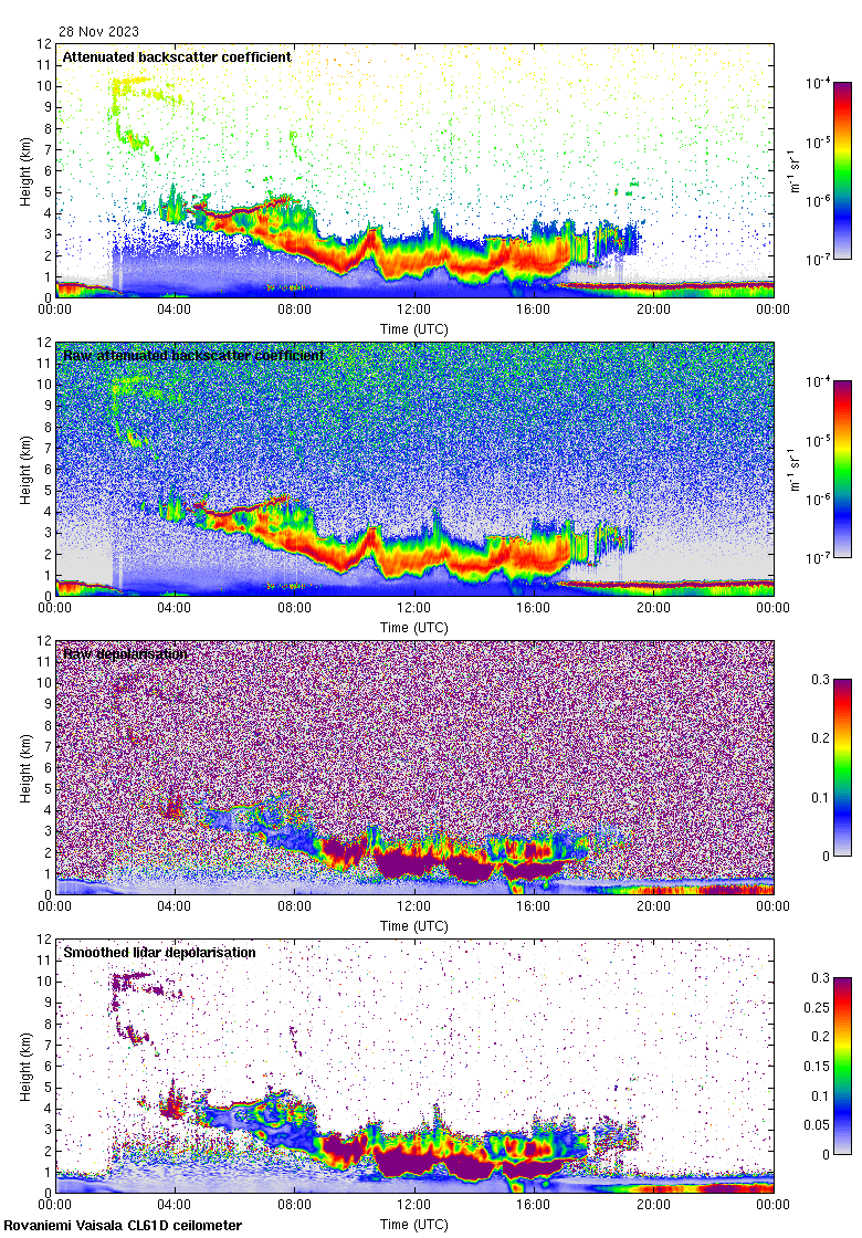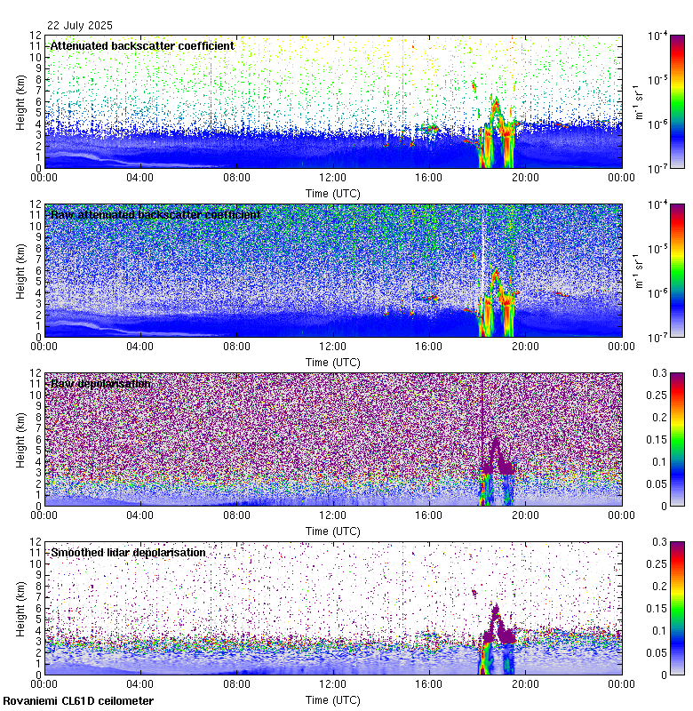 This page contains links to the daily Rovaniemi Vaisala CL61D ceilometer images created at Rovaniemi.
