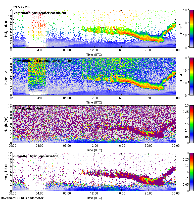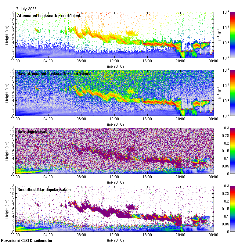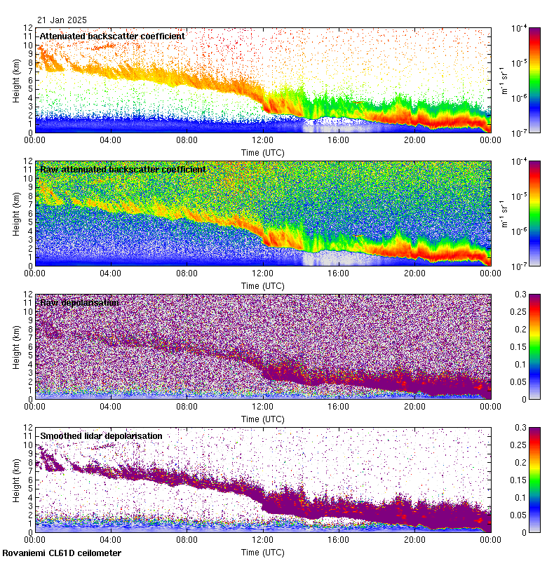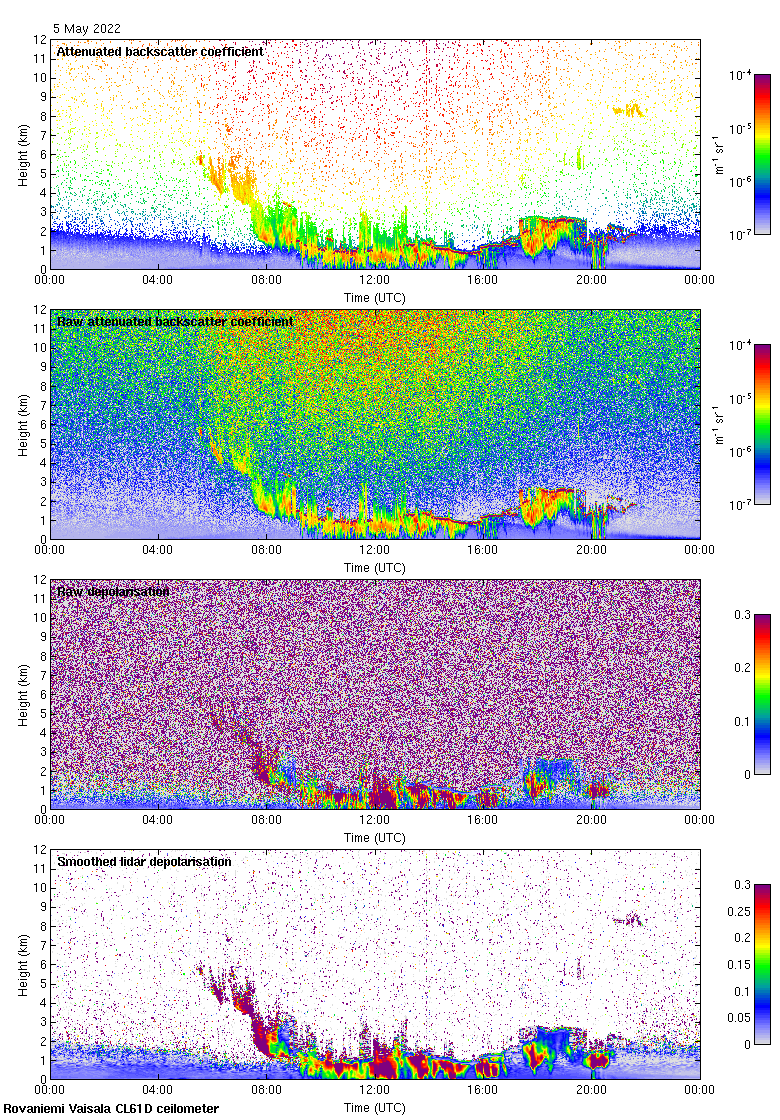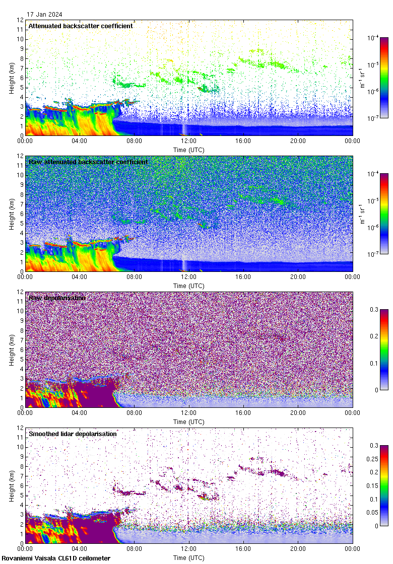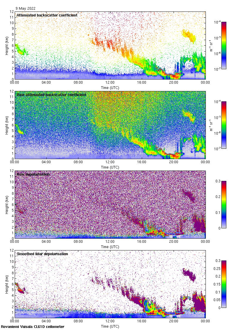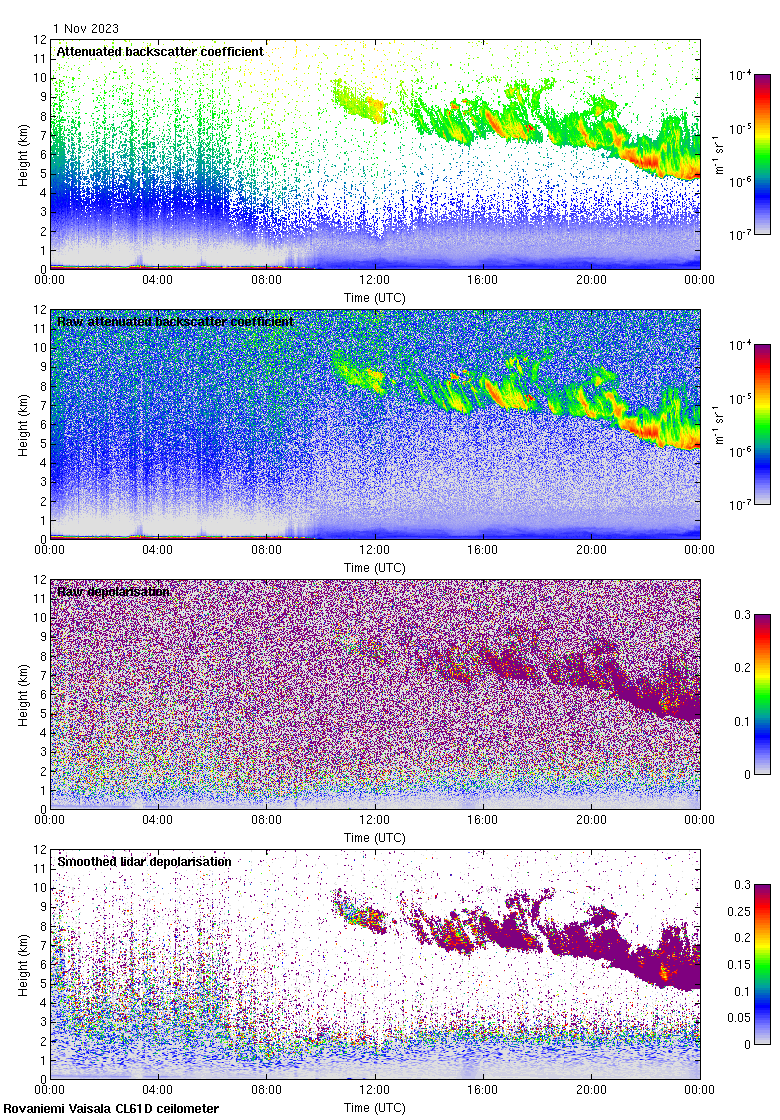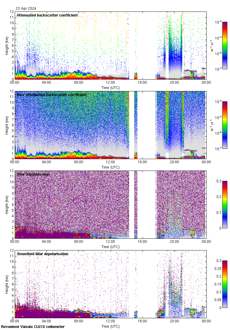 This page contains links to the daily Rovaniemi Vaisala CL61D ceilometer images created at Rovaniemi.