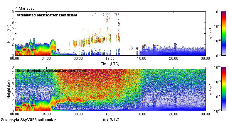 This page contains links to the daily Sodankyla Campbell Scientific SkyVUE8 ceilometer images created at Kumpula.