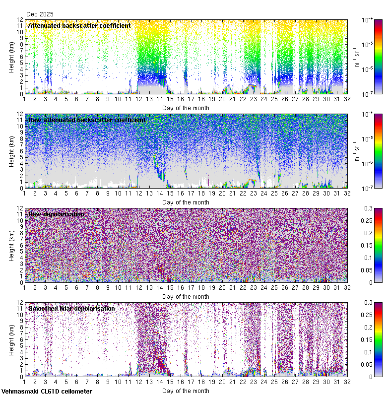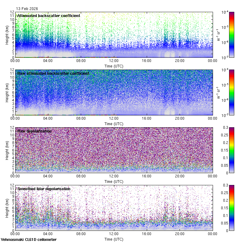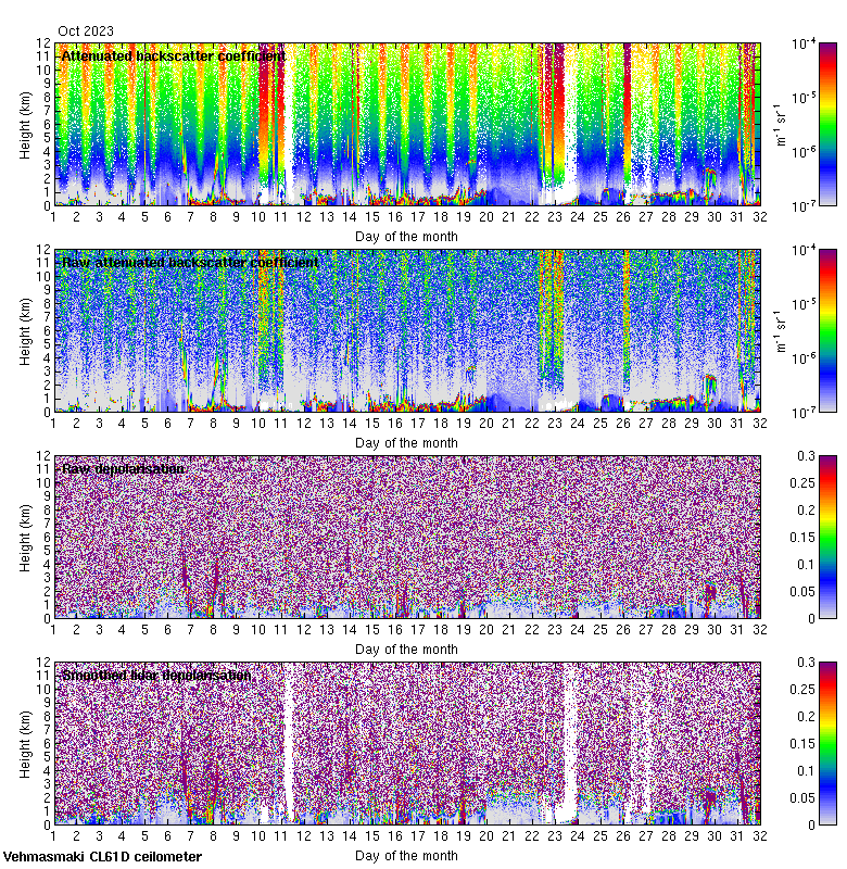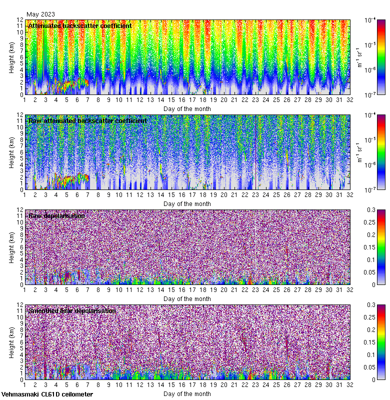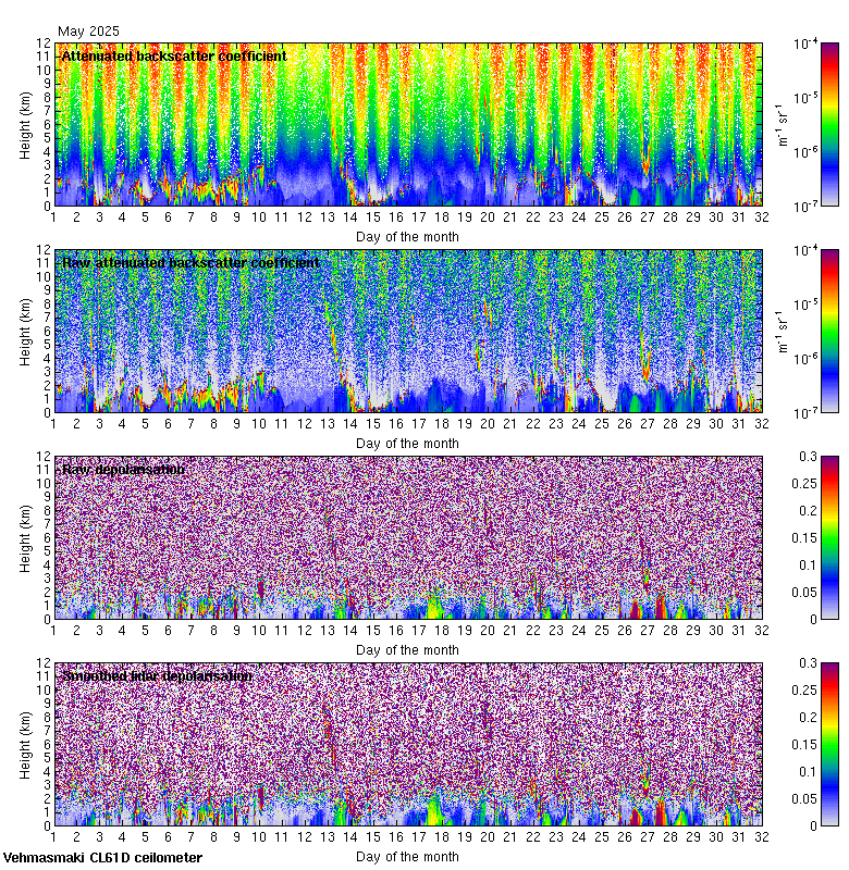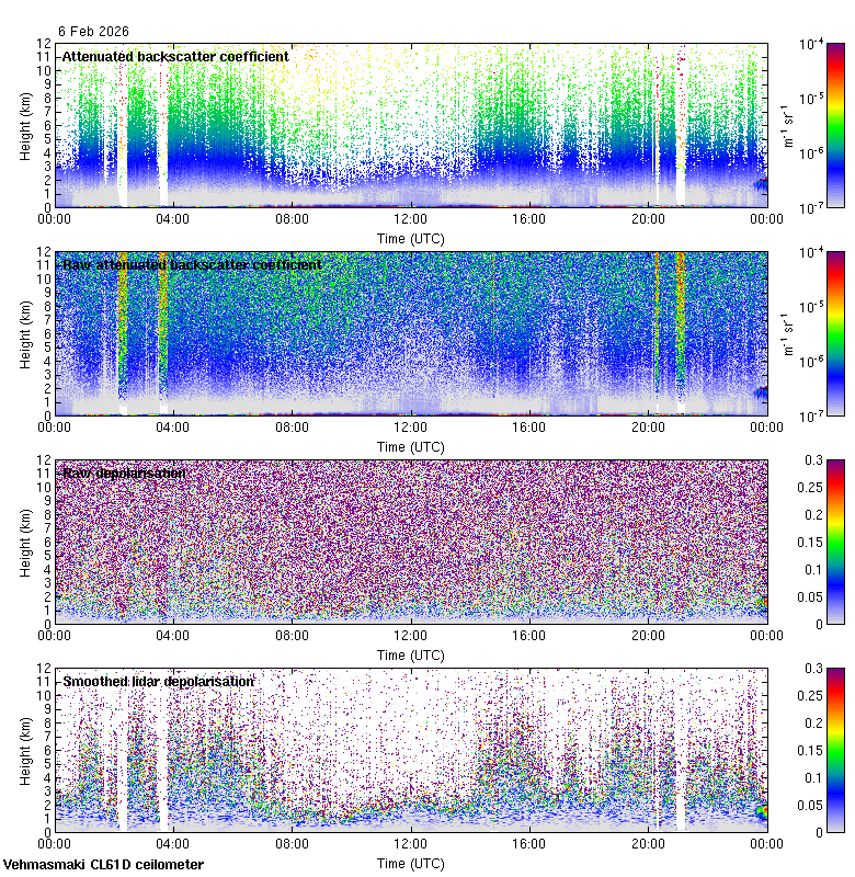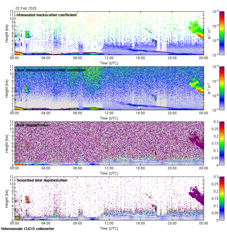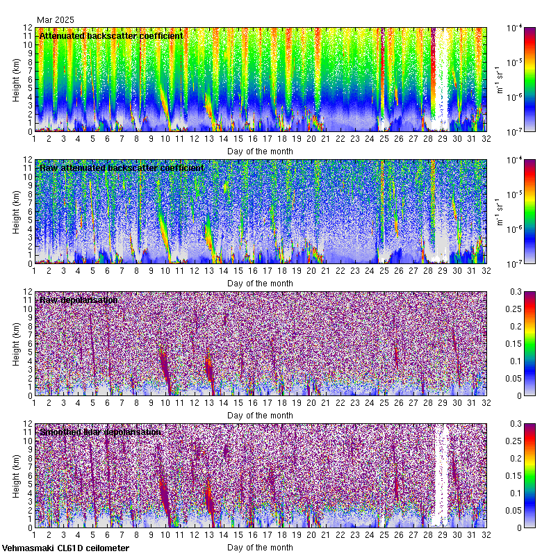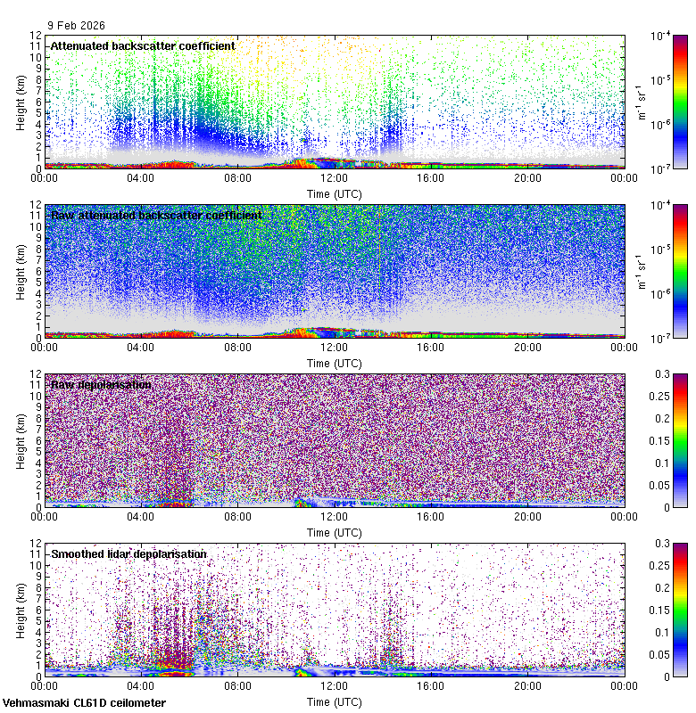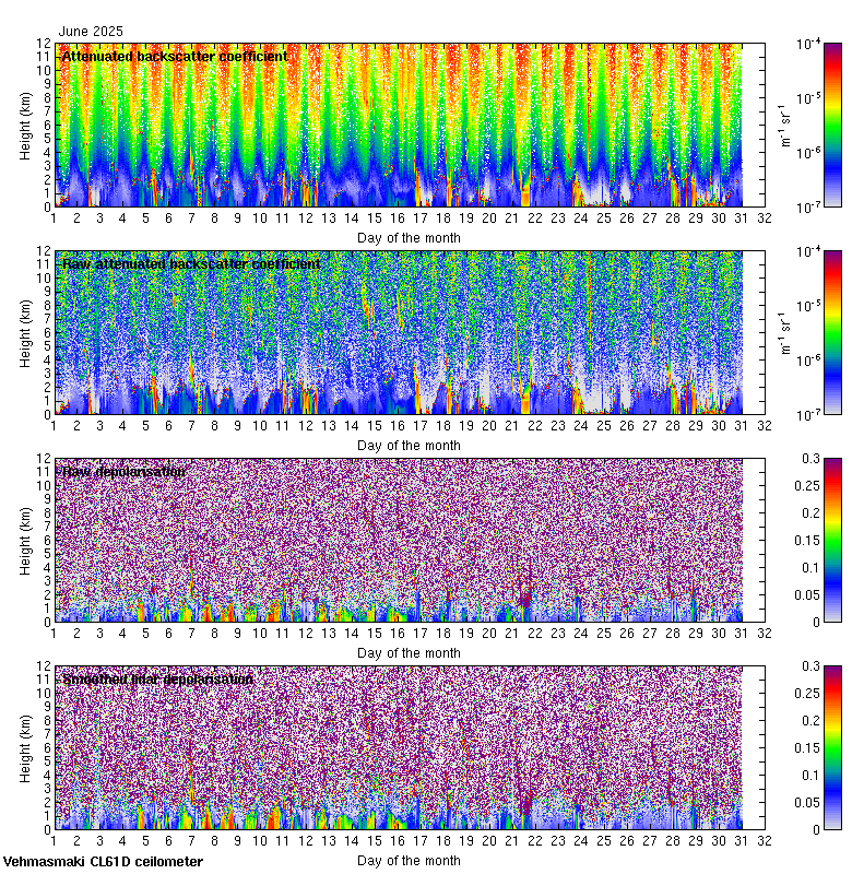 This page contains links to the daily Vehmasmaki Vaisala CL61D ceilometer images created at Kumpula.