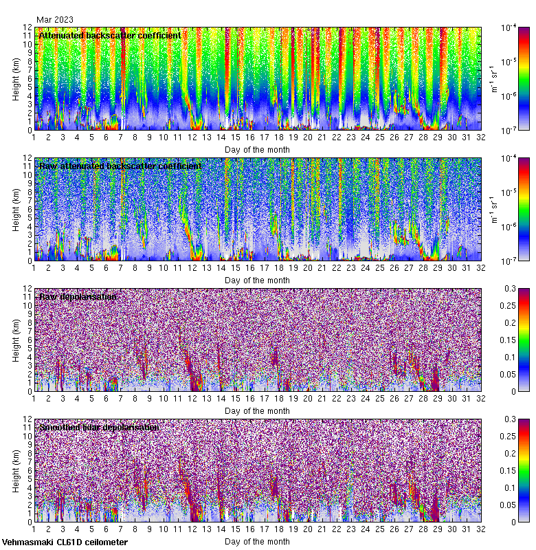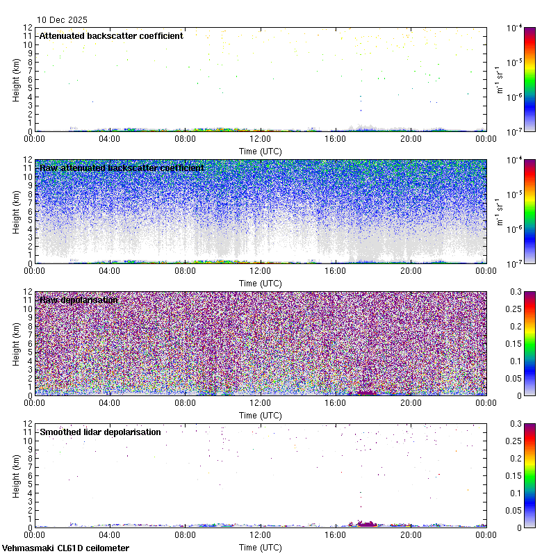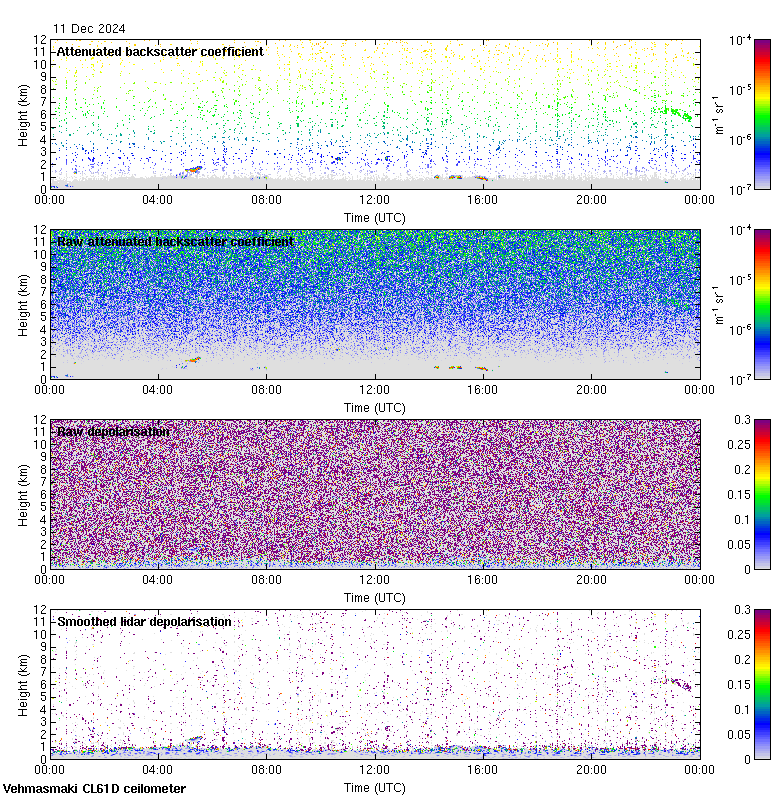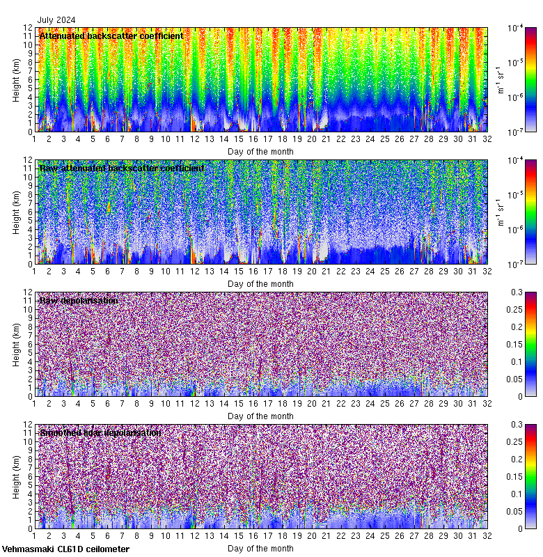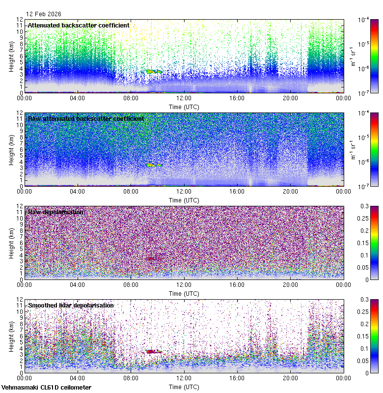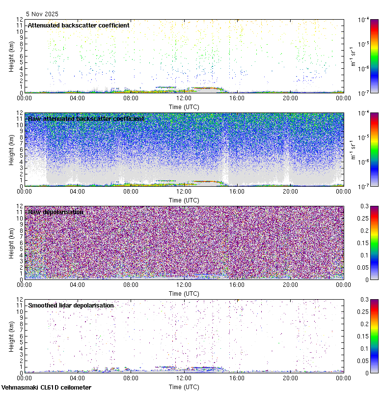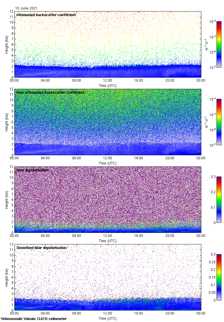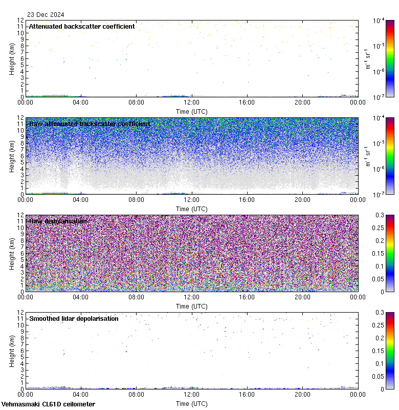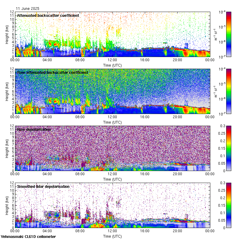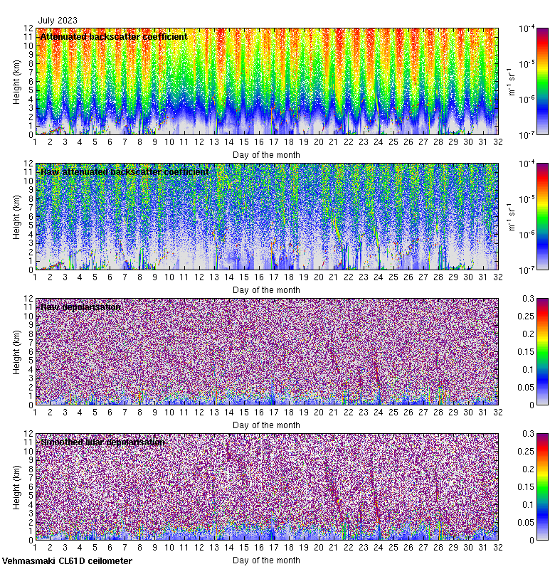 This page contains links to the daily Vehmasmaki Vaisala CL61D ceilometer images created at Kumpula.