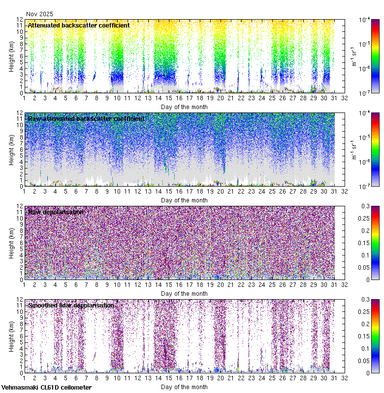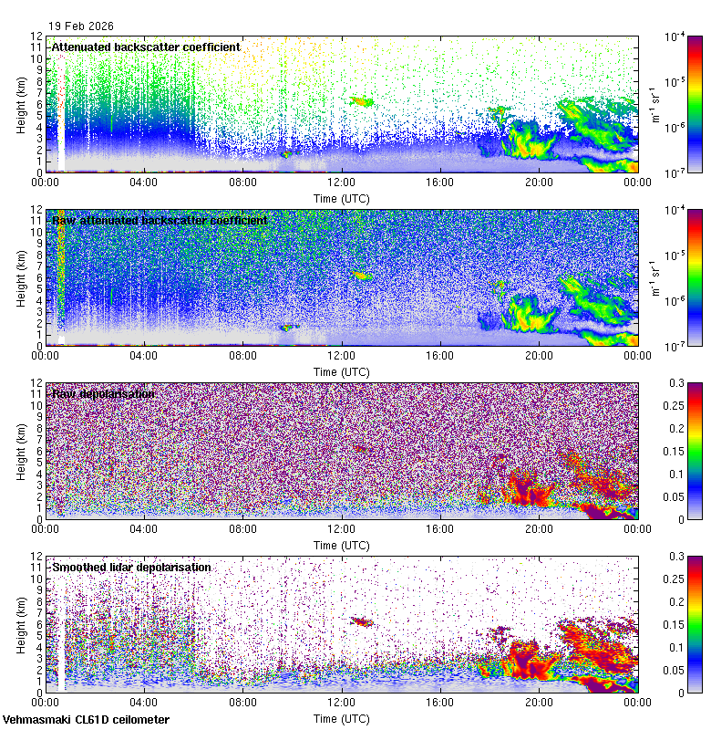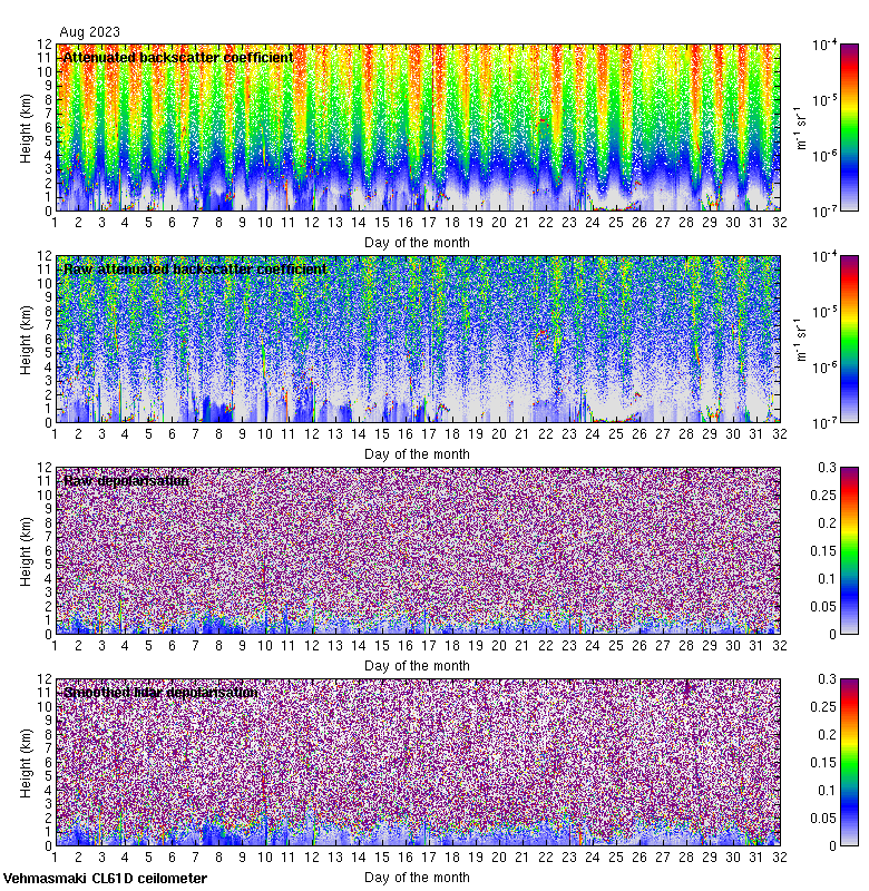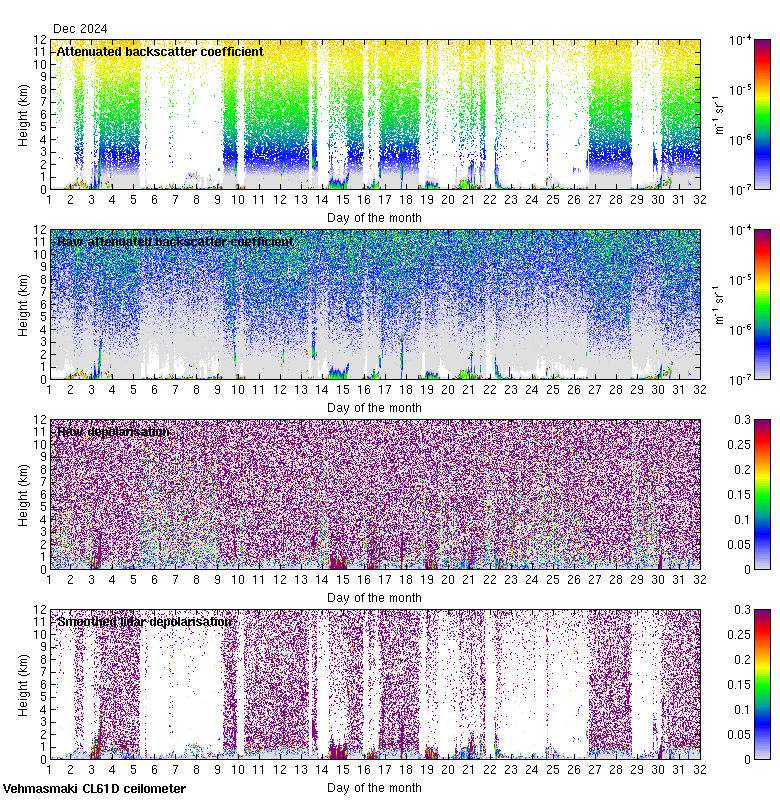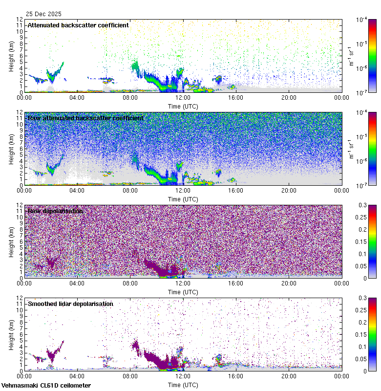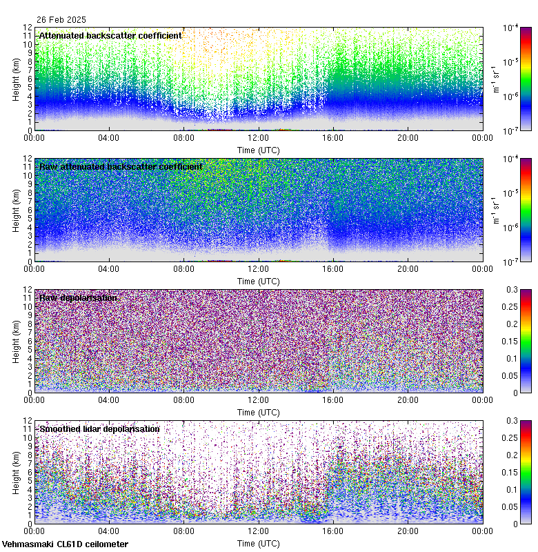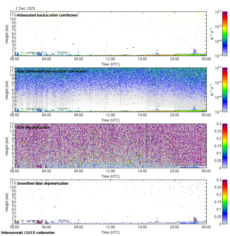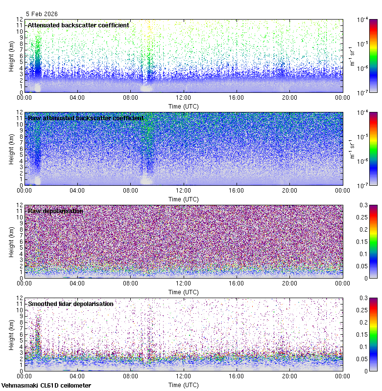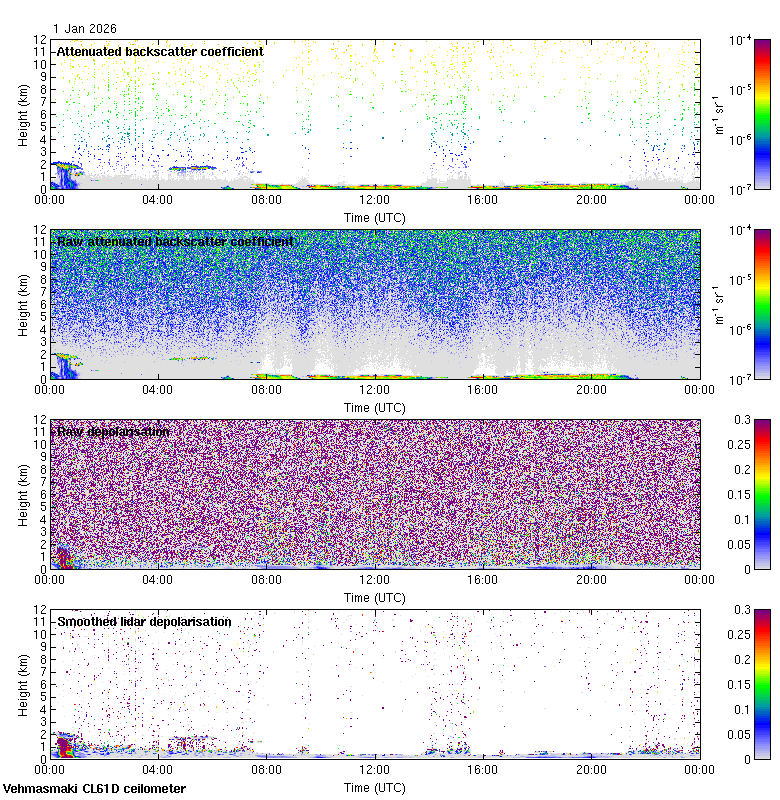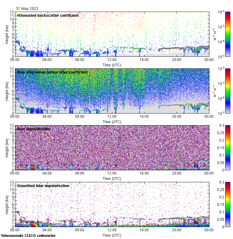 This page contains links to the daily Vehmasmaki Vaisala CL61D ceilometer images created at Kumpula.