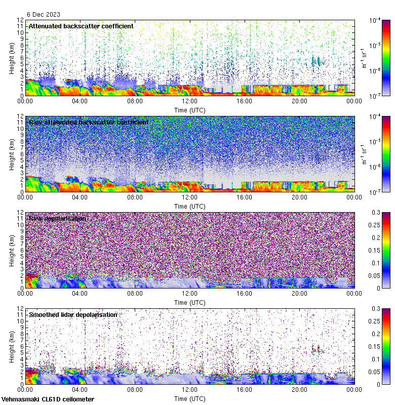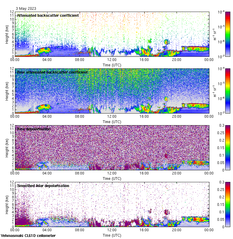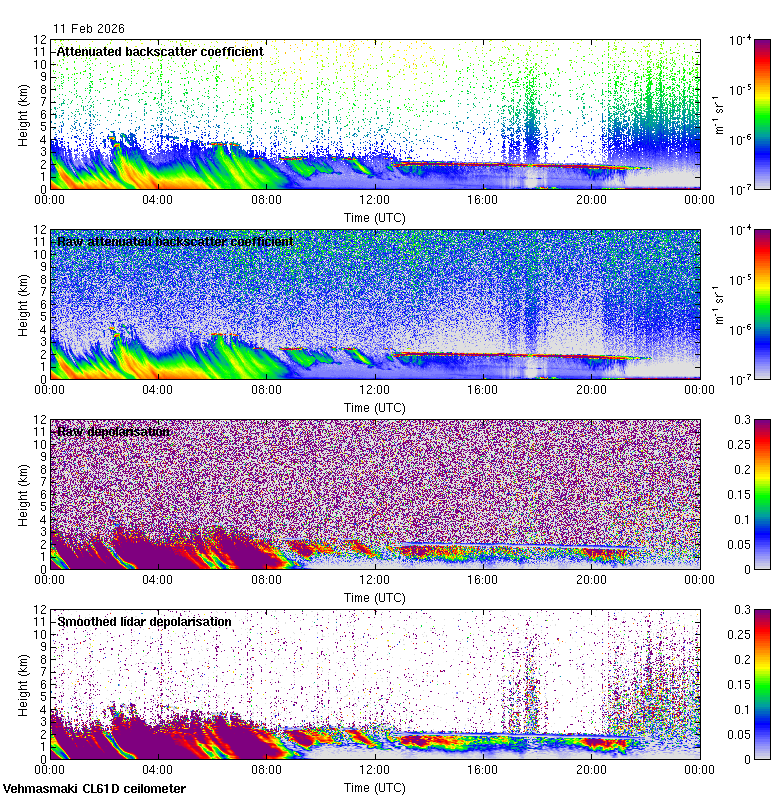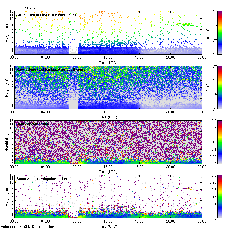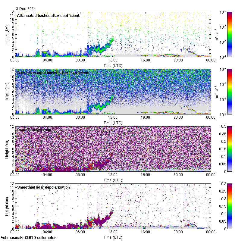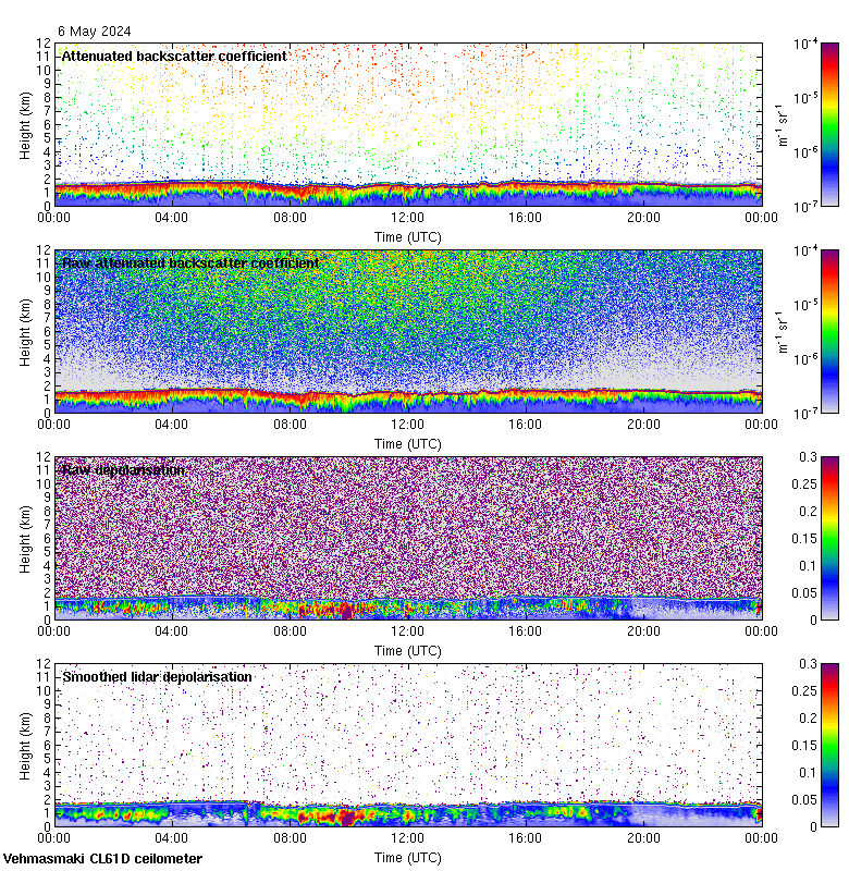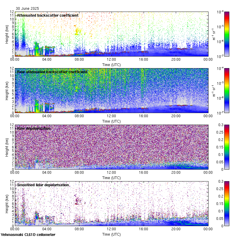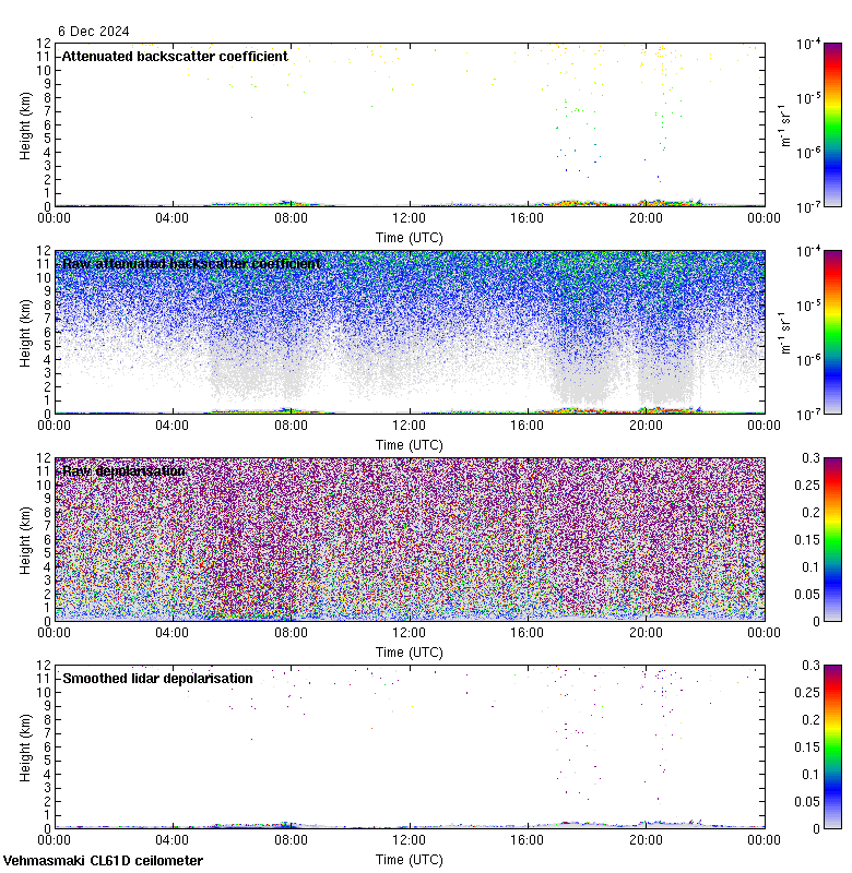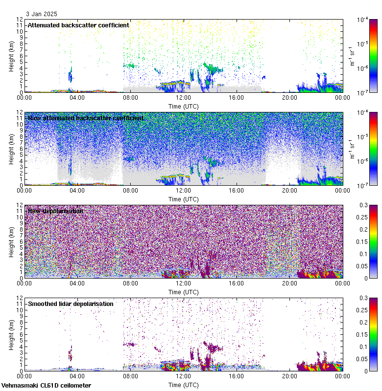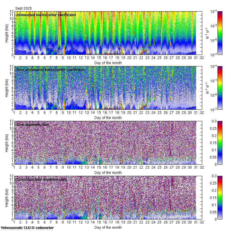 This page contains links to the daily Vehmasmaki Vaisala CL61D ceilometer images created at Kumpula.