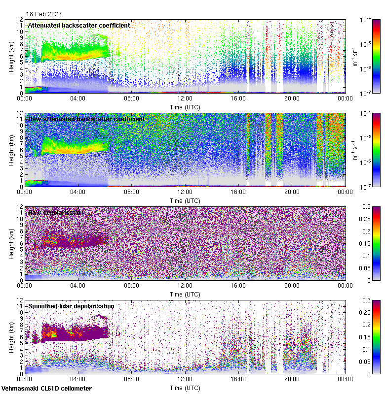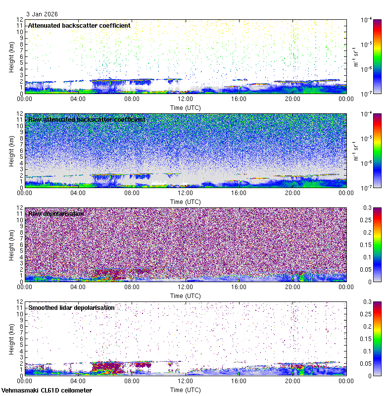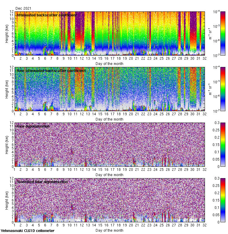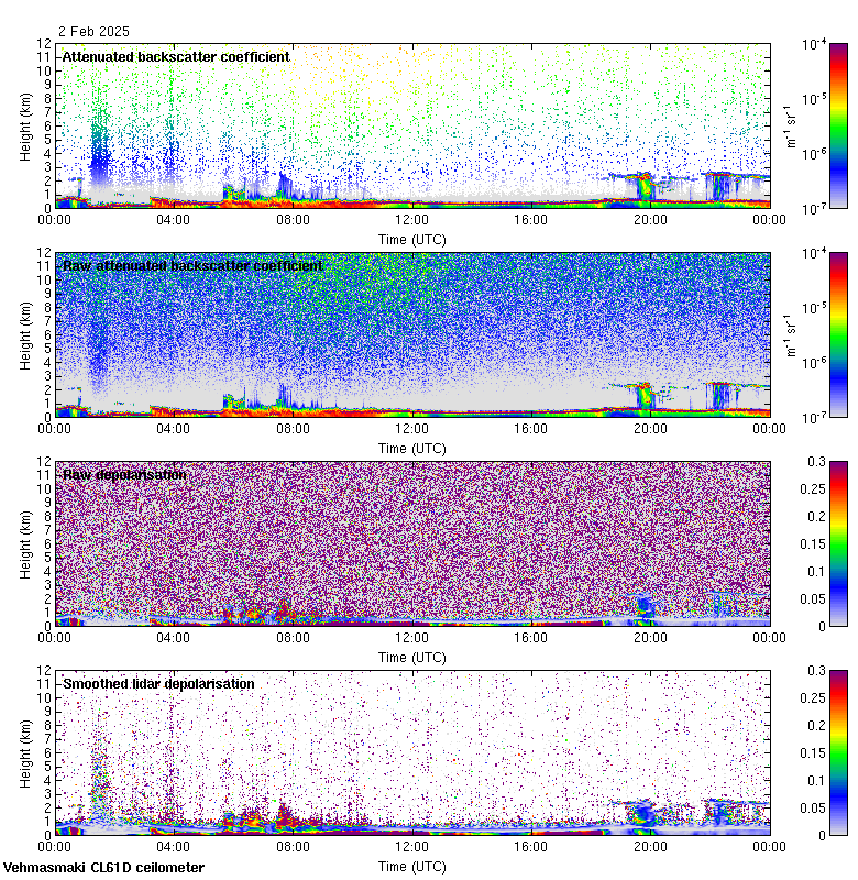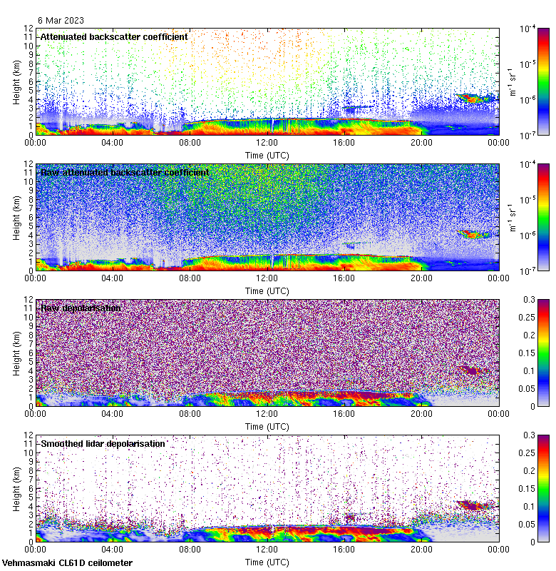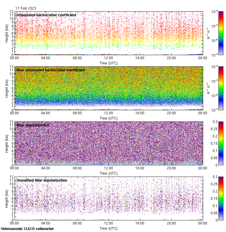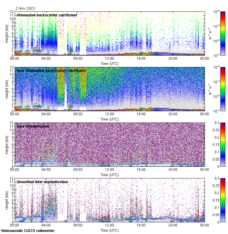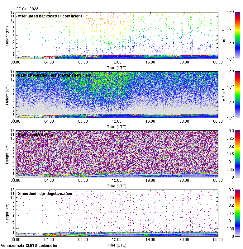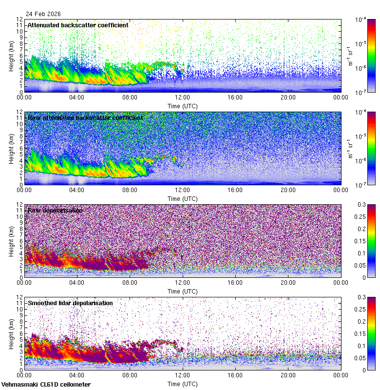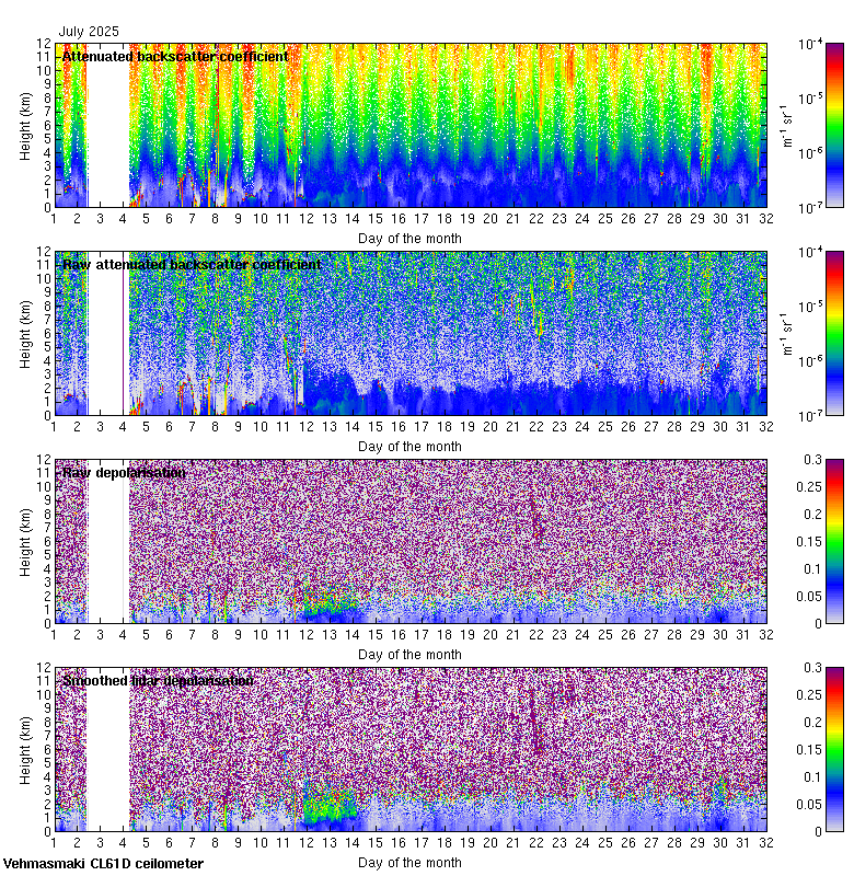 This page contains links to the daily Vehmasmaki Vaisala CL61D ceilometer images created at Kumpula.