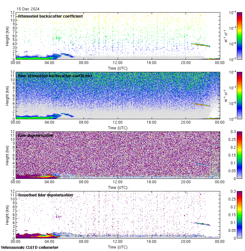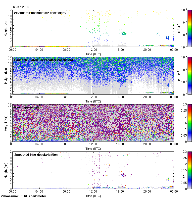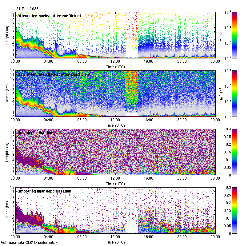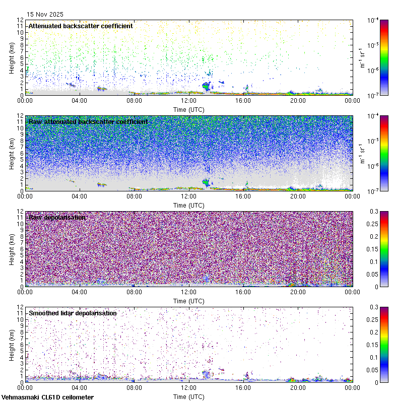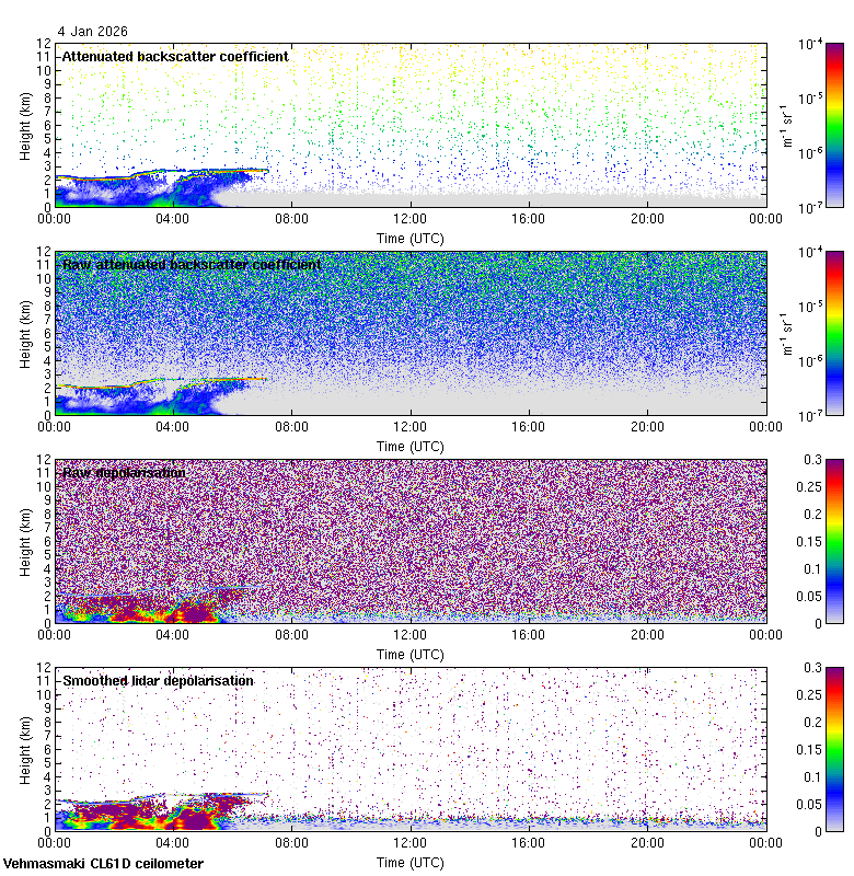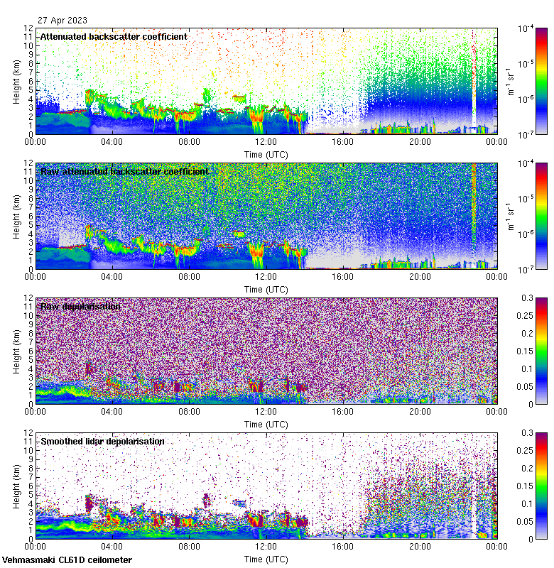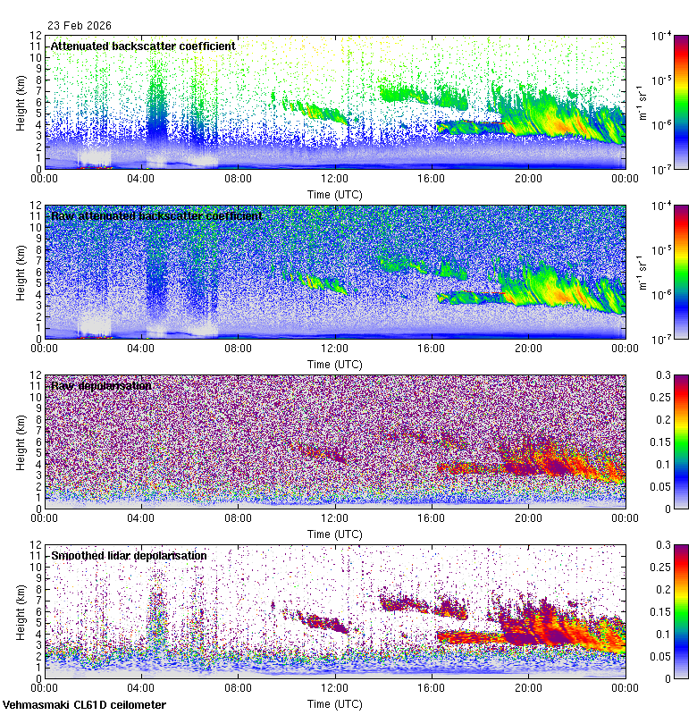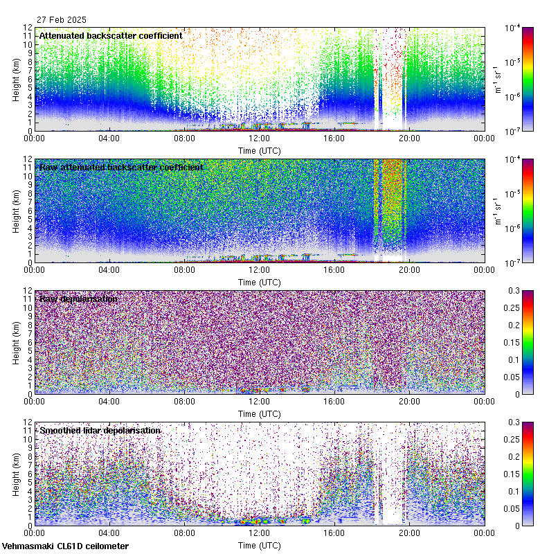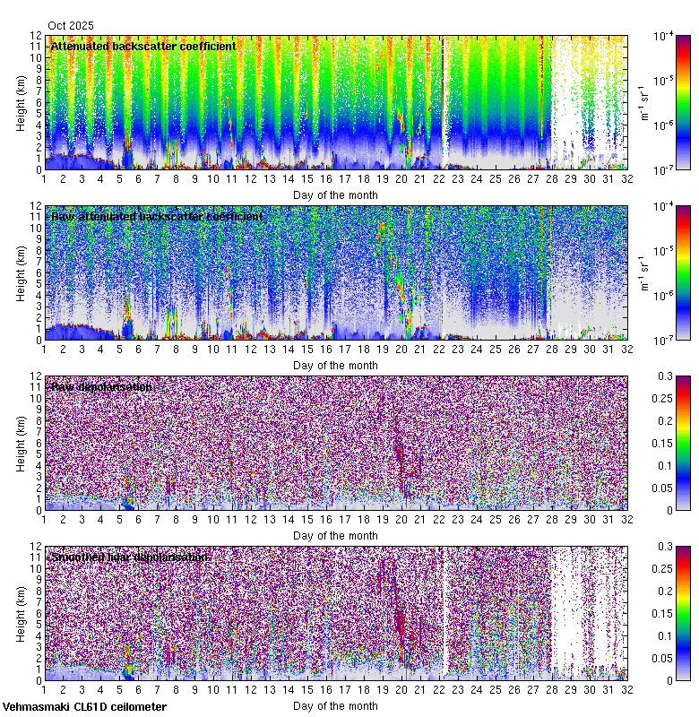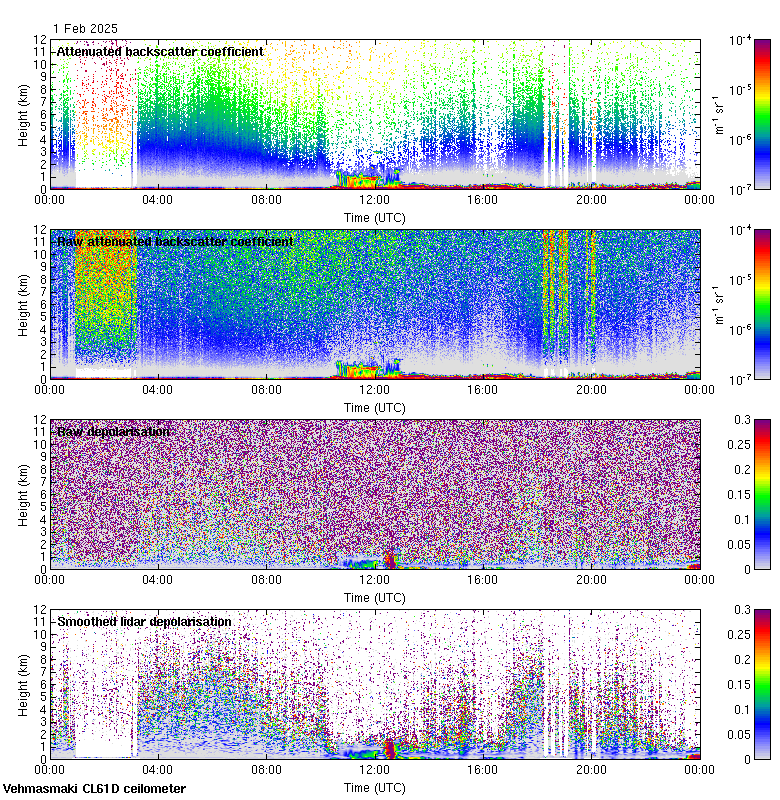 This page contains links to the daily Vehmasmaki Vaisala CL61D ceilometer images created at Kumpula.