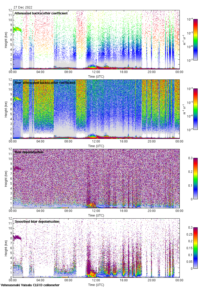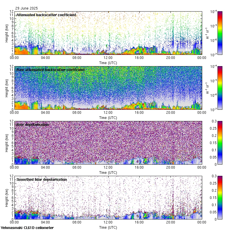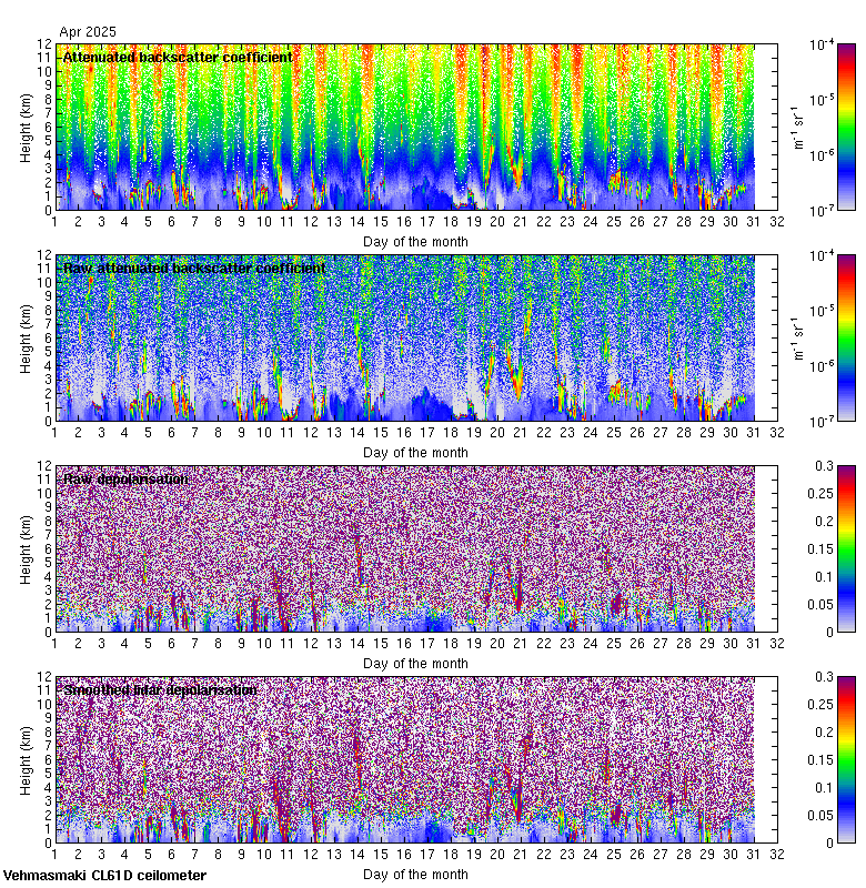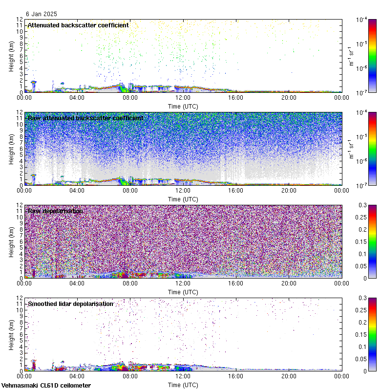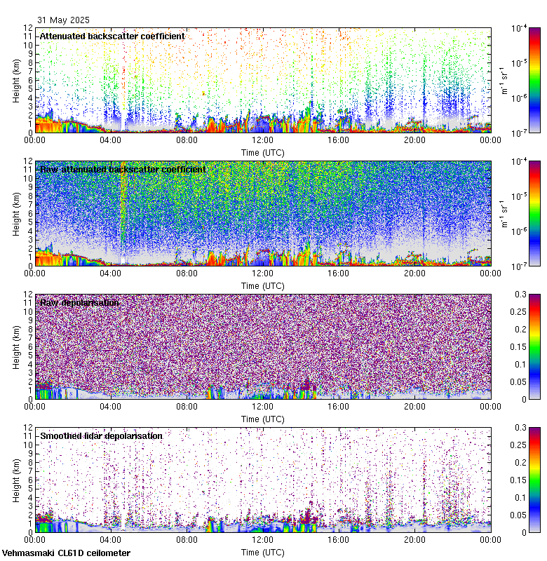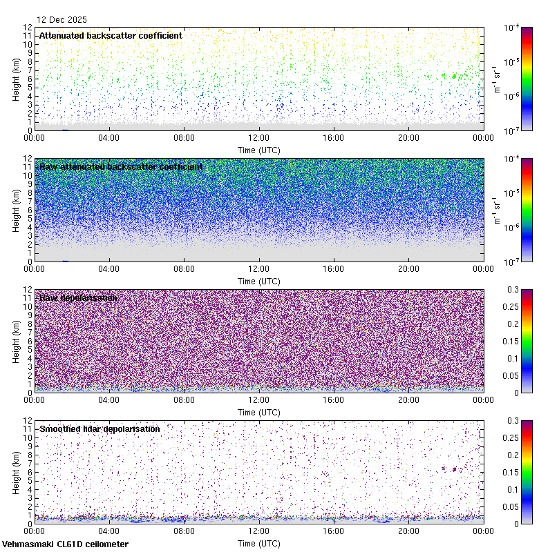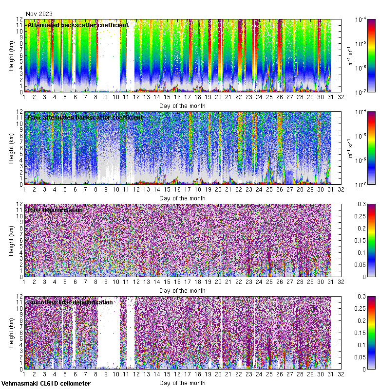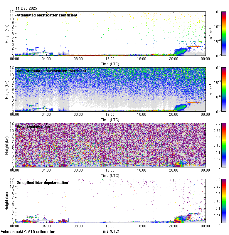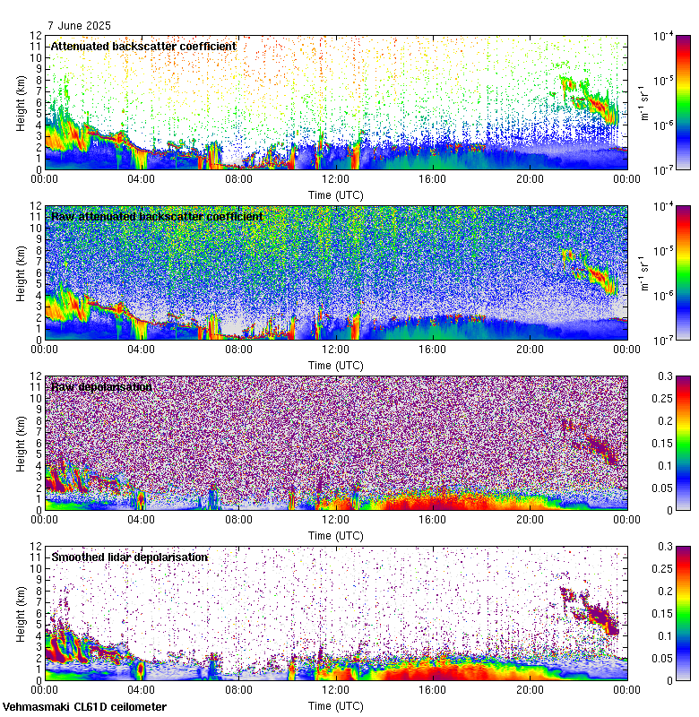 This page contains links to the daily Vehmasmaki Vaisala CL61D ceilometer images created at Kumpula.