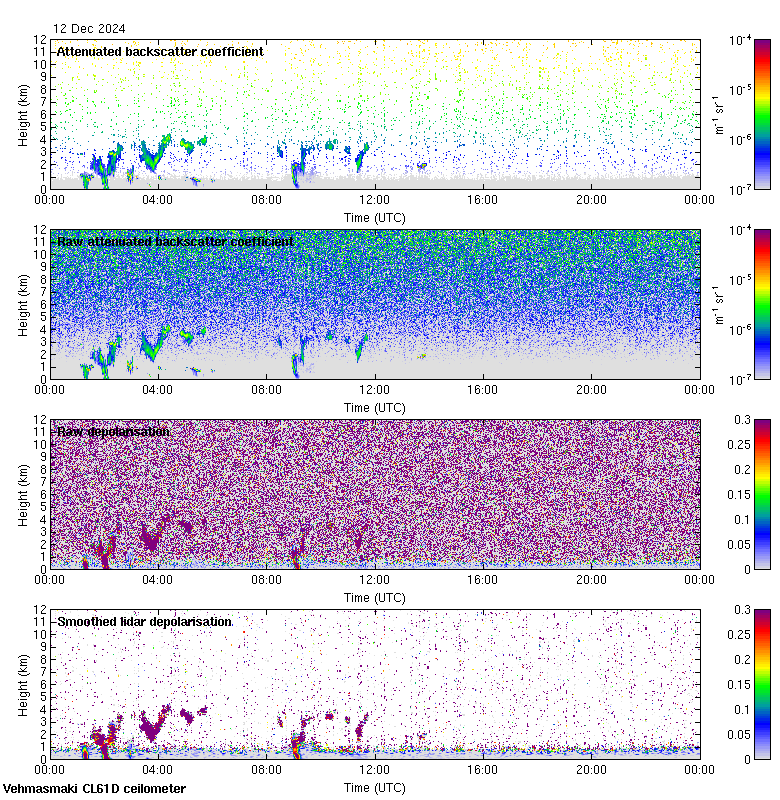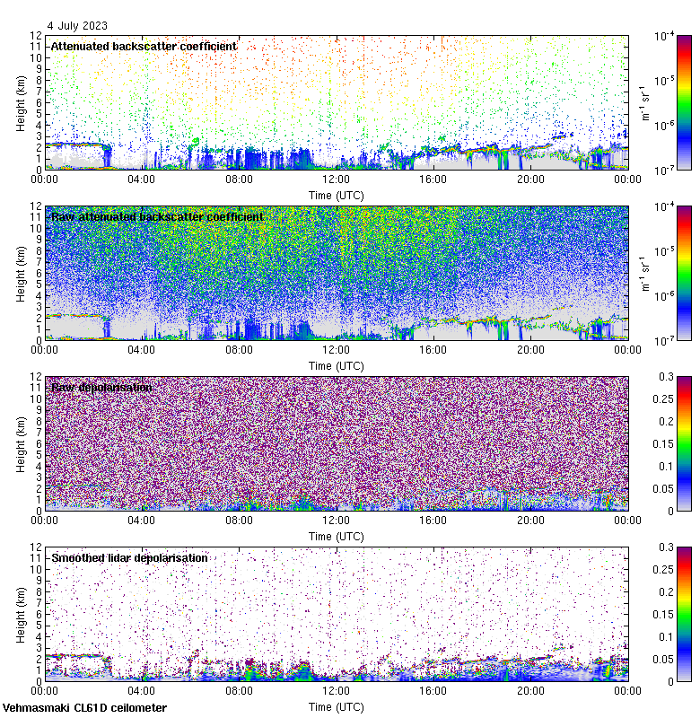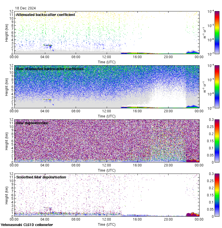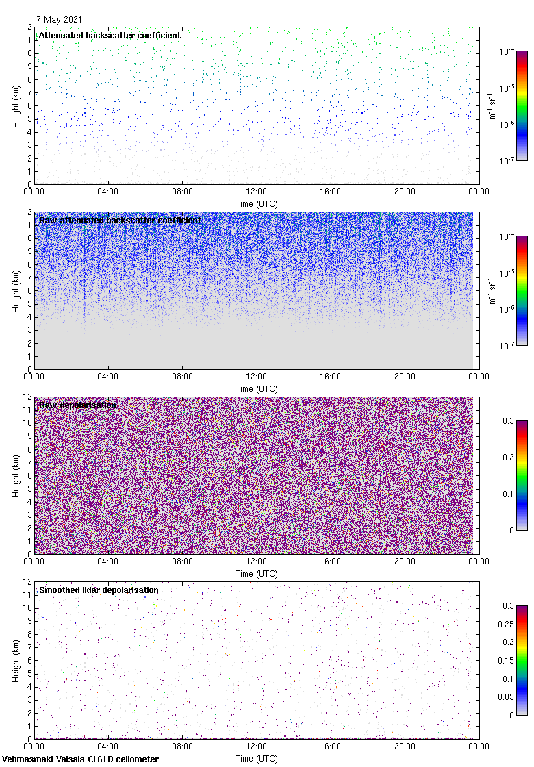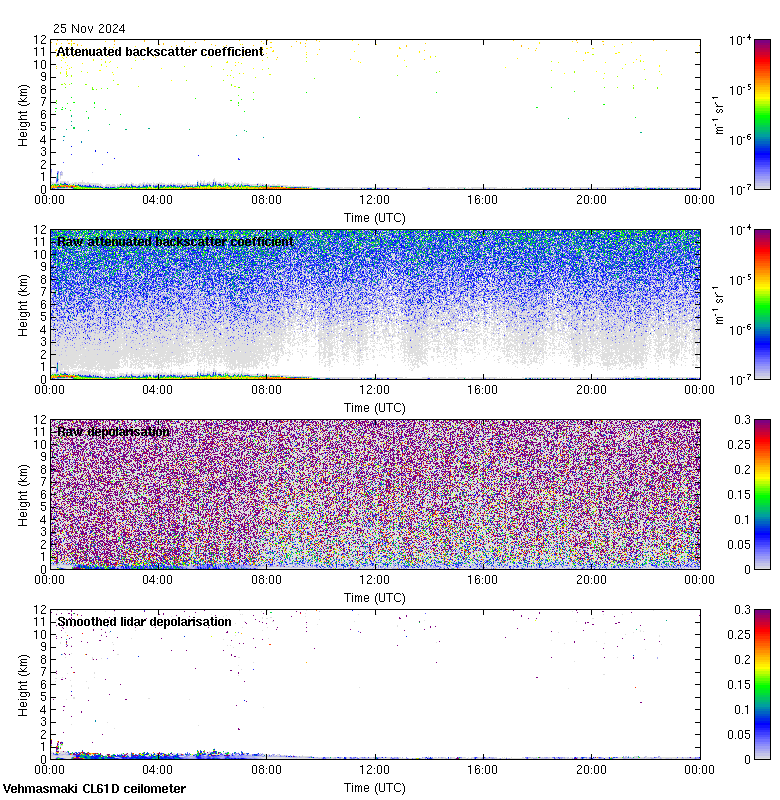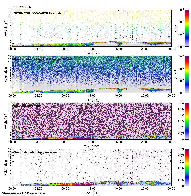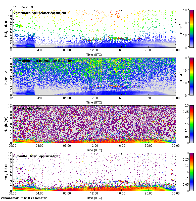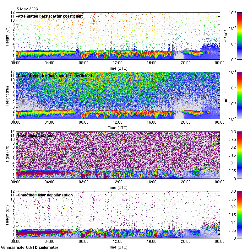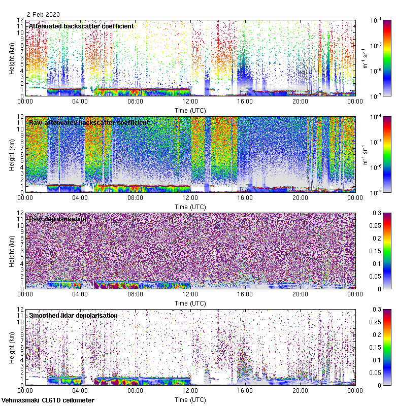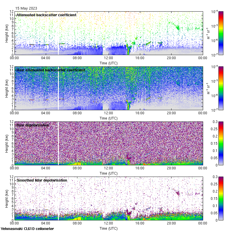 This page contains links to the daily Vehmasmaki Vaisala CL61D ceilometer images created at Kumpula.