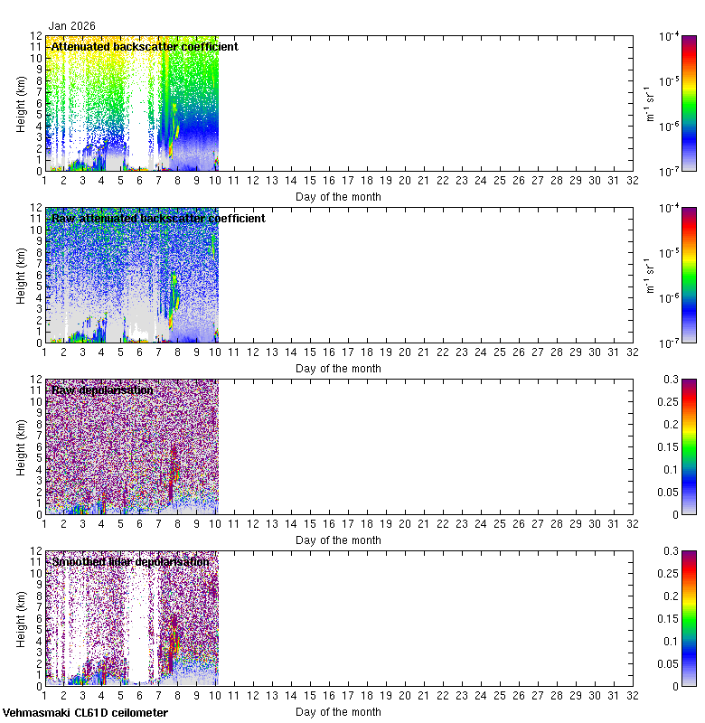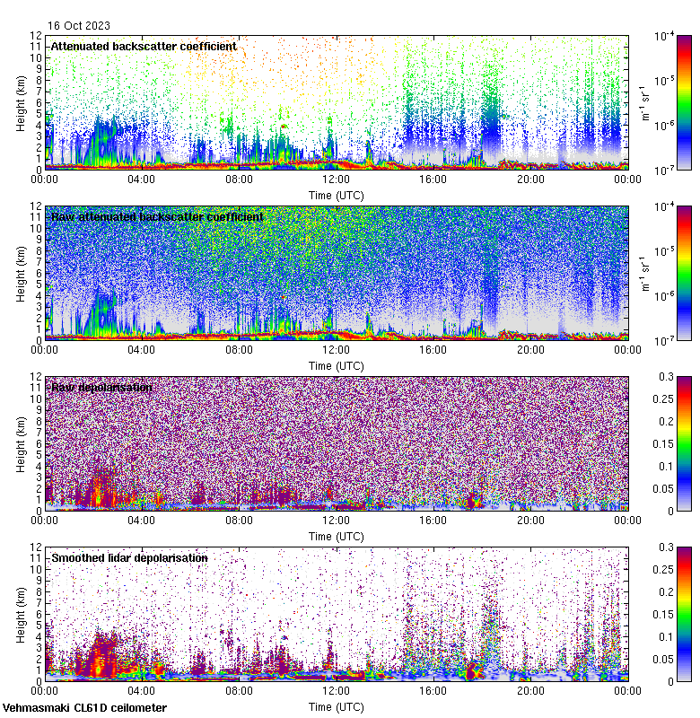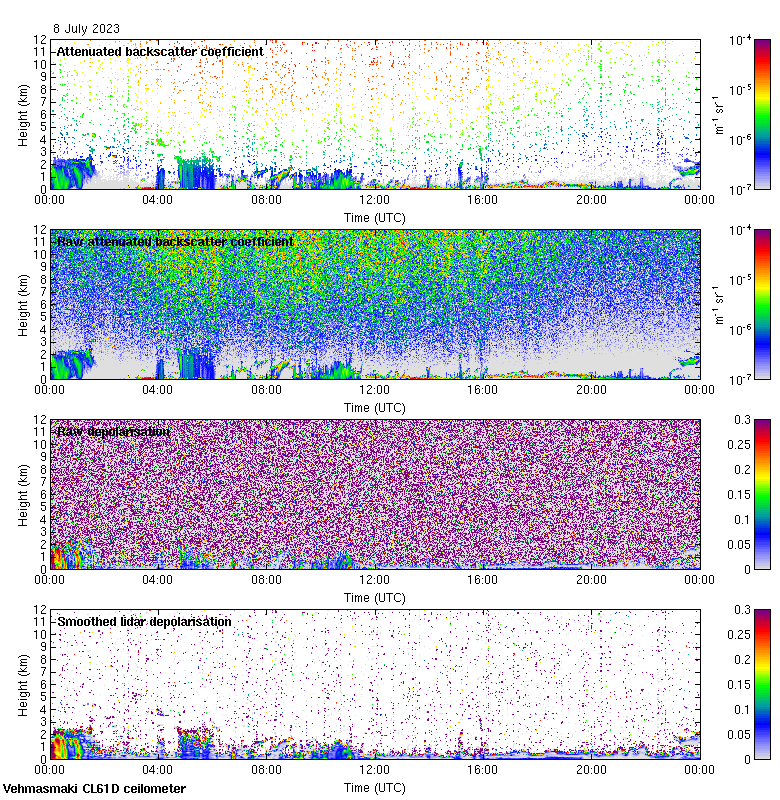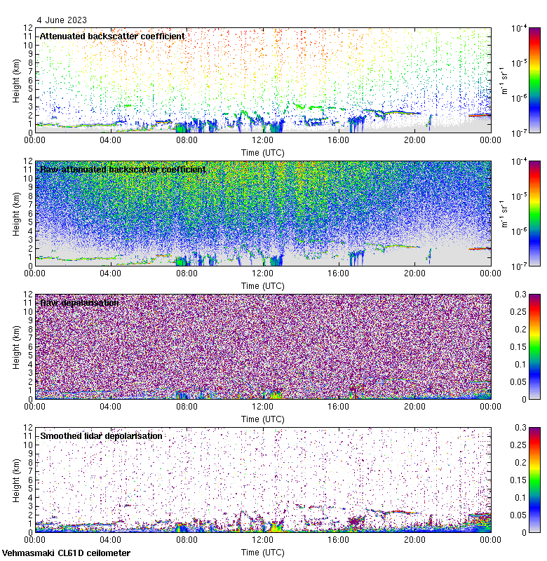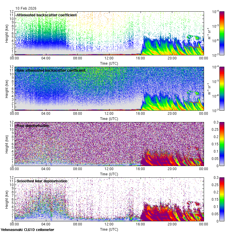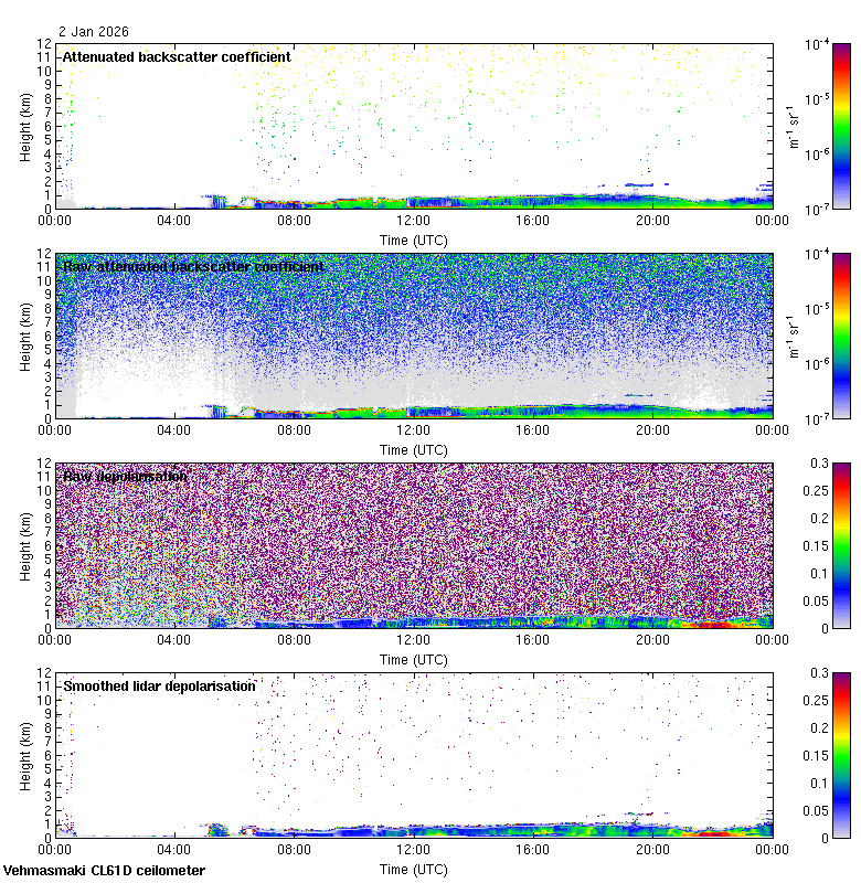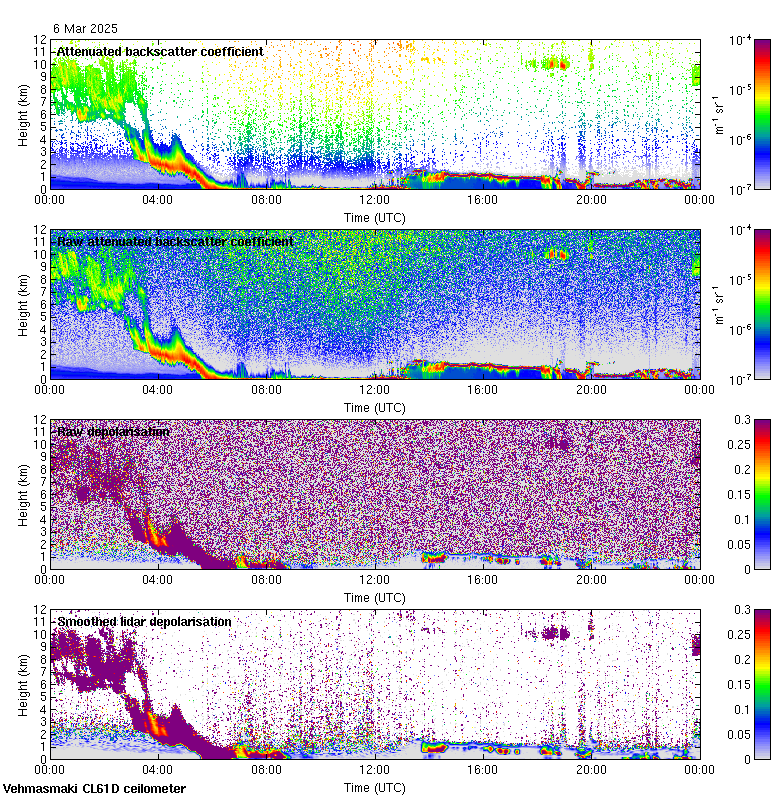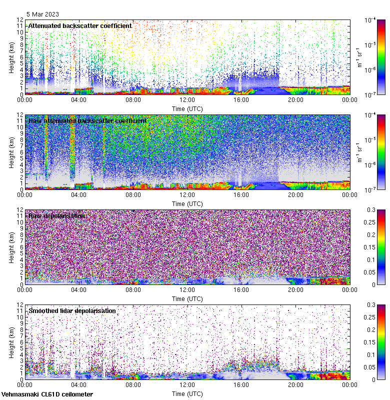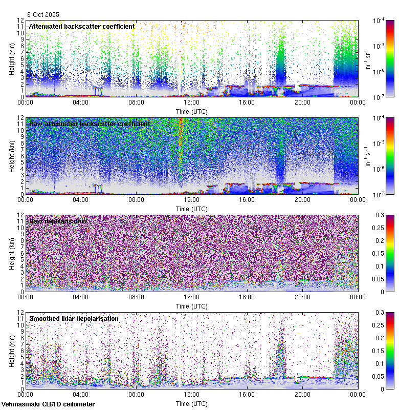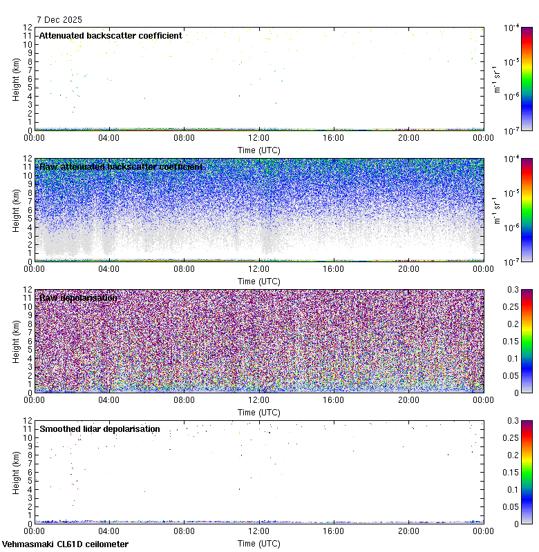 This page contains links to the daily Vehmasmaki Vaisala CL61D ceilometer images created at Kumpula.