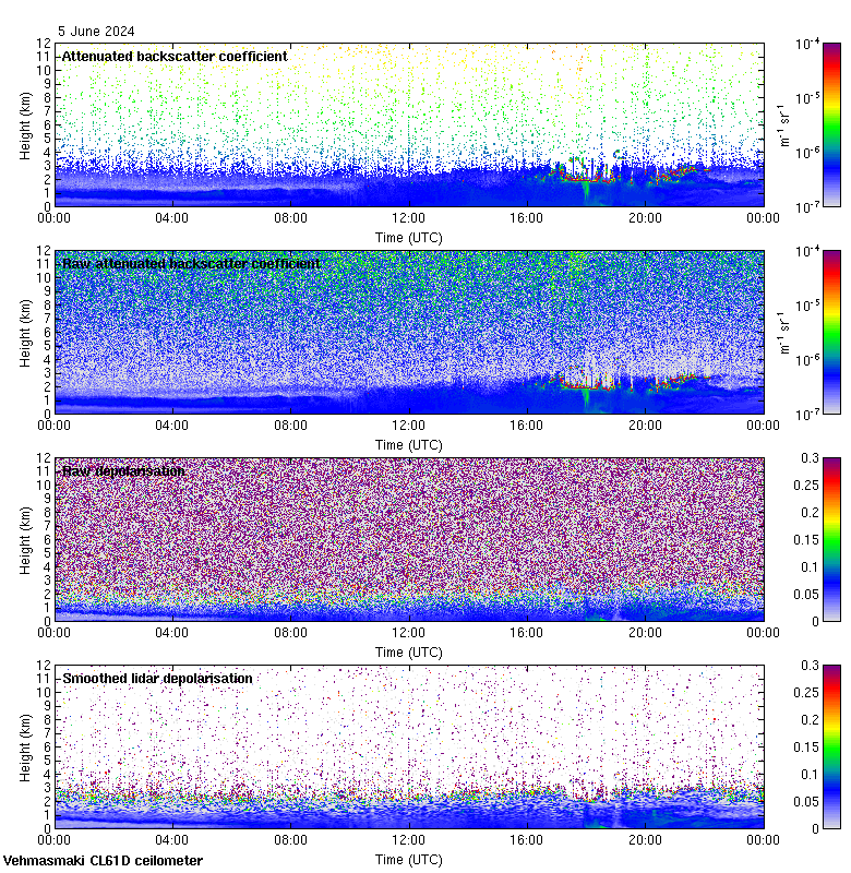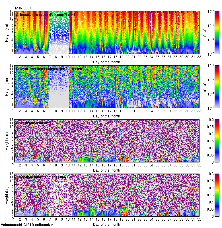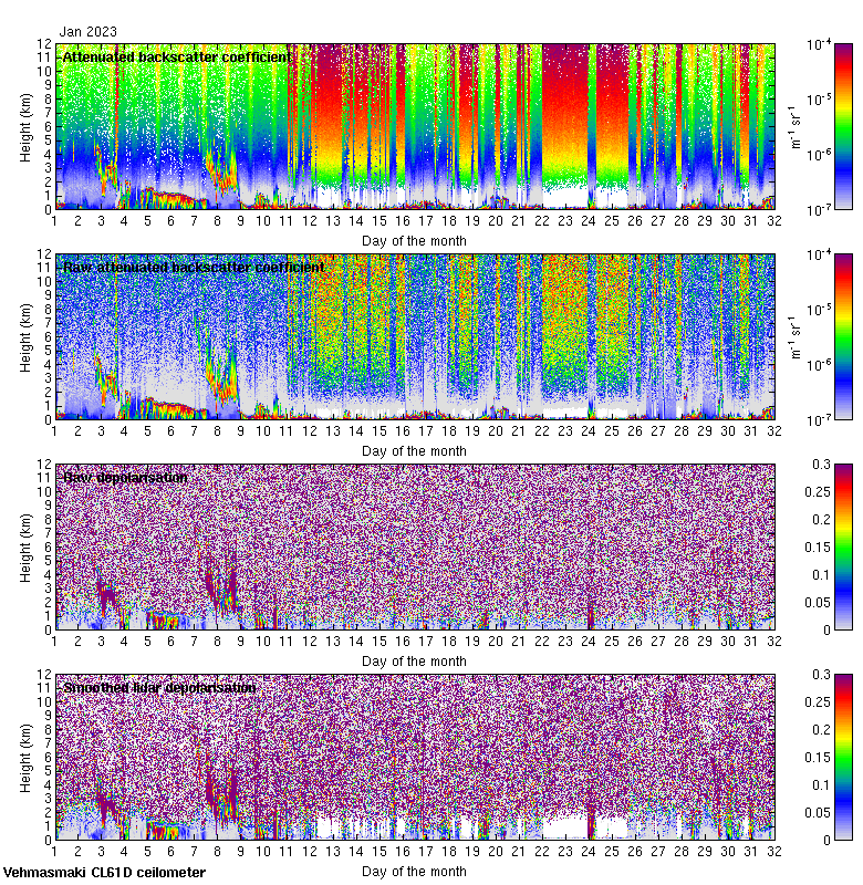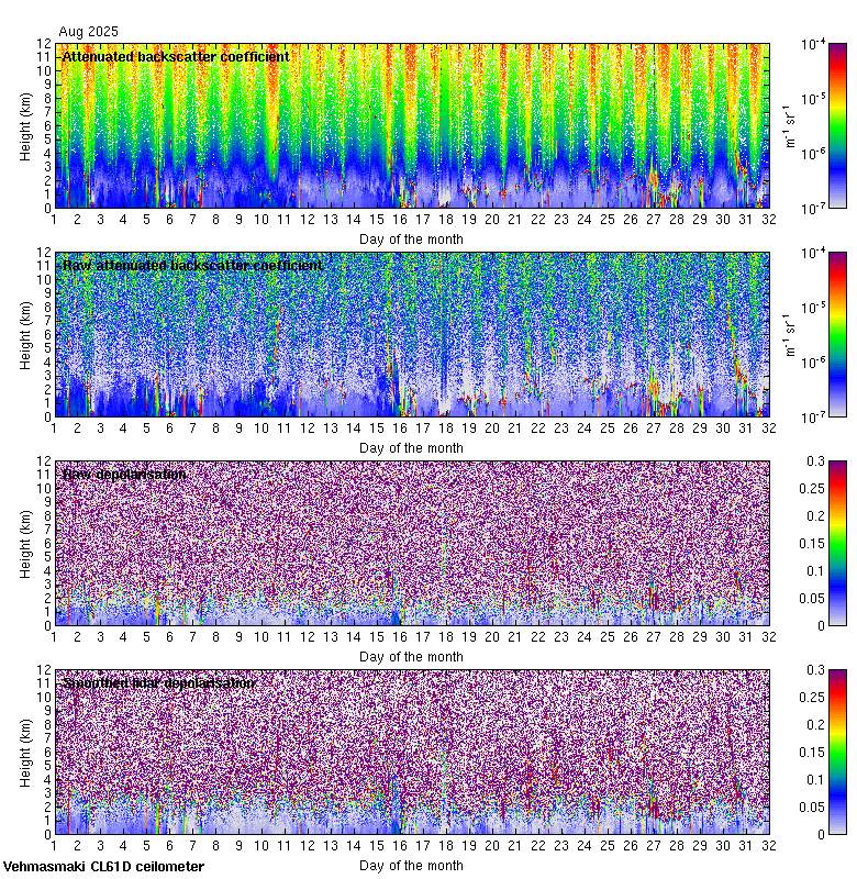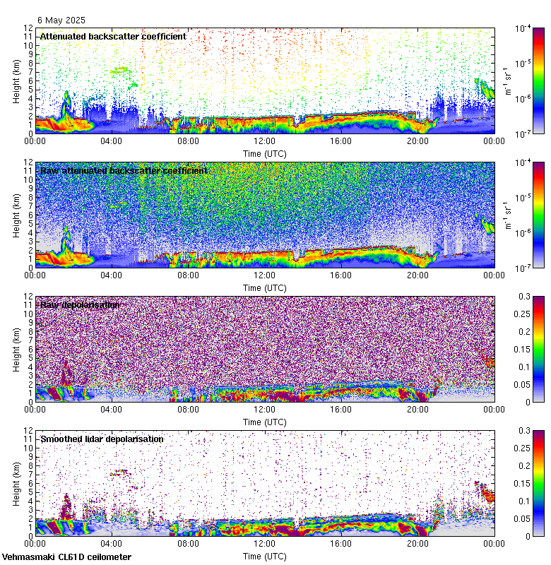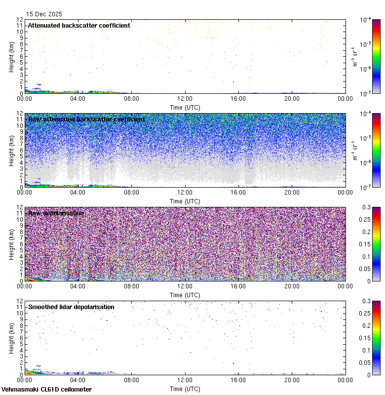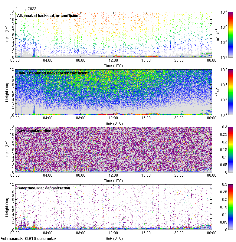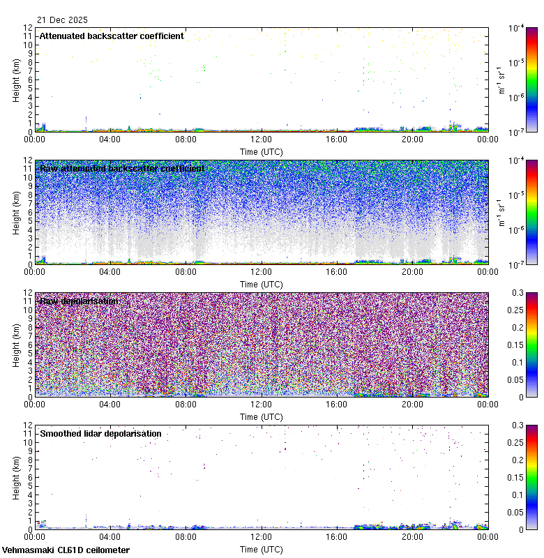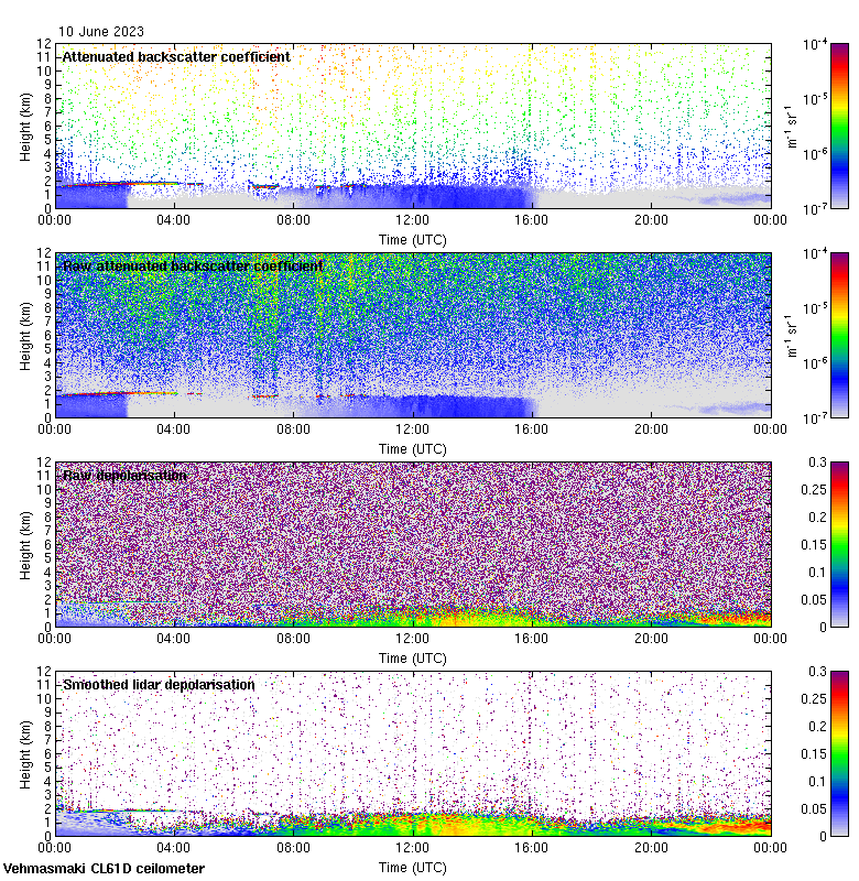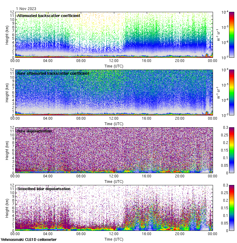 This page contains links to the daily Vehmasmaki Vaisala CL61D ceilometer images created at Kumpula.