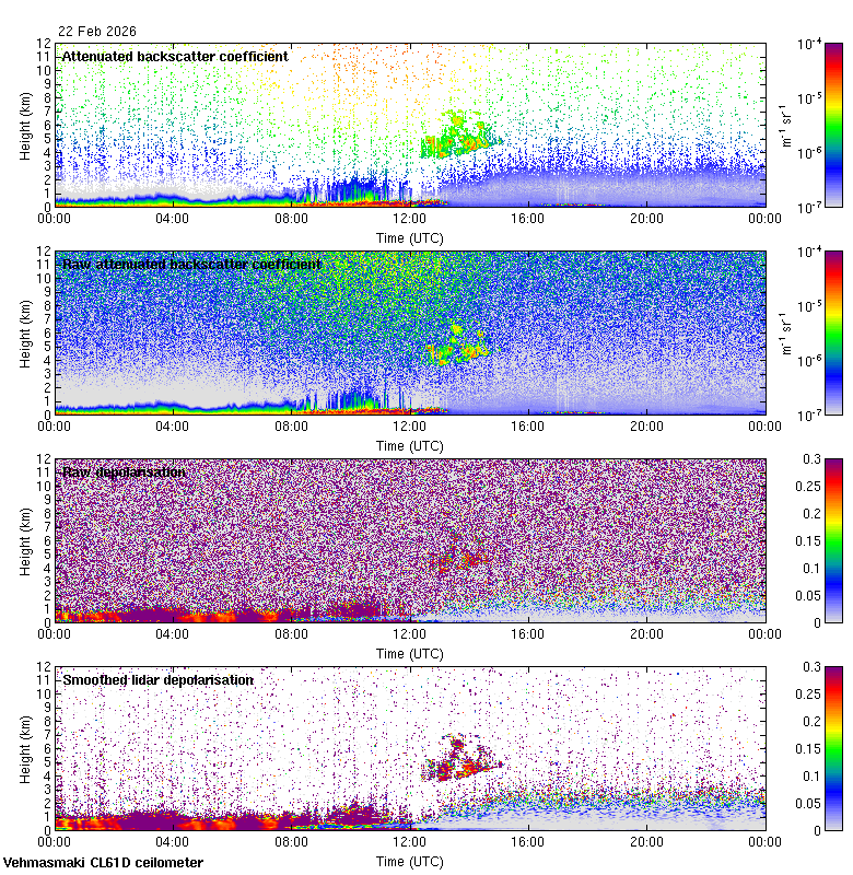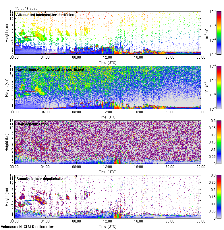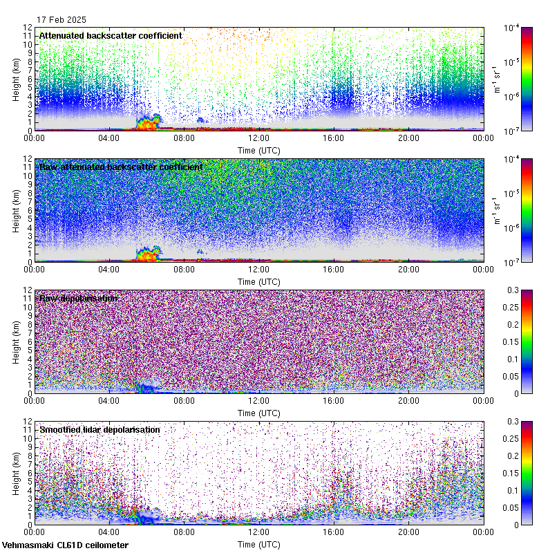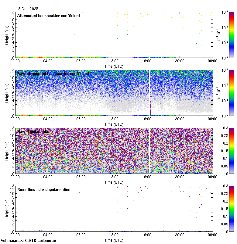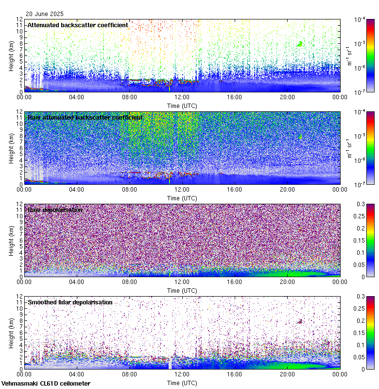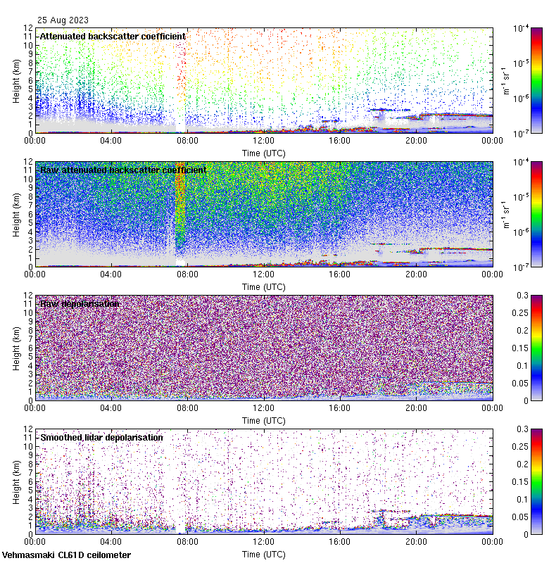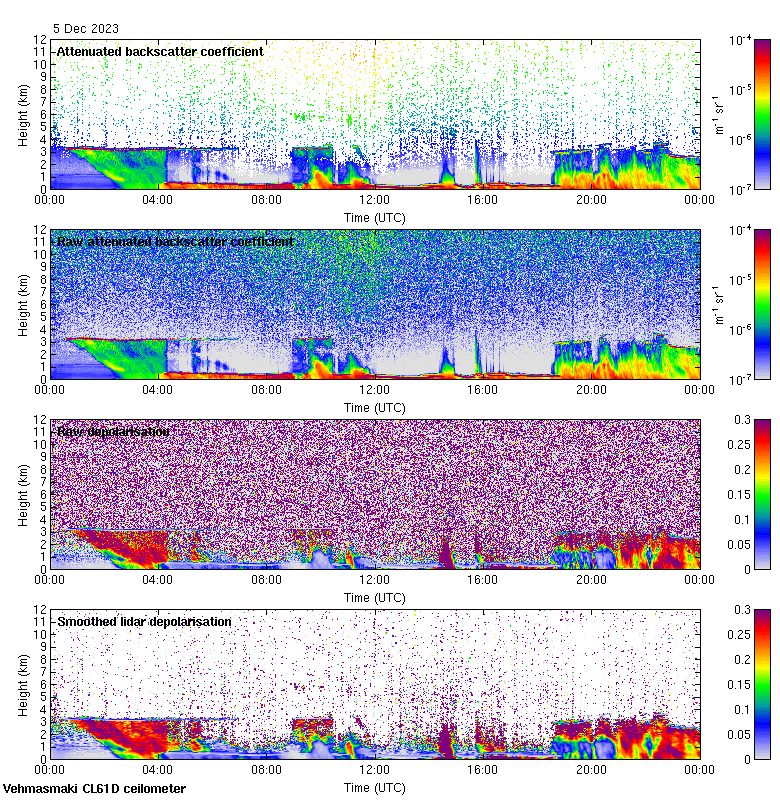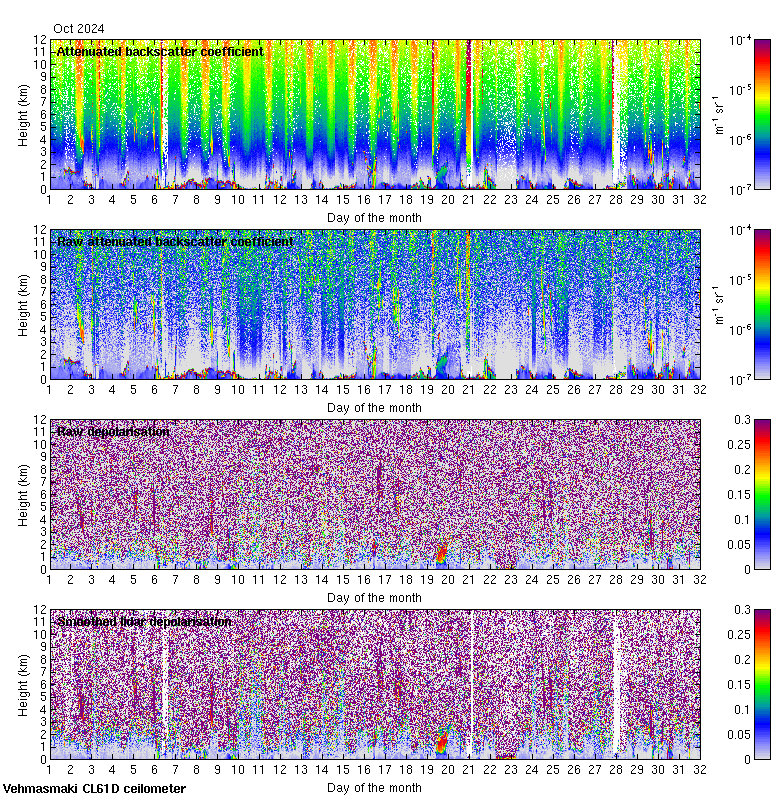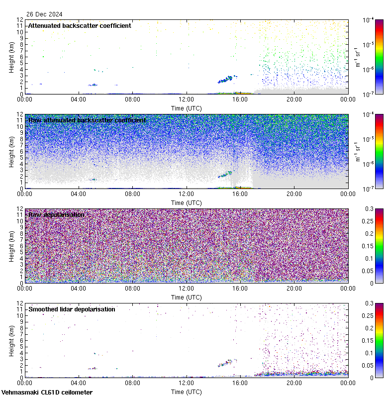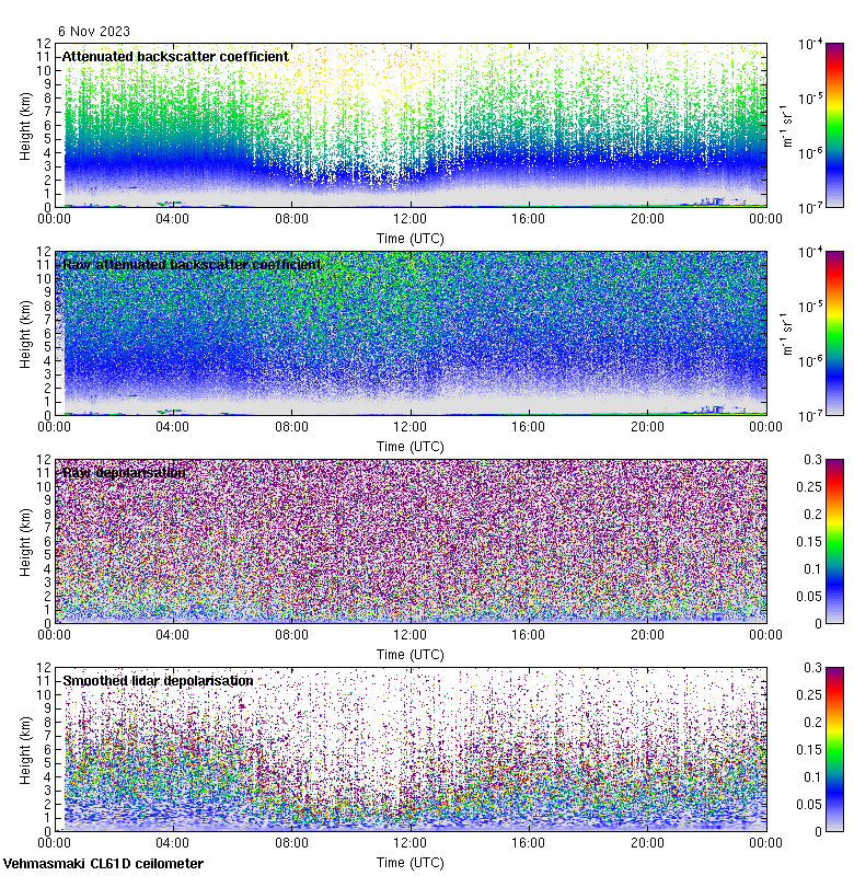 This page contains links to the daily Vehmasmaki Vaisala CL61D ceilometer images created at Kumpula.