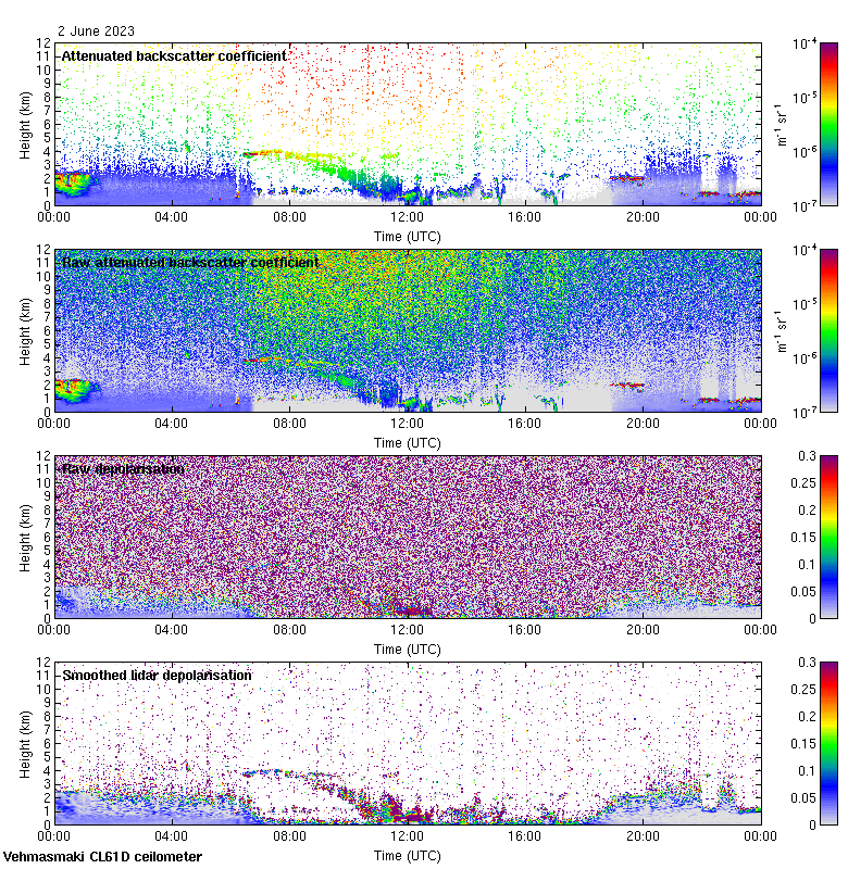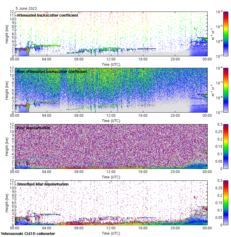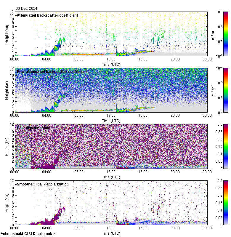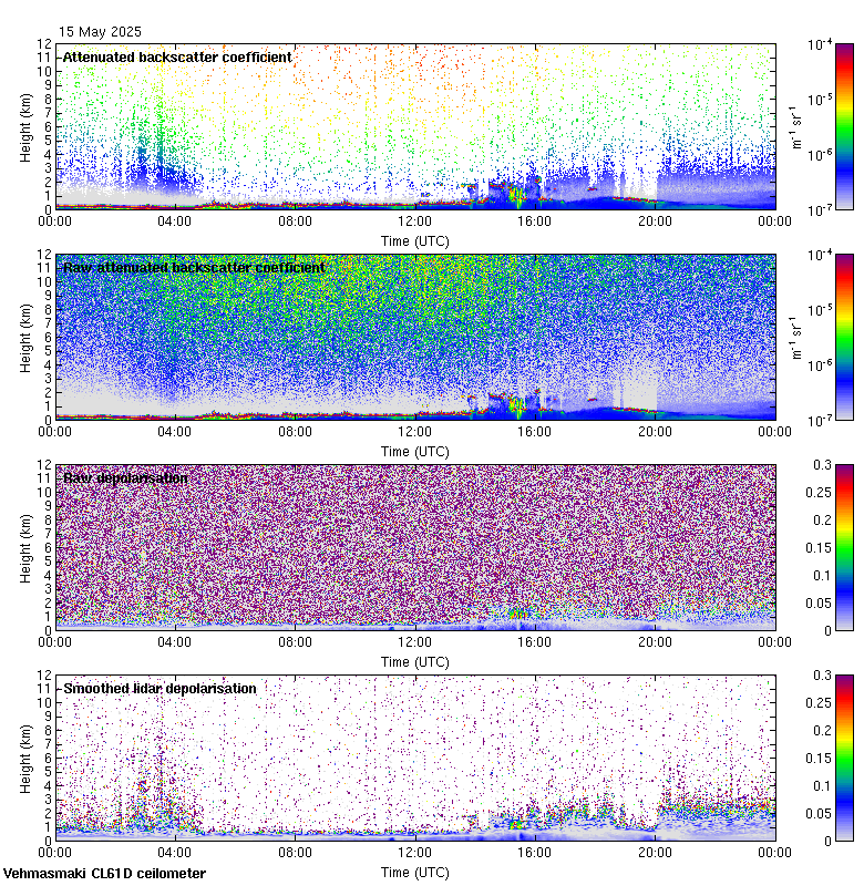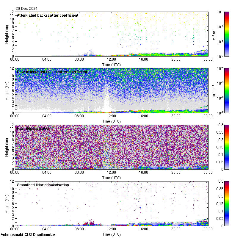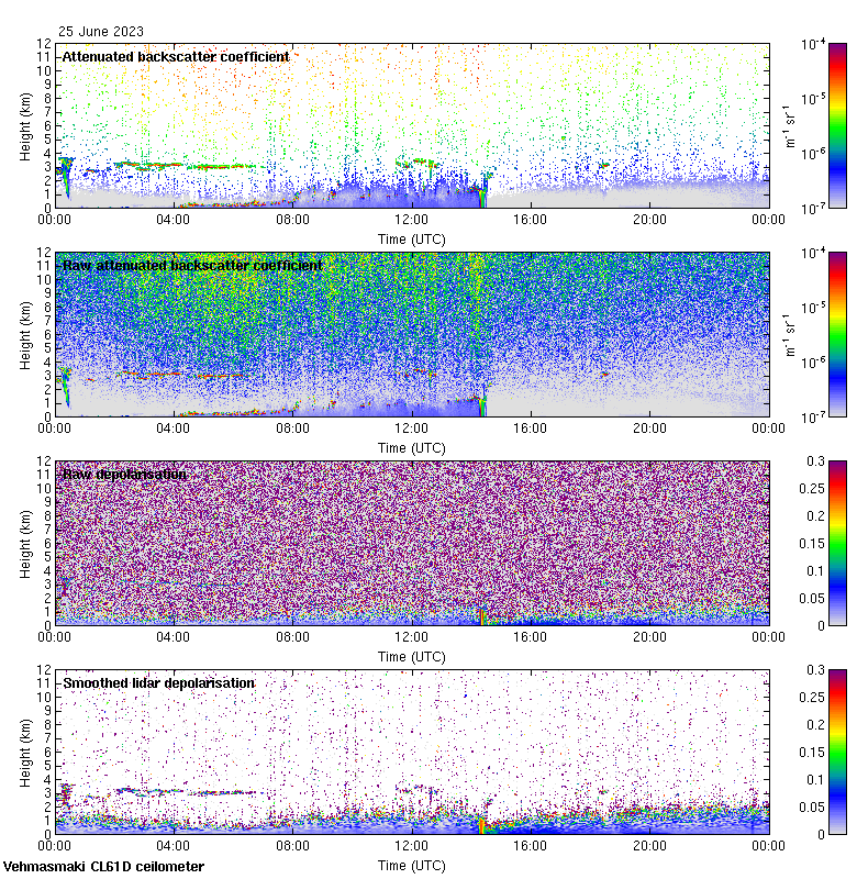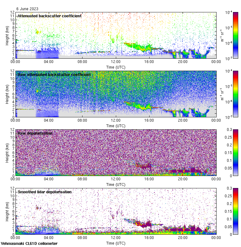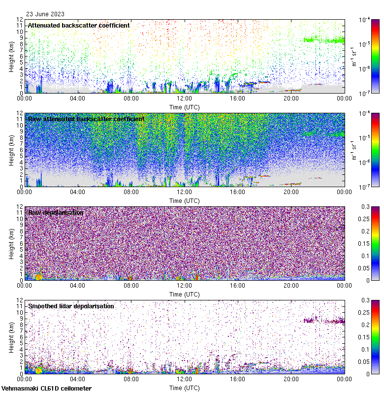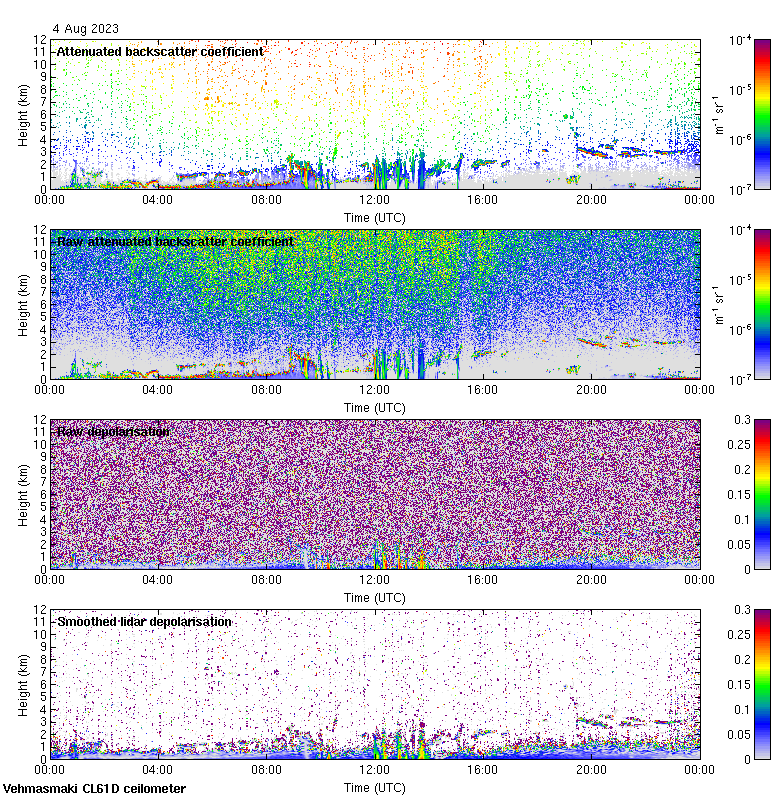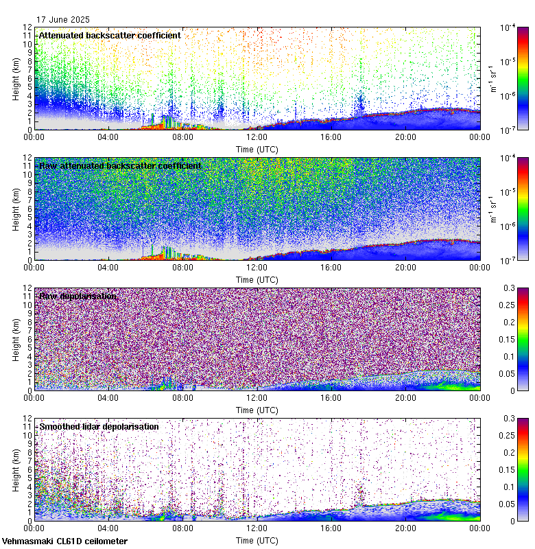 This page contains links to the daily Vehmasmaki Vaisala CL61D ceilometer images created at Kumpula.