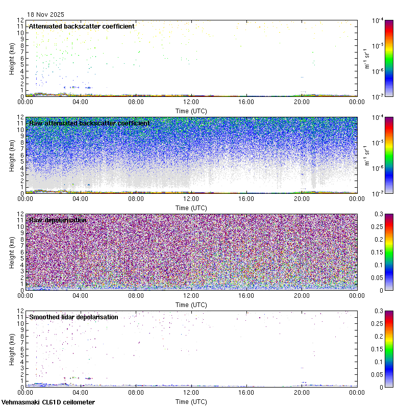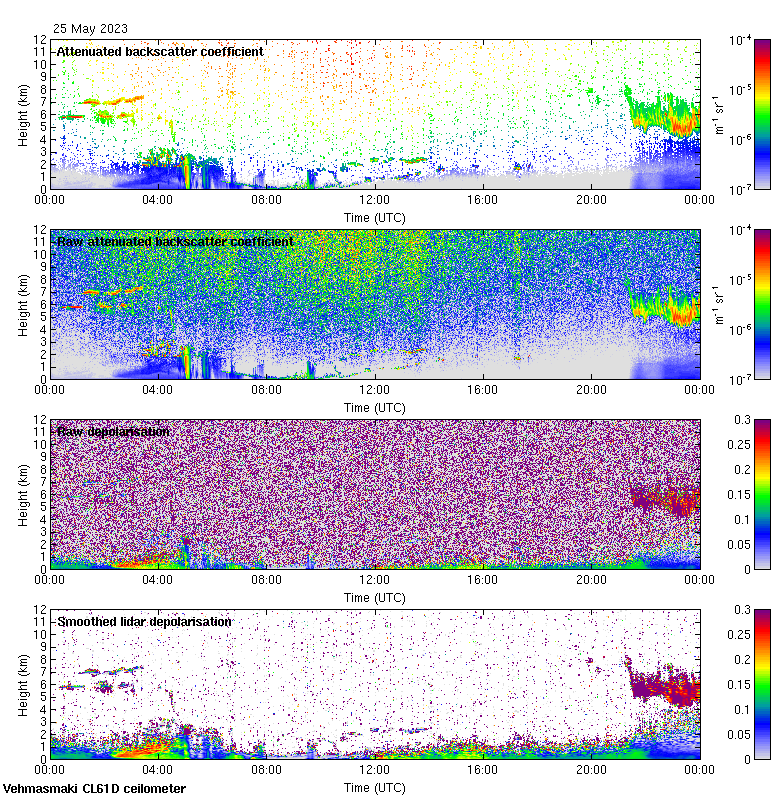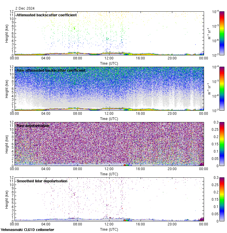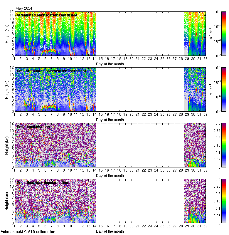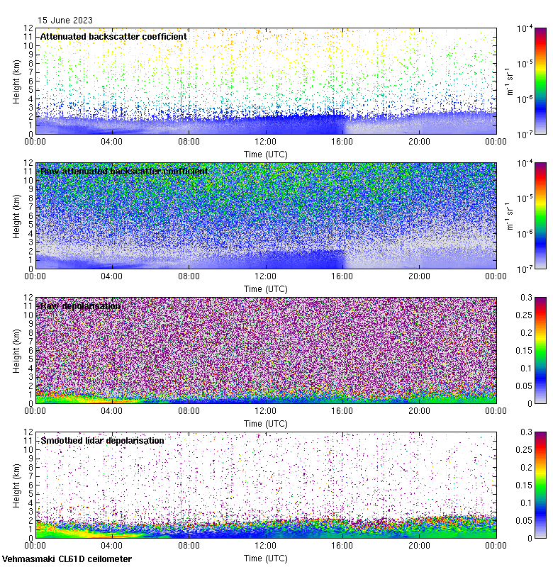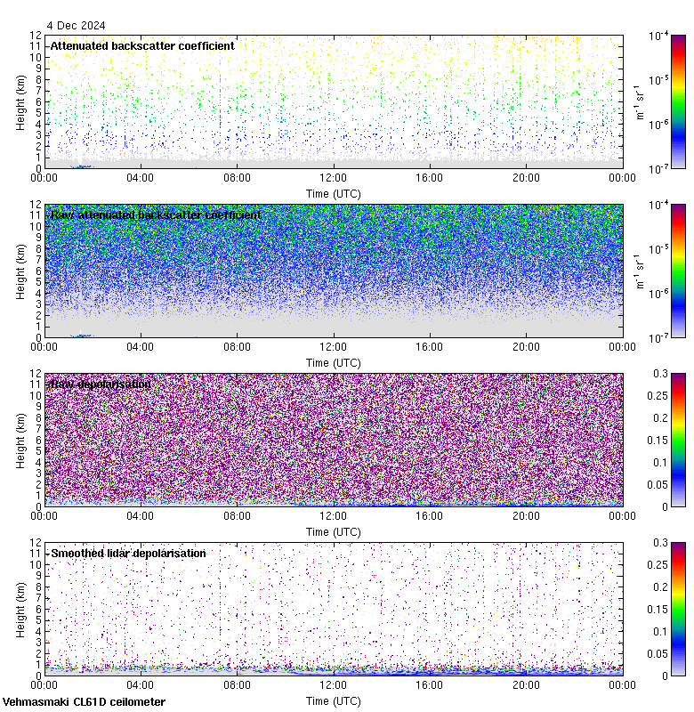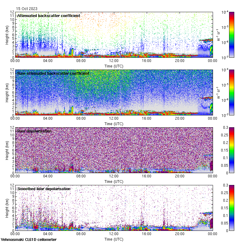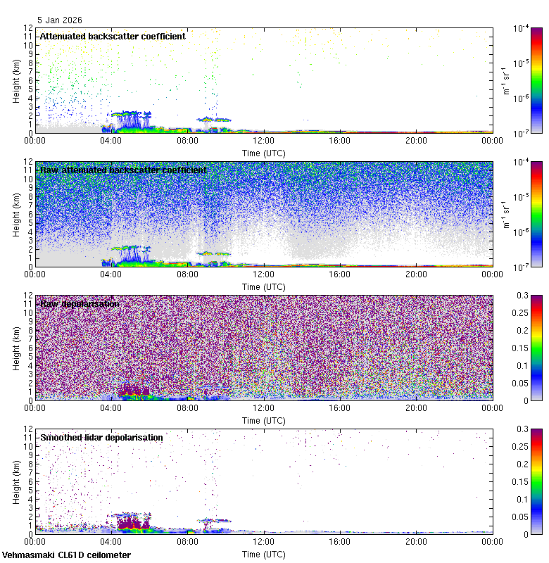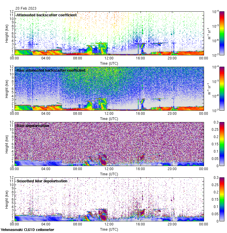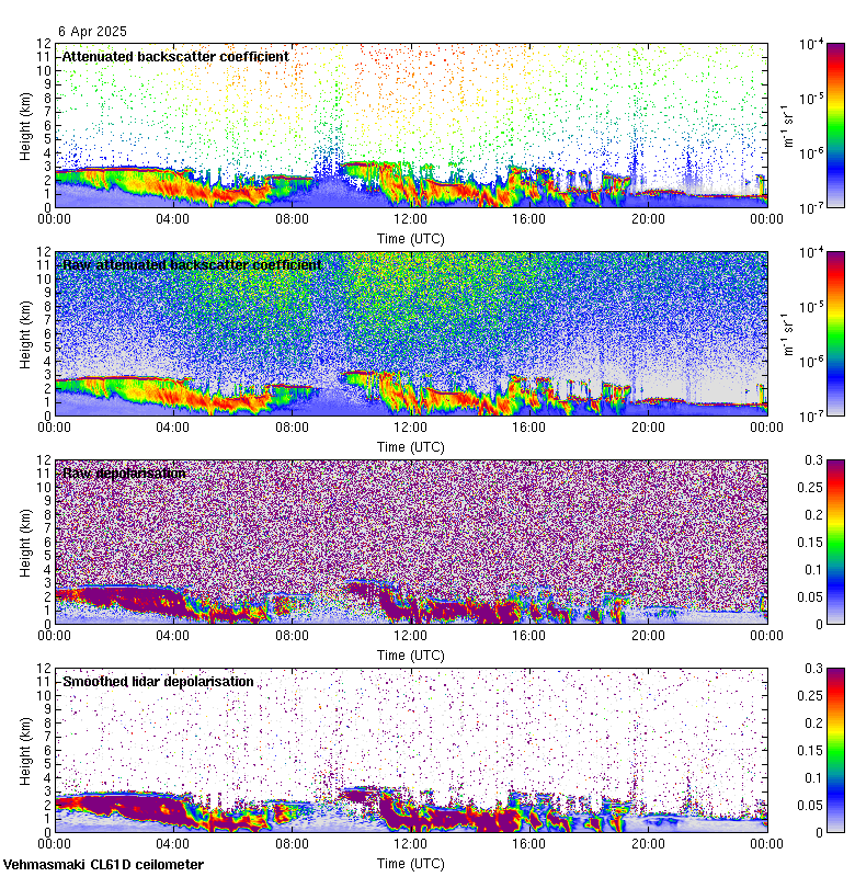 This page contains links to the daily Vehmasmaki Vaisala CL61D ceilometer images created at Kumpula.