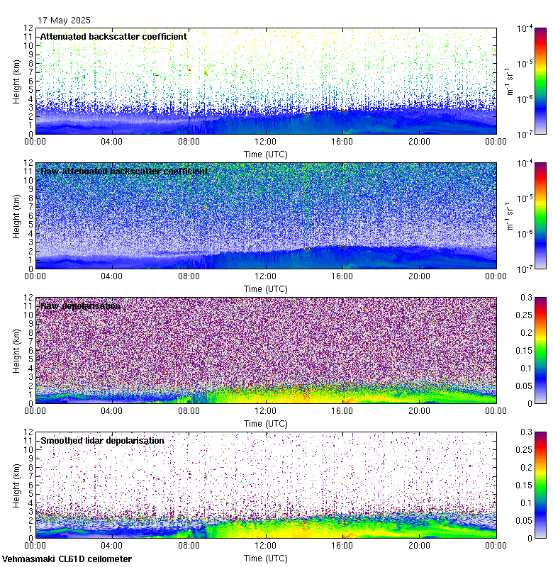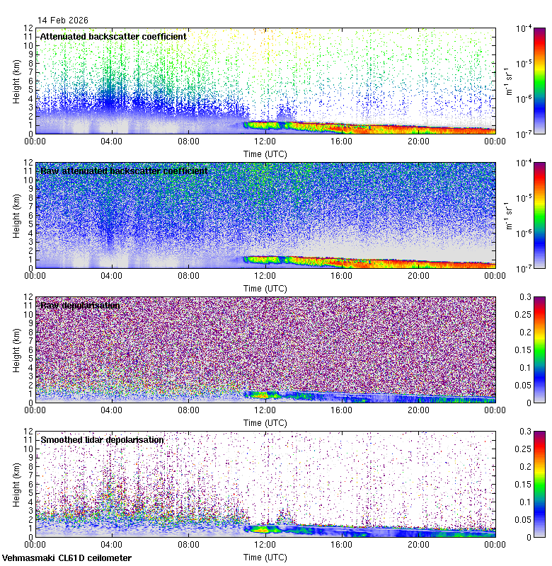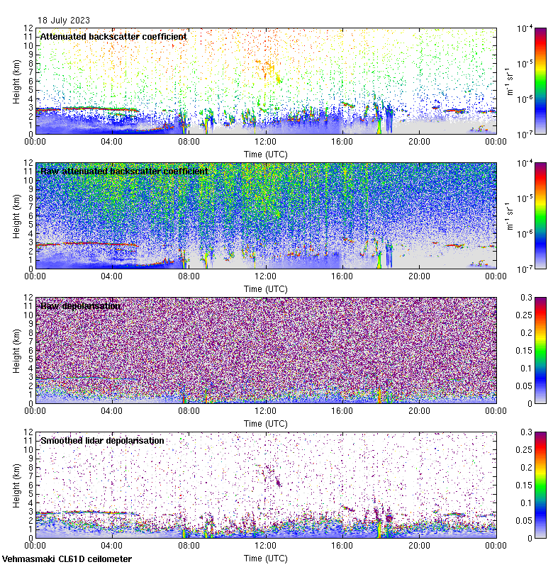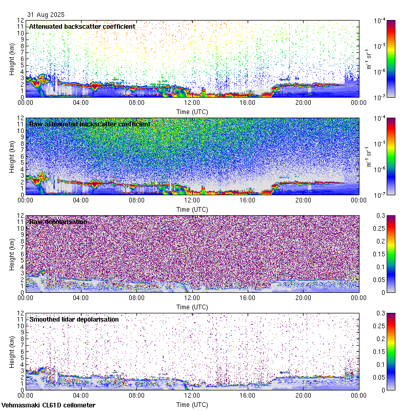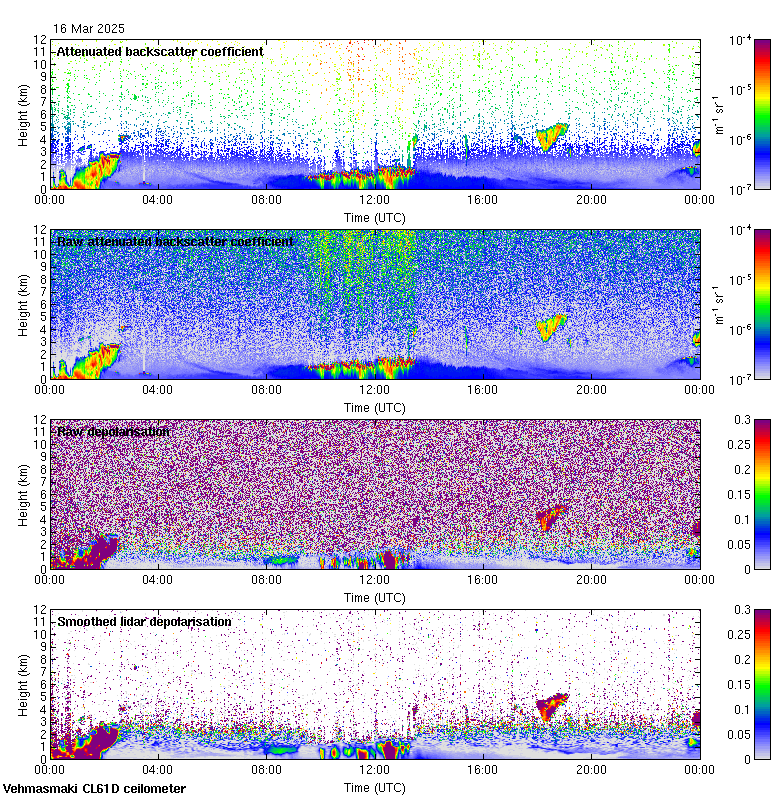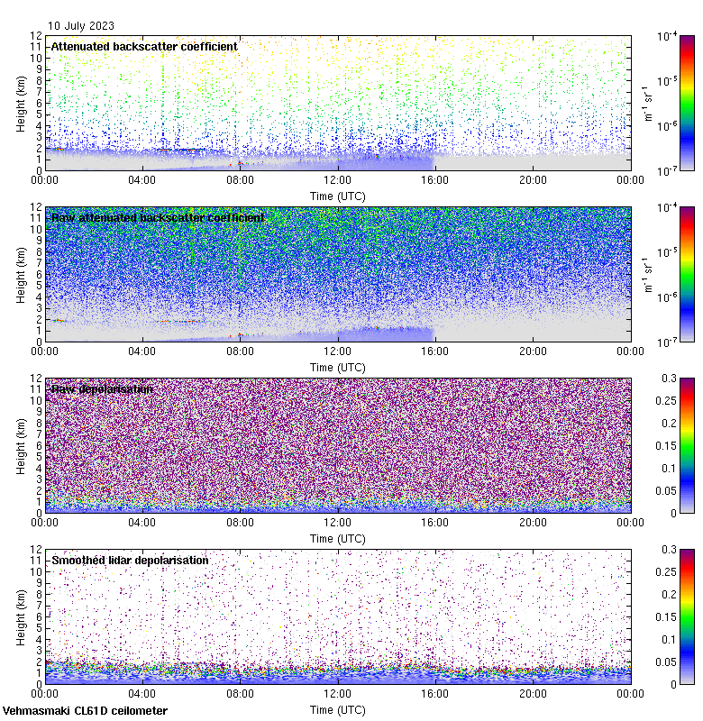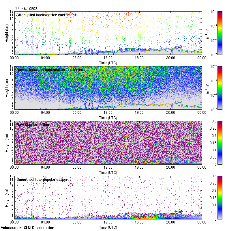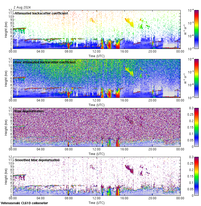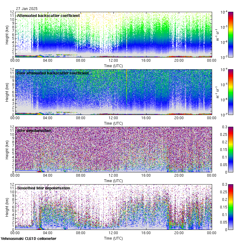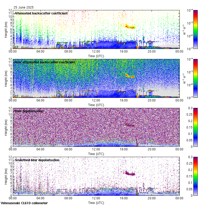 This page contains links to the daily Vehmasmaki Vaisala CL61D ceilometer images created at Kumpula.
