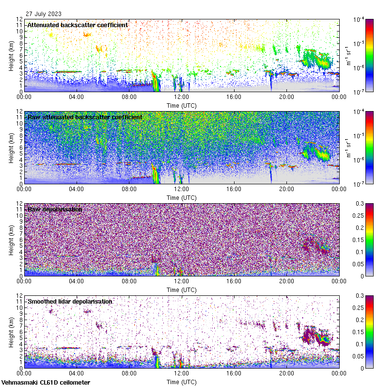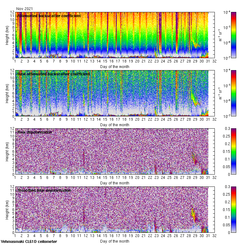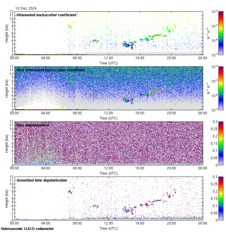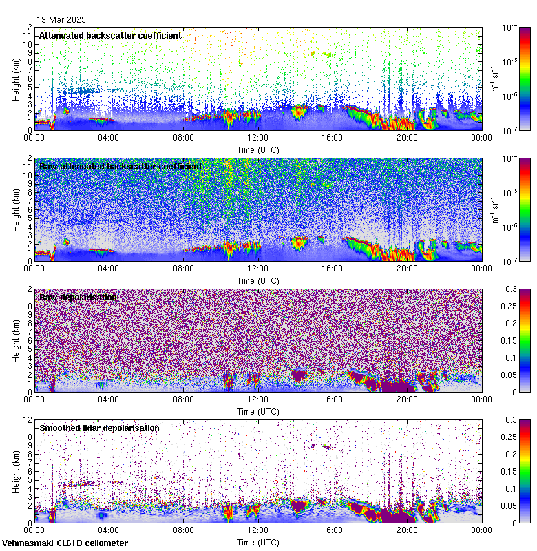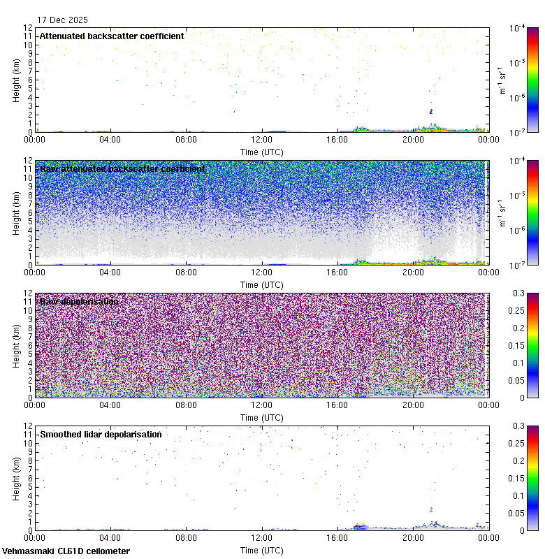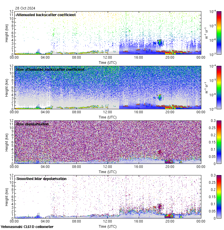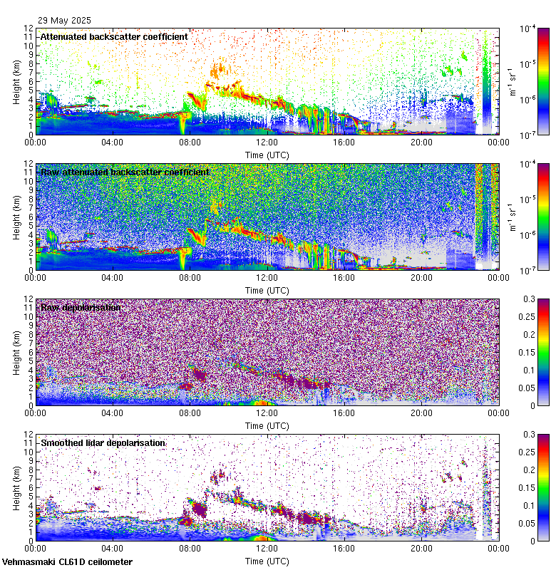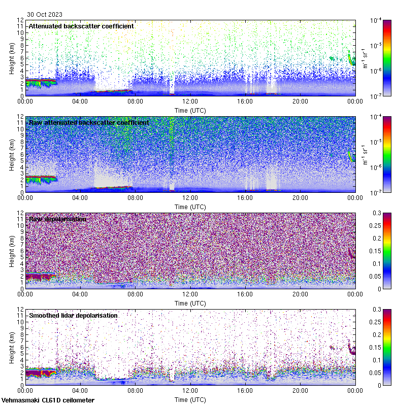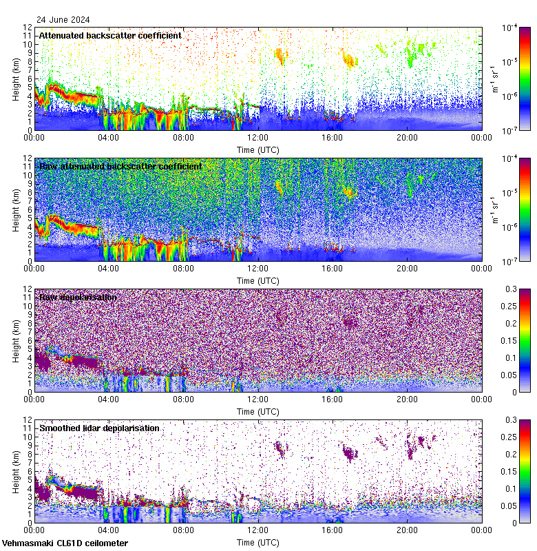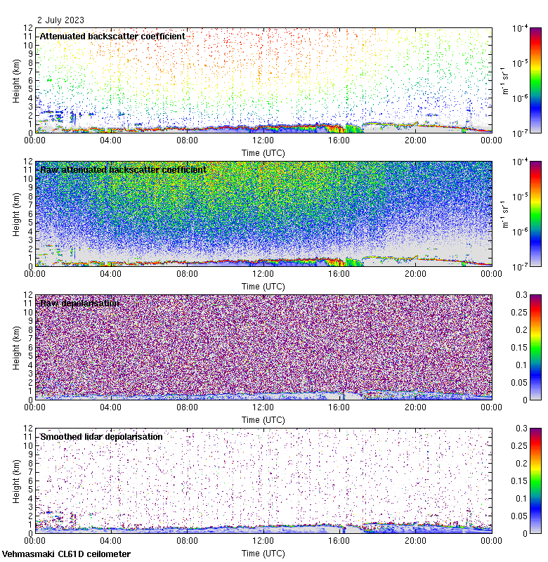This page contains links to the daily Vehmasmaki Vaisala CL61D ceilometer images created at Kumpula.