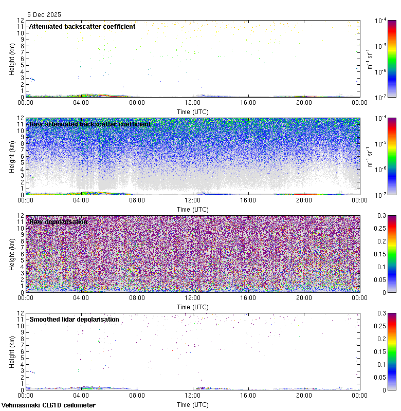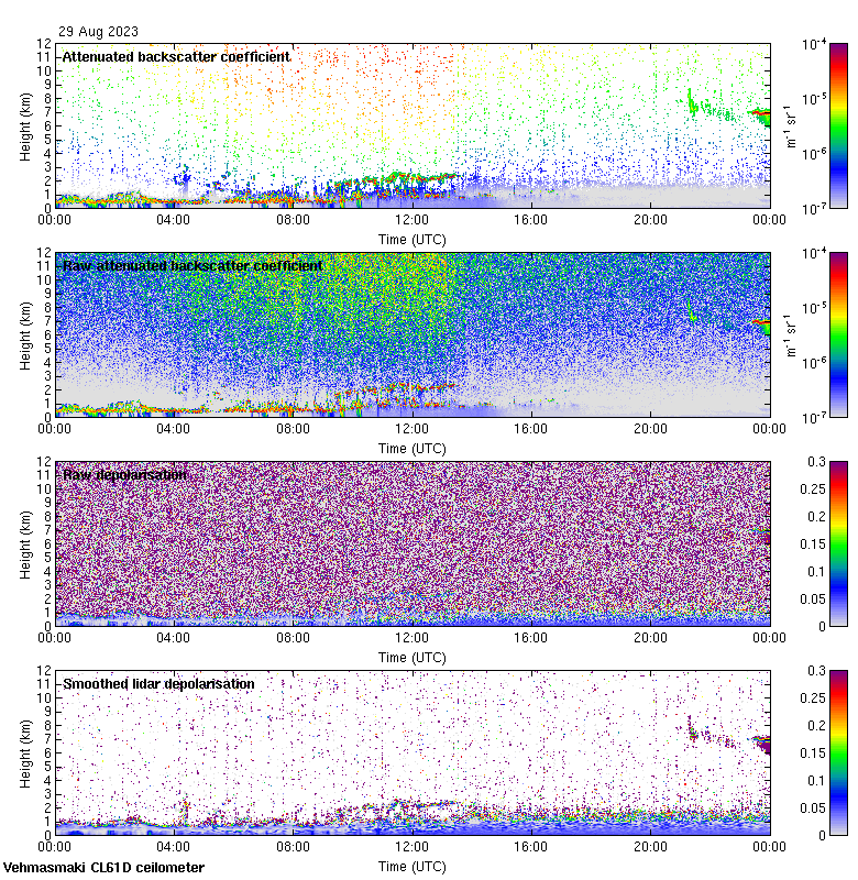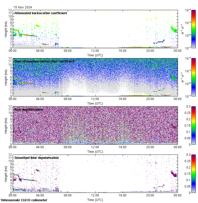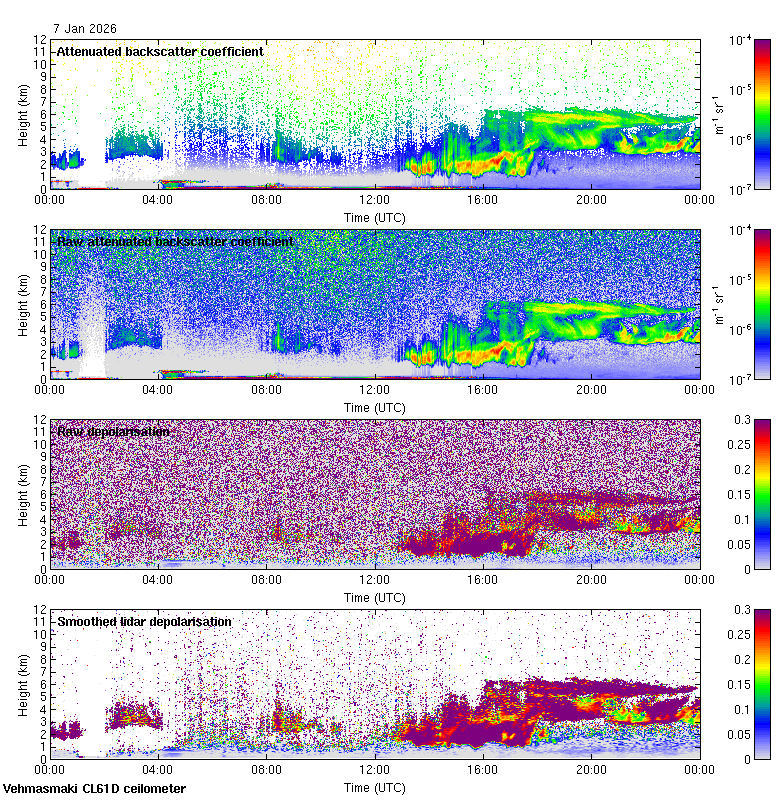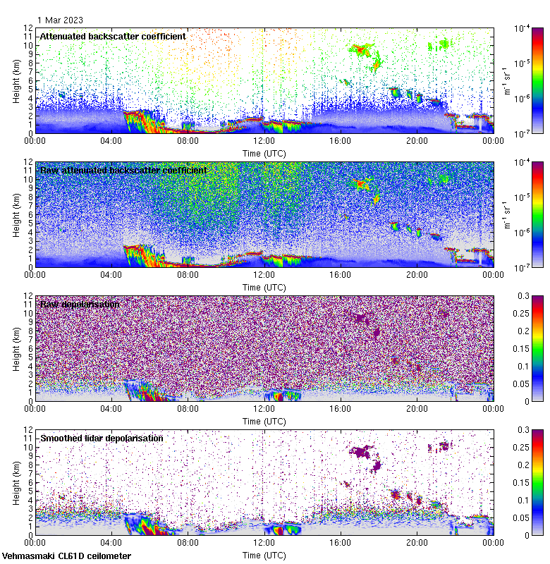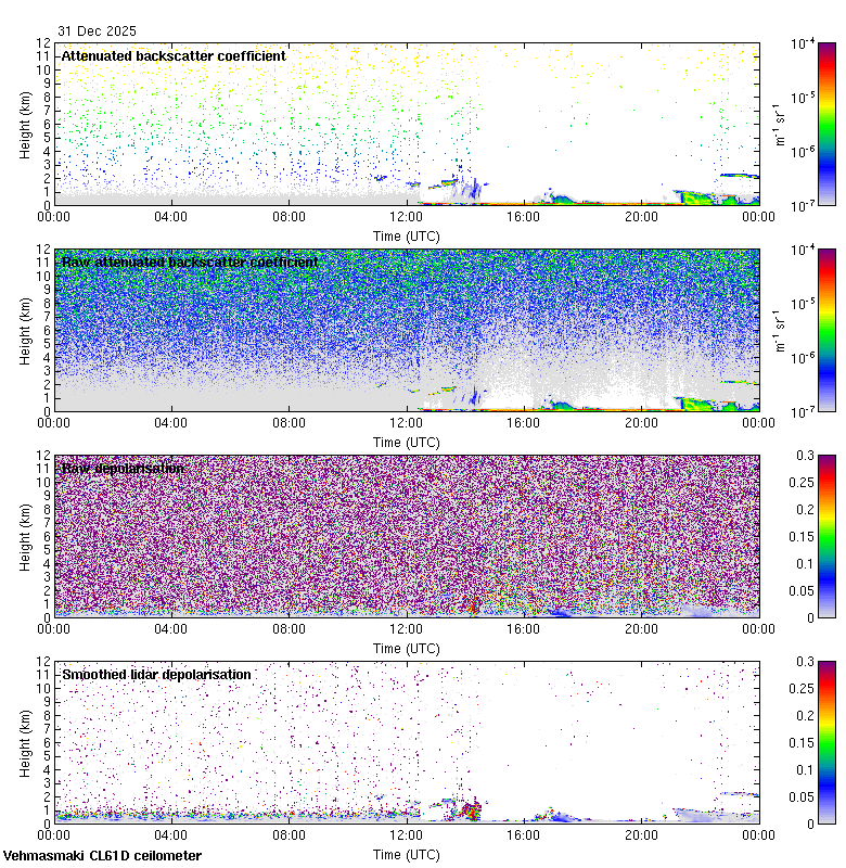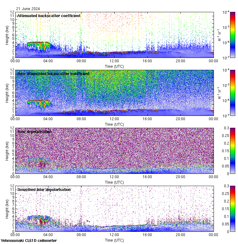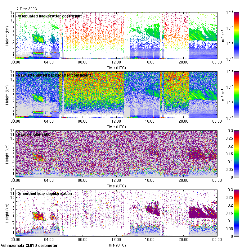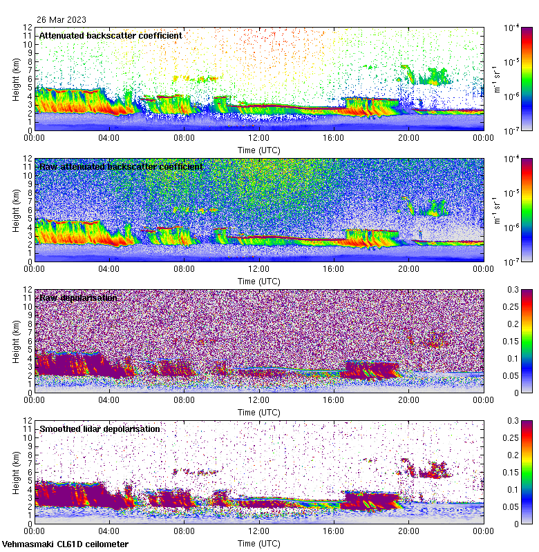 This page contains links to the daily Vehmasmaki Vaisala CL61D ceilometer images created at Kumpula.