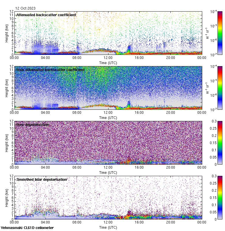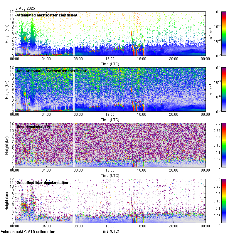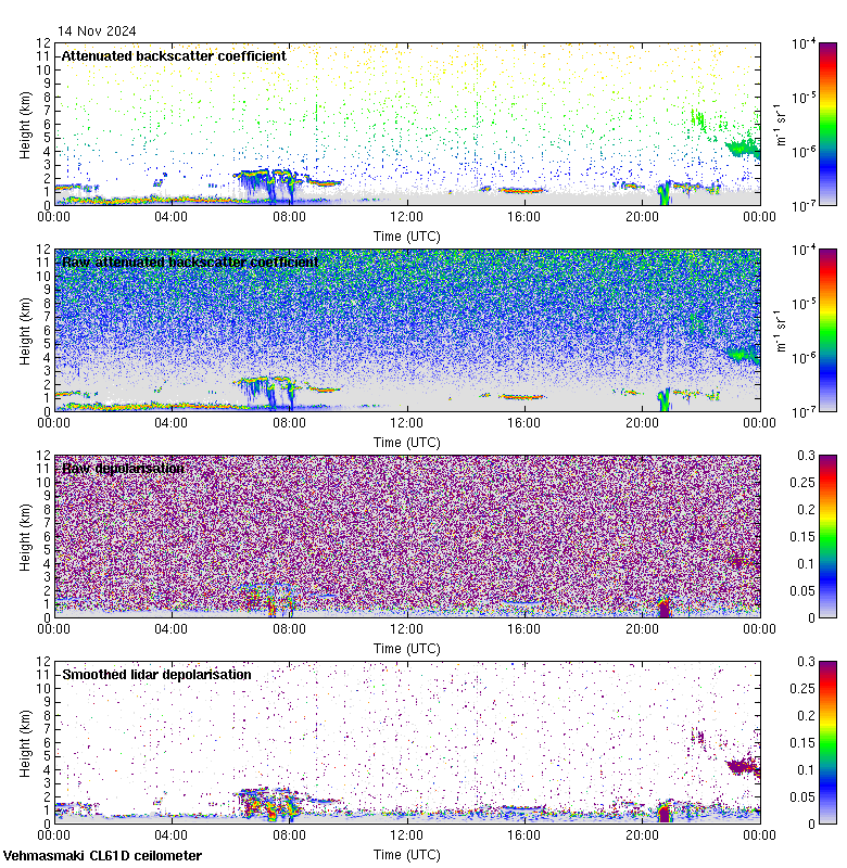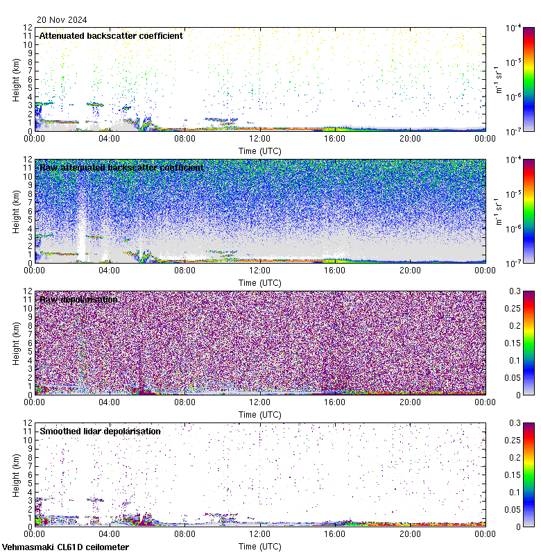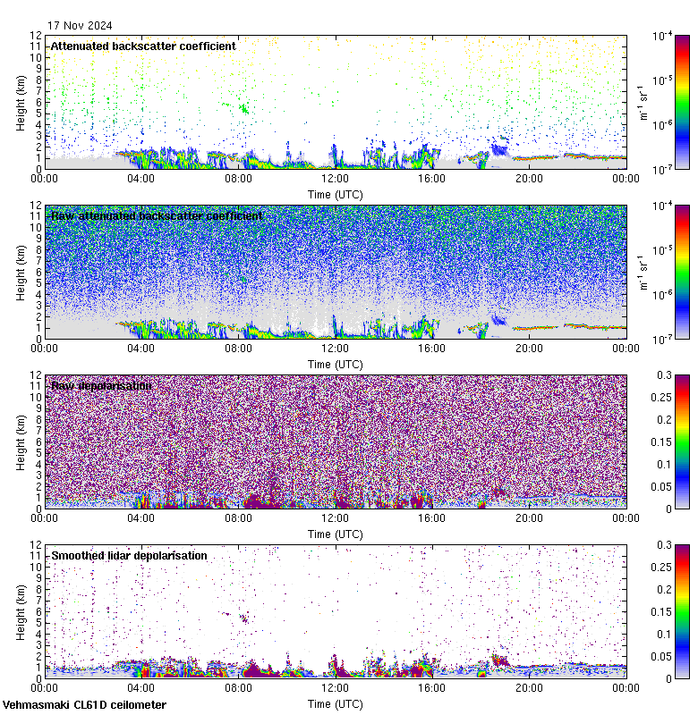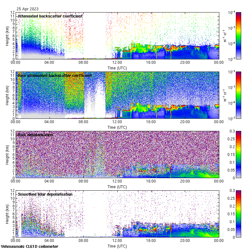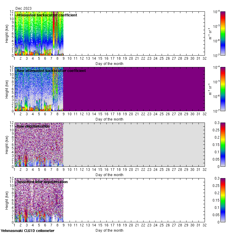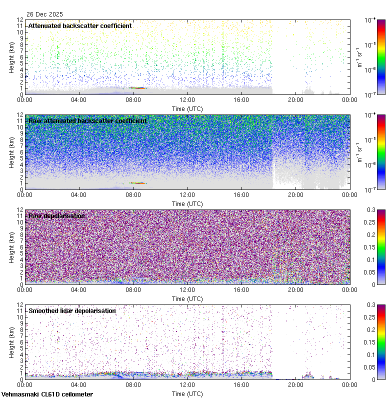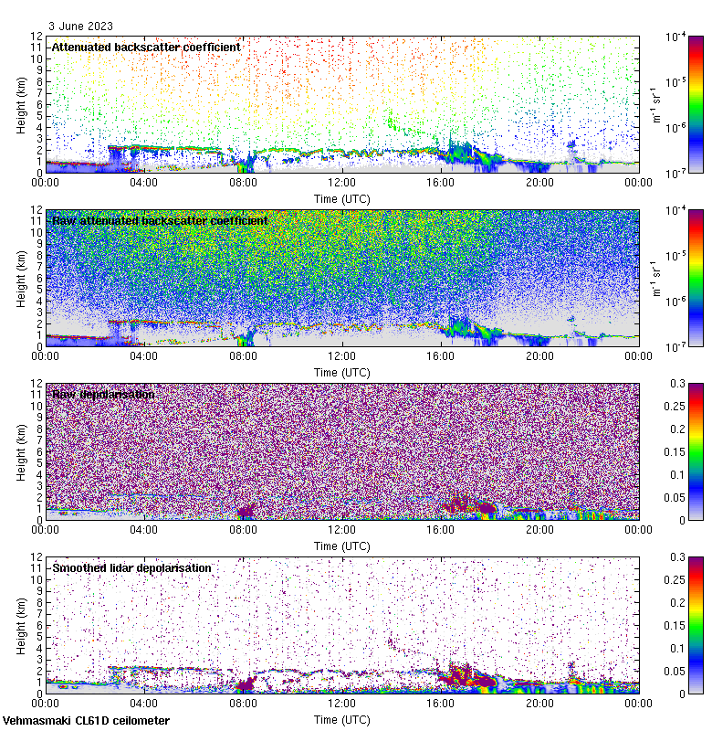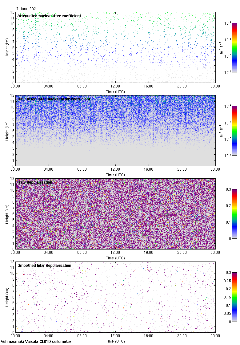 This page contains links to the daily Vehmasmaki Vaisala CL61D ceilometer images created at Kumpula.