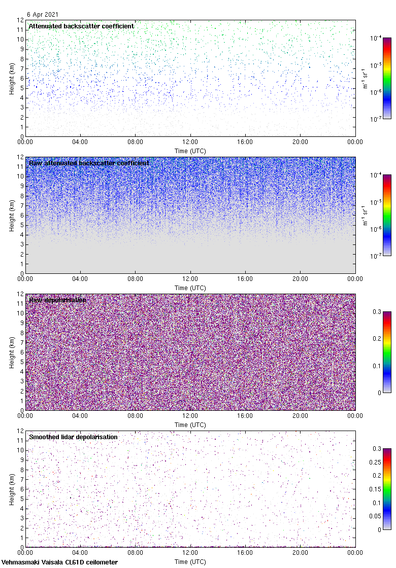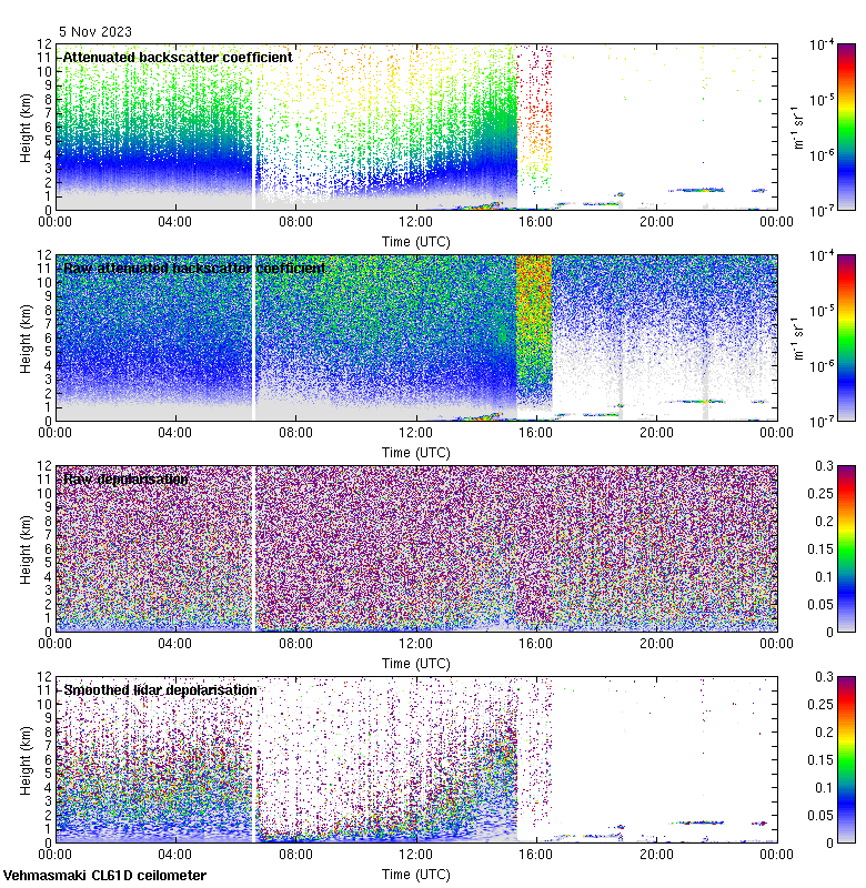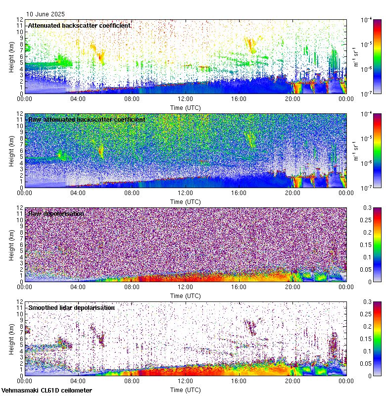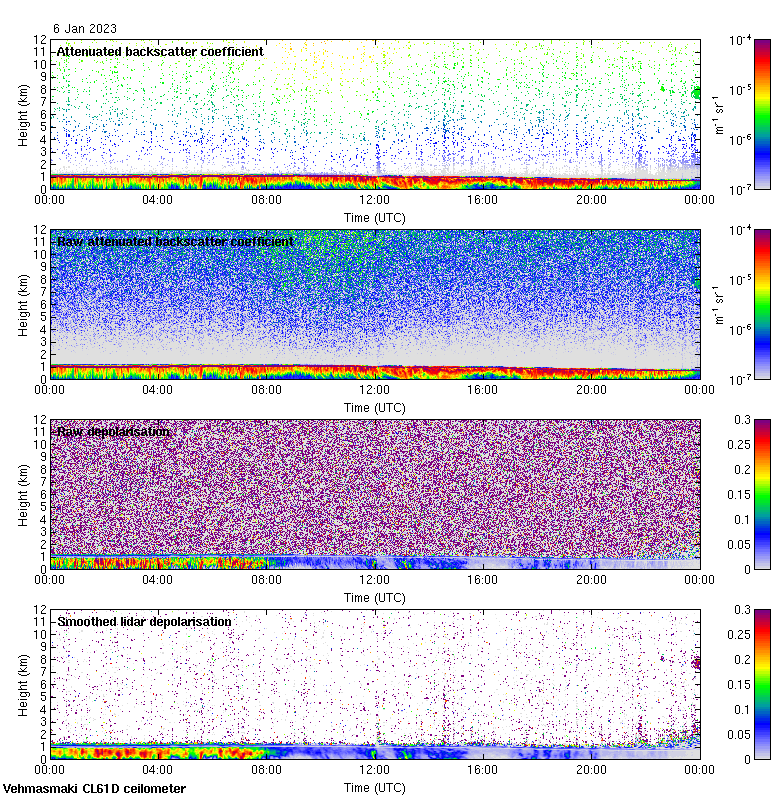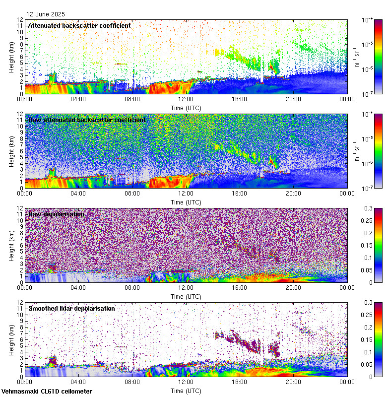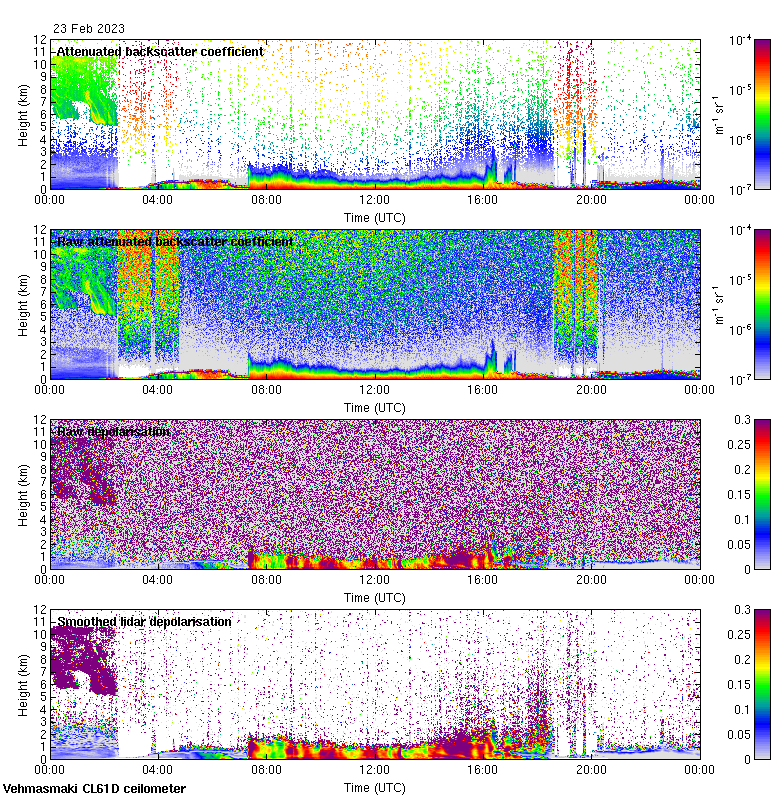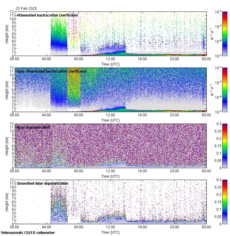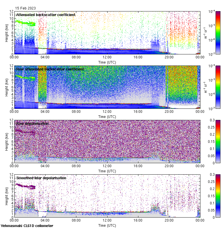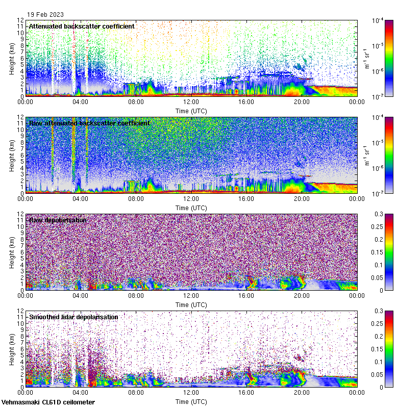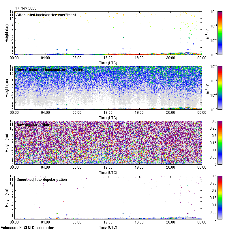 This page contains links to the daily Vehmasmaki Vaisala CL61D ceilometer images created at Kumpula.