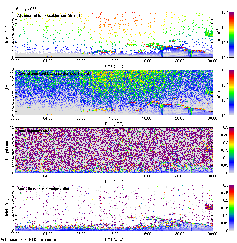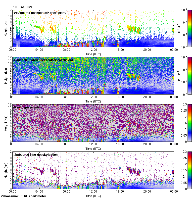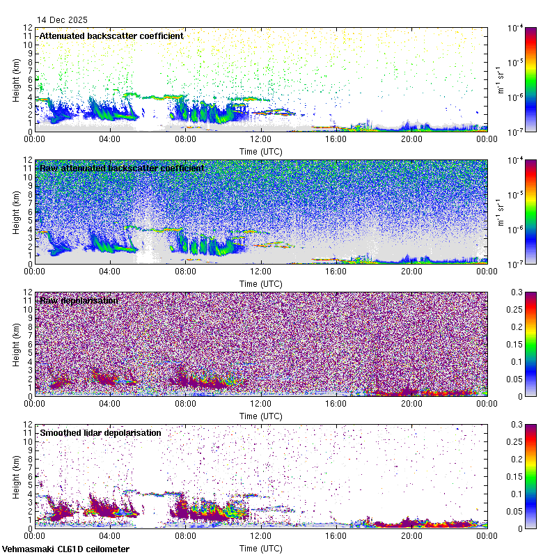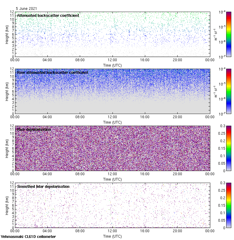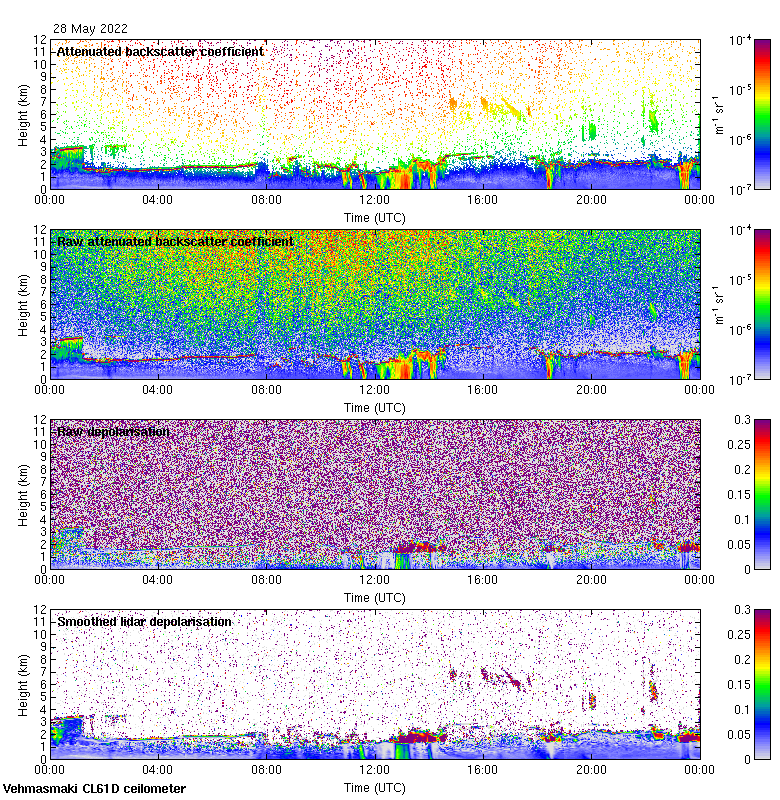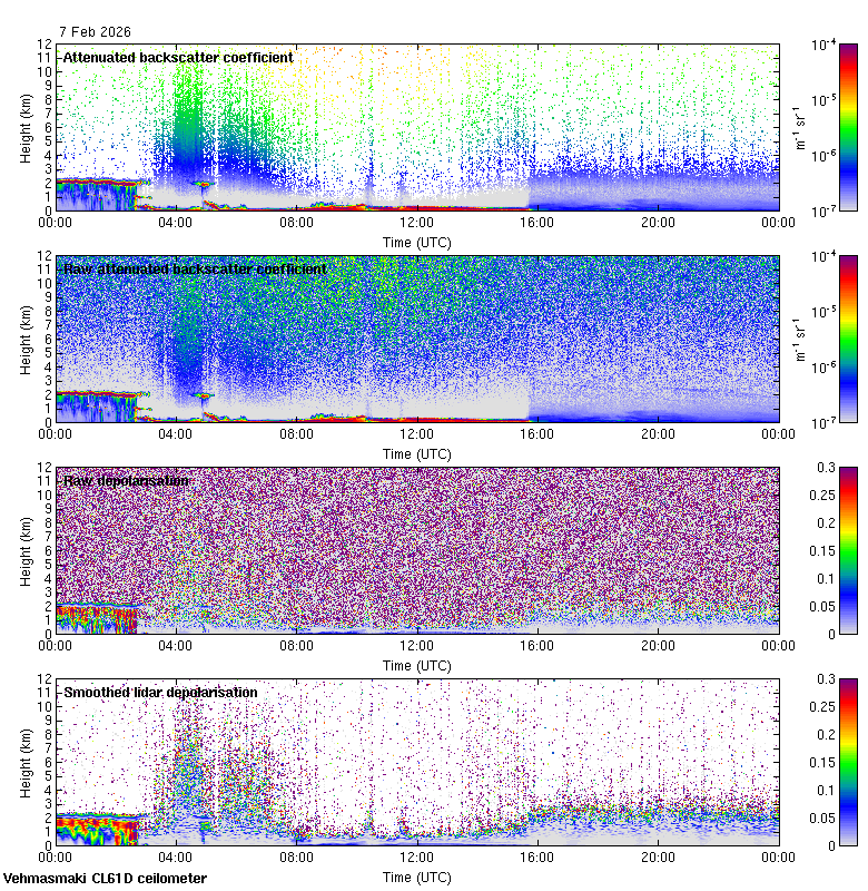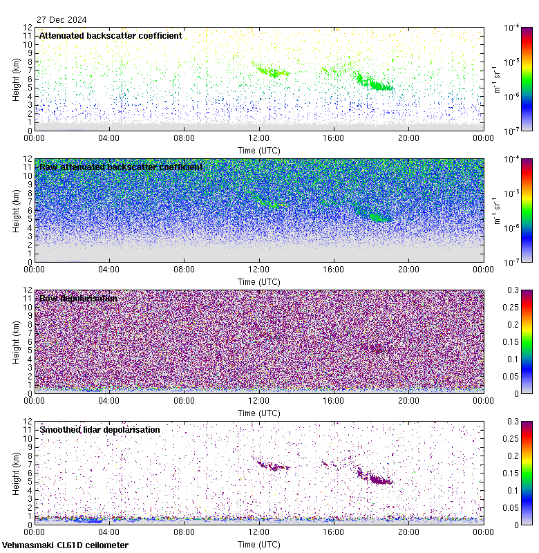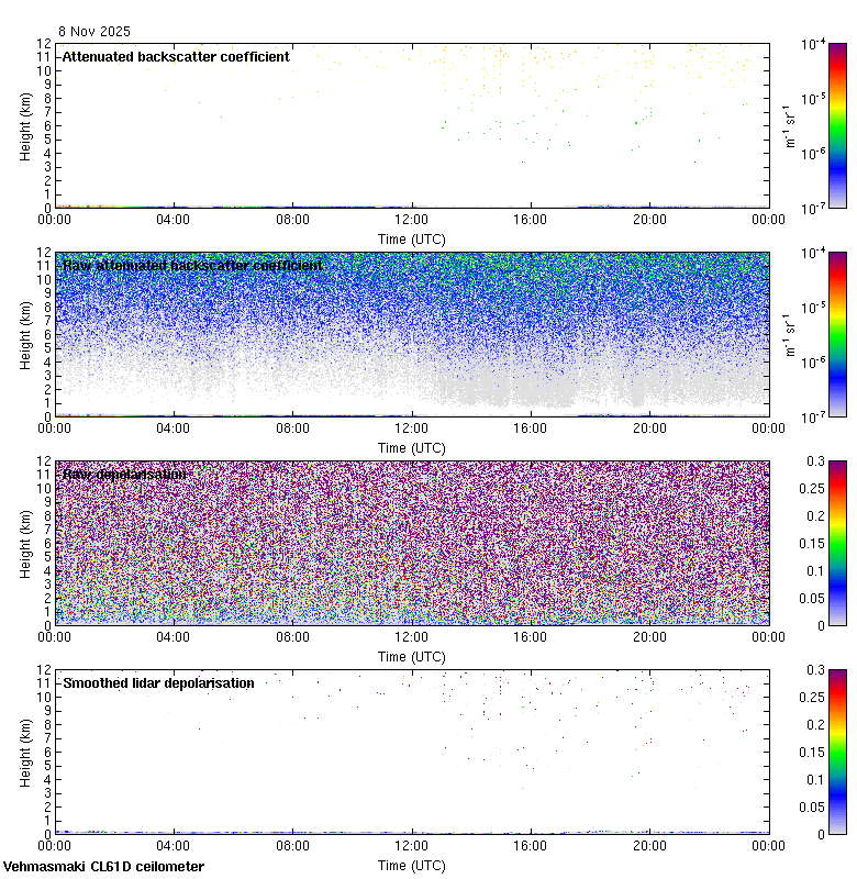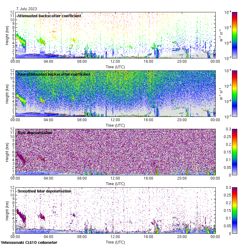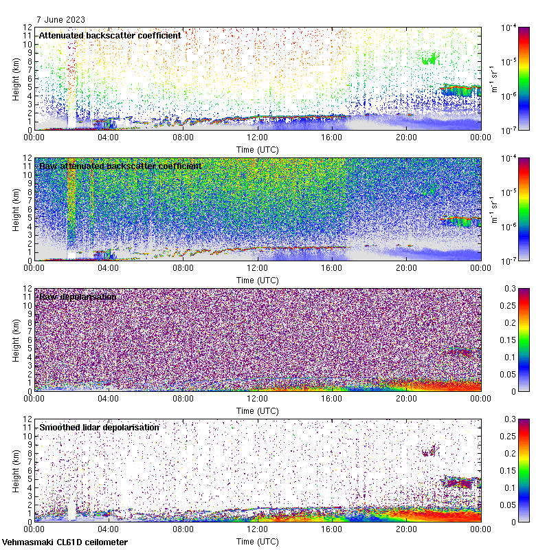 This page contains links to the daily Vehmasmaki Vaisala CL61D ceilometer images created at Kumpula.