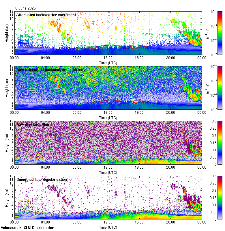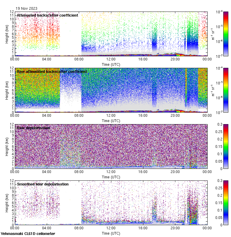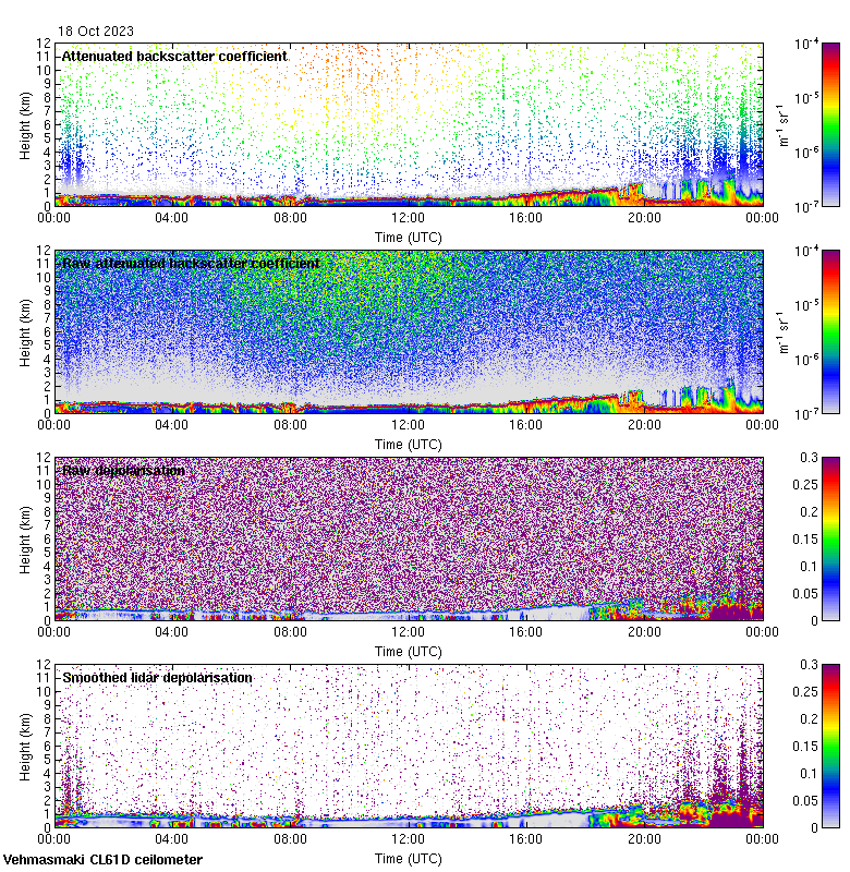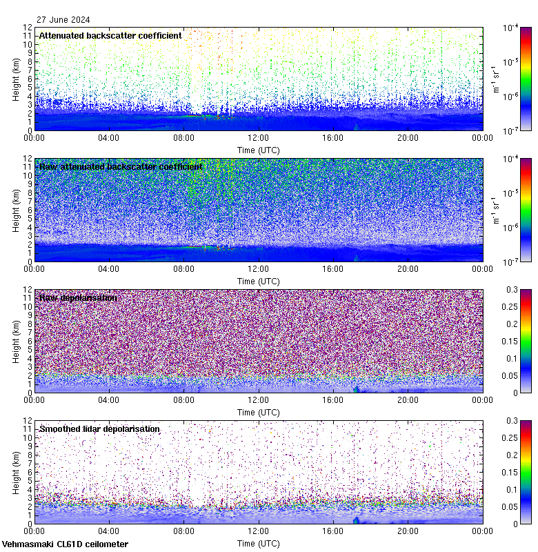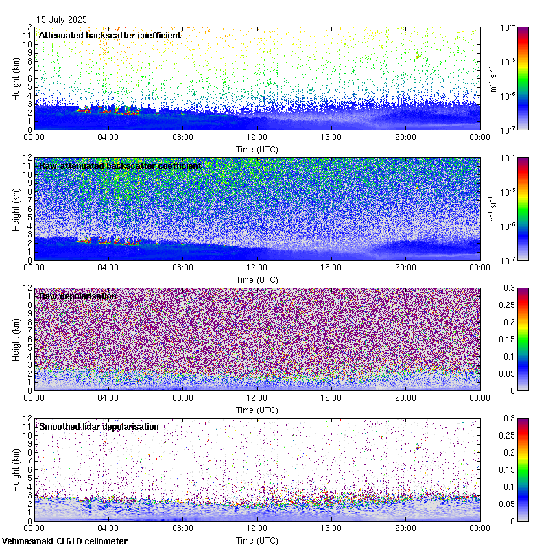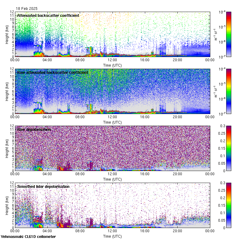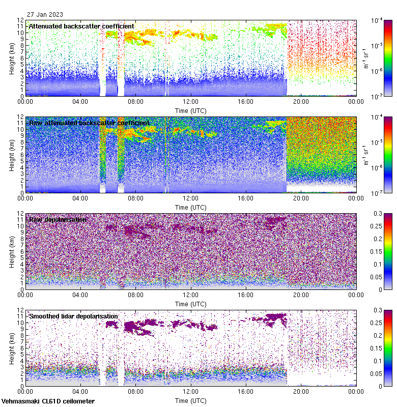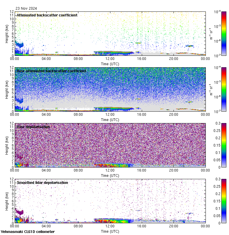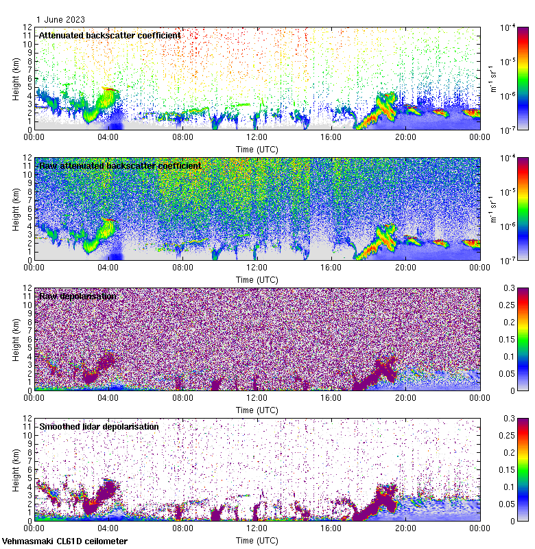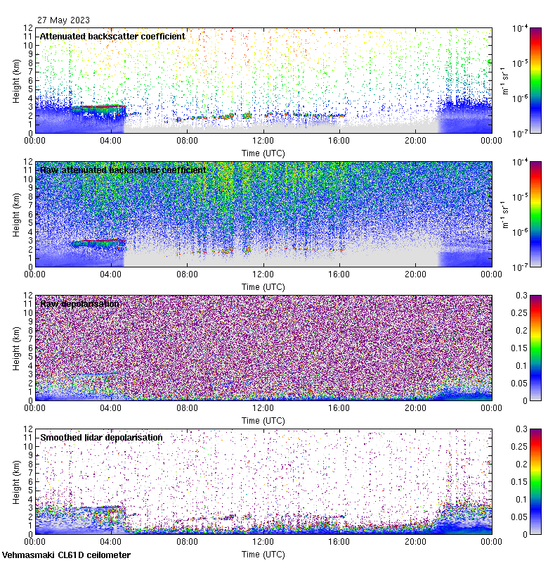 This page contains links to the daily Vehmasmaki Vaisala CL61D ceilometer images created at Kumpula.